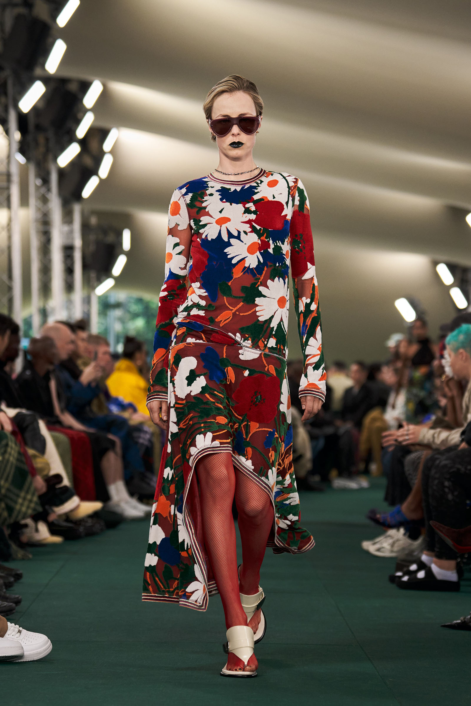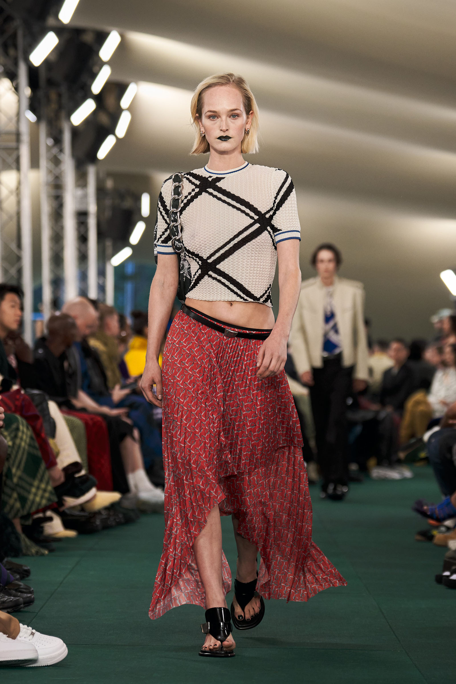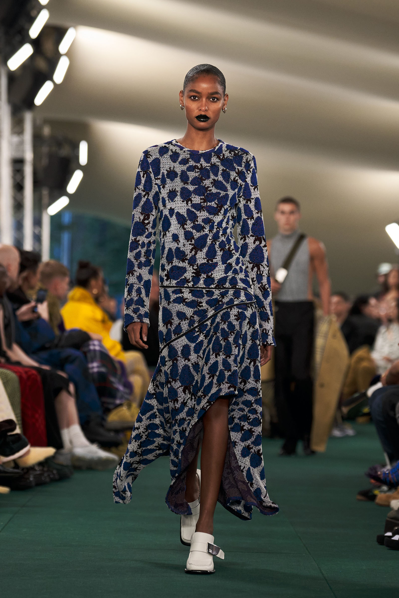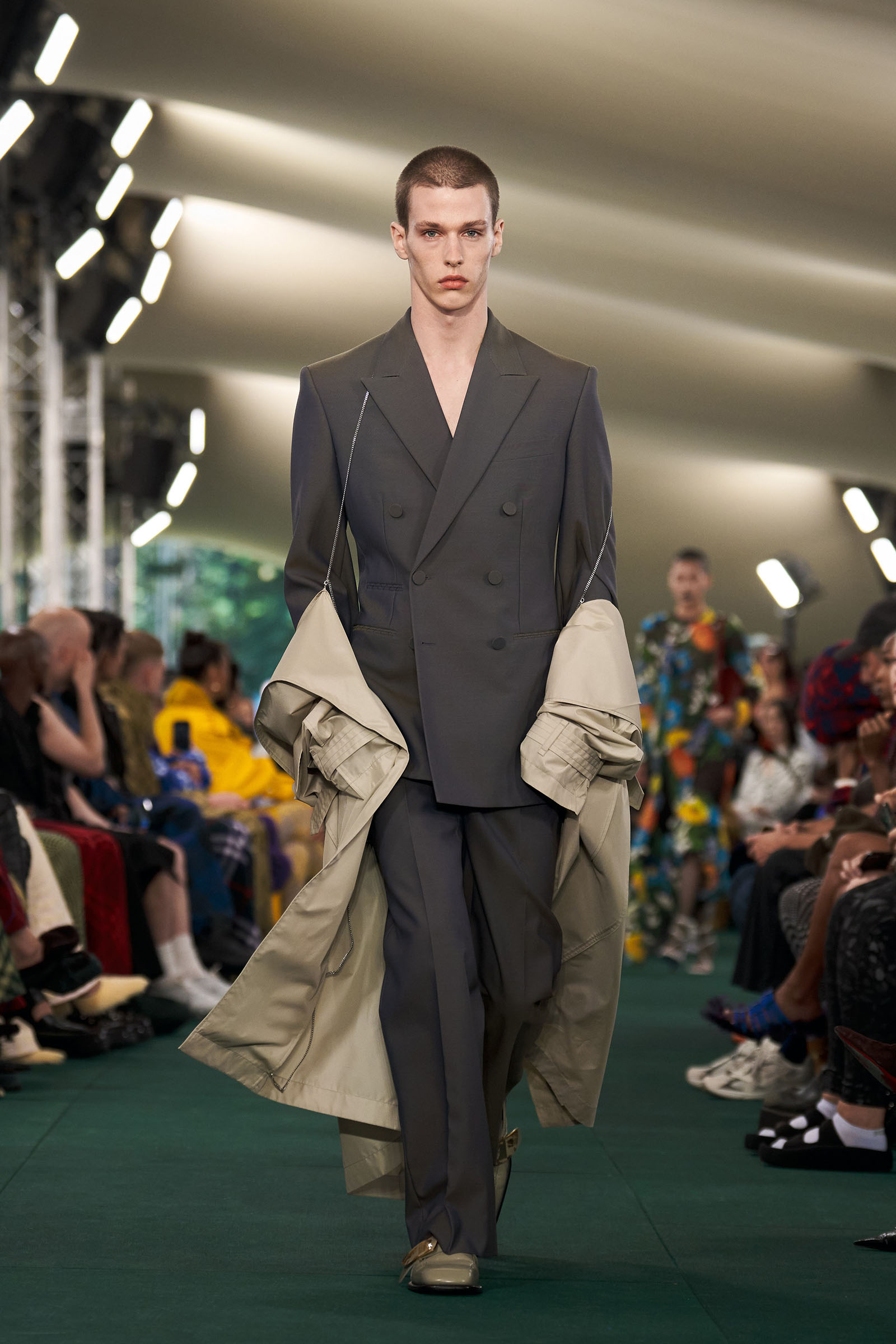 Lee had moments, too, dedicated to English summer flowers and fruit: cascading swarms of blue strawberries, blown-up meadow-flower prints. “Because it’s definitely about taking wardrobe codes, subverting them, and making them feel more London,” he said with a smile.
