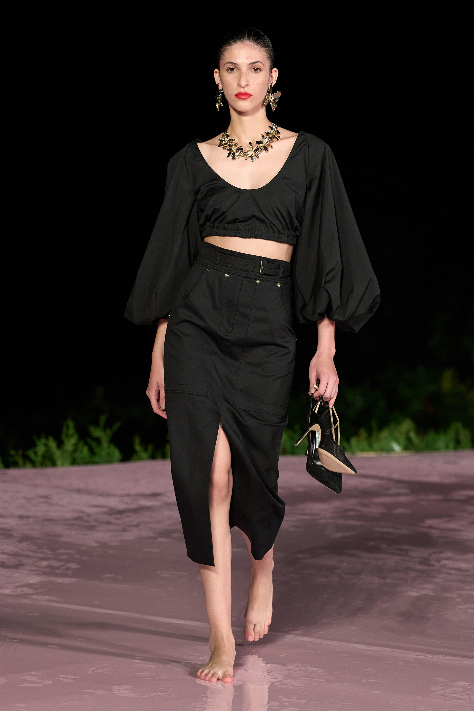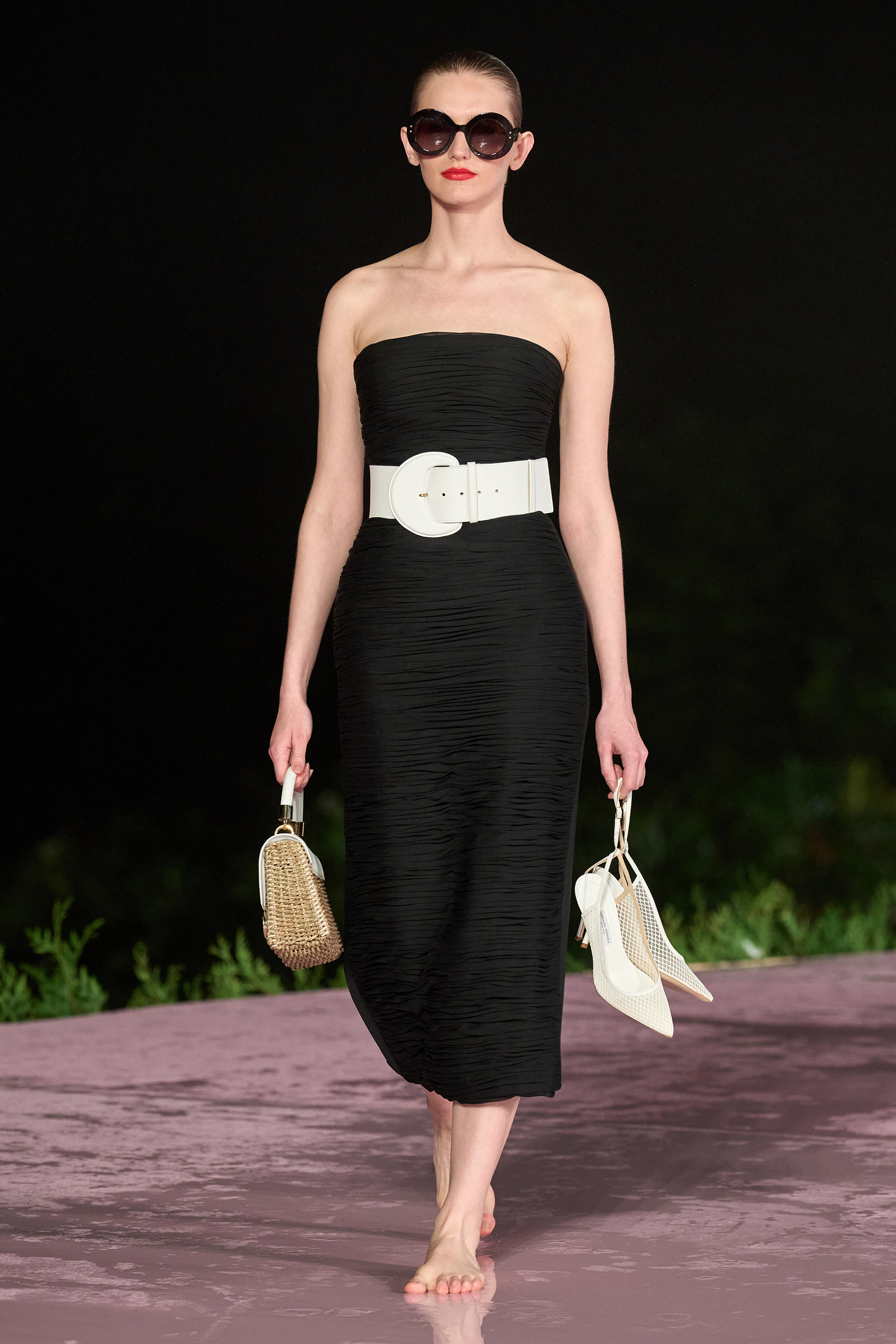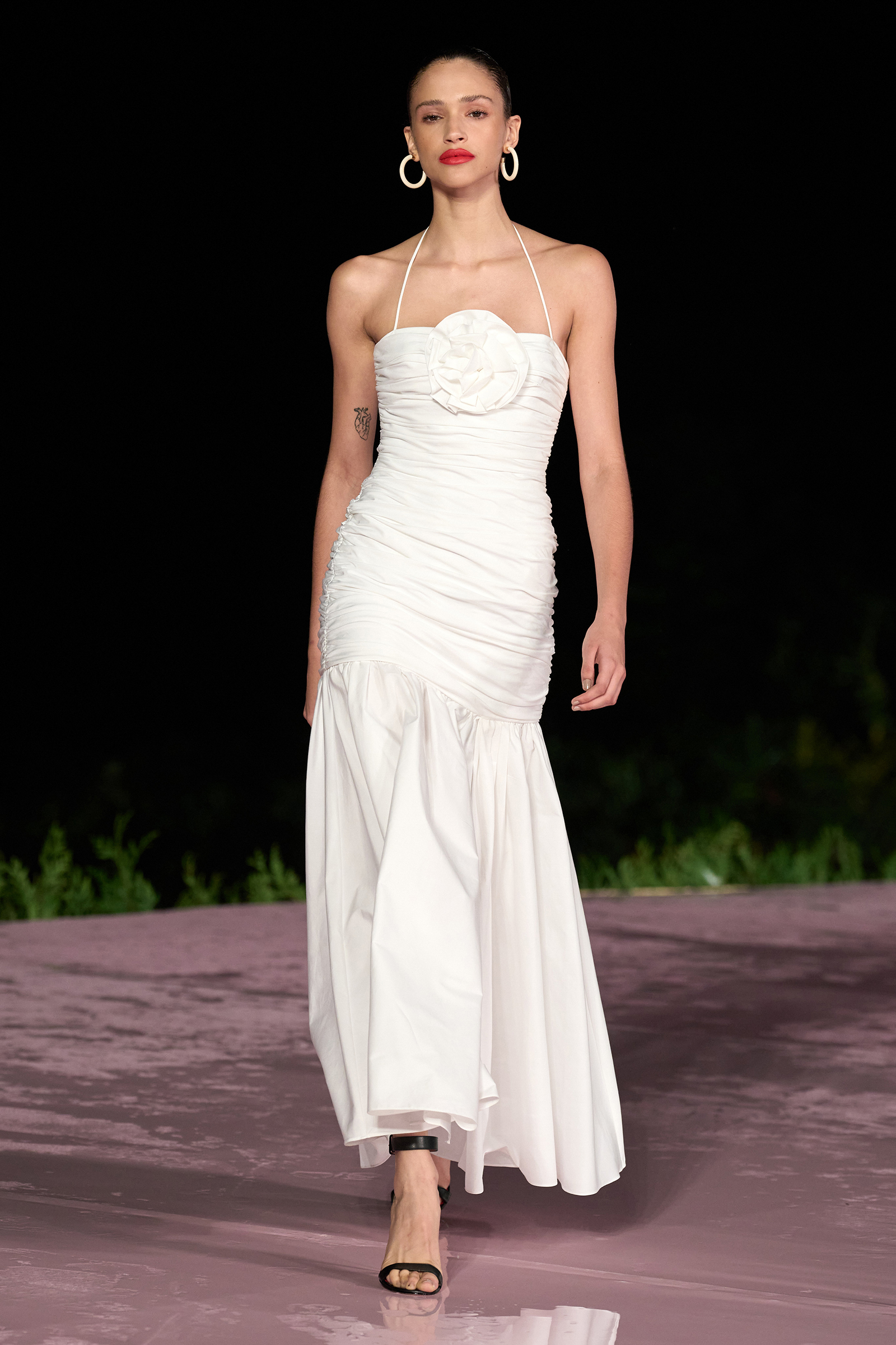 As the models walked down the runway, some barefoot and carrying their shoes in their hands, with genuine smiles on their faces while it rained all around them, I was struck by how perfectly the scene captured the essence of the Carolina Herrera woman: elegant, but strong, and ready to have a good time—no matter the elements.