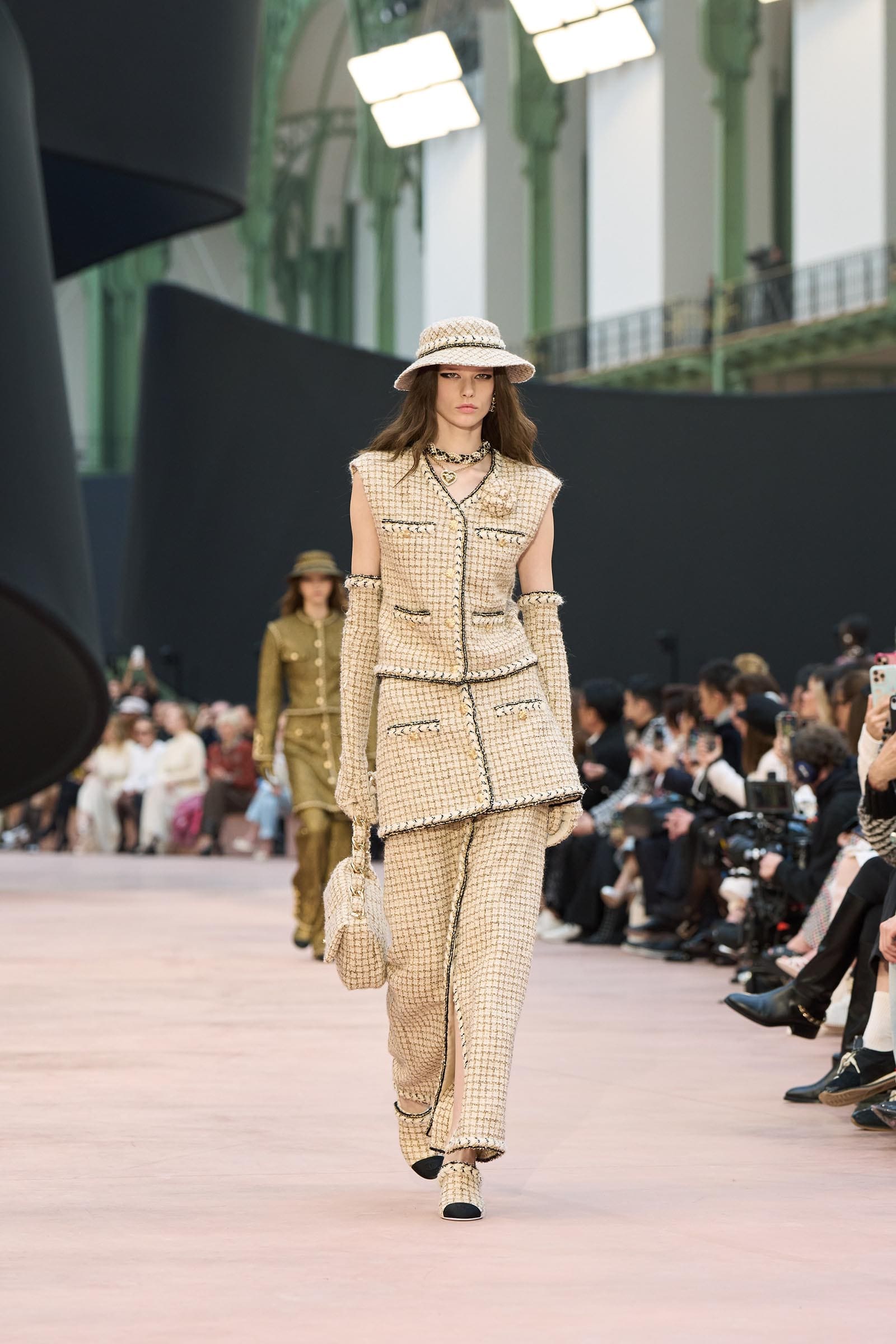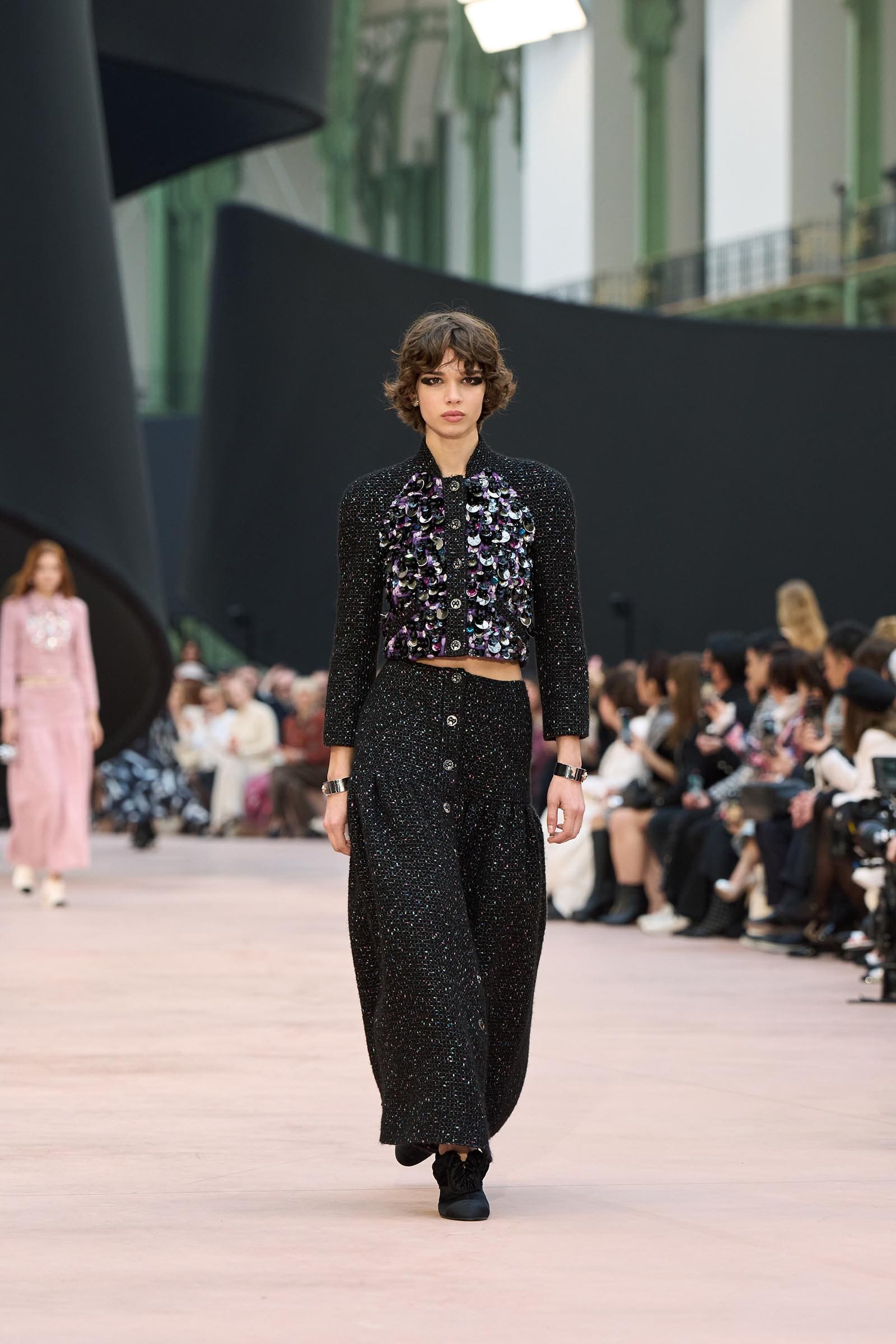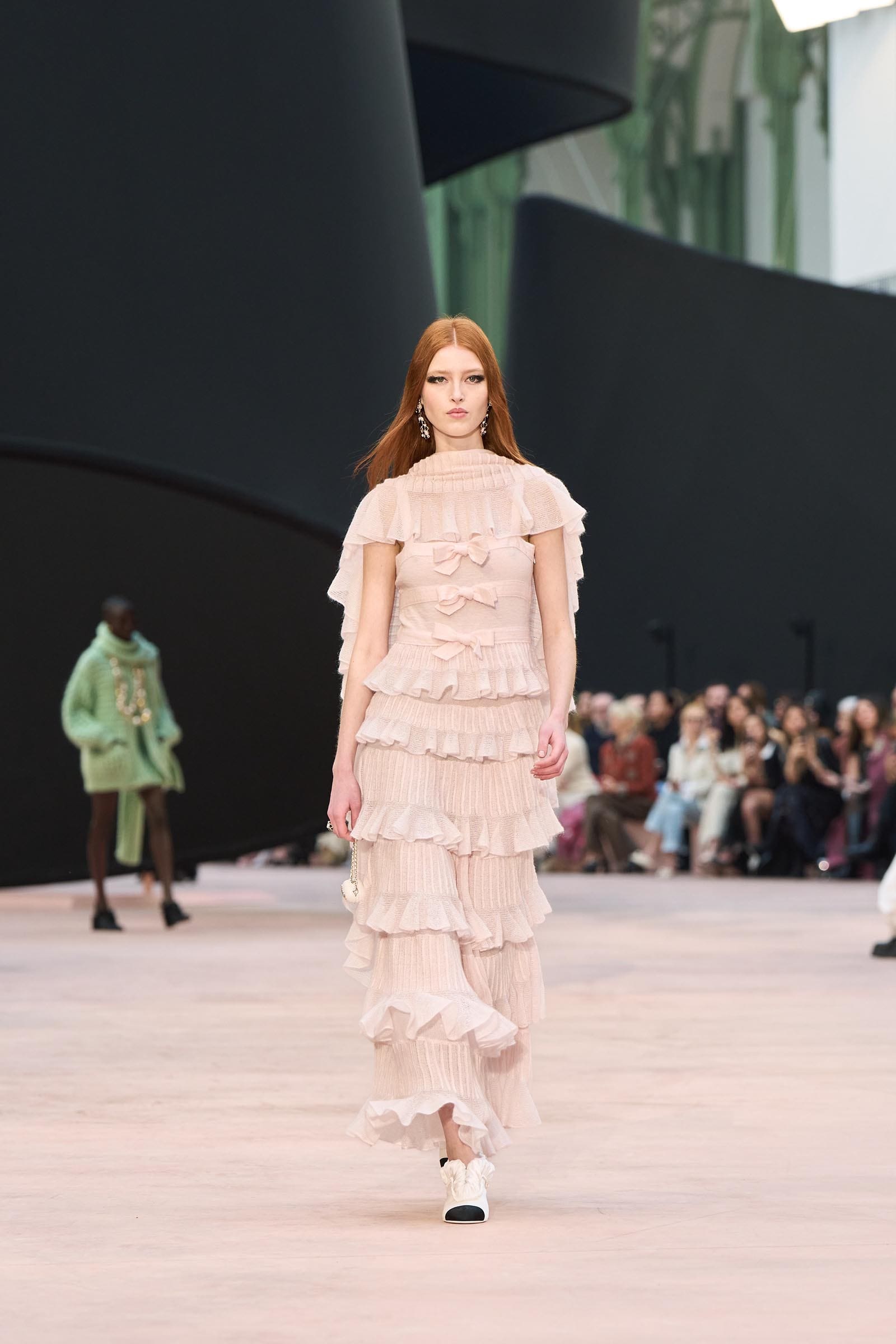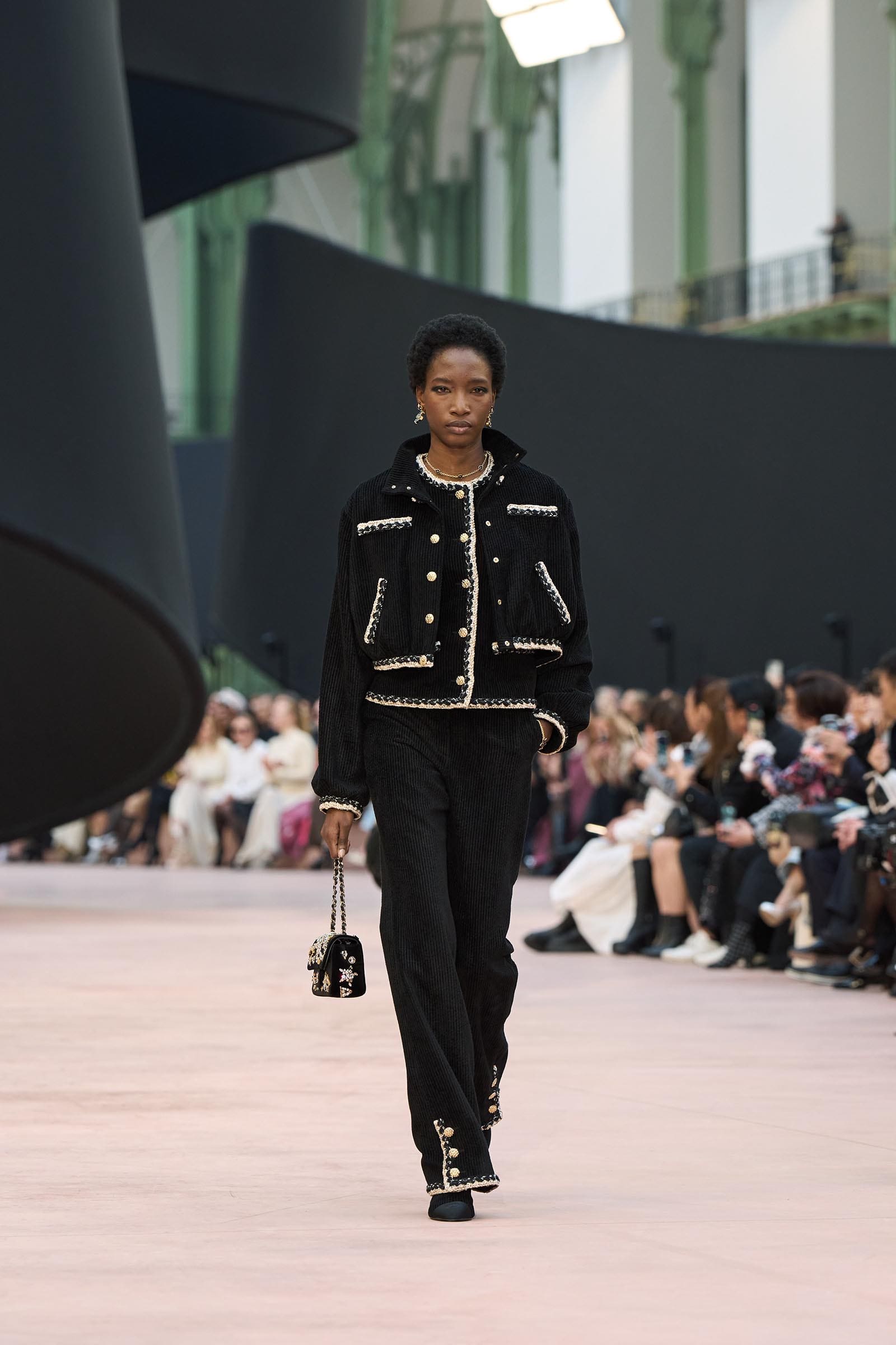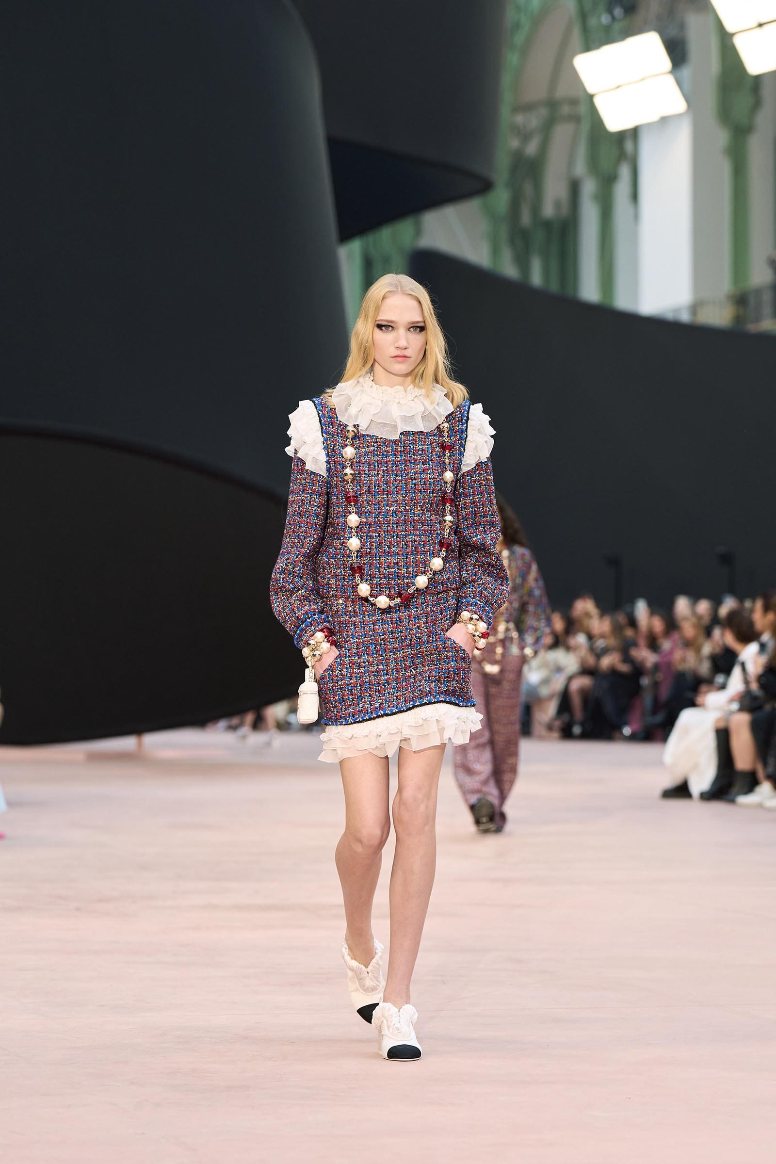 In the interim before Matthieu Blazy’s much-anticipated debut, Chanel constructed a huge black ribbon-shaped set at the Grand Palais, the better to tie the fall show to Coco’s codes. Much as the haute couture was earlier this year, this was a case of continuity-Chanel by the Fashion Creation Studio at the Rue Cambon, fulfilled with a light-ish air.