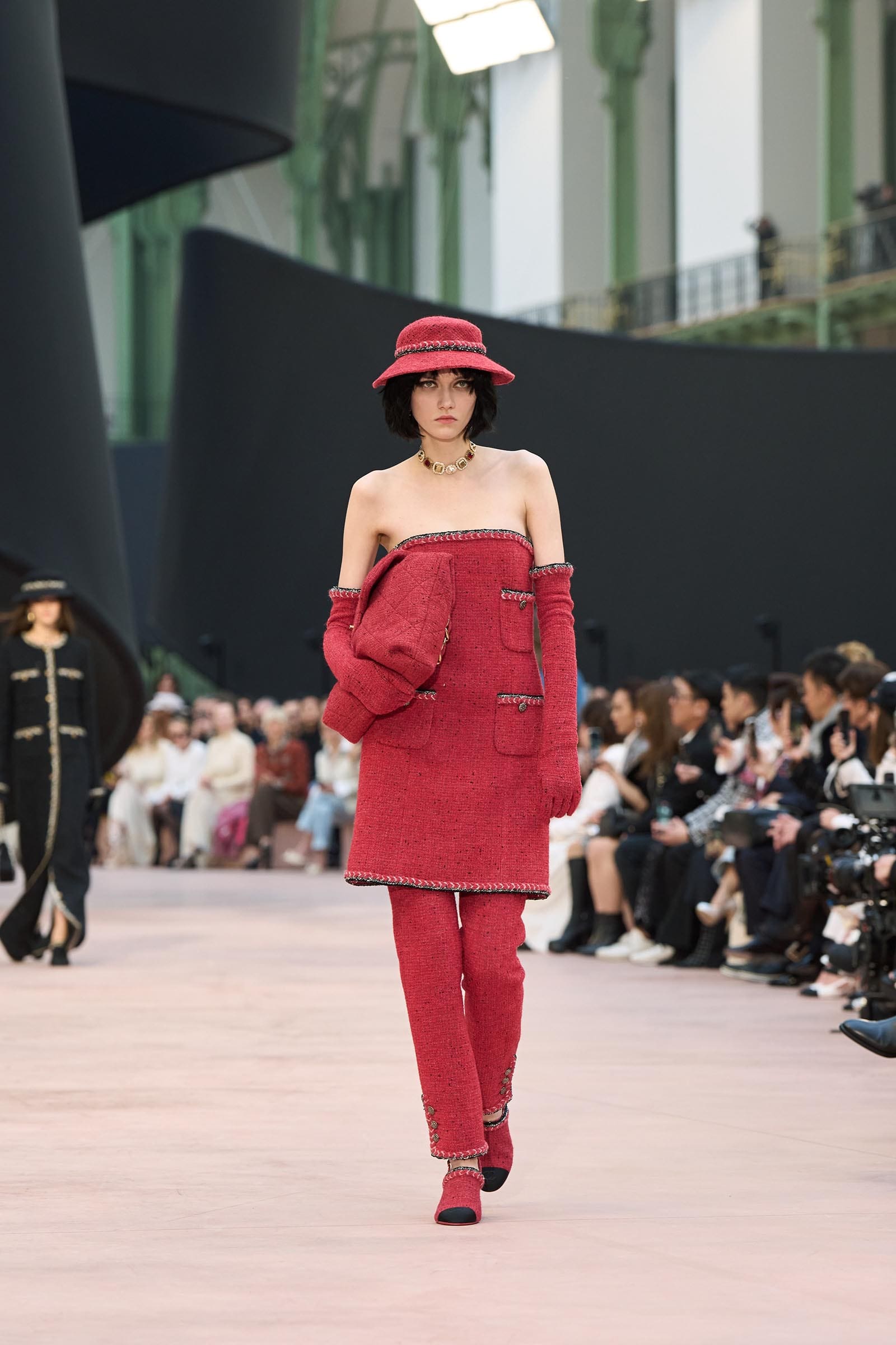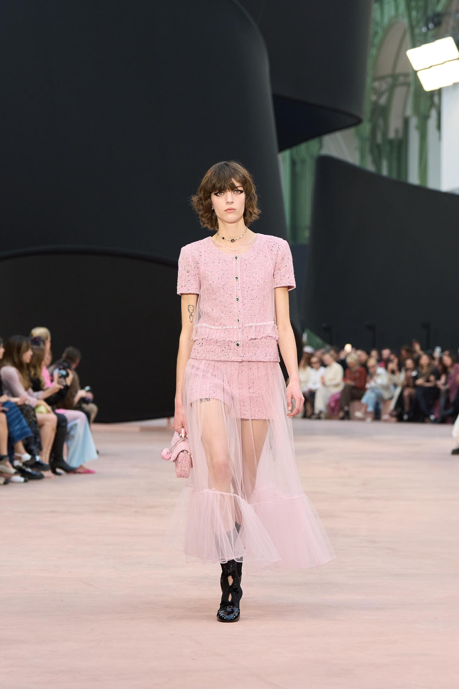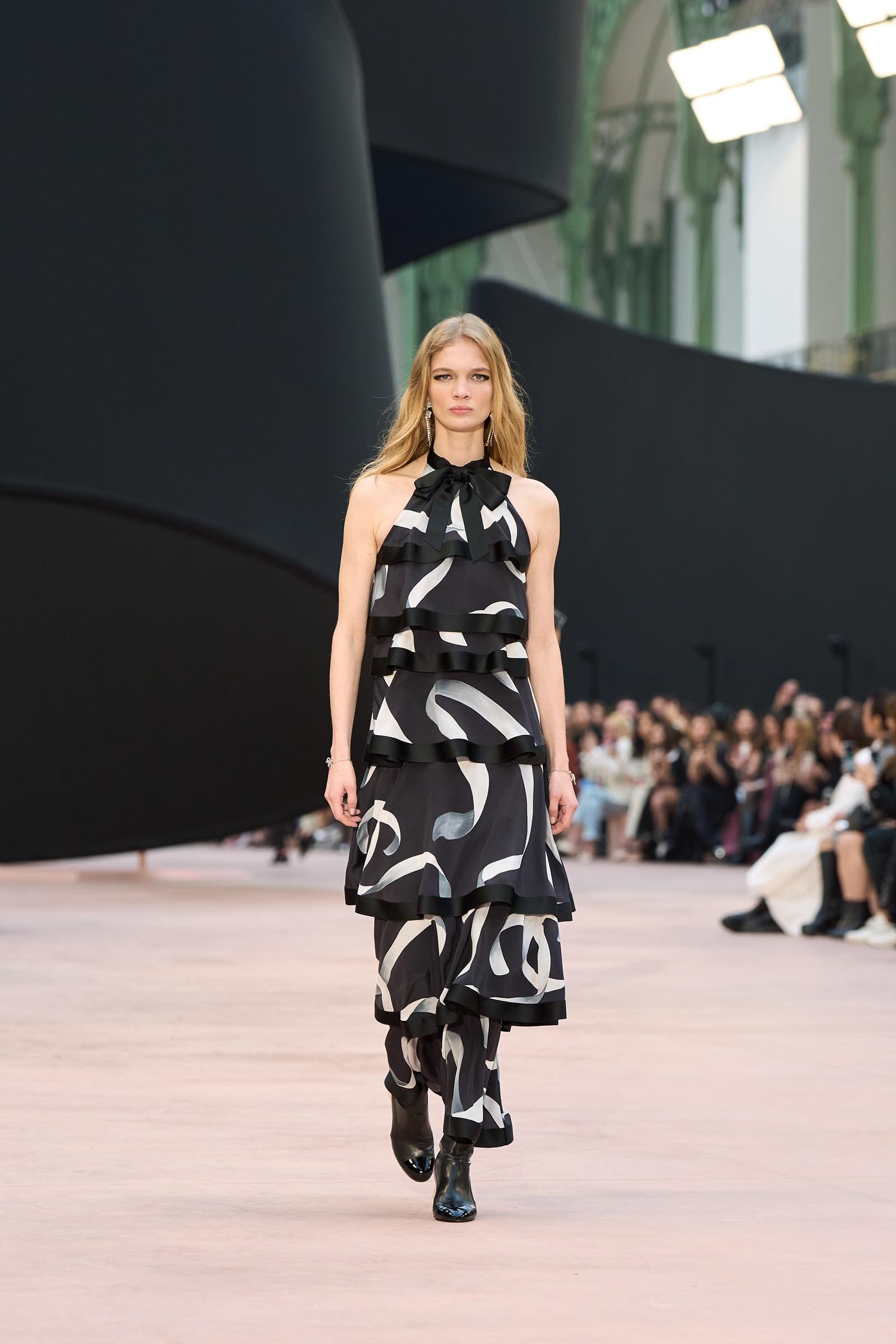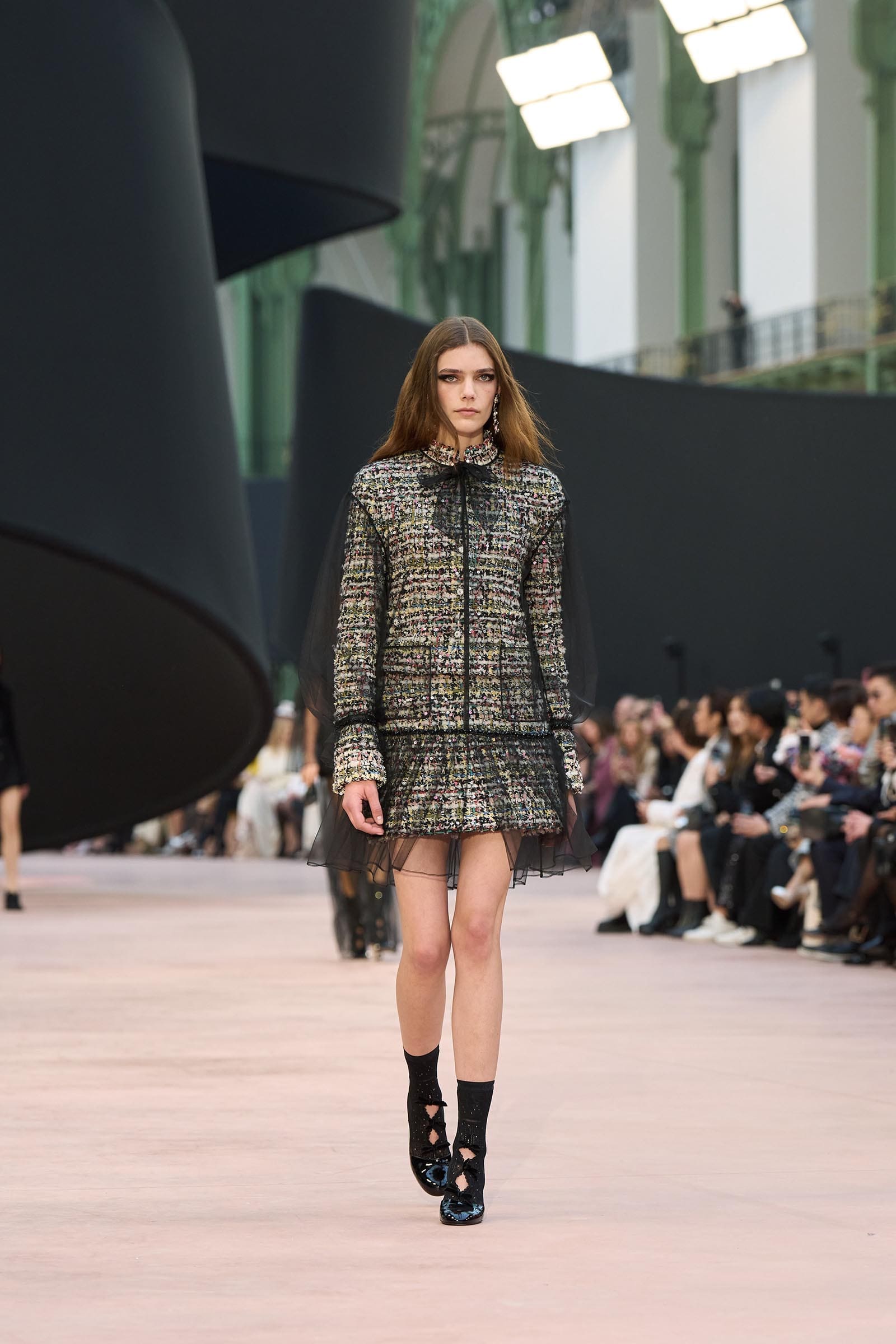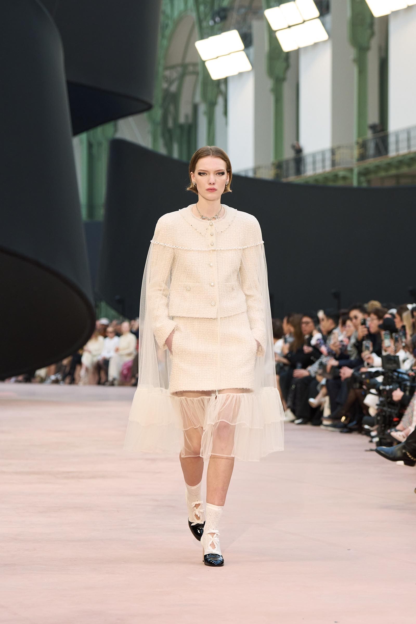 In the interim before Matthieu Blazy’s much-anticipated debut, Chanel constructed a huge black ribbon-shaped set at the Grand Palais, the better to tie the fall show to Coco’s codes. Much as the haute couture was earlier this year, this was a case of continuity-Chanel by the Fashion Creation Studio at the Rue Cambon, fulfilled with a light-ish air.