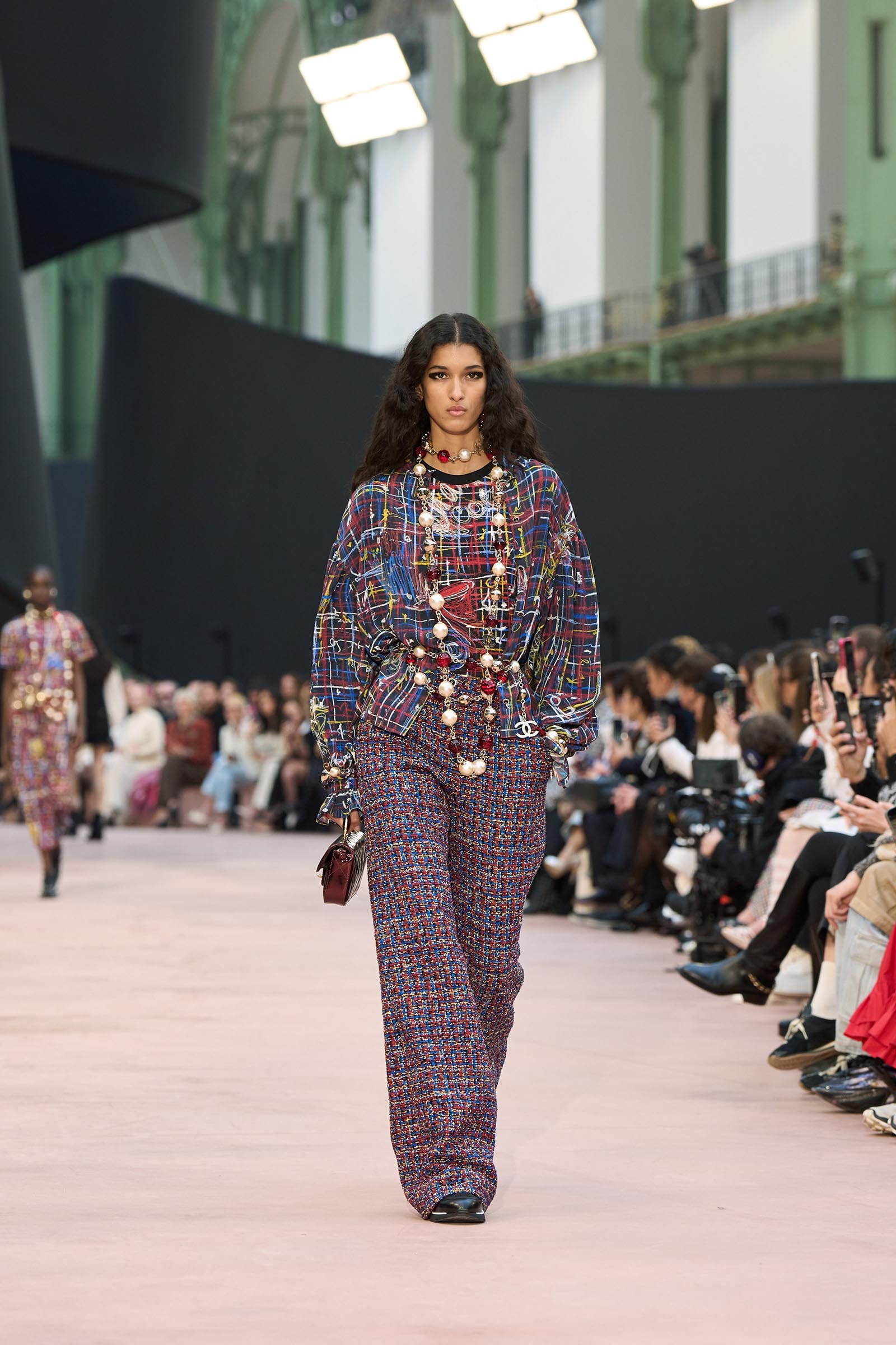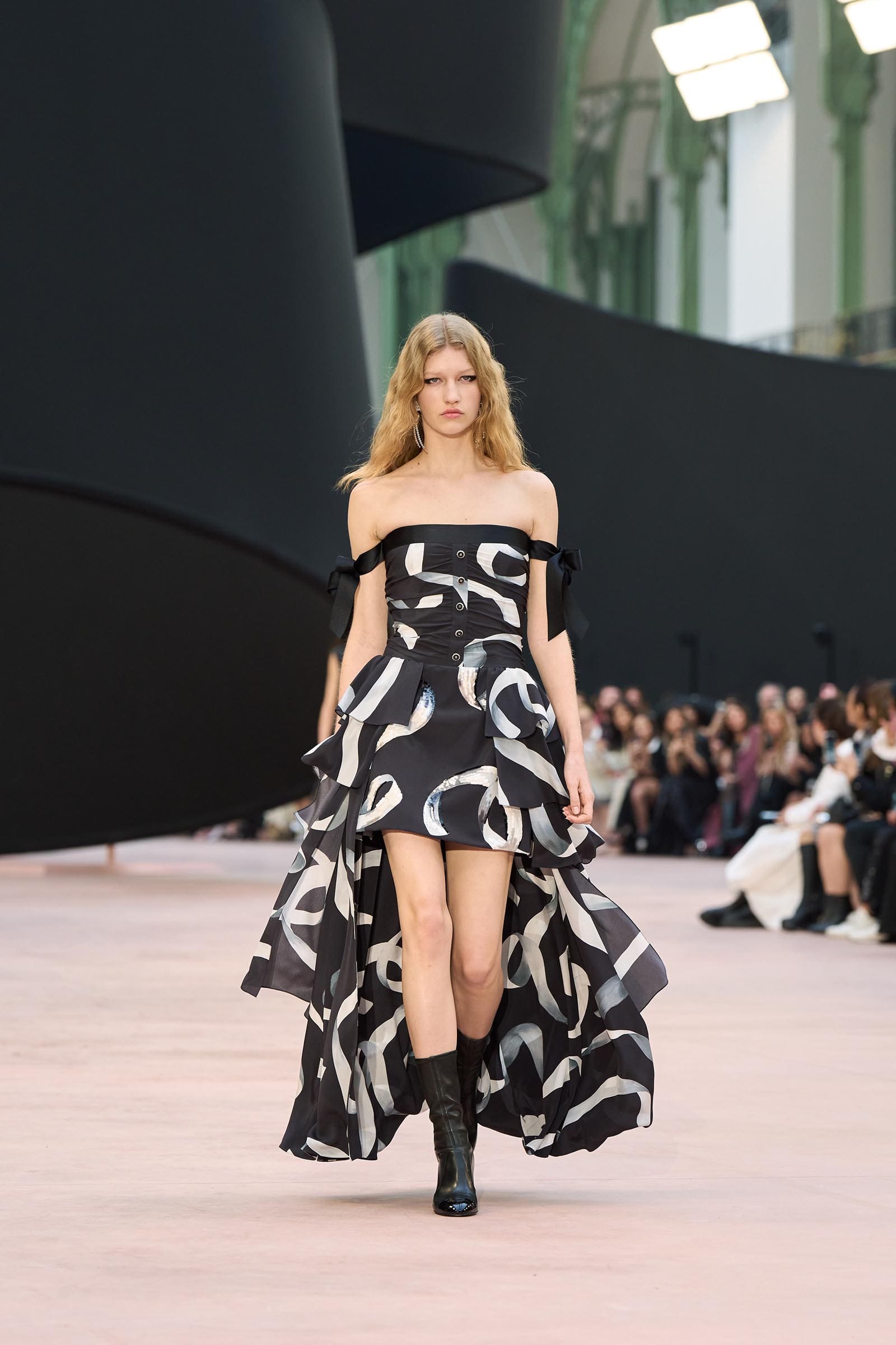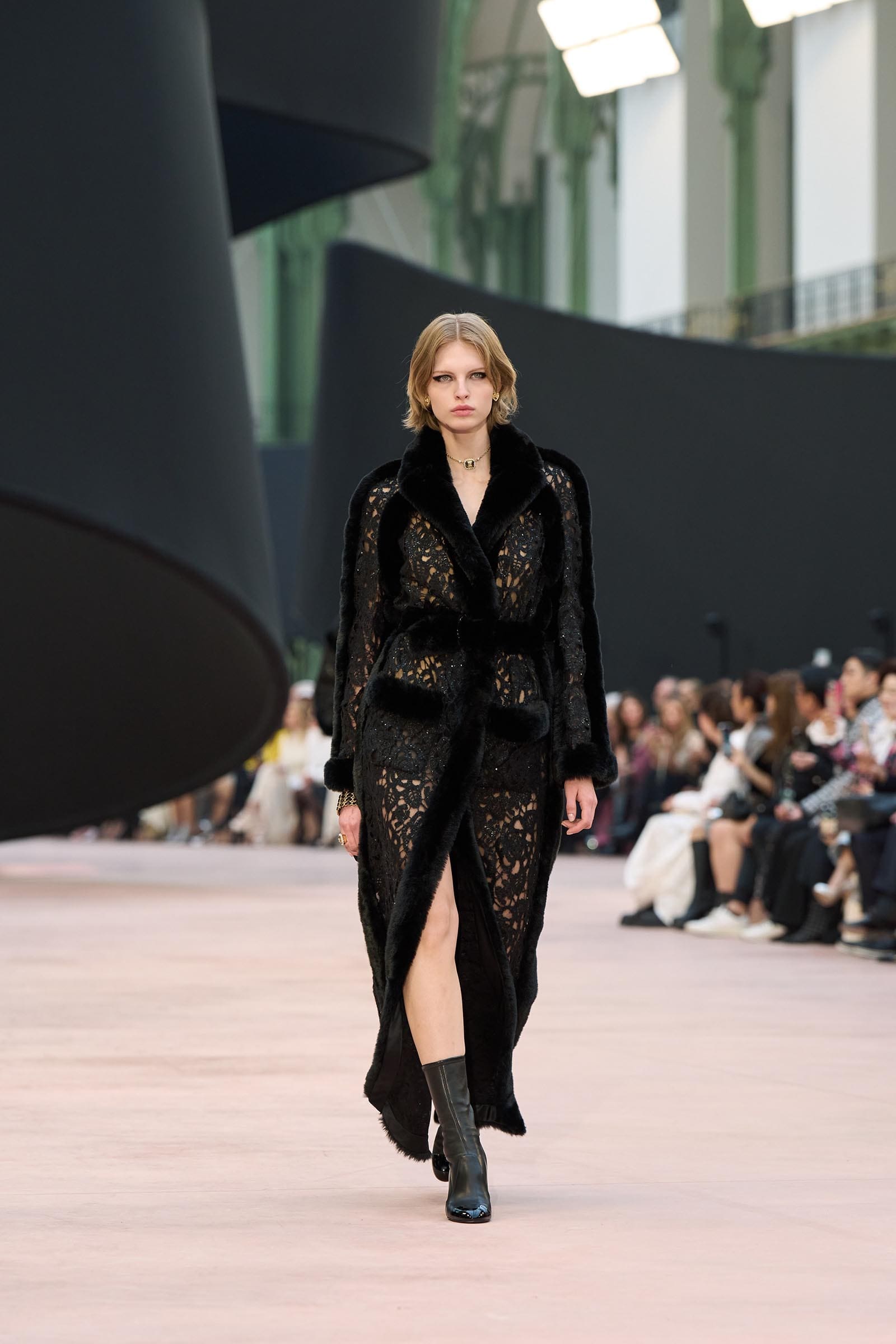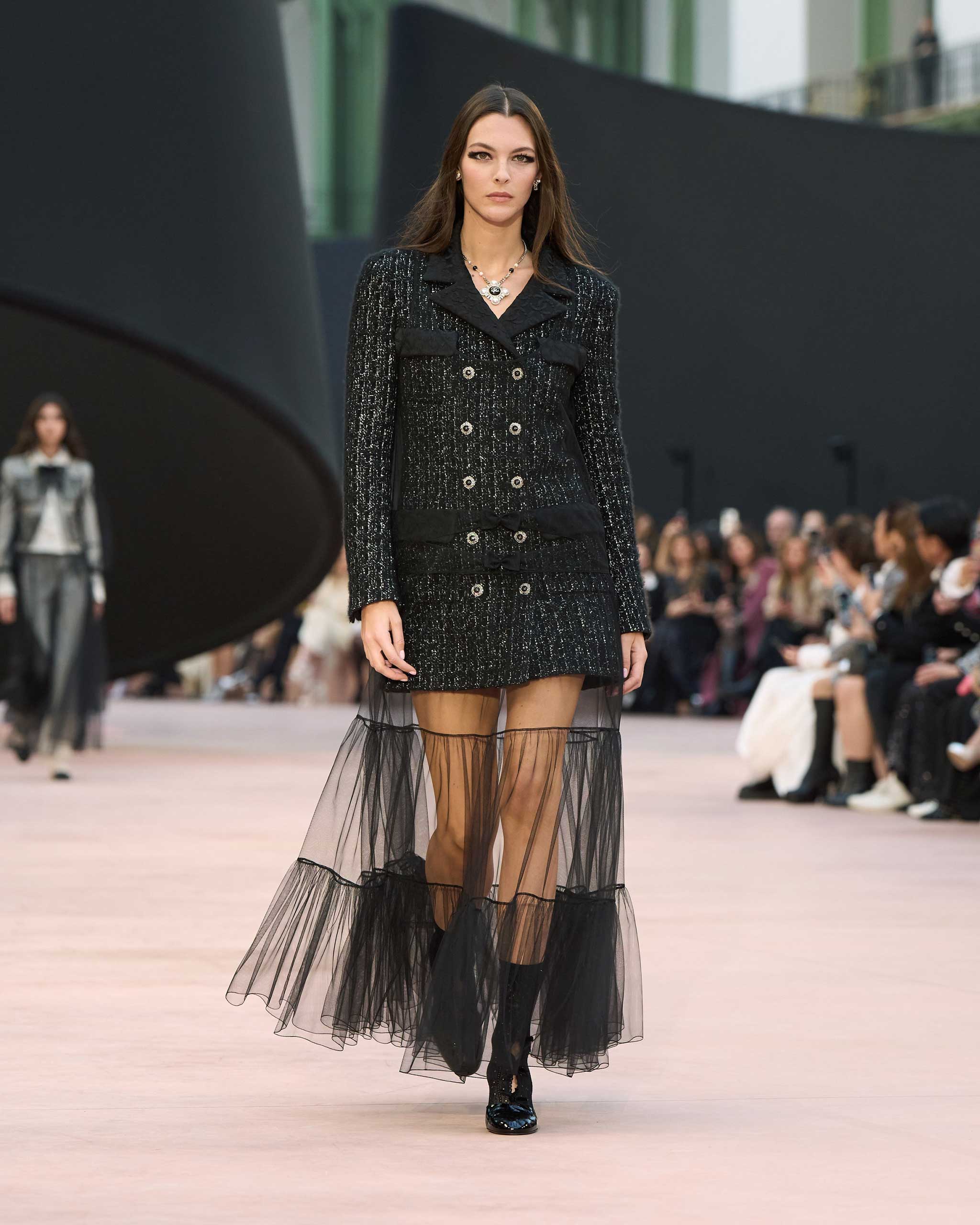 In the interim before Matthieu Blazy’s much-anticipated debut, Chanel constructed a huge black ribbon-shaped set at the Grand Palais, the better to tie the fall show to Coco’s codes. Much as the haute couture was earlier this year, this was a case of continuity-Chanel by the Fashion Creation Studio at the Rue Cambon, fulfilled with a light-ish air.
