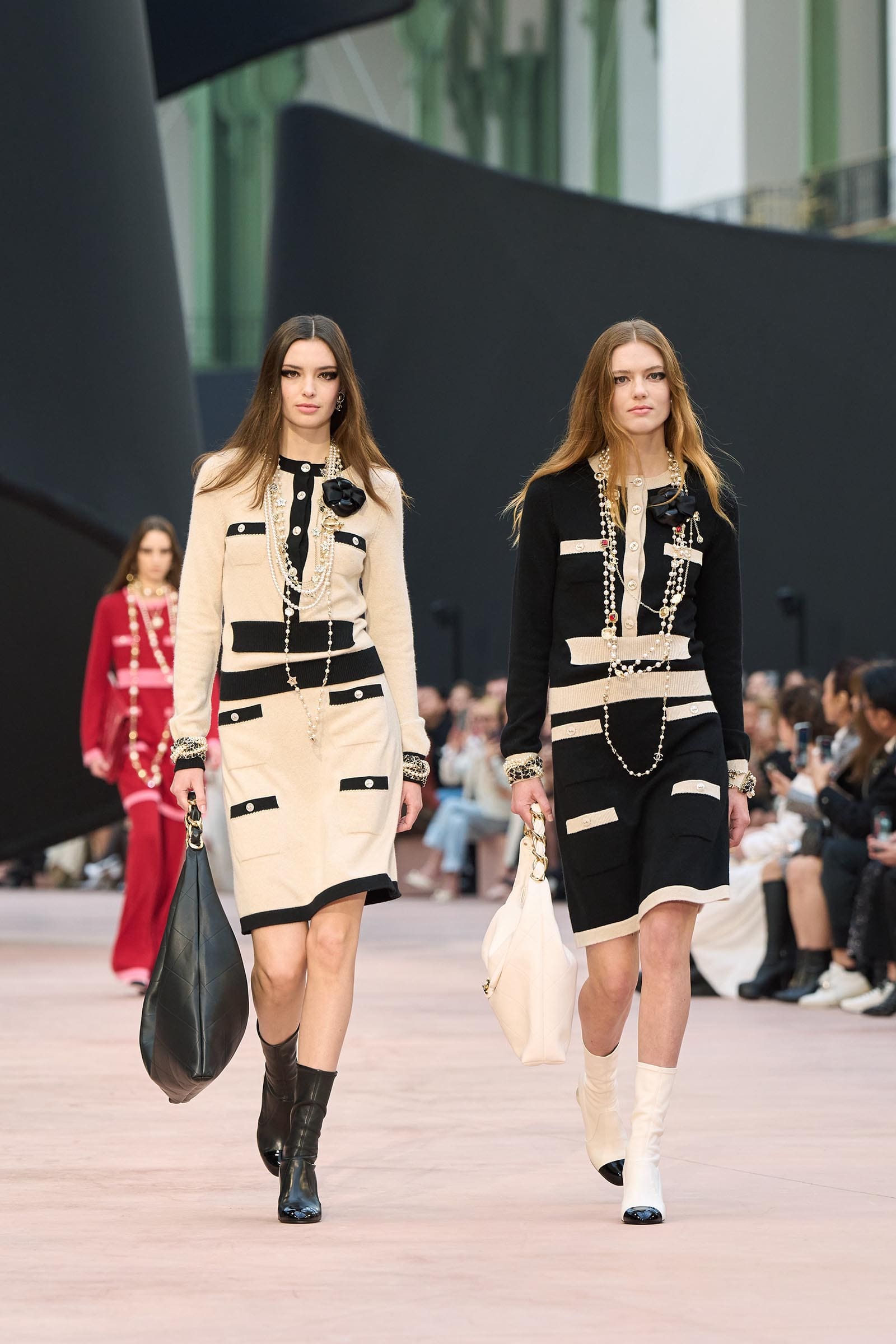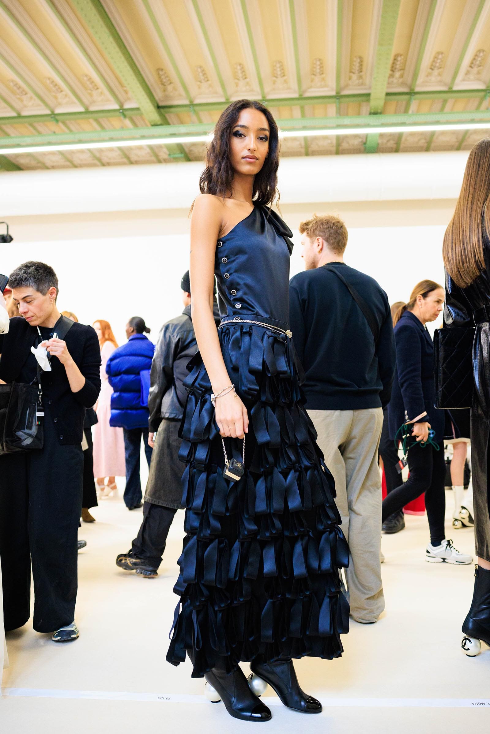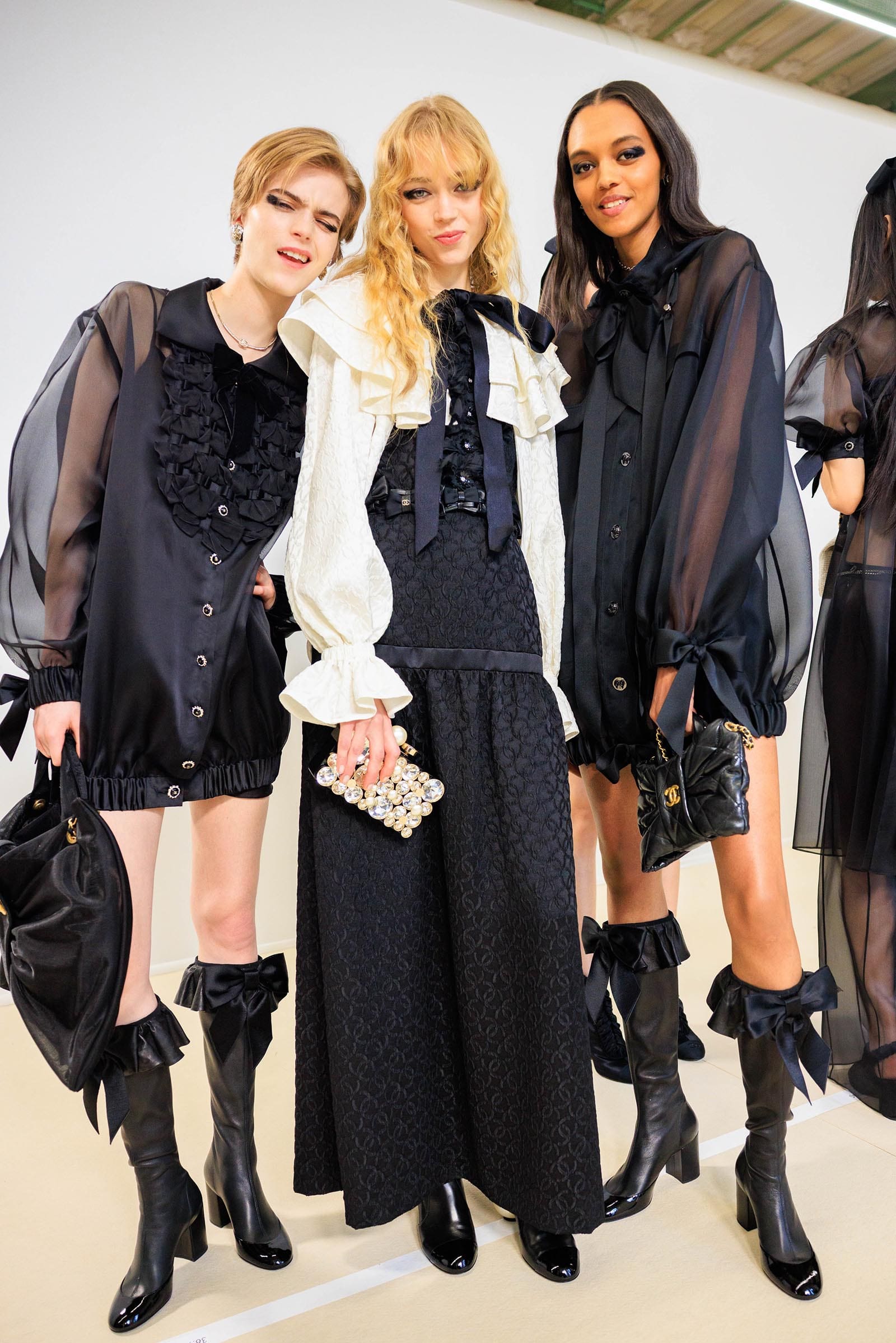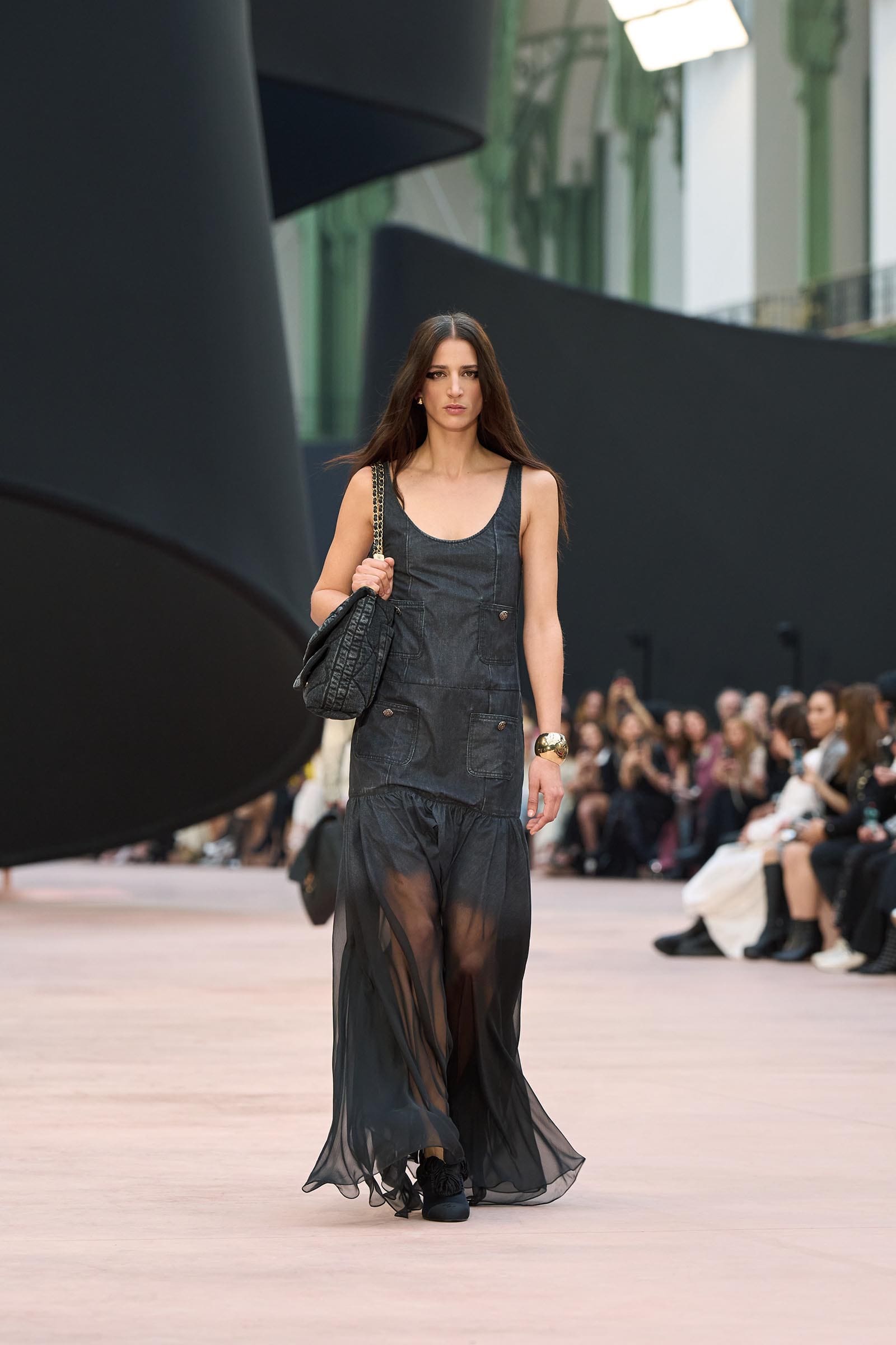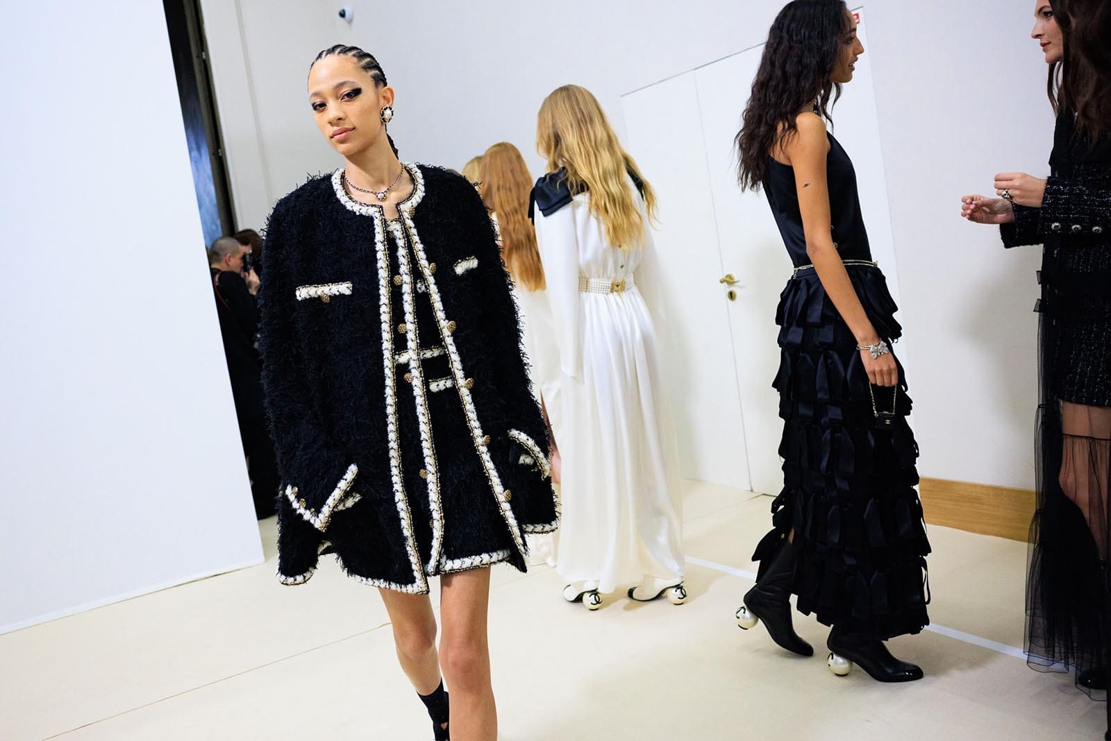 In the interim before Matthieu Blazy’s much-anticipated debut, Chanel constructed a huge black ribbon-shaped set at the Grand Palais, the better to tie the fall show to Coco’s codes. Much as the haute couture was earlier this year, this was a case of continuity-Chanel by the Fashion Creation Studio at the Rue Cambon, fulfilled with a light-ish air.