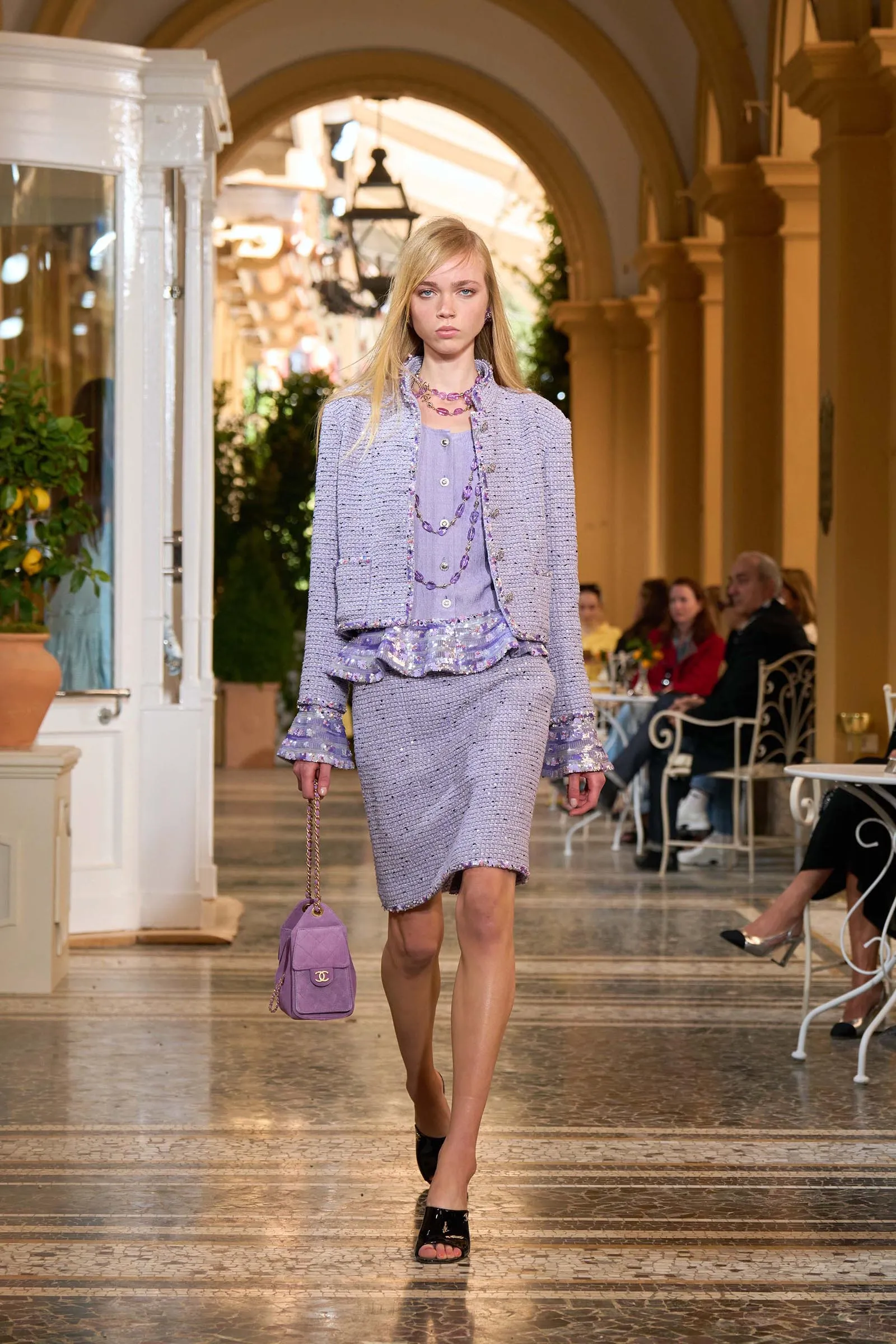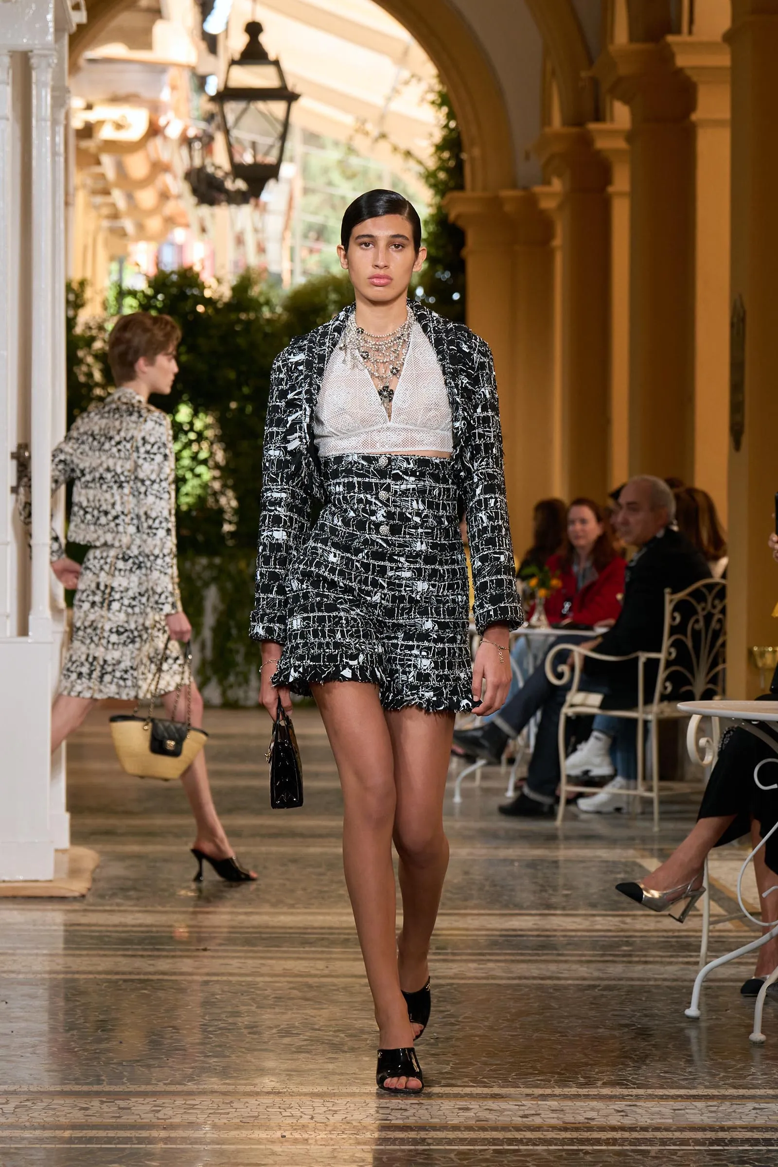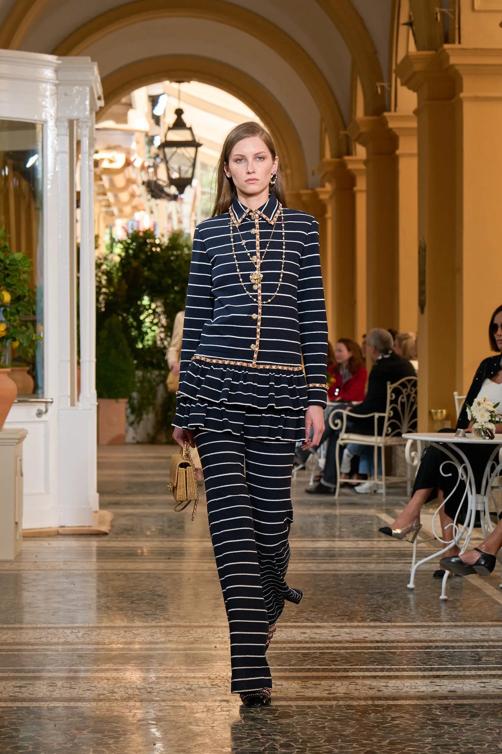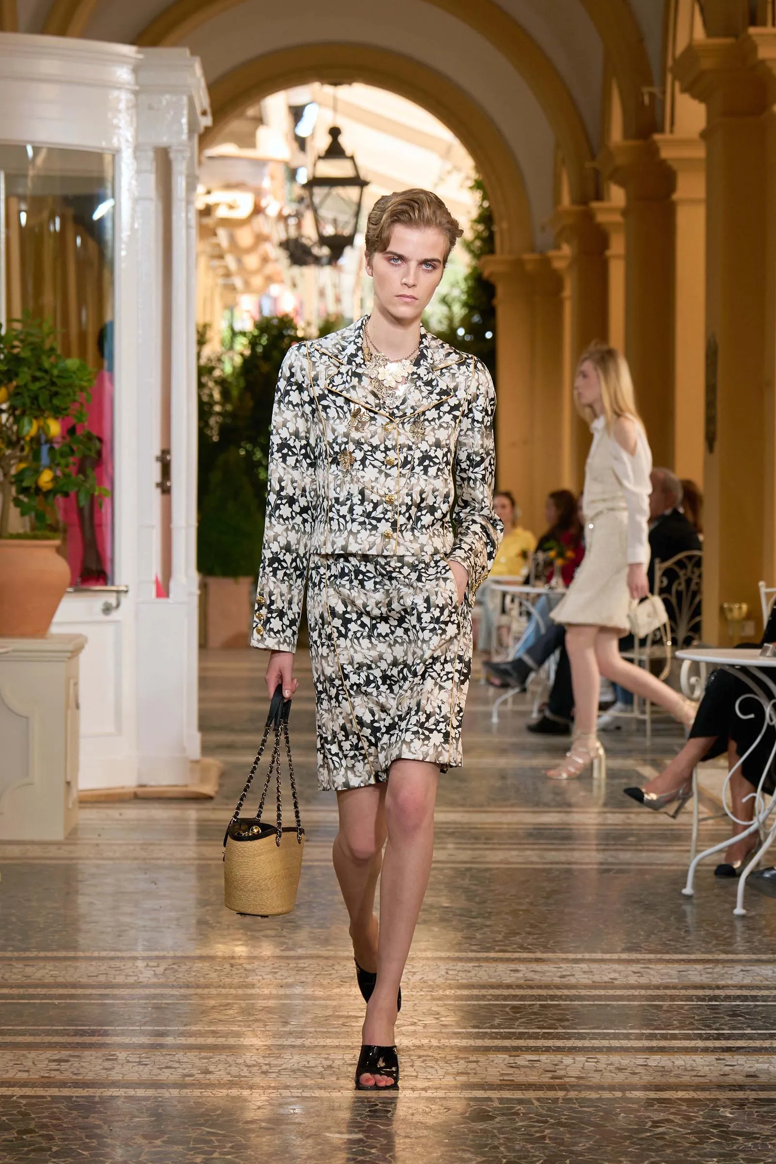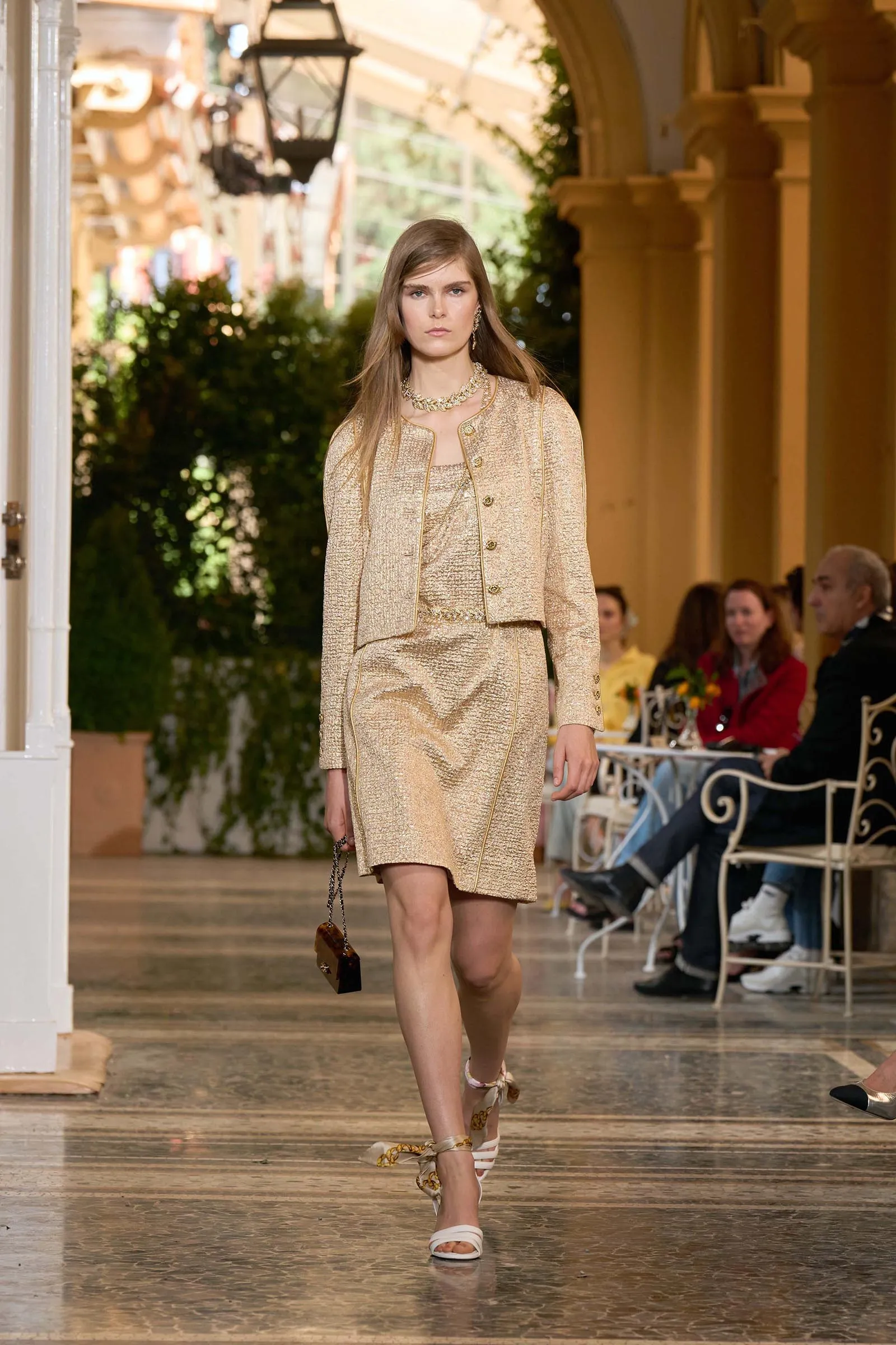 Coco Chanel herself fell for Italy in 1920, when she first traveled with friends Misia and José Maria Sert to Venice, a city whose gilded Byzantine splendor spoke to her taste for opulence. In the 1930s, Luchino Visconti hosted the imperious couturière at the grand Villa Erba, nestled in his family’s Cernobbio estate on Lake Como. The director and the designer shared a devotion to presentation—lavish yet exacting, unconventional and soignée, apparently effortless, but rooted in aristocratic polish. Avoiding nostalgia or overt references, the new cruise collection unfolded as a chic yet easygoing, summery remix, evoking the Italian resort lifestyle, but crafted with French savoir-faire and finesse.