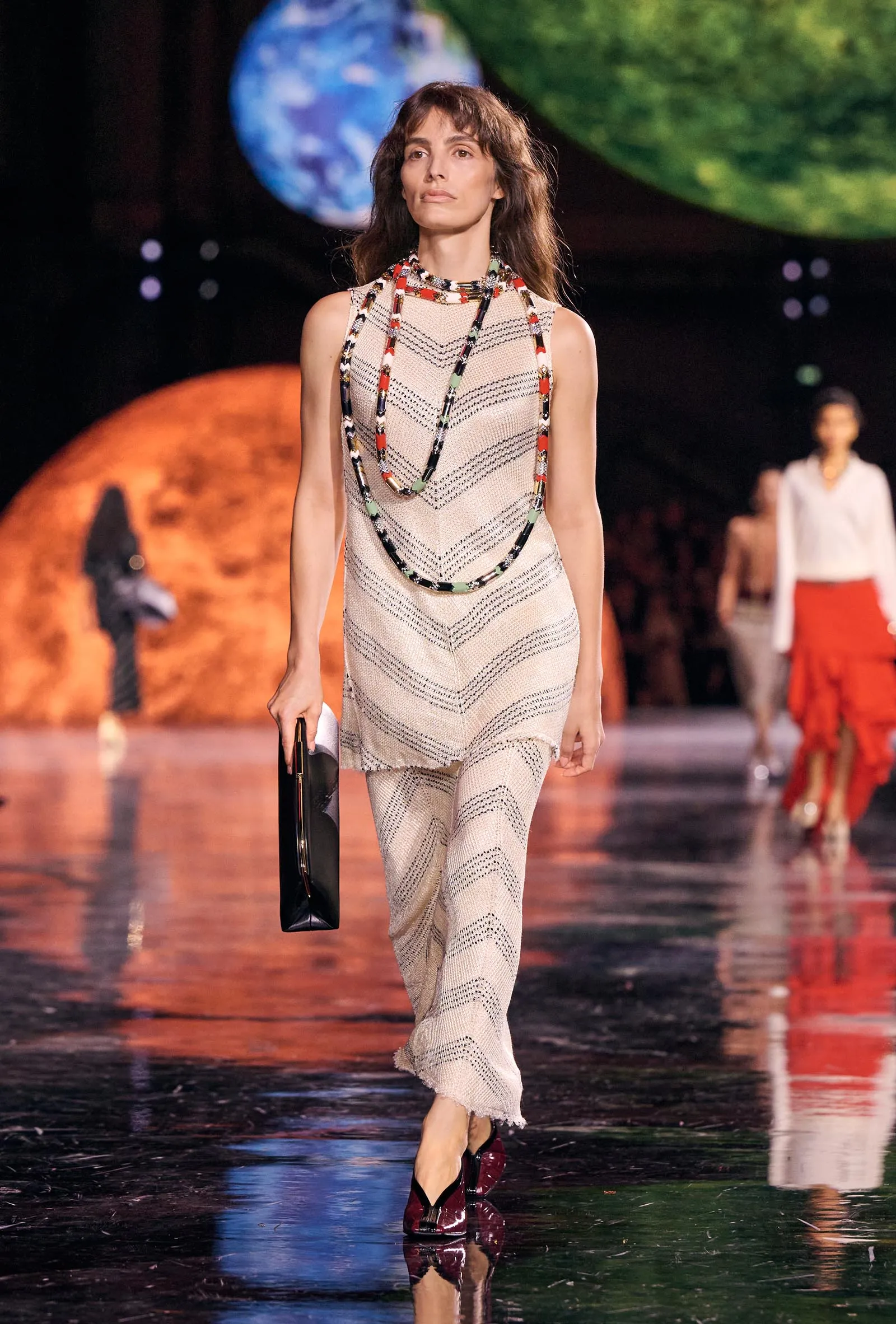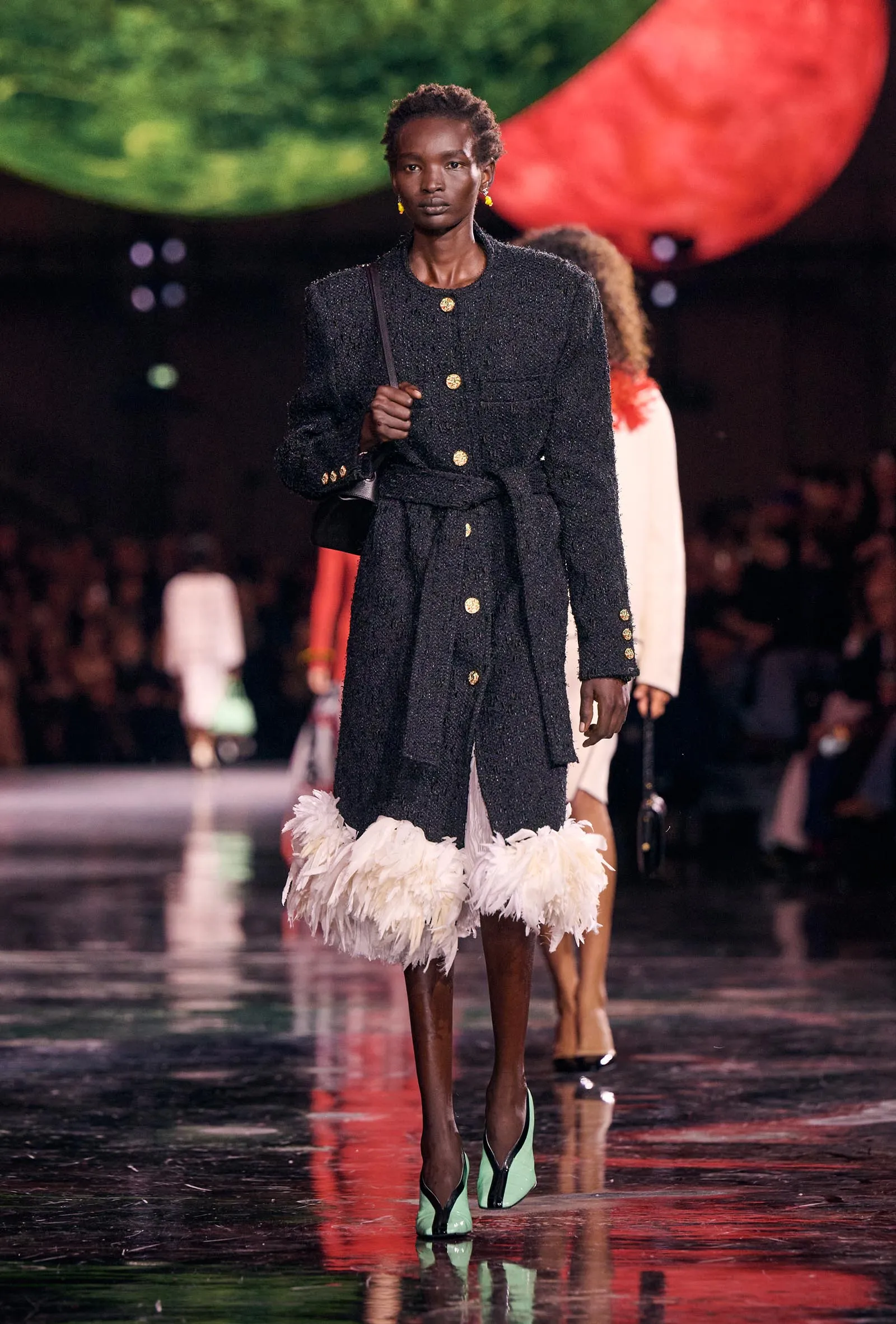 At long last, the moment was here. After 10 months of preparation, and 14 other spring 2026 debuts, it was finally time for Matthieu Blazy’s first Chanel collection. At just minutes past 8:00 pm, the scheduled start time, nearly everyone was in their seats, with a solar system worth of planetary orbs glowing above us. Home of countless iconic Karl Lagerfeld collections for Chanel, the Grand Palais is a massive stage and a visual metaphor for the giant leap that Blazy was about to make, as only the fourth designer to helm the house that Coco Chanel founded 115 years ago.
