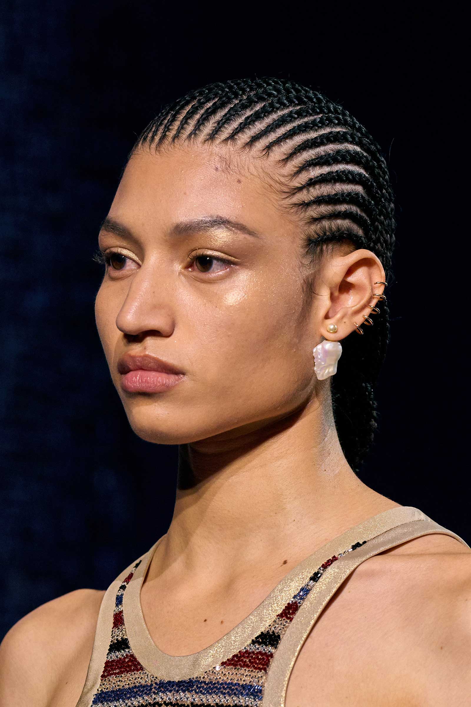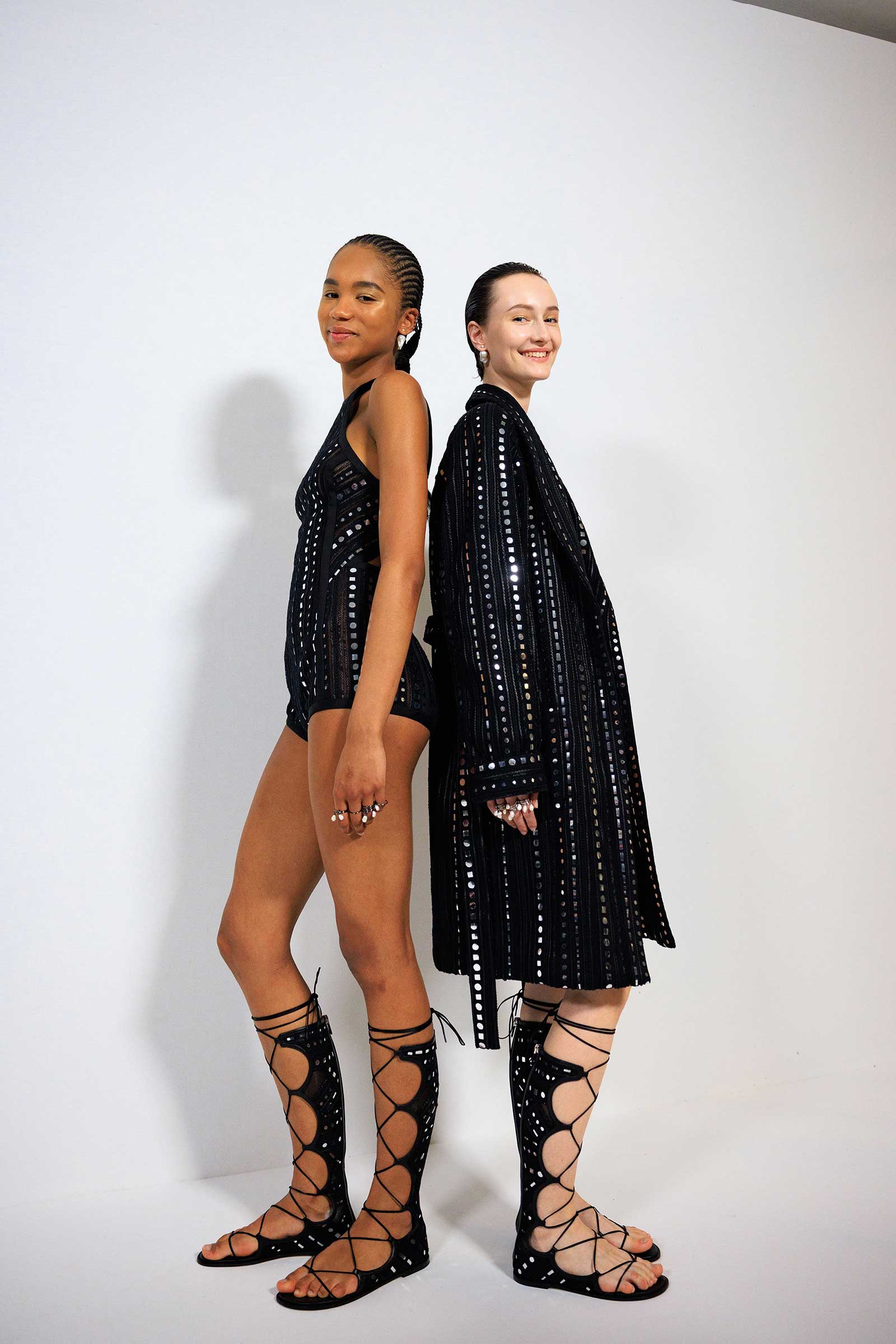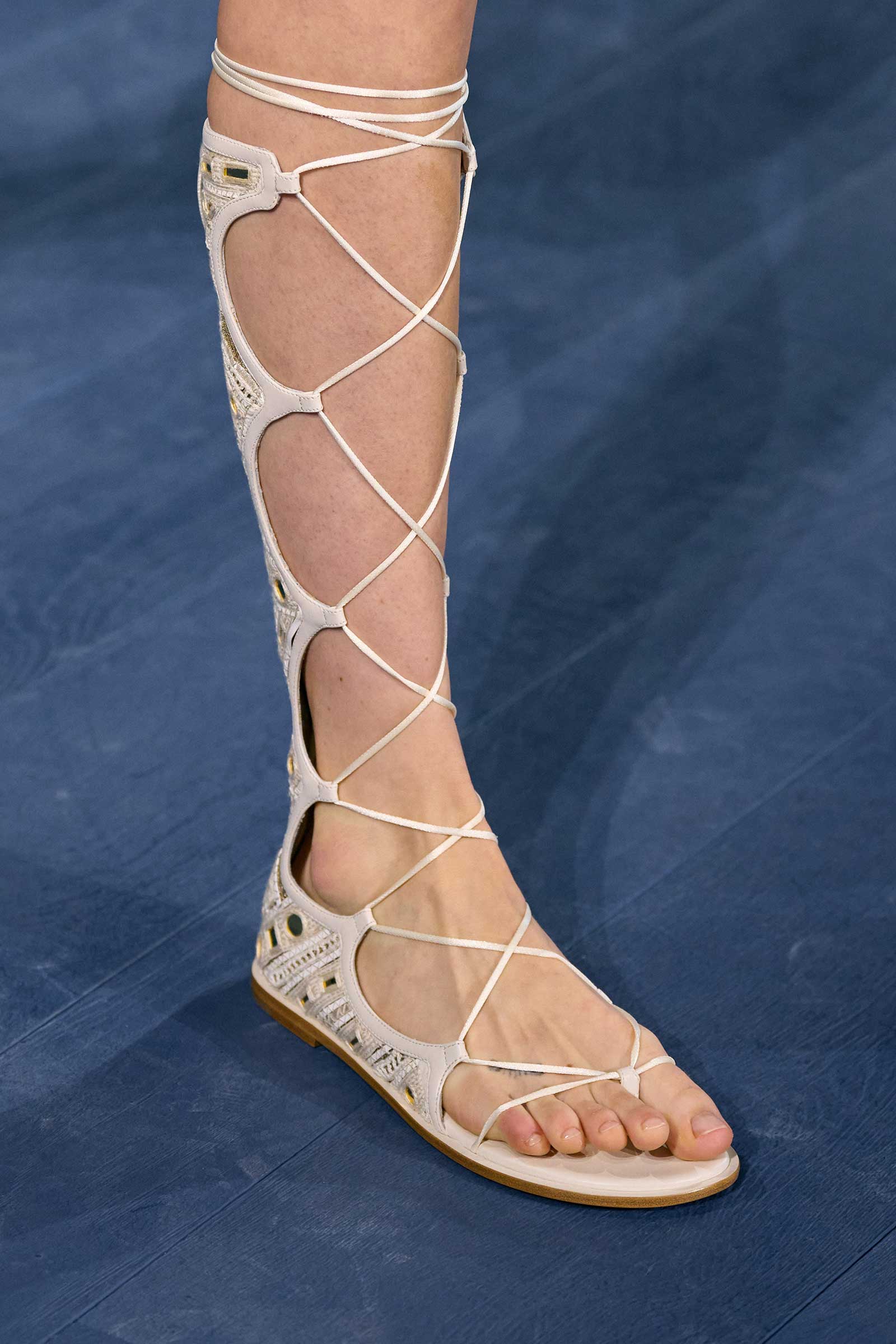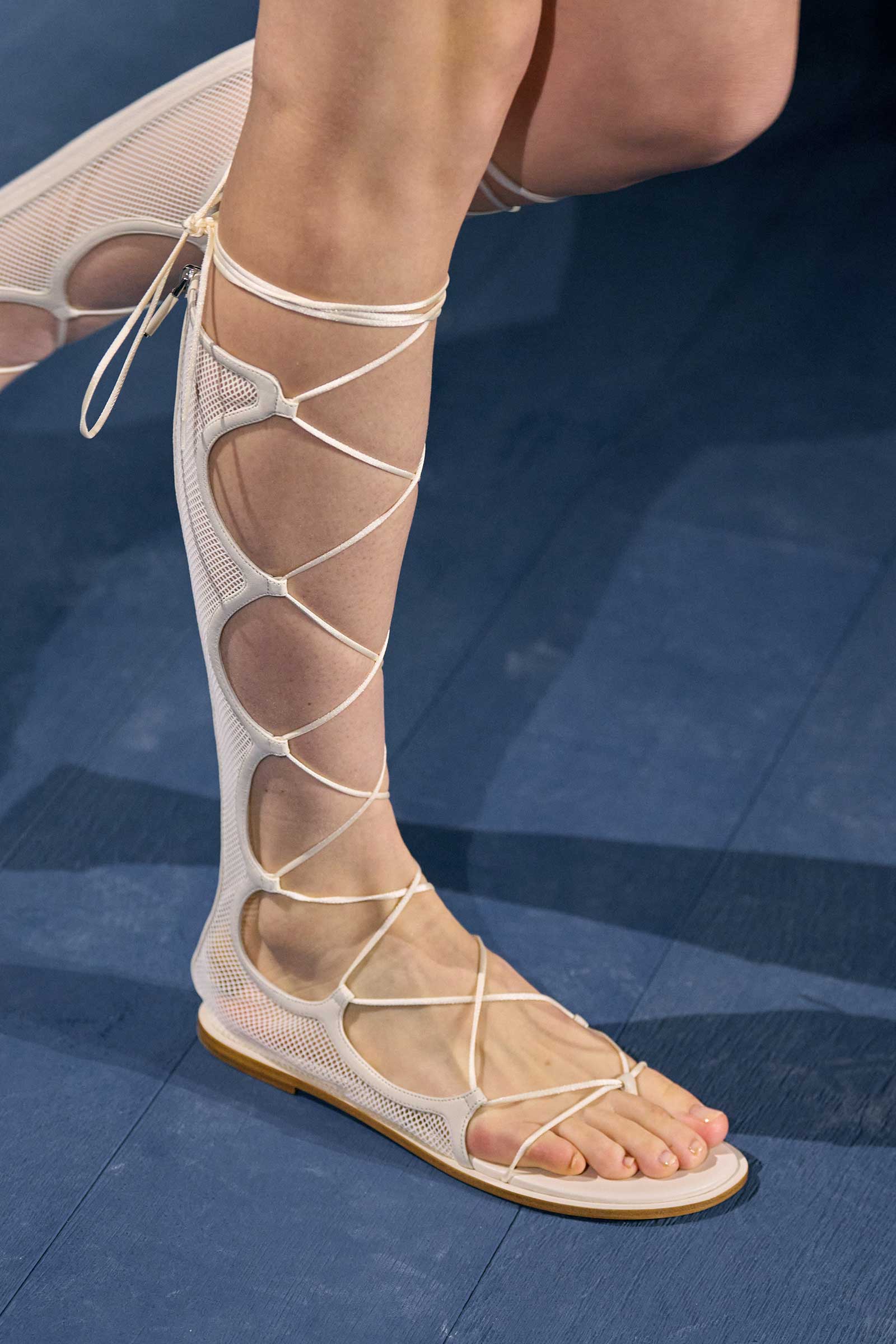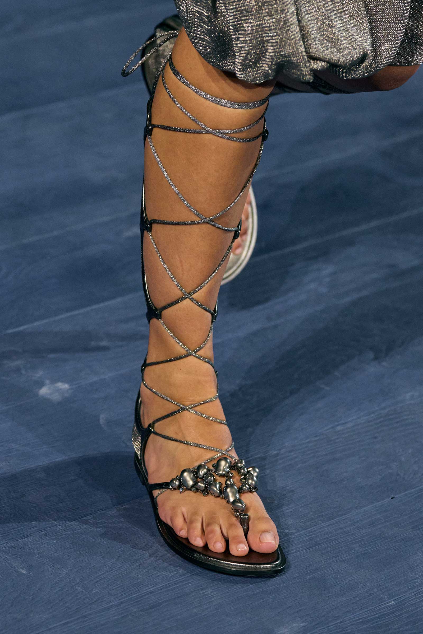 She returned to the peplos, a traditional draped garment Dior himself cut in chiffon; Chiuri pointed to a ravishing photograph of just such a dress from 1948. Hers were constructed in silk jersey or metal jersey, and instead of anchoring them to a corset, she used embroidered tank tops and bodysuits that utterly changed the attitude. Though they remained formal, they looked free, a quality enhanced by the models’ strappy skimmer sandals. Maybe you couldn’t wear them for the high jump—one of the track and field competitions added in 1928—but I bet you could throw the javelin, a sport that was only added to official competition later.