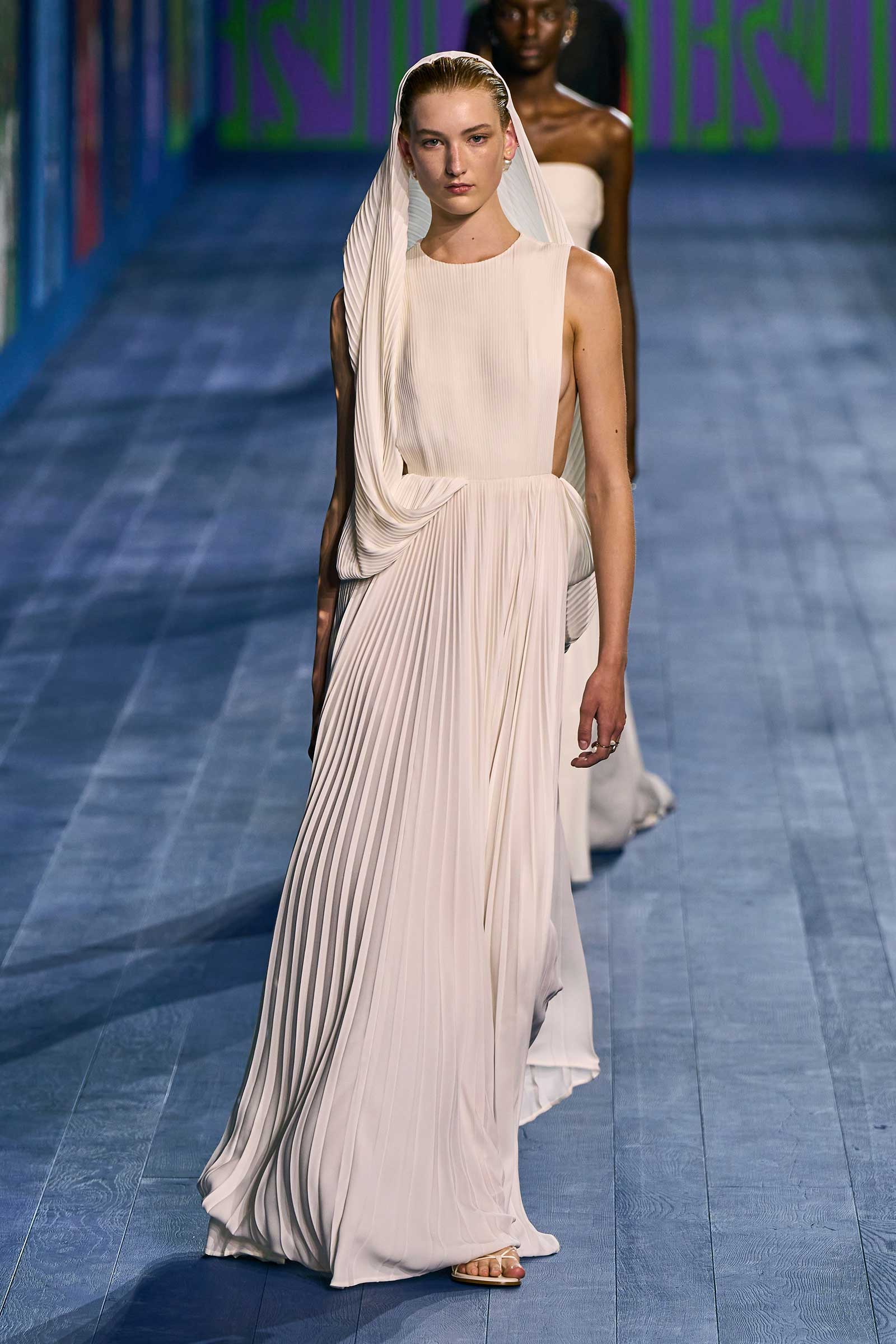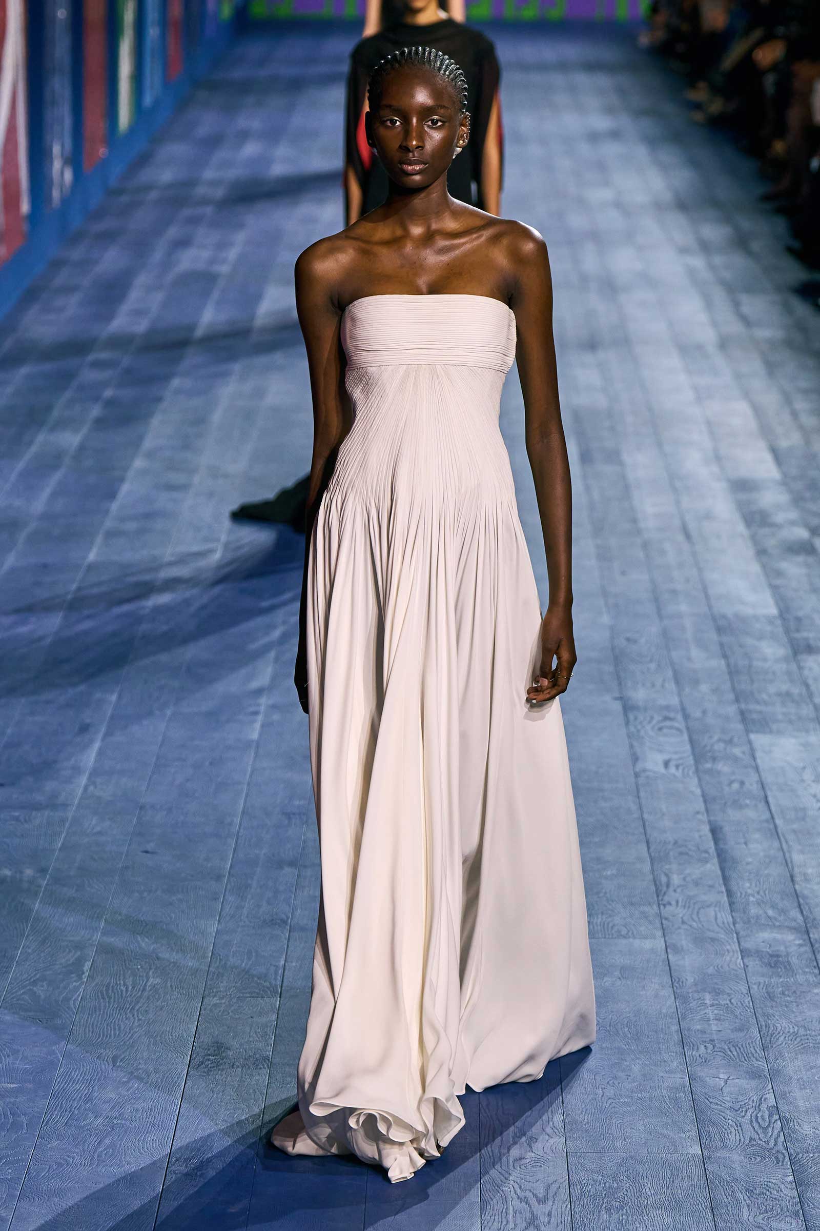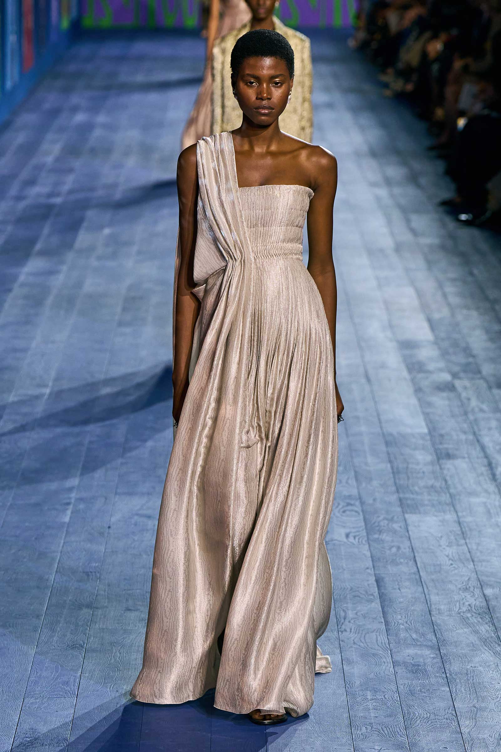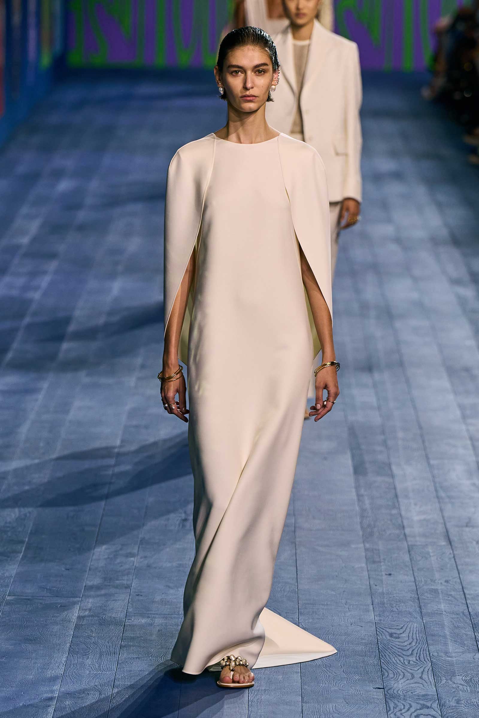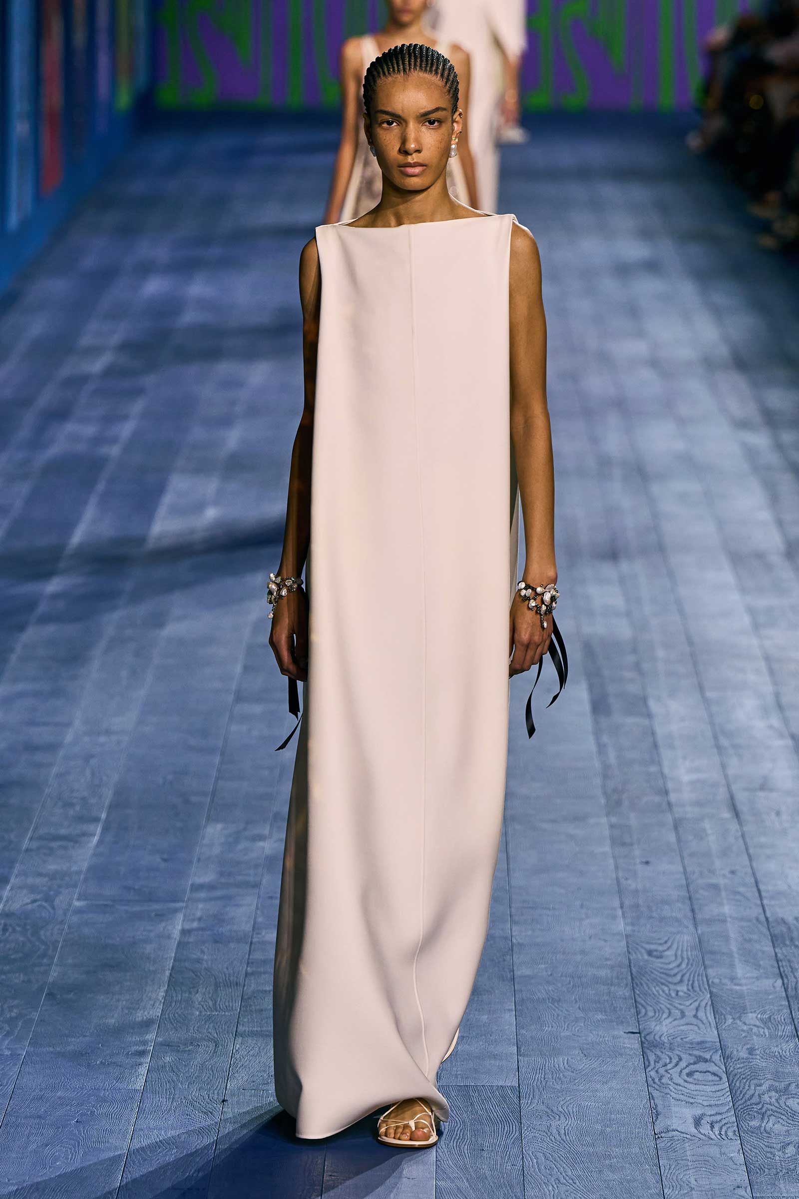 “Couture gives me the opportunity to move these references, our heritage, into new territory,” Chiuri said. “Wellness, comfort, and beauty—I think these three elements are very important in our work. But sometimes fashion is more obsessed with the silhouette or the construction than the material. I want to do clothes where the body stays well, and can move freely.”