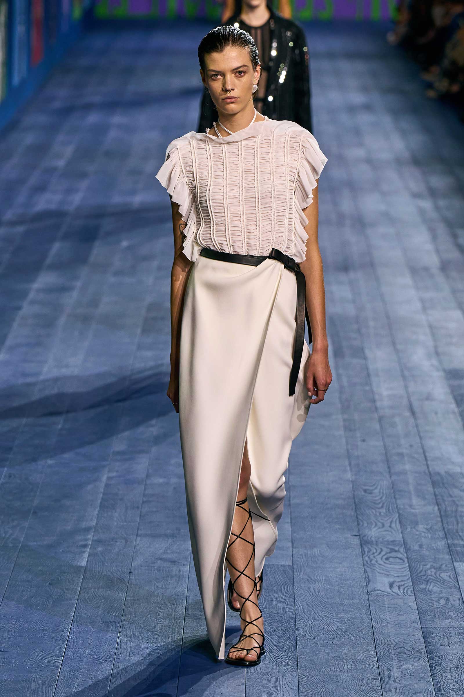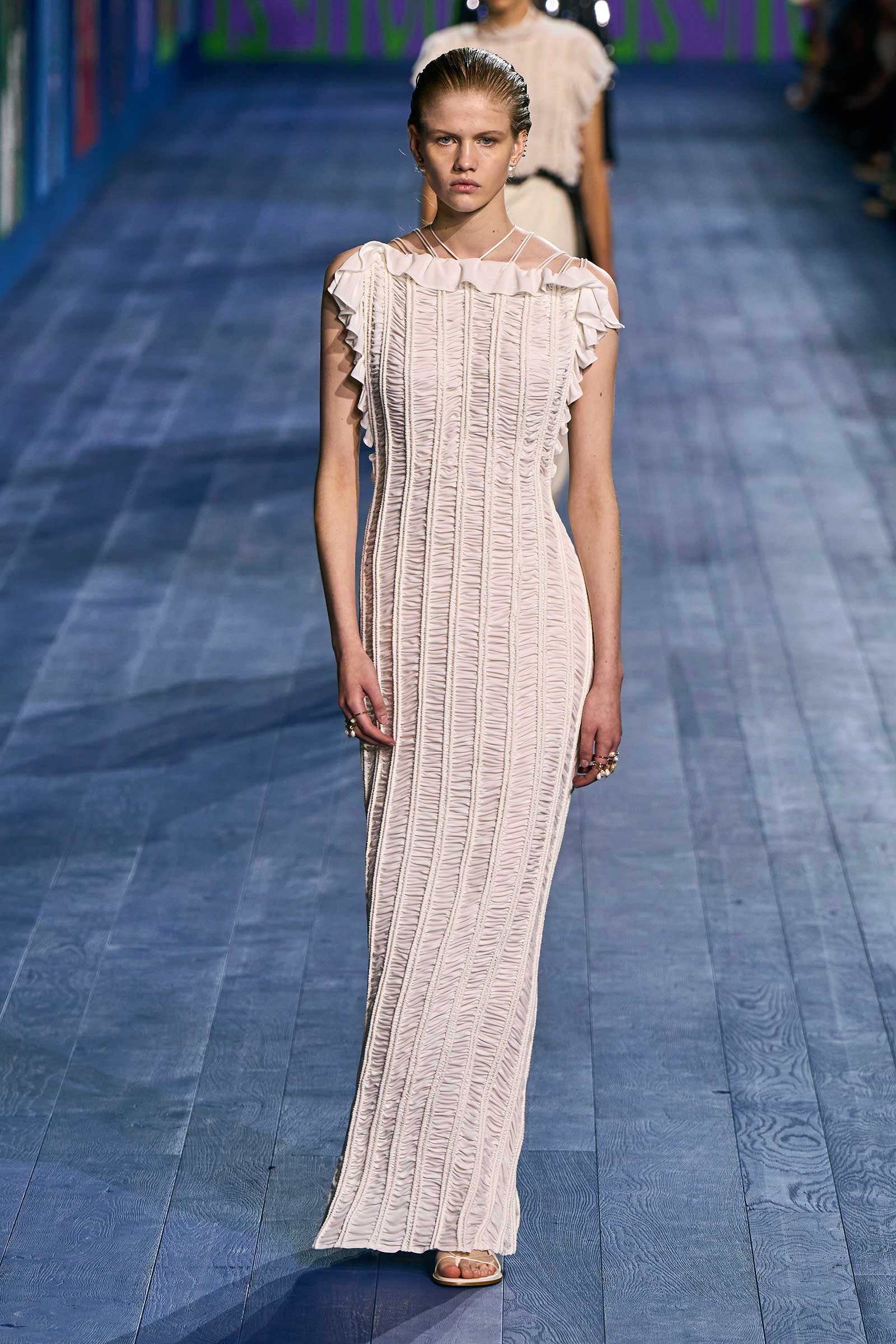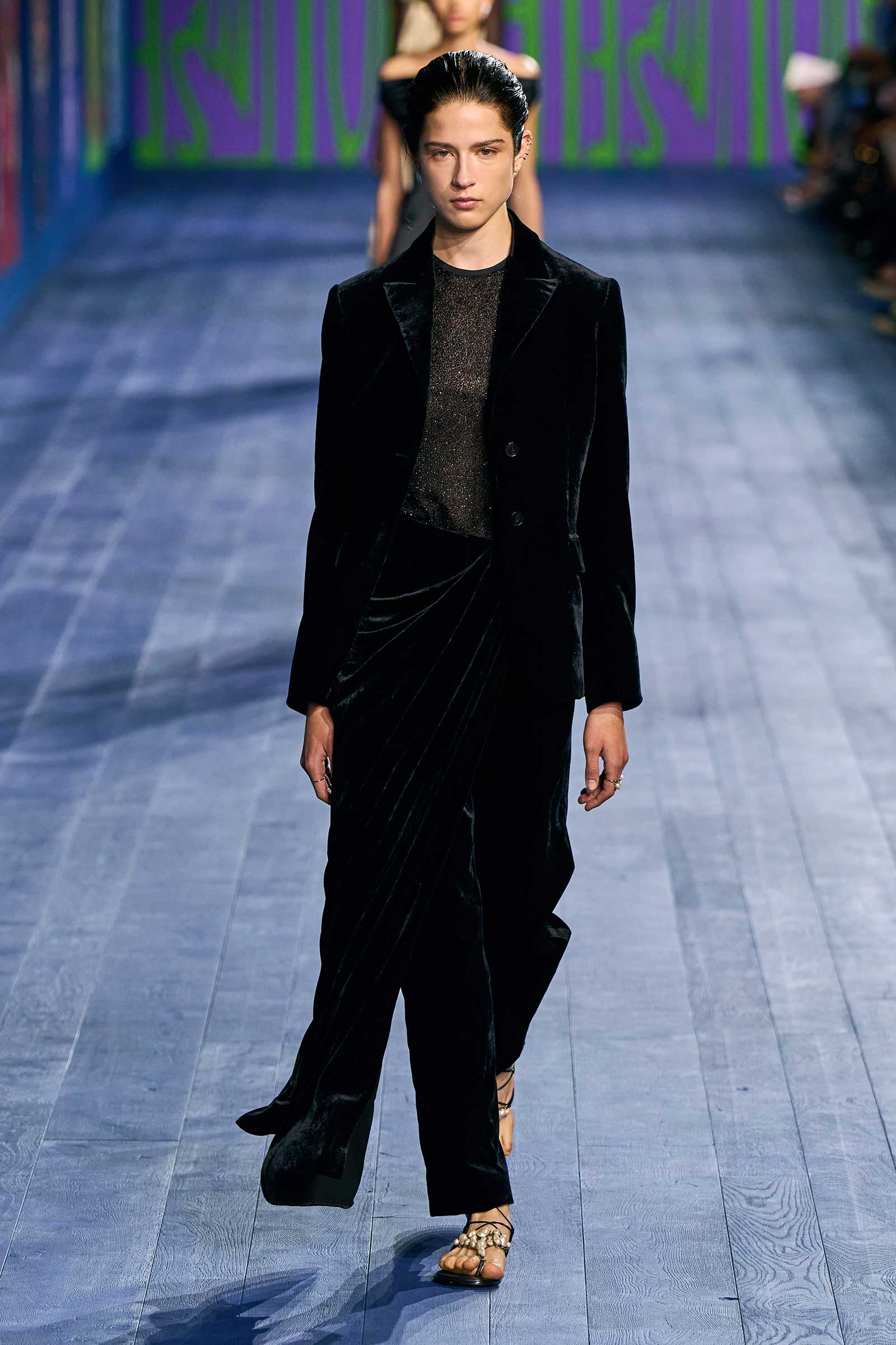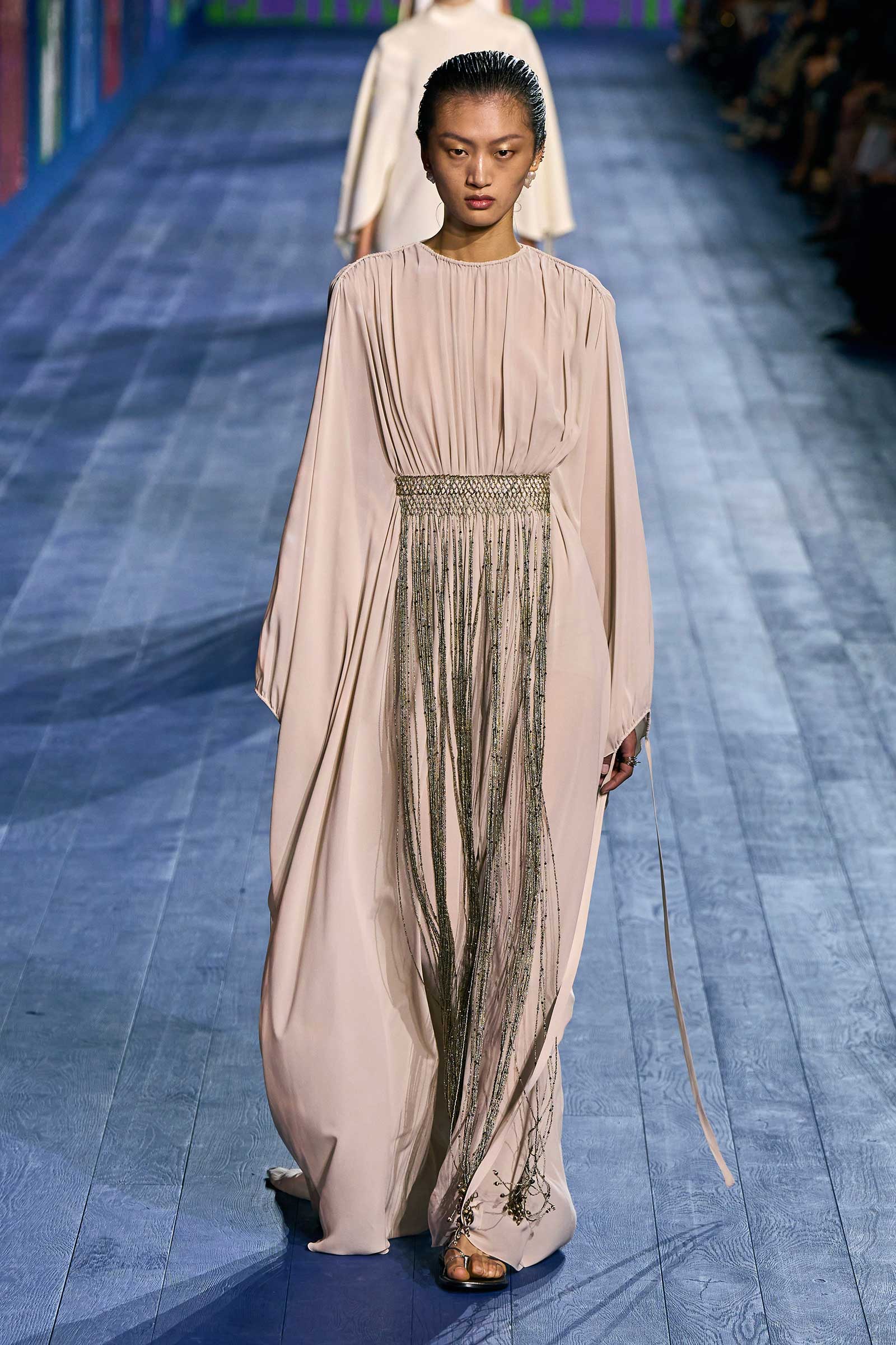 “Couture gives me the opportunity to move these references, our heritage, into new territory,” Chiuri said. “Wellness, comfort, and beauty—I think these three elements are very important in our work. But sometimes fashion is more obsessed with the silhouette or the construction than the material. I want to do clothes where the body stays well, and can move freely.”