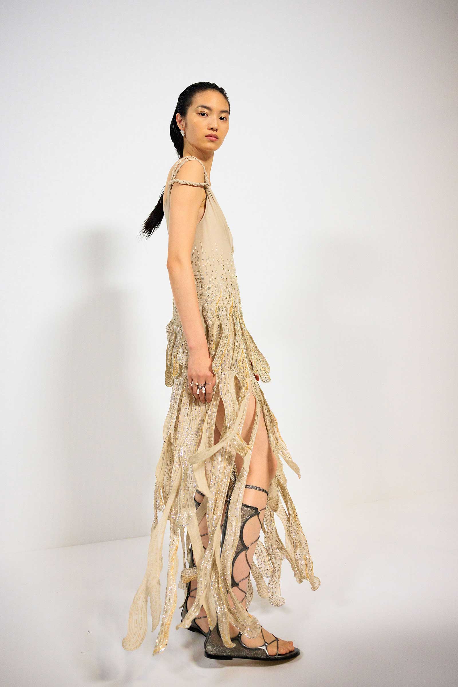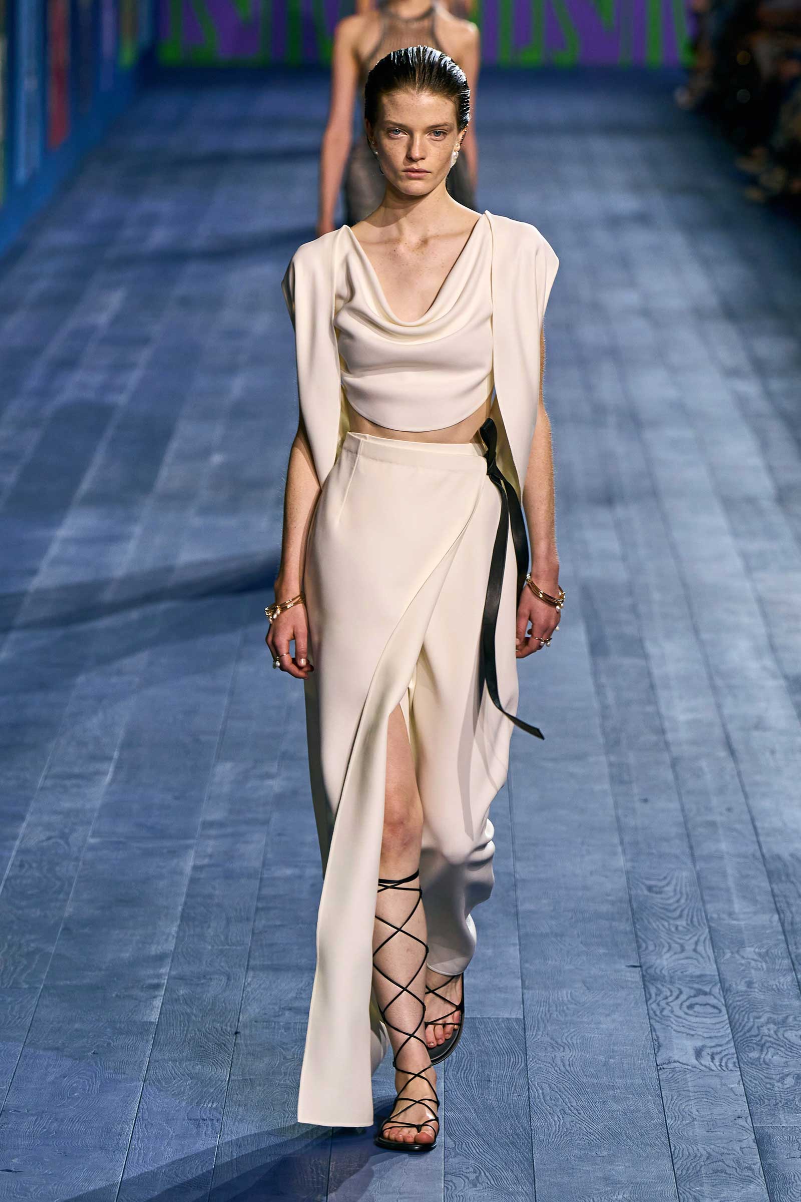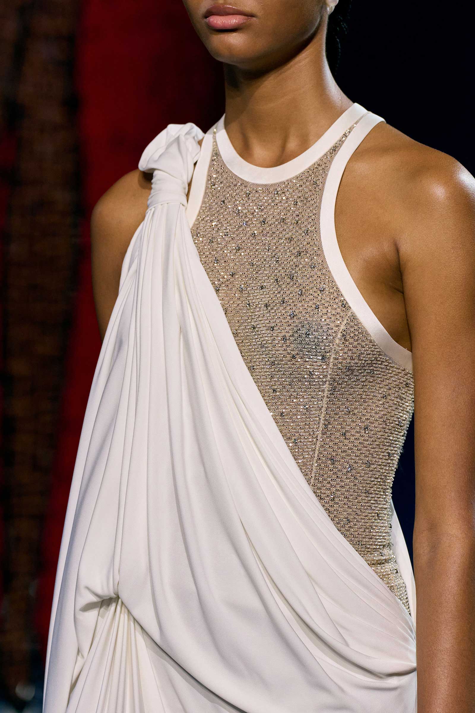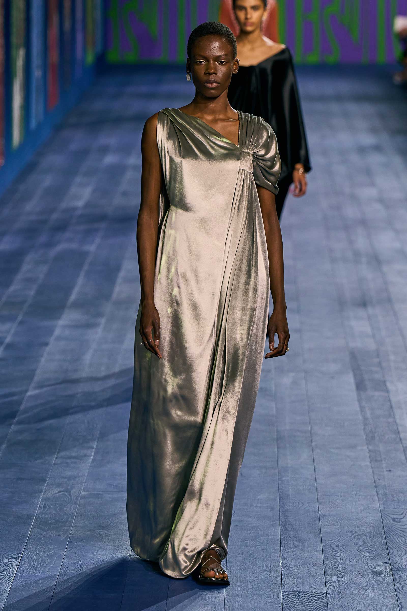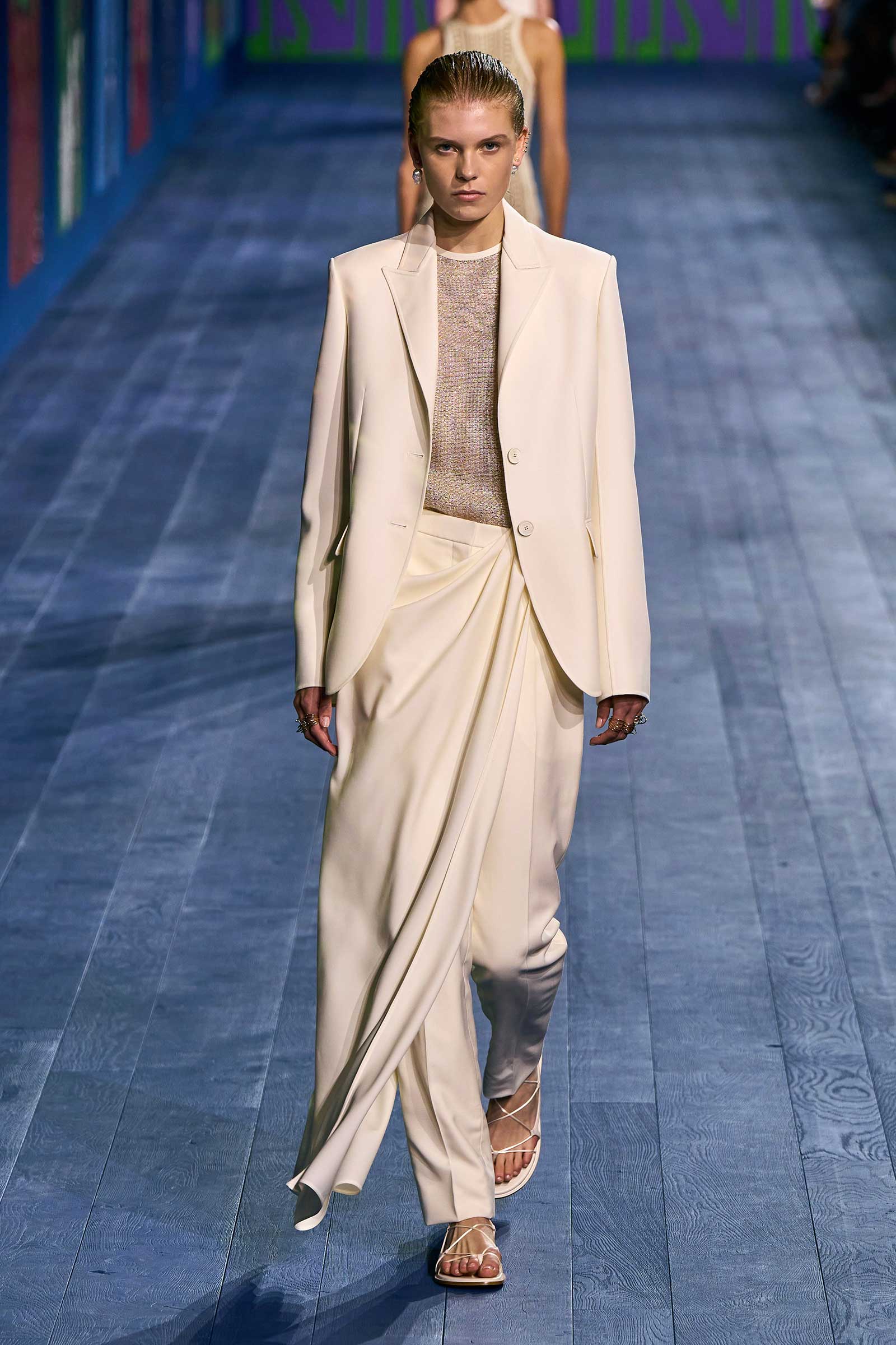 “Couture gives me the opportunity to move these references, our heritage, into new territory,” Chiuri said. “Wellness, comfort, and beauty—I think these three elements are very important in our work. But sometimes fashion is more obsessed with the silhouette or the construction than the material. I want to do clothes where the body stays well, and can move freely.”