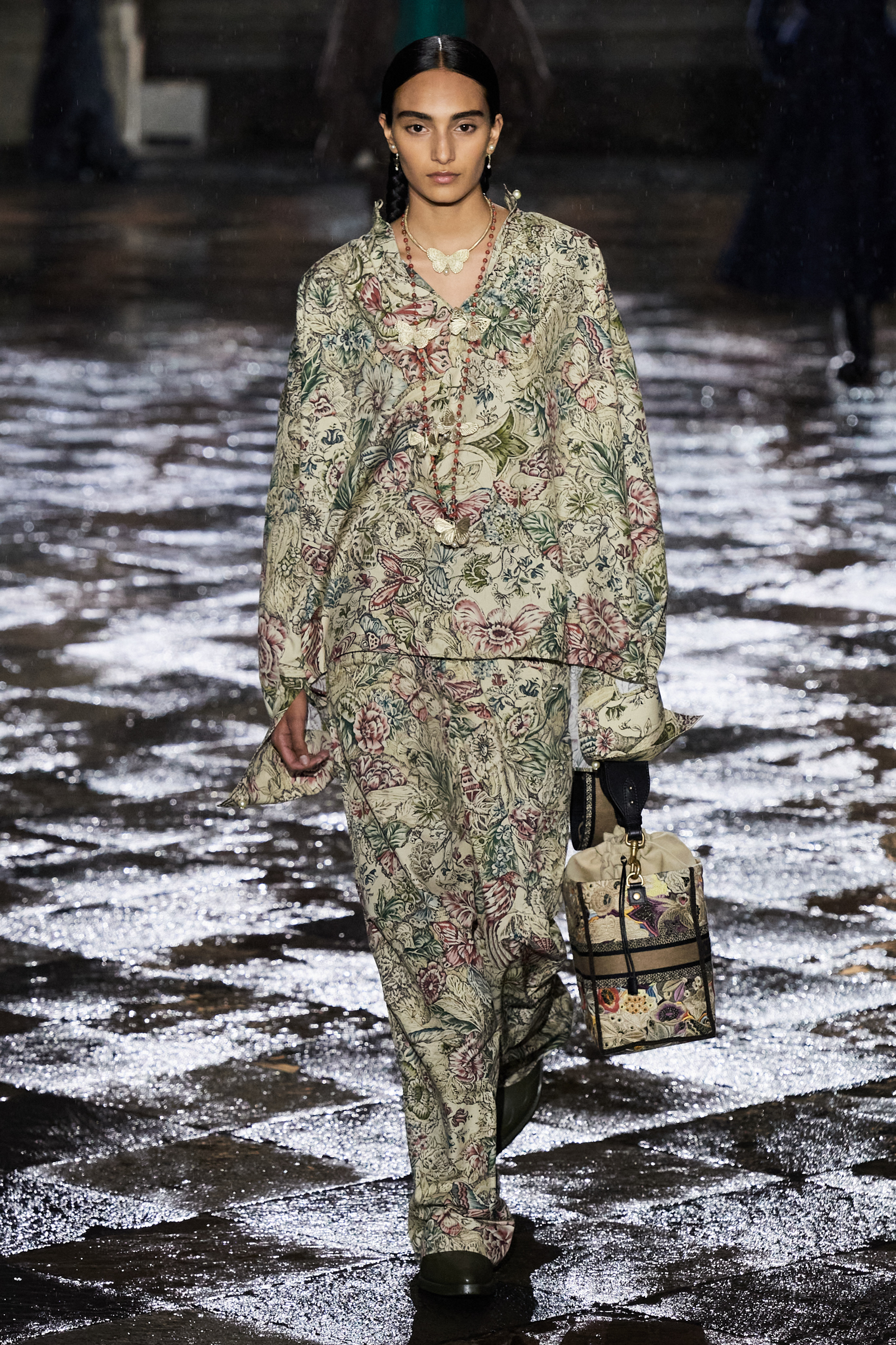 For Chiuri, Kahlo is “an icon.” She said: “I’ve always felt close to her and to what she did. She was an artist who was the first to use her work to express her thinking about her body and her wardrobe; her clothes were part of her project. But also,” she went on to say, “she was very connected to the natural world, to mother earth, to the idea of metamorphosis.” (The latter is as much responsible for the butterfly leitmotif as the print that Chiuri found in the archive that was used by Marc Bohan when he led Dior back in the day.) The recent exhibition at the Palais Galliera in Paris devoted to Kahlo, “Beyond Appearances,” gave further impetus, and Chiuri turned to the show’s curator, Circe Henestrosa, to help make the connections in Mexico that could tell the story of her collection. (Henestrosa’s brilliant show is now at the Kahlo museum Casa Azul, which was formerly the artist’s family home. I defy anyone not to be moved by the sight of Kahlo’s corrective corsetry, intended to deal with the aftermath of a horrific accident when she was young, and presented in a way that borders on the forensic.)