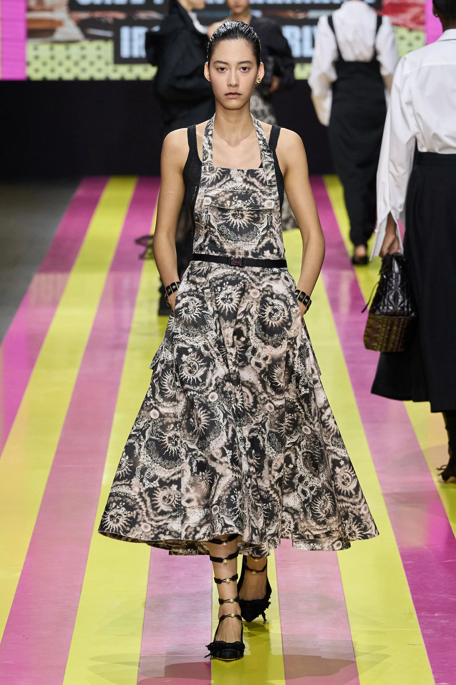 “But really, I want to break this thing that collections have to be about one reference,” said Chiuri with a sigh during in a preview. In fact, her subject is a complex response to what’s going on today, and how fashion can adequately meet it. She said she recognized some parallels between Bellantoni’s subversion of the alienating language of advertising and her own desire to make Dior’s high fashion relatable. “I think that in fashion we also we have this risk—that we give references that people think they can’t attain personally. So I really want to create a wardrobe where there is just a little bit of evidence that you can personalize your style.”