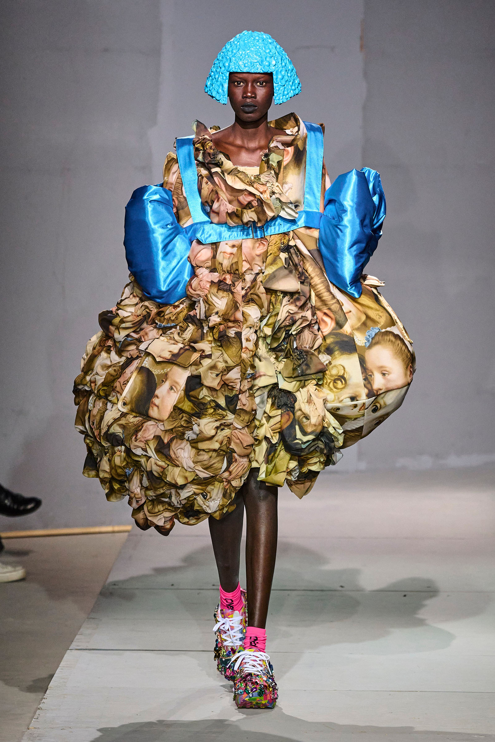 “To break free of the gloomy present, I hope to present a bright and light future.” Much like Rick Owens, who’s also been overcome by a feeling of doom resistance, Rei Kawakubo’s counterintuitive response to the state of the world in 2023 was to roll out 18 huge balls of fun.