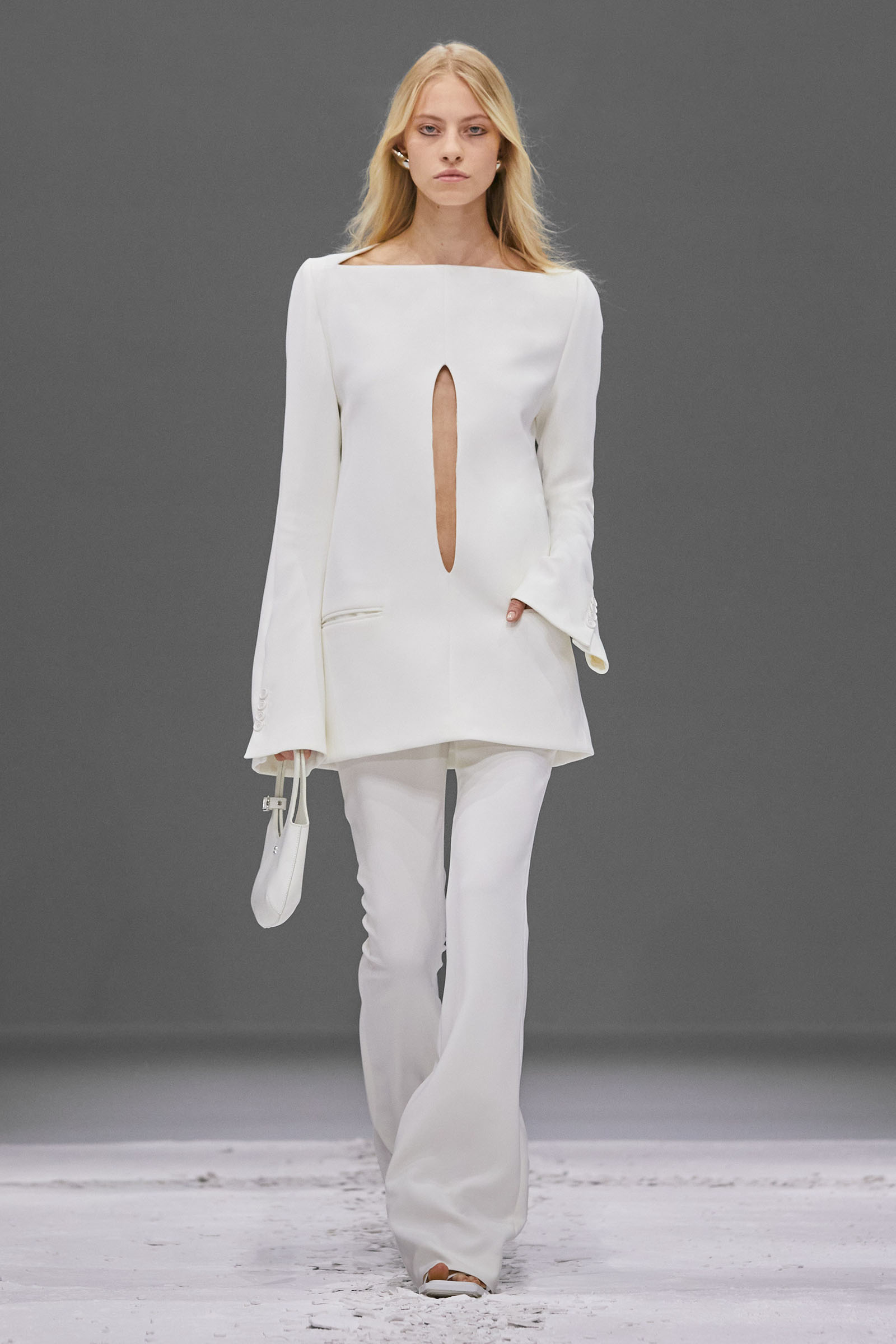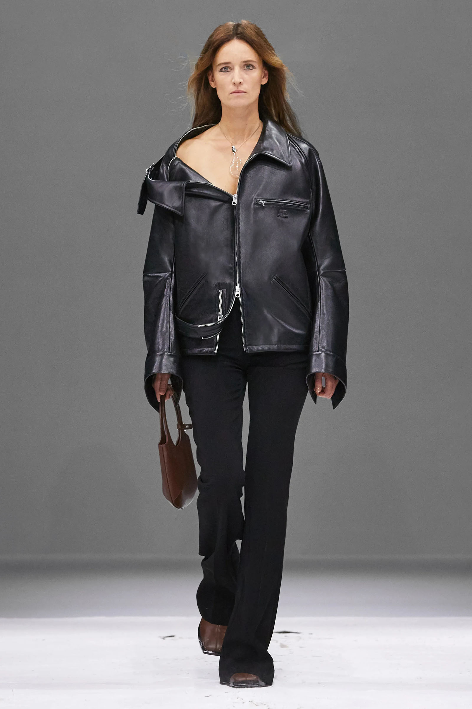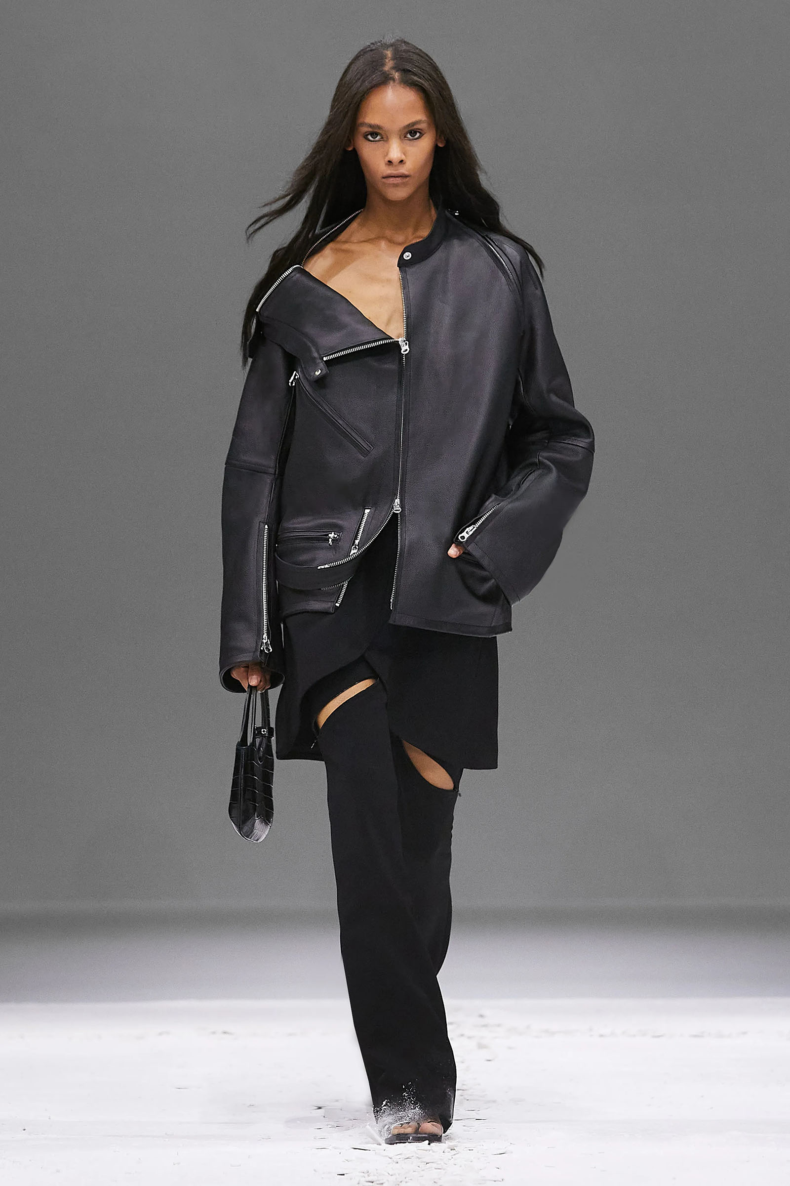 He claimed the construction of these short, casually torqued looks was “really easy to do.” Well, maybe if you’re that fluent as a designer, it might be. But Di Felice has been practicing, developing his ideas for Courrèges for three years now, vibing off the founder’s modernist space-age ’60s and ’70s archive and melding in his own rave-biker memories and sensibilities to huge success.