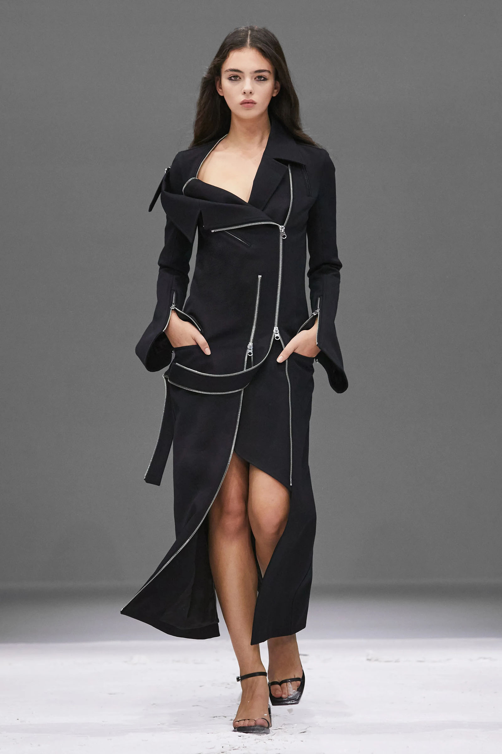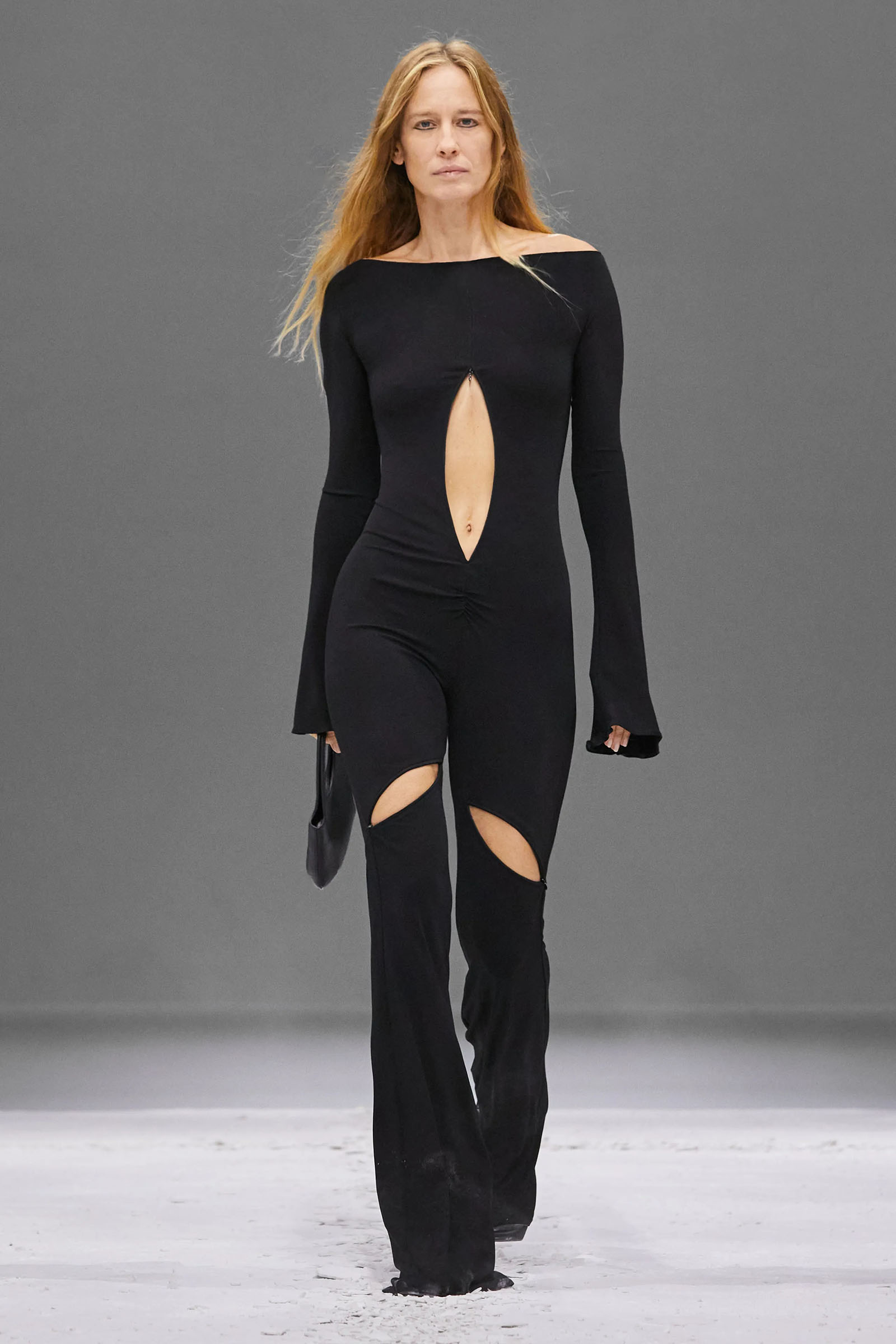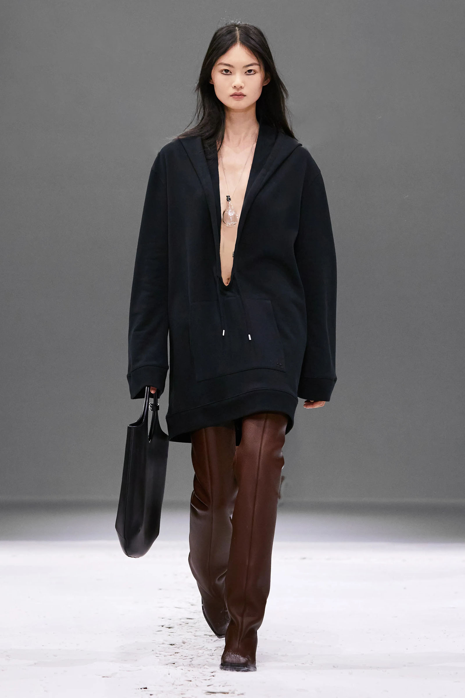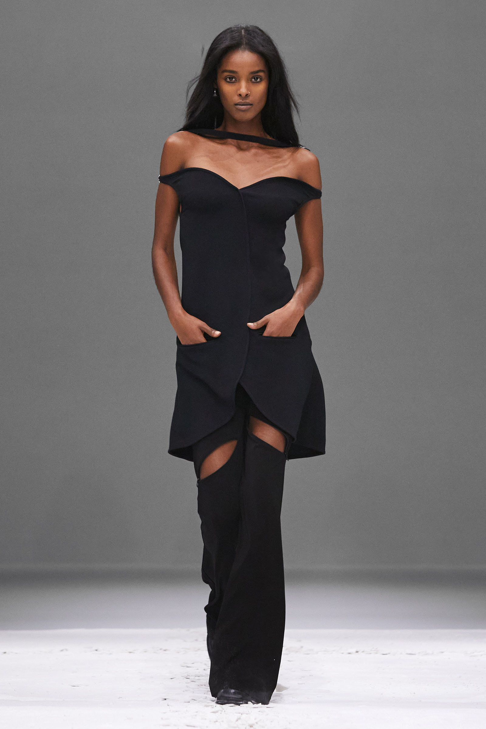 He claimed the construction of these short, casually torqued looks was “really easy to do.” Well, maybe if you’re that fluent as a designer, it might be. But Di Felice has been practicing, developing his ideas for Courrèges for three years now, vibing off the founder’s modernist space-age ’60s and ’70s archive and melding in his own rave-biker memories and sensibilities to huge success.