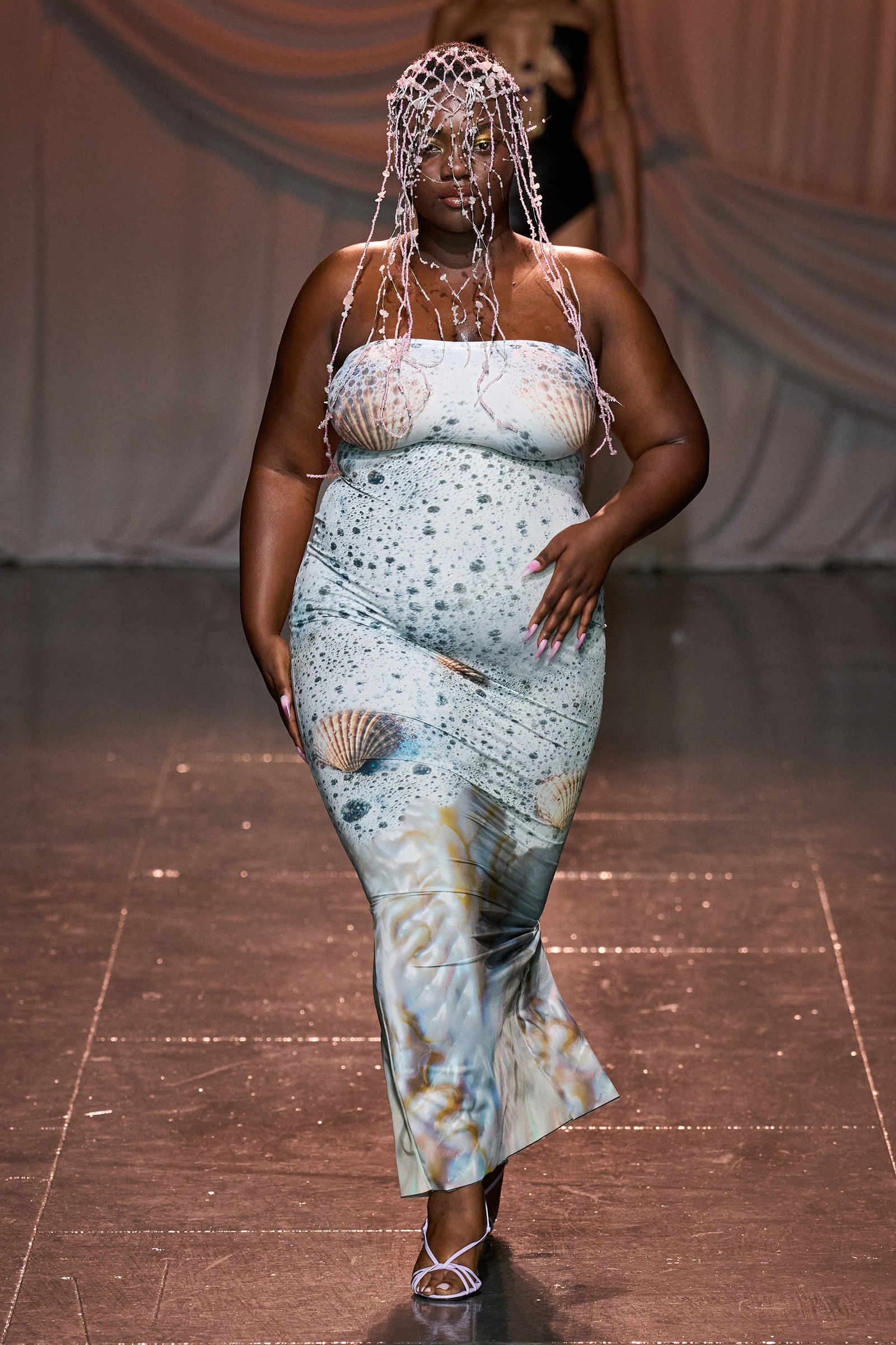 The show, held at the Old Selfridges Hotel, began with a performance depicting the birth of Aphrodite, emerging from the ocean. A model, initially semi-nude, was surrounded by dancers in white halter-neck dresses symbolizing the sea’s waves, with Petsa herself among them. As the dance unfolded, the Aphrodite figure was then gracefully propelled down the runway to embark on a metaphorical journey of life. Petsa elaborated, “It represents the way one’s body becomes increasingly sexualized as you grow up, thrusting you out into the world to experience and discover self-love.”