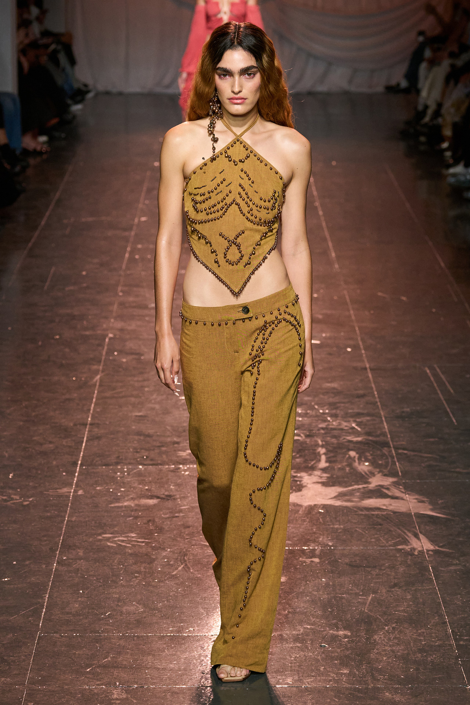 Dimitra Petsa’s spring collection explored the notion of love. But it wasn’t anything to do with the unconditional type from parents—it was about the intricate journey of self-love and coping with the complexities of adult relationships, including love’s inevitable losses and the healing that follows. She looked to her heritage for inspiration from ancient Greek mythology—in particular the goddess Aphrodite. “In culture and films she’s depicted as a hyper-sexualized deity, but if you read deeper into her experiences, they are full of hardships and emotions in a very human way,” the designer said at a preview.