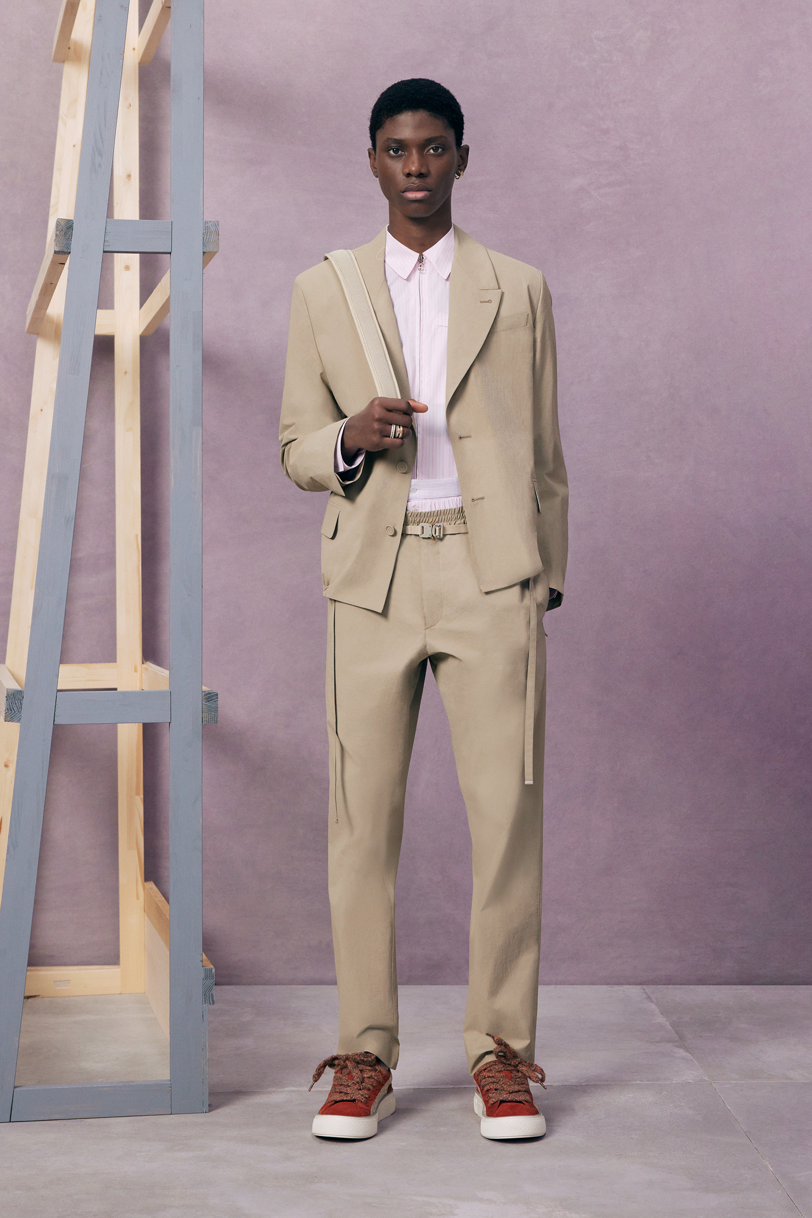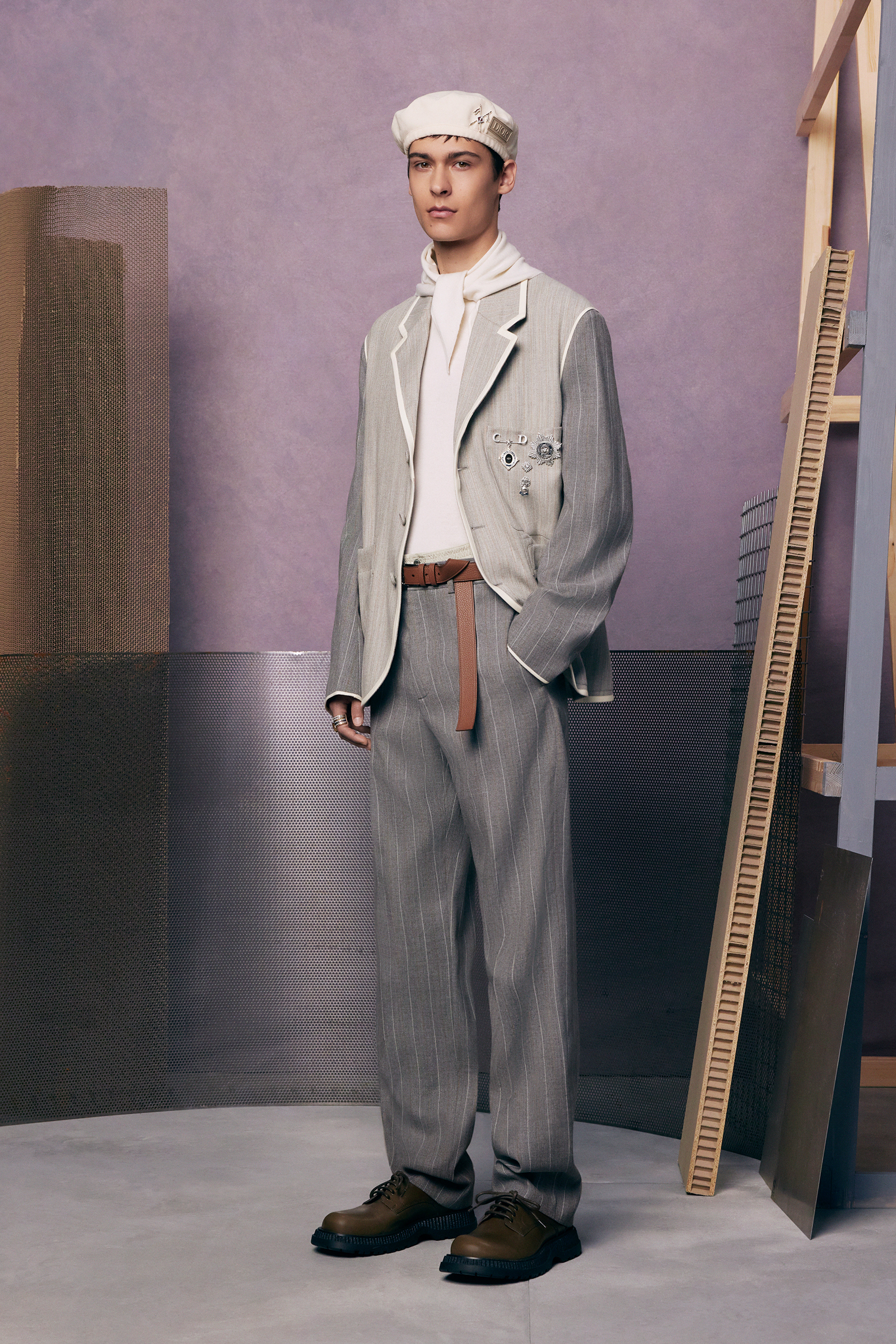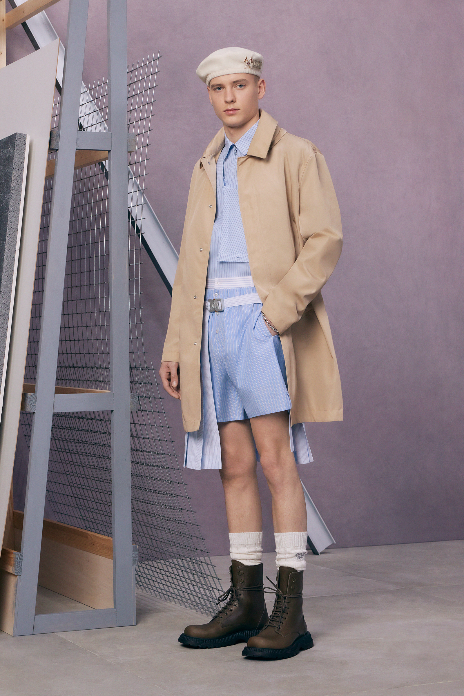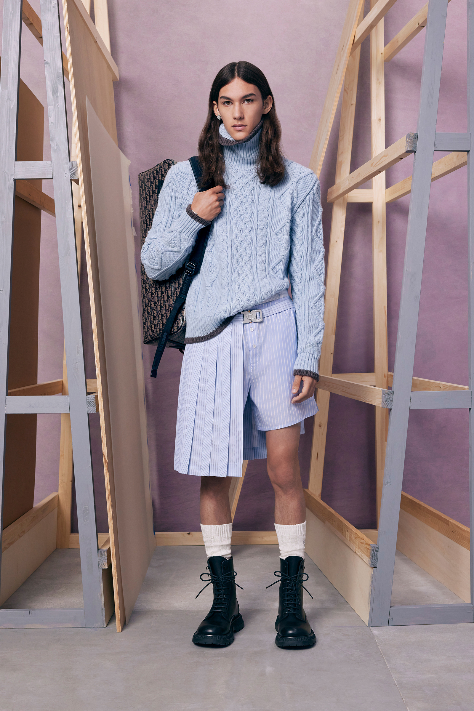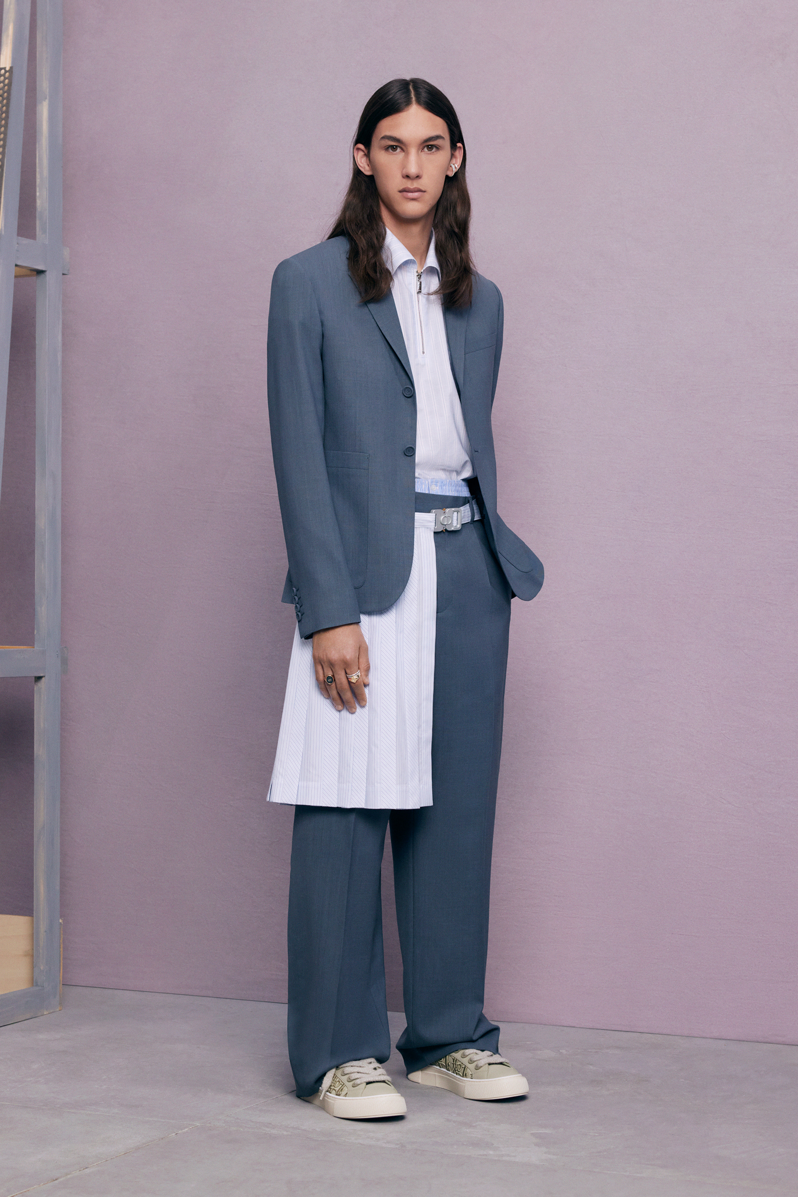 “Between stages. As if they’ve come off one set and are about to step onto another.” There’s a hint of a double-meaning in the “backstage” set that Kim Jones built for his pre-spring lookbook shoot. For one thing: a pre-anything collection is a “between-stages” season that has to multitask in covering a broad range of clothes and accessories. And for another: Jones revealed (or, rather, teased) that he’s also preparing to move into another stage in his career as Artistic Director of Dior Men. “The next show is my fifth anniversary. So I’m going to do something a bit different to mark the time.”