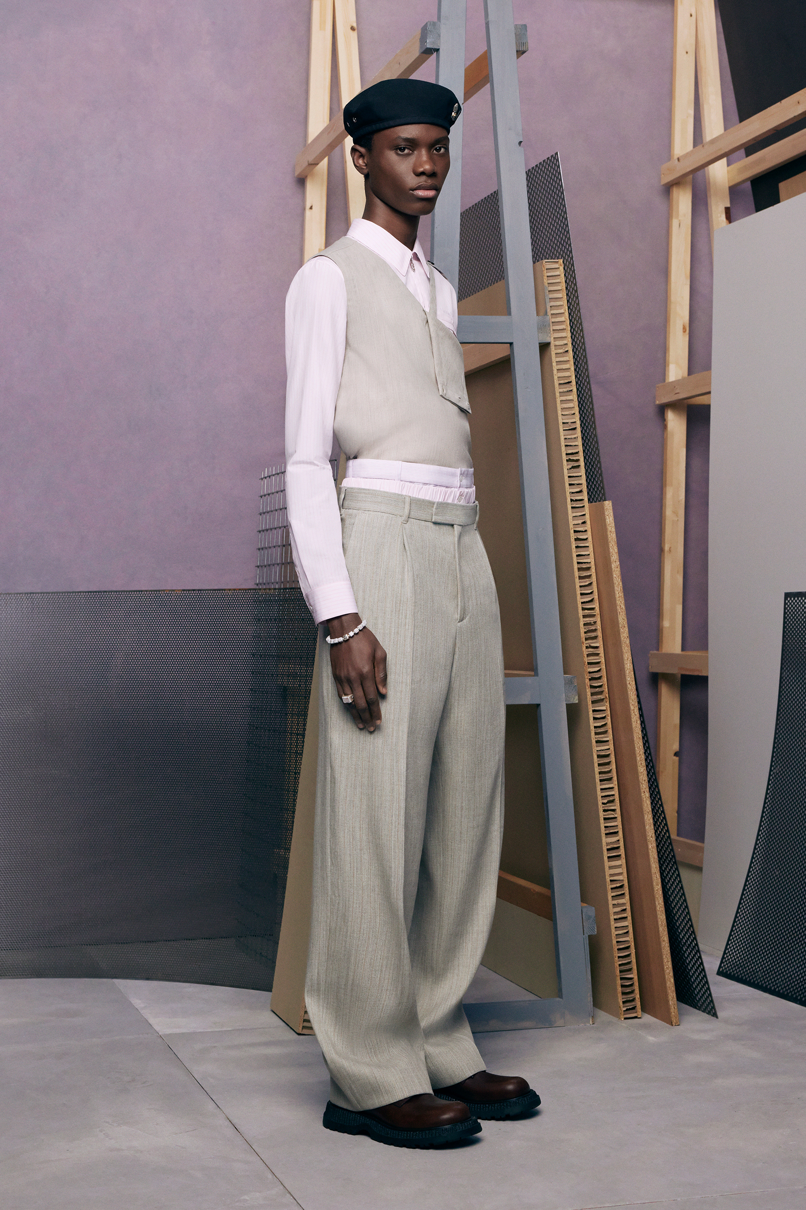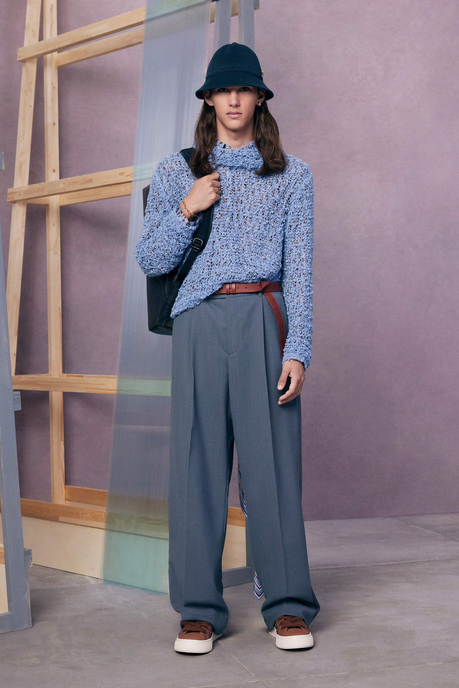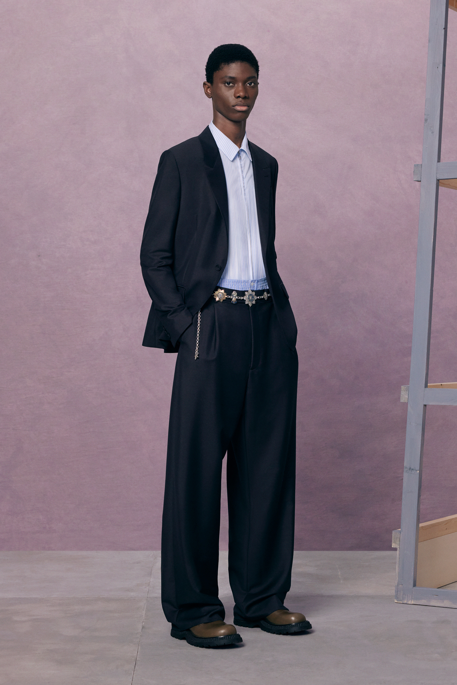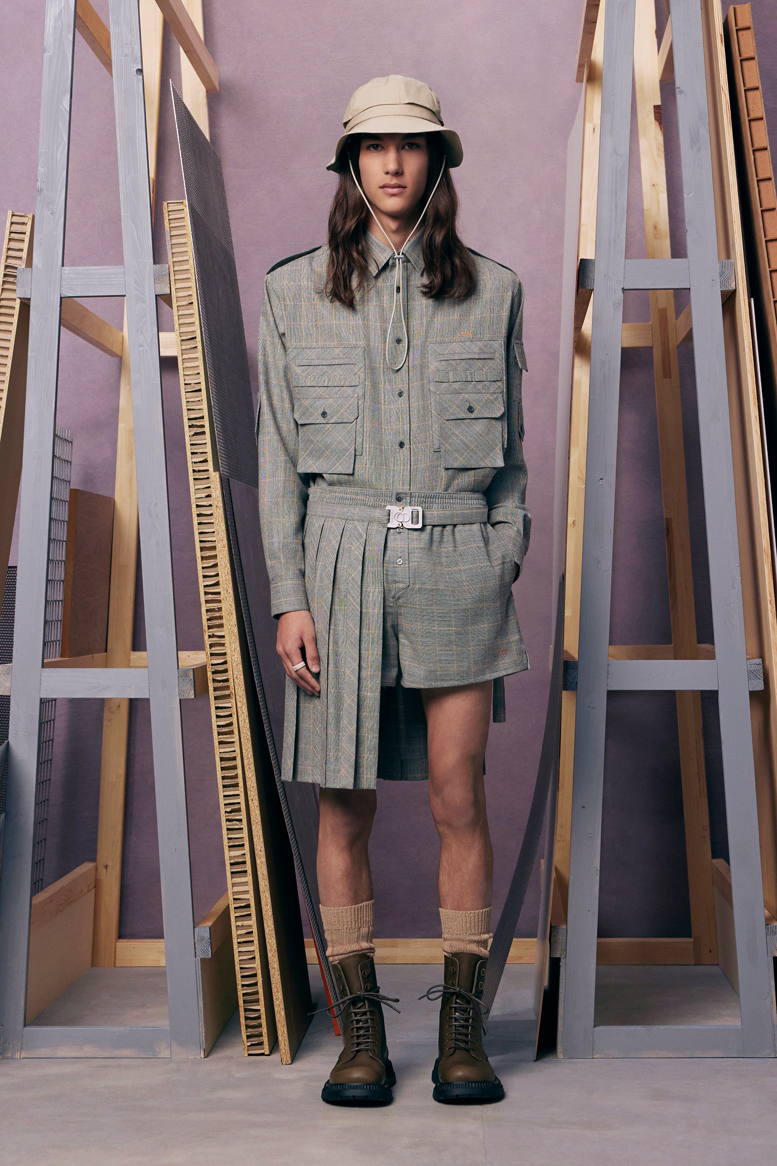 “Between stages. As if they’ve come off one set and are about to step onto another.” There’s a hint of a double-meaning in the “backstage” set that Kim Jones built for his pre-spring lookbook shoot. For one thing: a pre-anything collection is a “between-stages” season that has to multitask in covering a broad range of clothes and accessories. And for another: Jones revealed (or, rather, teased) that he’s also preparing to move into another stage in his career as Artistic Director of Dior Men. “The next show is my fifth anniversary. So I’m going to do something a bit different to mark the time.”