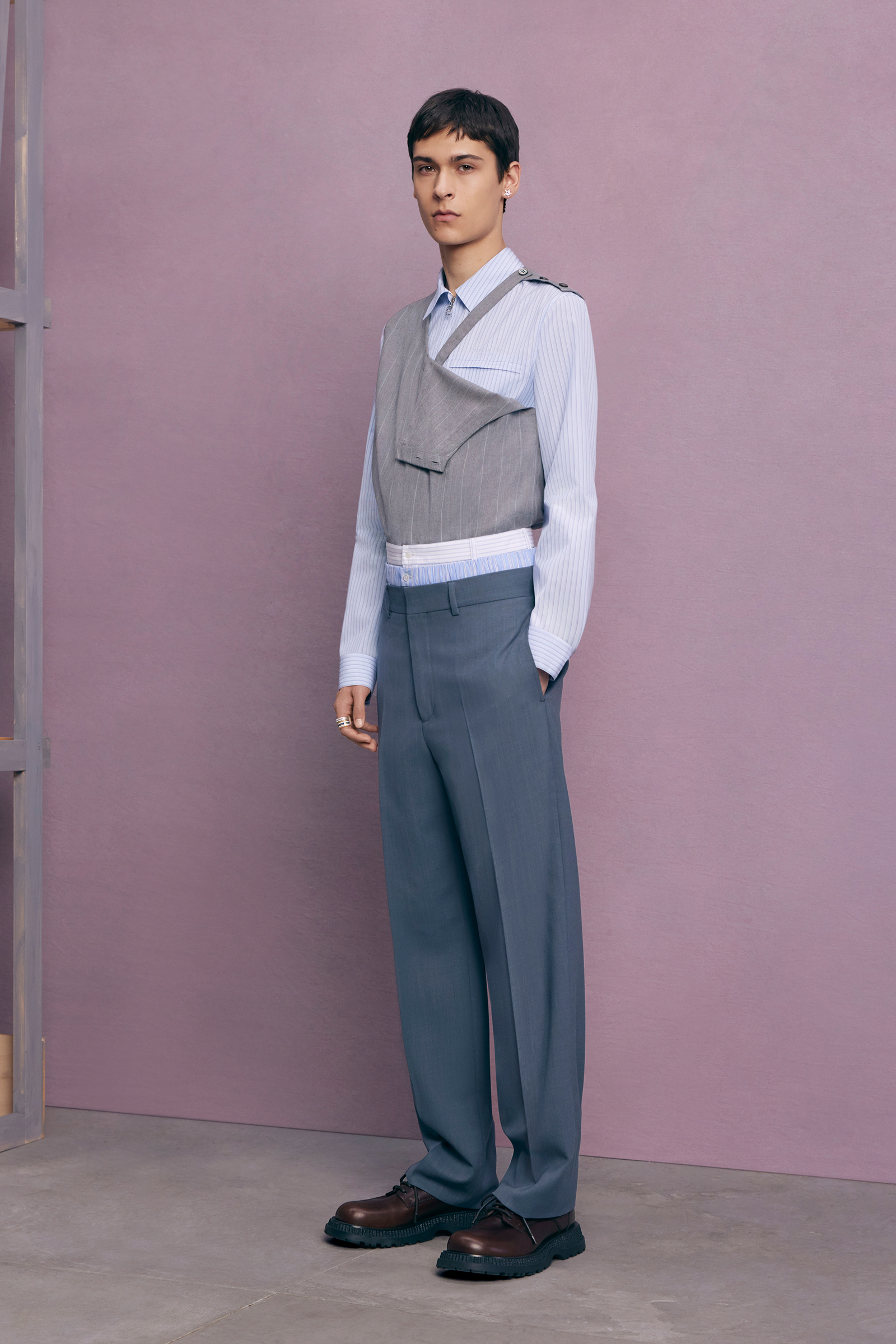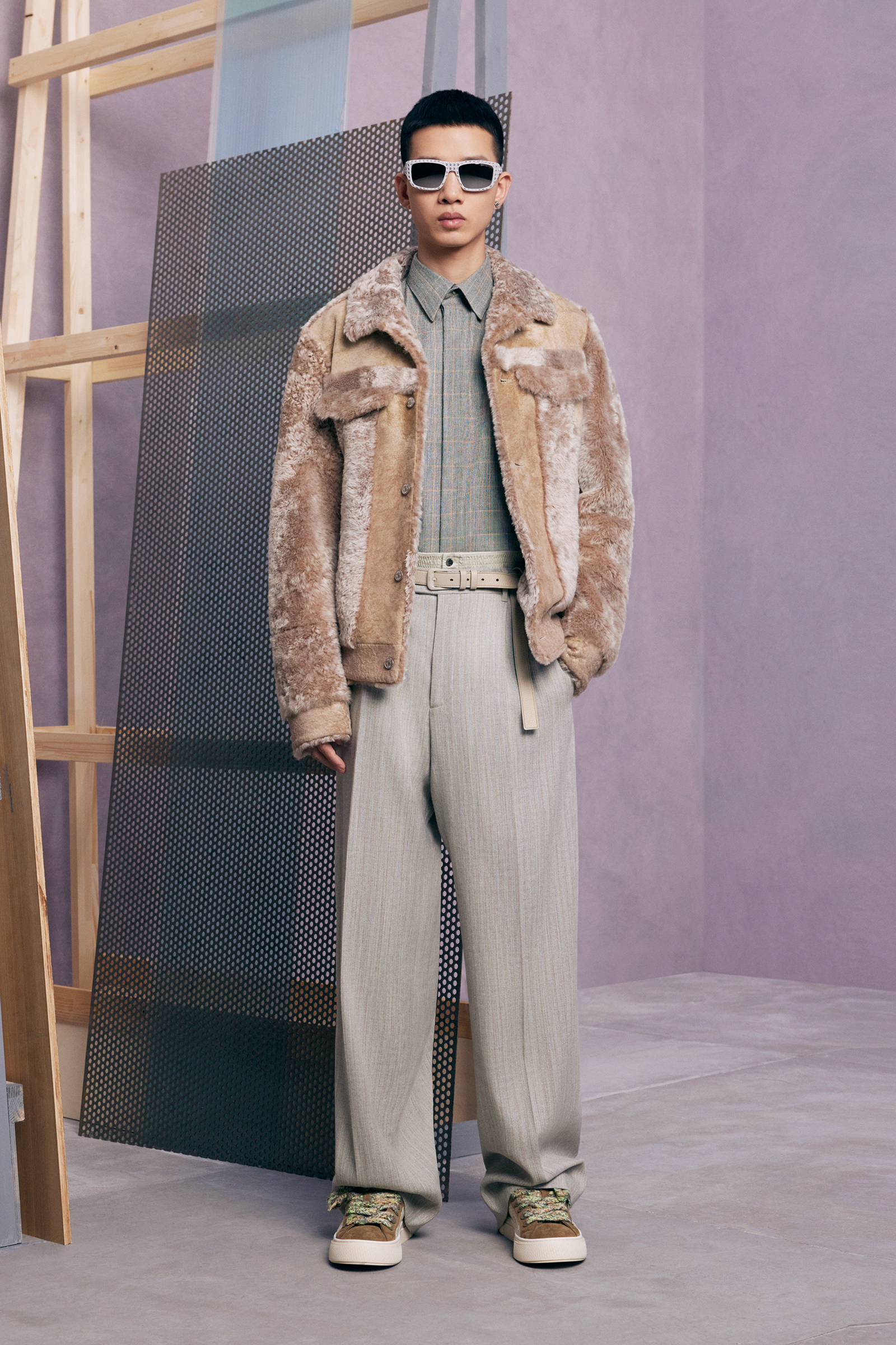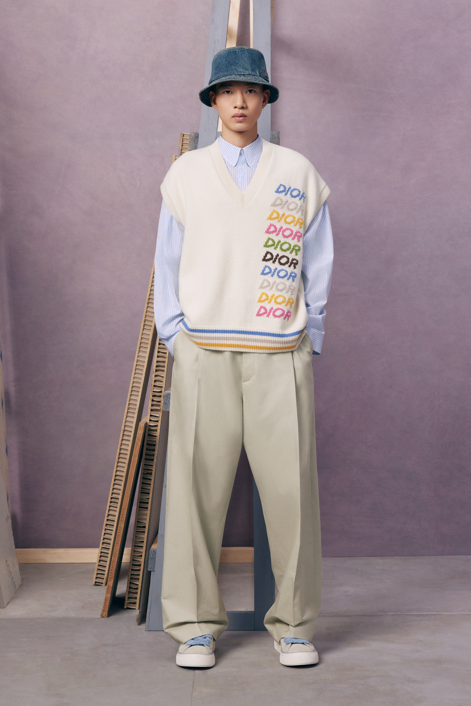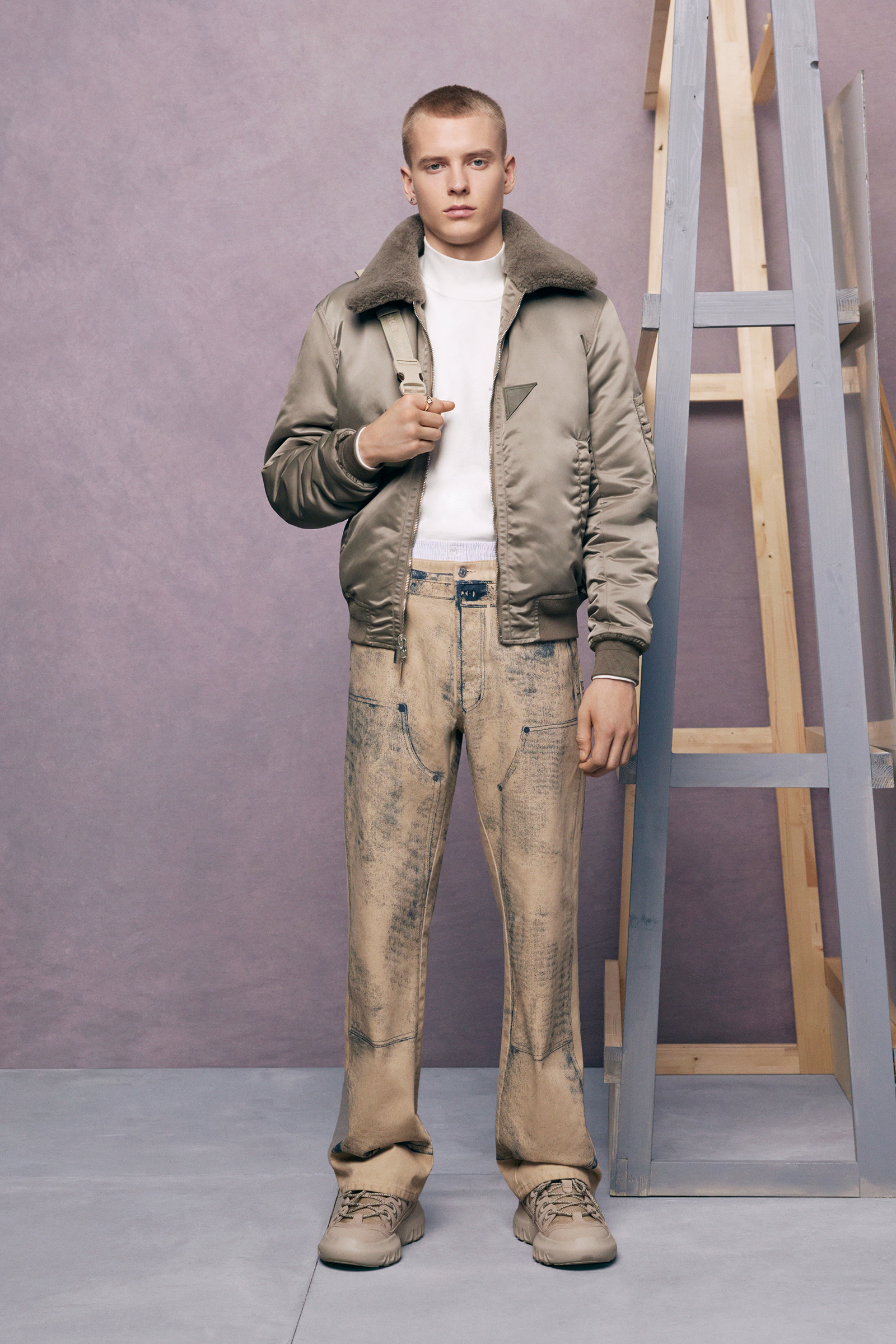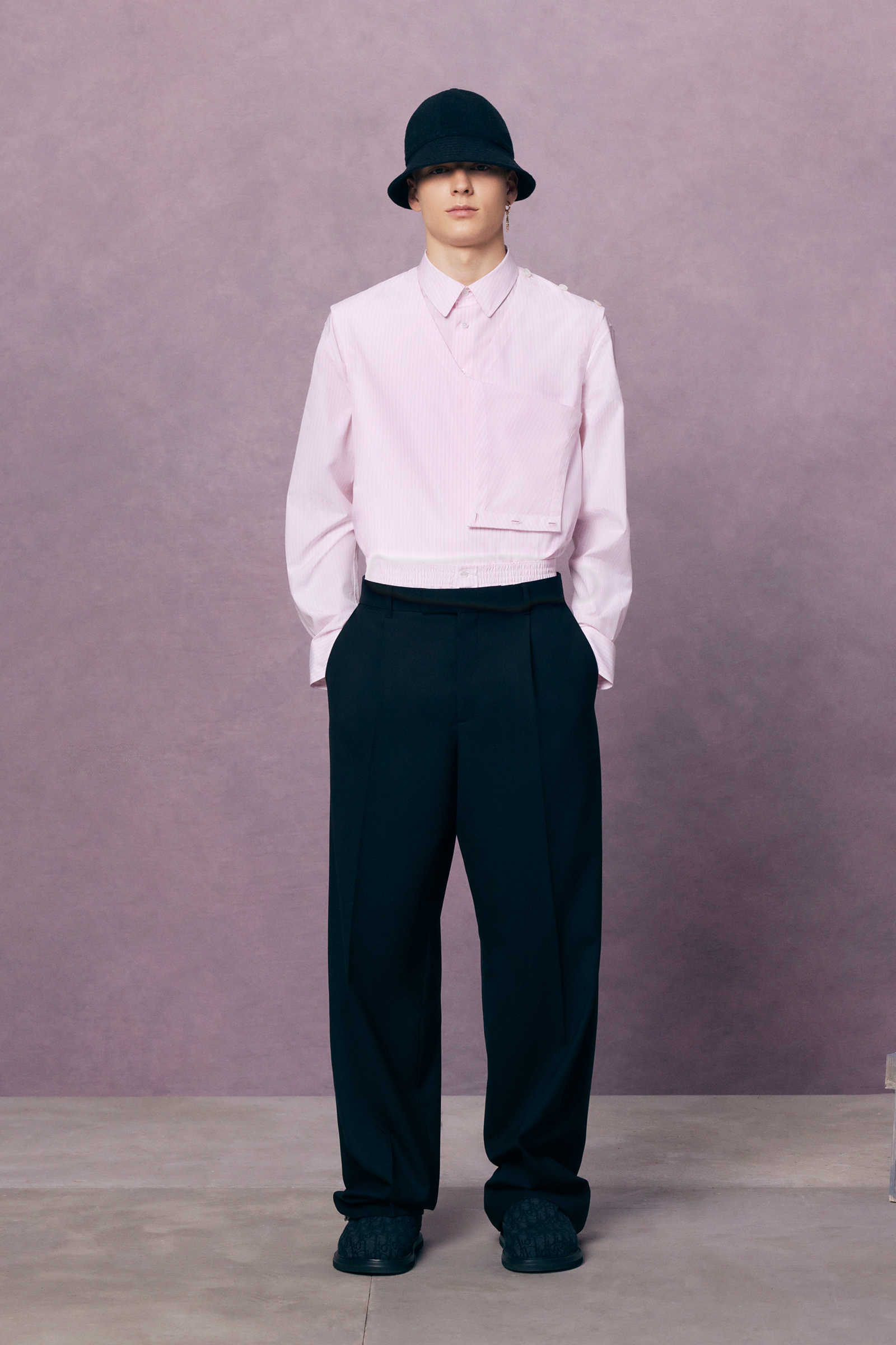 “Between stages. As if they’ve come off one set and are about to step onto another.” There’s a hint of a double-meaning in the “backstage” set that Kim Jones built for his pre-spring lookbook shoot. For one thing: a pre-anything collection is a “between-stages” season that has to multitask in covering a broad range of clothes and accessories. And for another: Jones revealed (or, rather, teased) that he’s also preparing to move into another stage in his career as Artistic Director of Dior Men. “The next show is my fifth anniversary. So I’m going to do something a bit different to mark the time.”