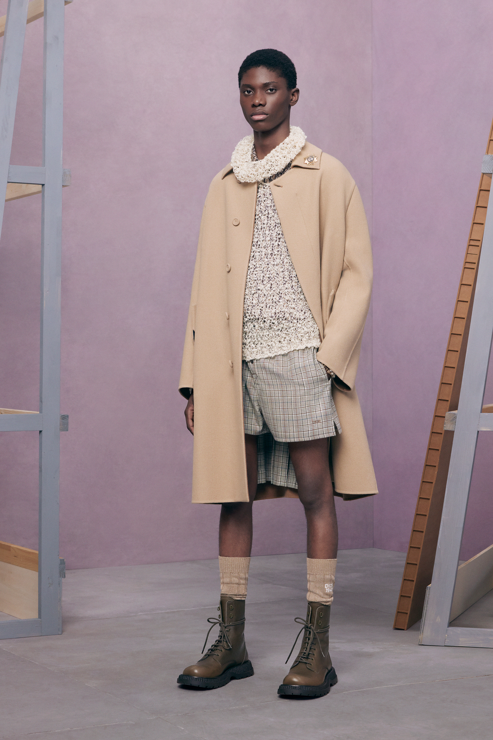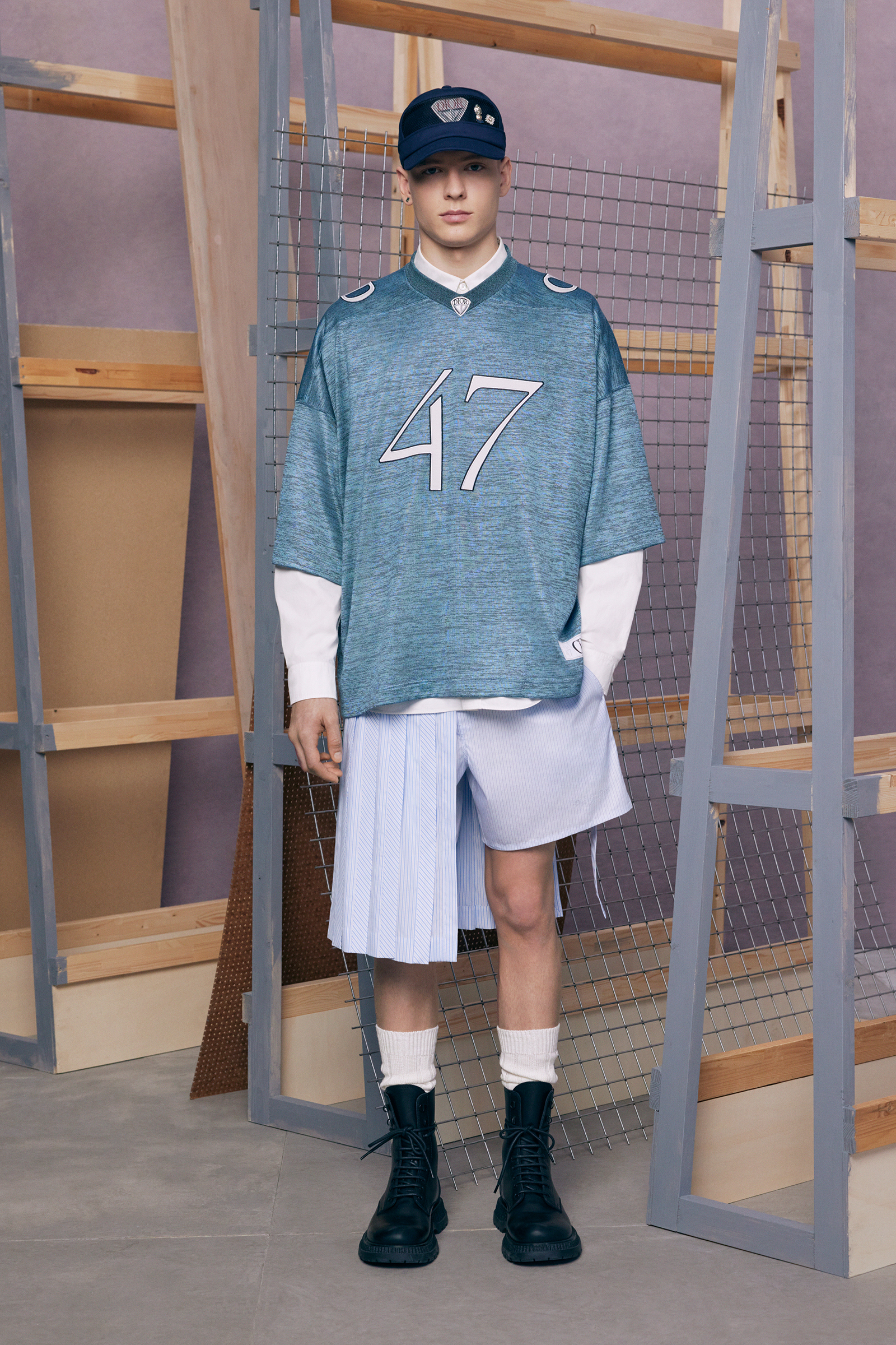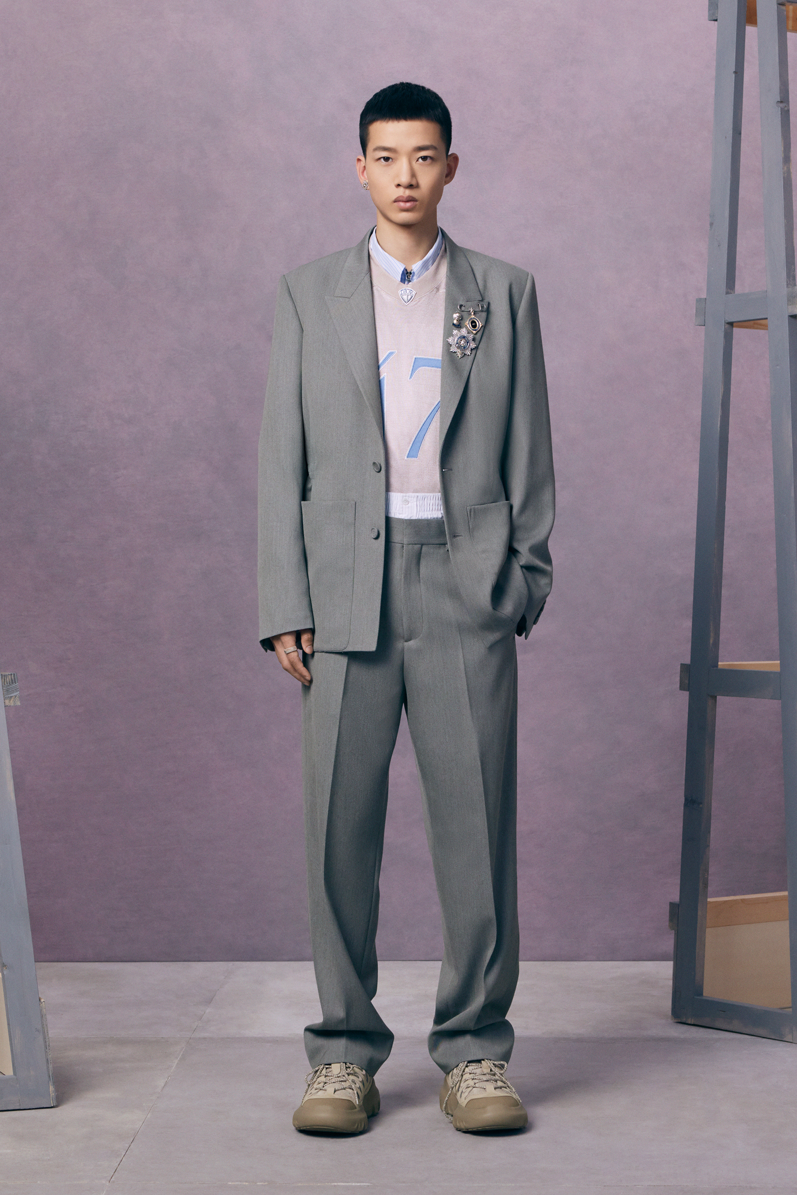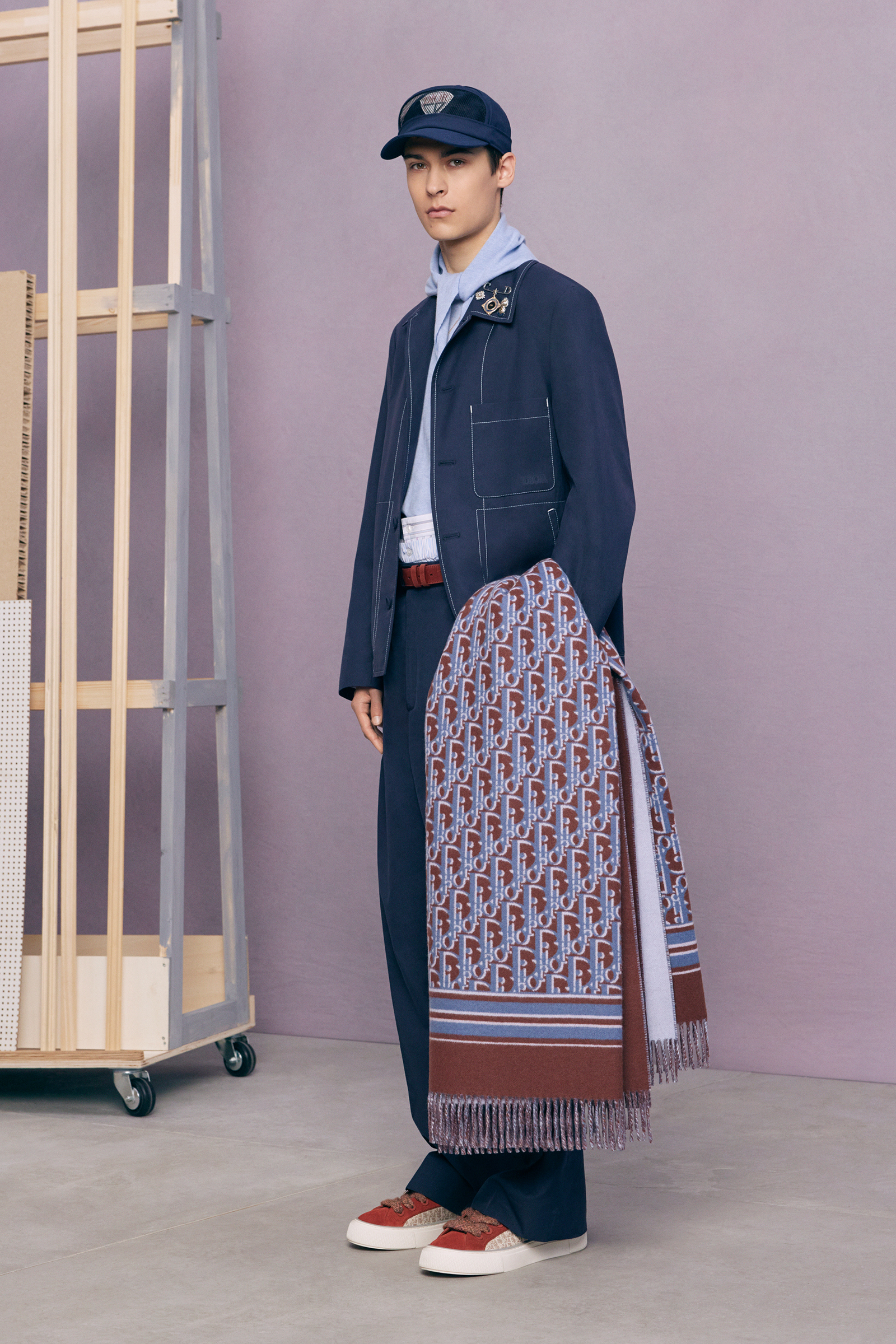 If the pre-co doesn’t exactly serve as his half-decade retrospective, it’s yet another design demonstration of how fluently Jones has created a lingua franca for Dior Men, while always maintaining his own British accent. This season, he mixed references to the 1980s Buffalo style of Ray Petri into a classic Dior color palette, played with the house logos, and accessorized with sparkling jewelry derived from the highest French national honors.