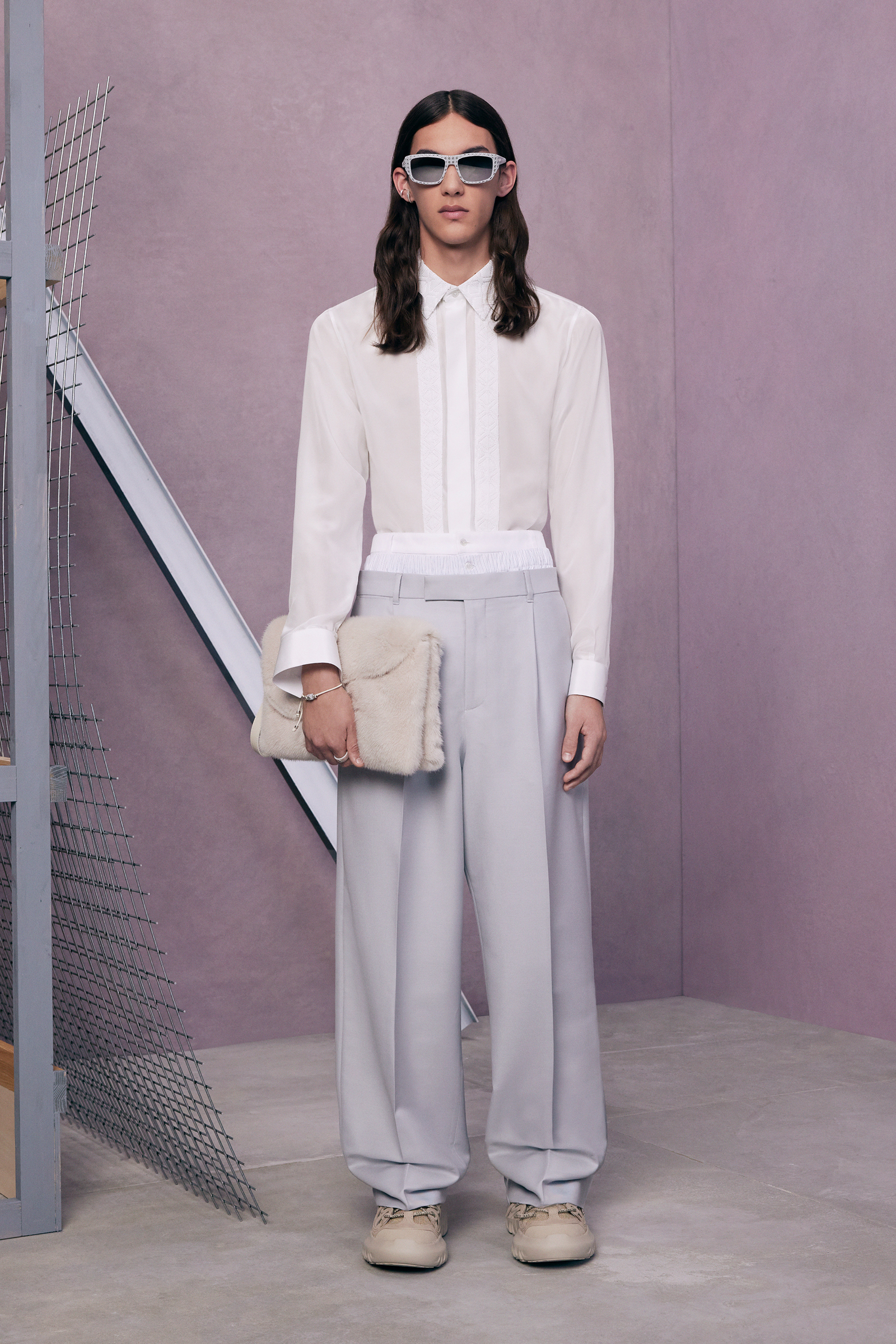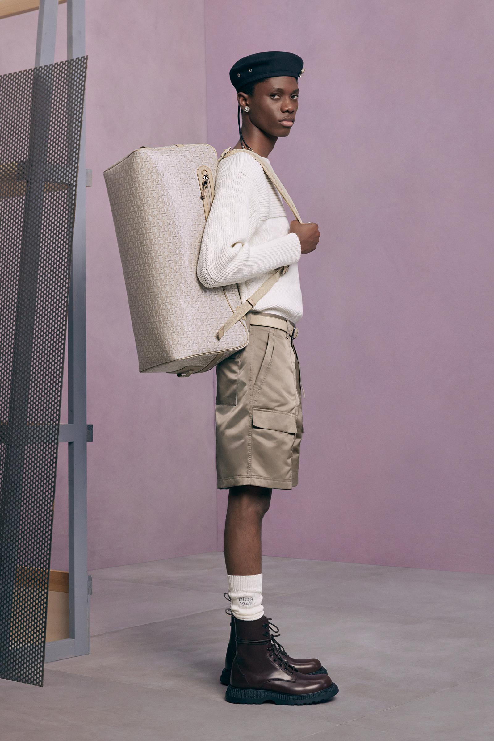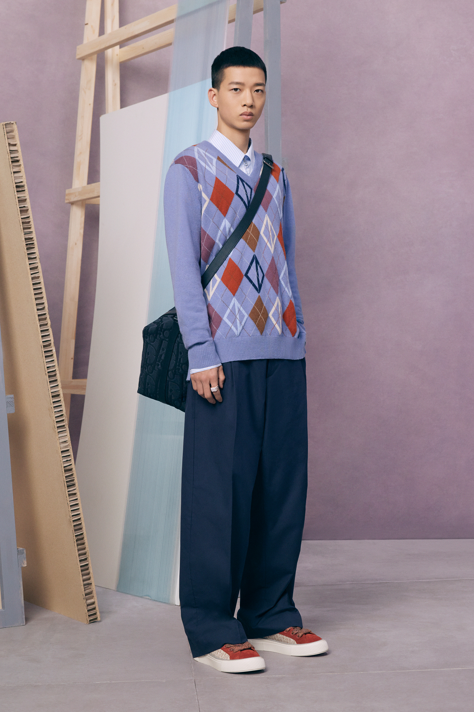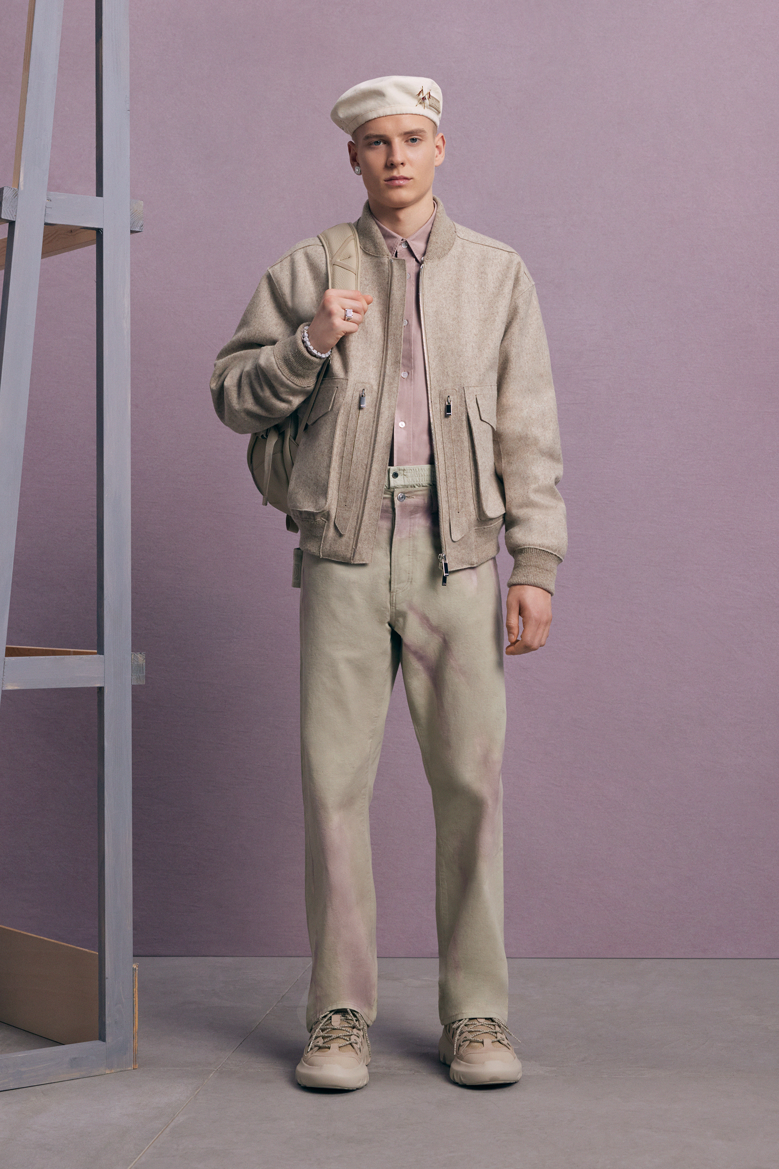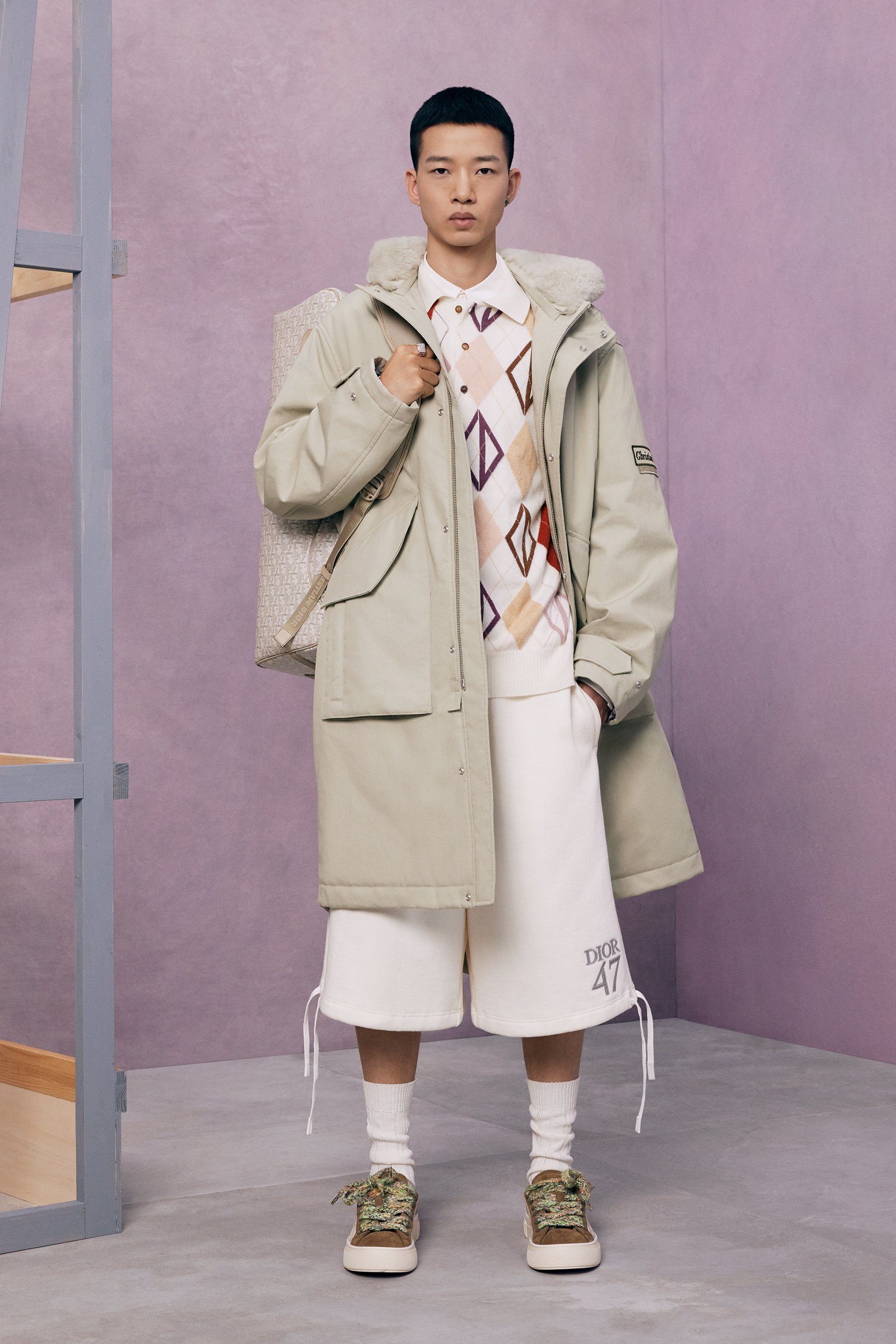 If the pre-co doesn’t exactly serve as his half-decade retrospective, it’s yet another design demonstration of how fluently Jones has created a lingua franca for Dior Men, while always maintaining his own British accent. This season, he mixed references to the 1980s Buffalo style of Ray Petri into a classic Dior color palette, played with the house logos, and accessorized with sparkling jewelry derived from the highest French national honors.