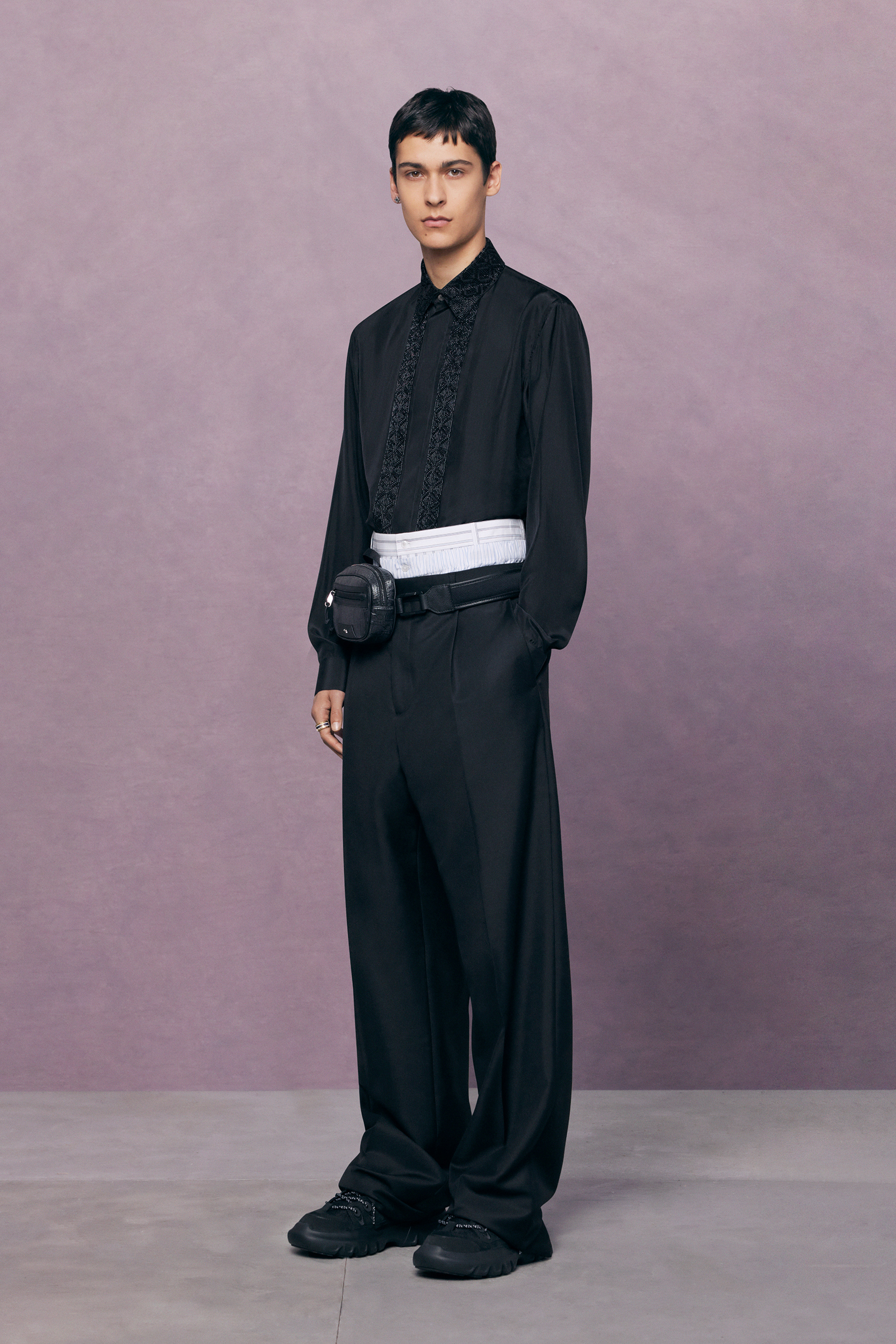 Still, it’s relatability over reference that makes Dior Men a magnet for shoppers. The bigger picture here is how skilfully Kim Jones has figured out how to retain but soften tailoring so that it effortlessly marries with the casual way men want to wear things now. “I think it’s nice that we can play around with those codes and modernize them a bit,” he said. “Even if it’s black tie, you know, it’s not black tie straight-on. Look at Cannes,” he said, referring to the Film Festival. “When people go to those events they want to go smart and comfortable.”