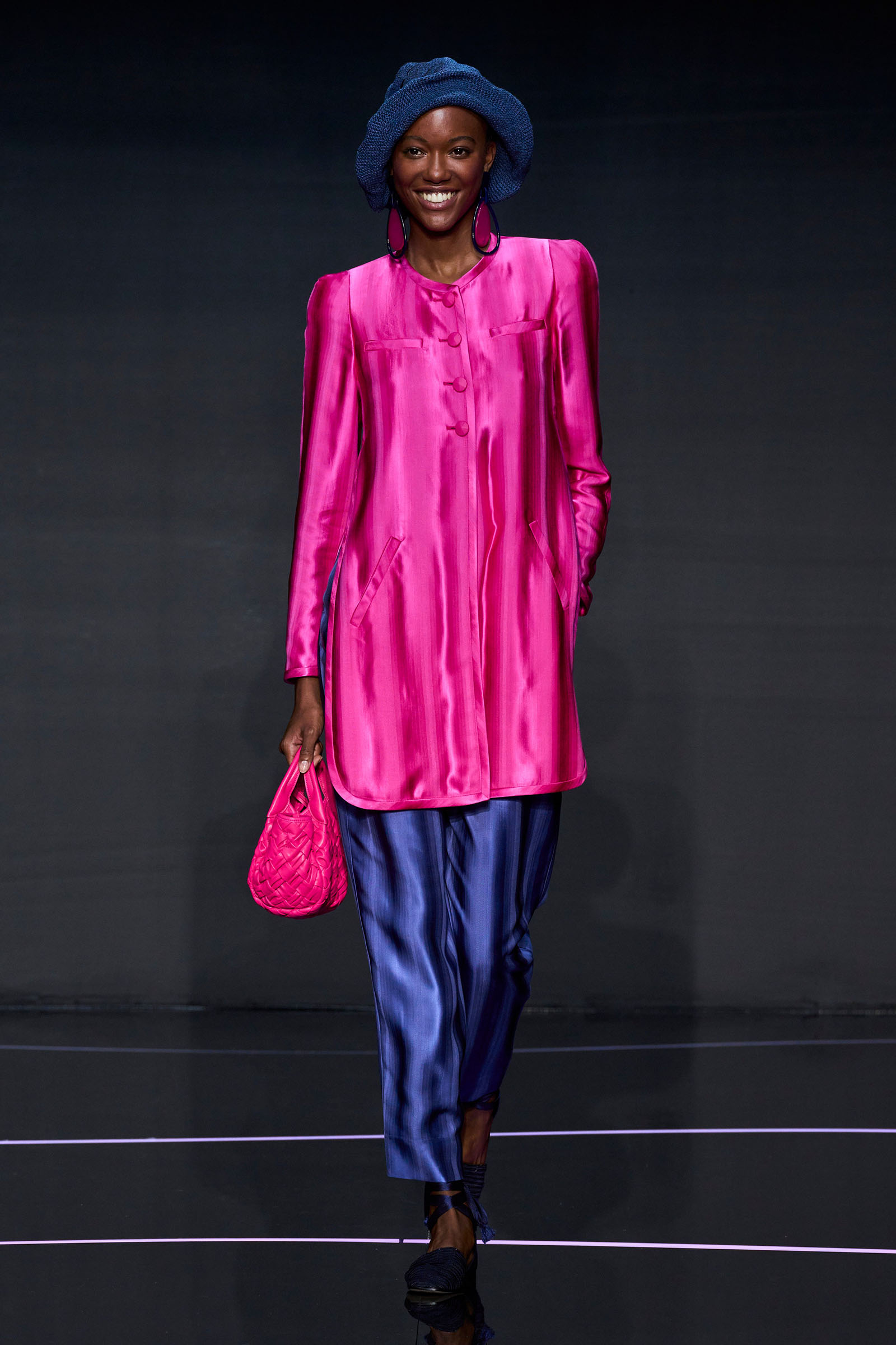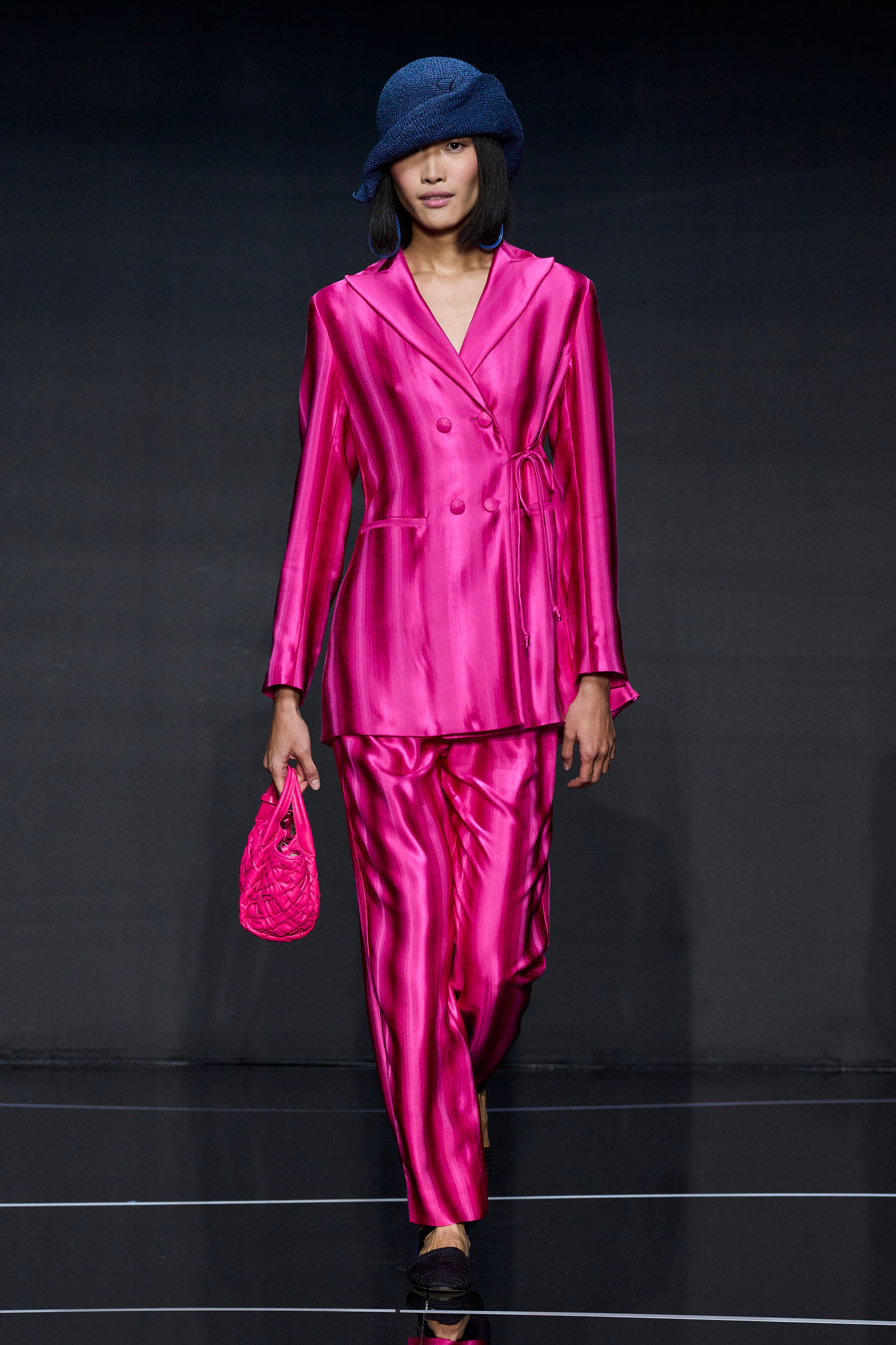 The show next door was Armani’s first since turning 89 this summer—another milestone in a career brimming with them. While that queue outside demonstrated how powerful Armani’s cultural currency remains in 2023, this collection almost nostalgically demonstrated why. As many of the bags usefully reminded us, Armani founded Emporio in 1981 as a brand that shared the ethos of his namesake first line but was, through price and approach, open to everyone.