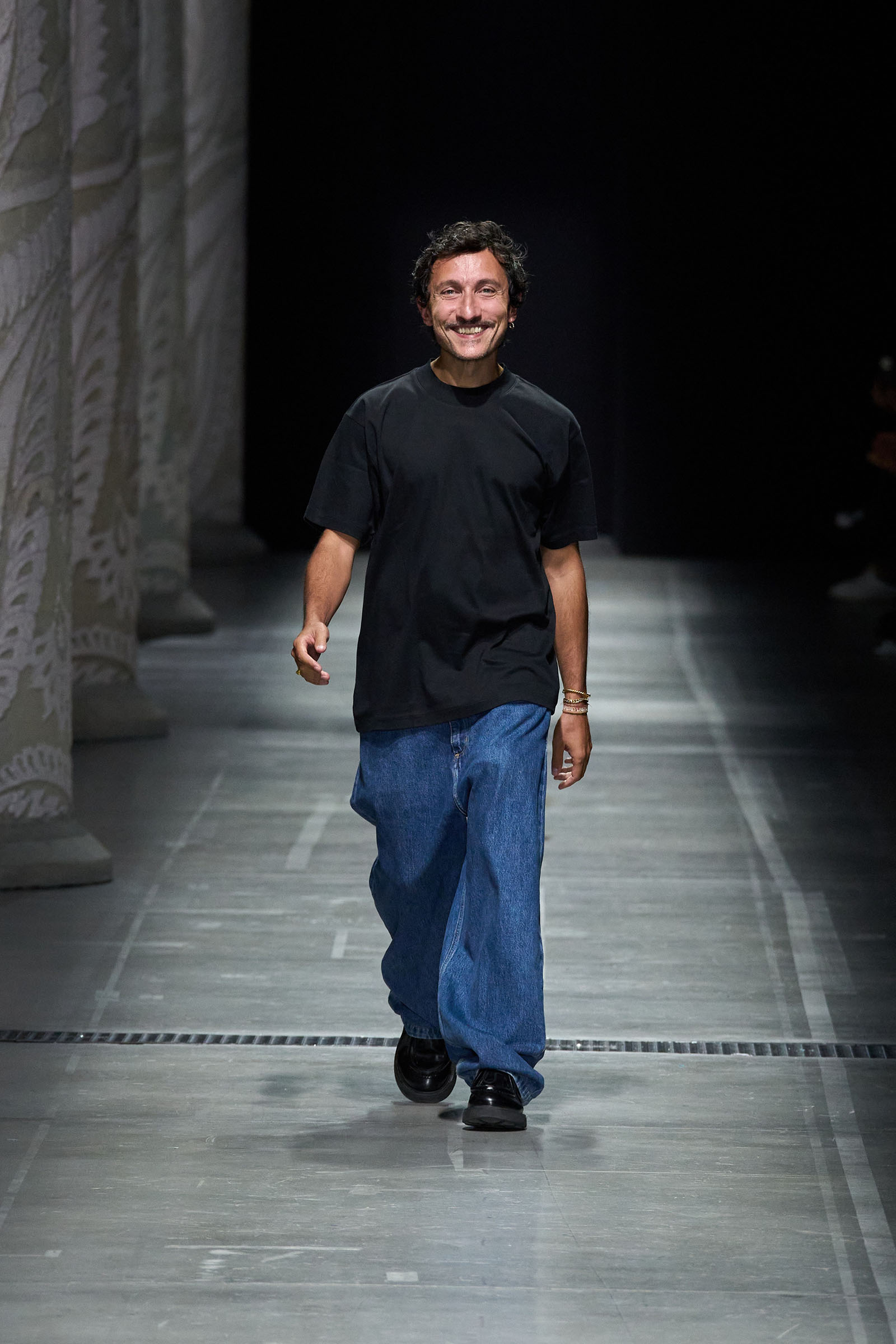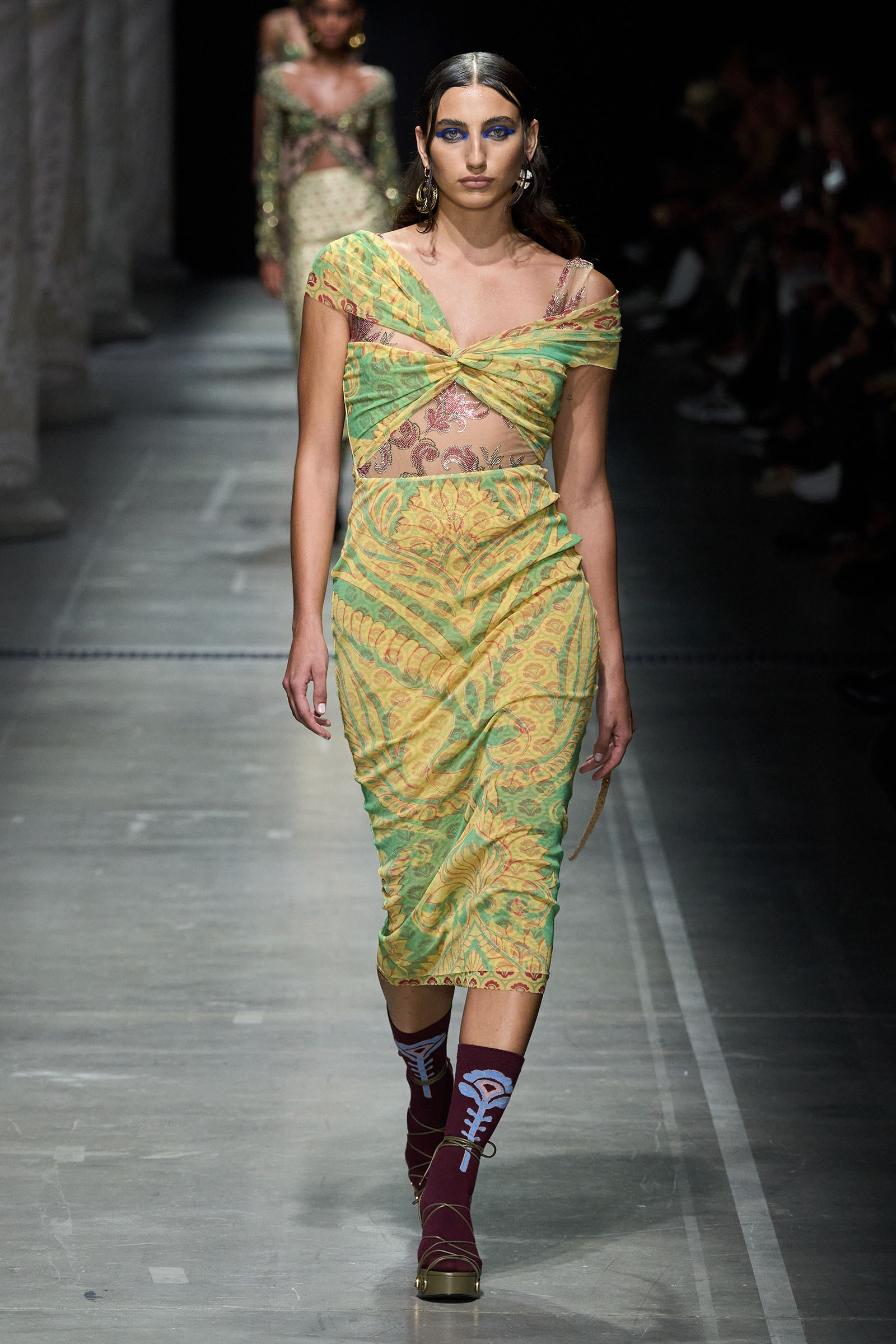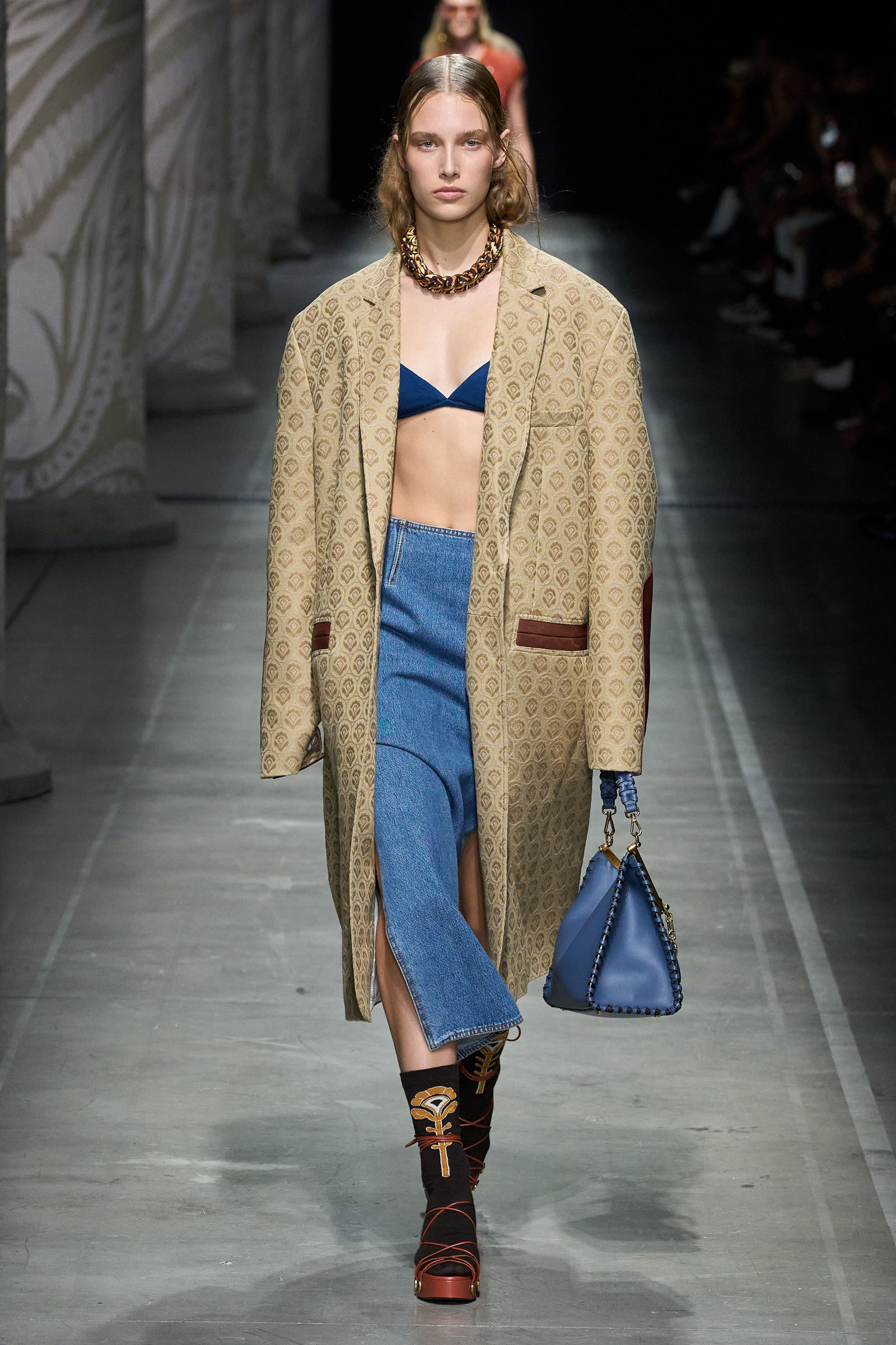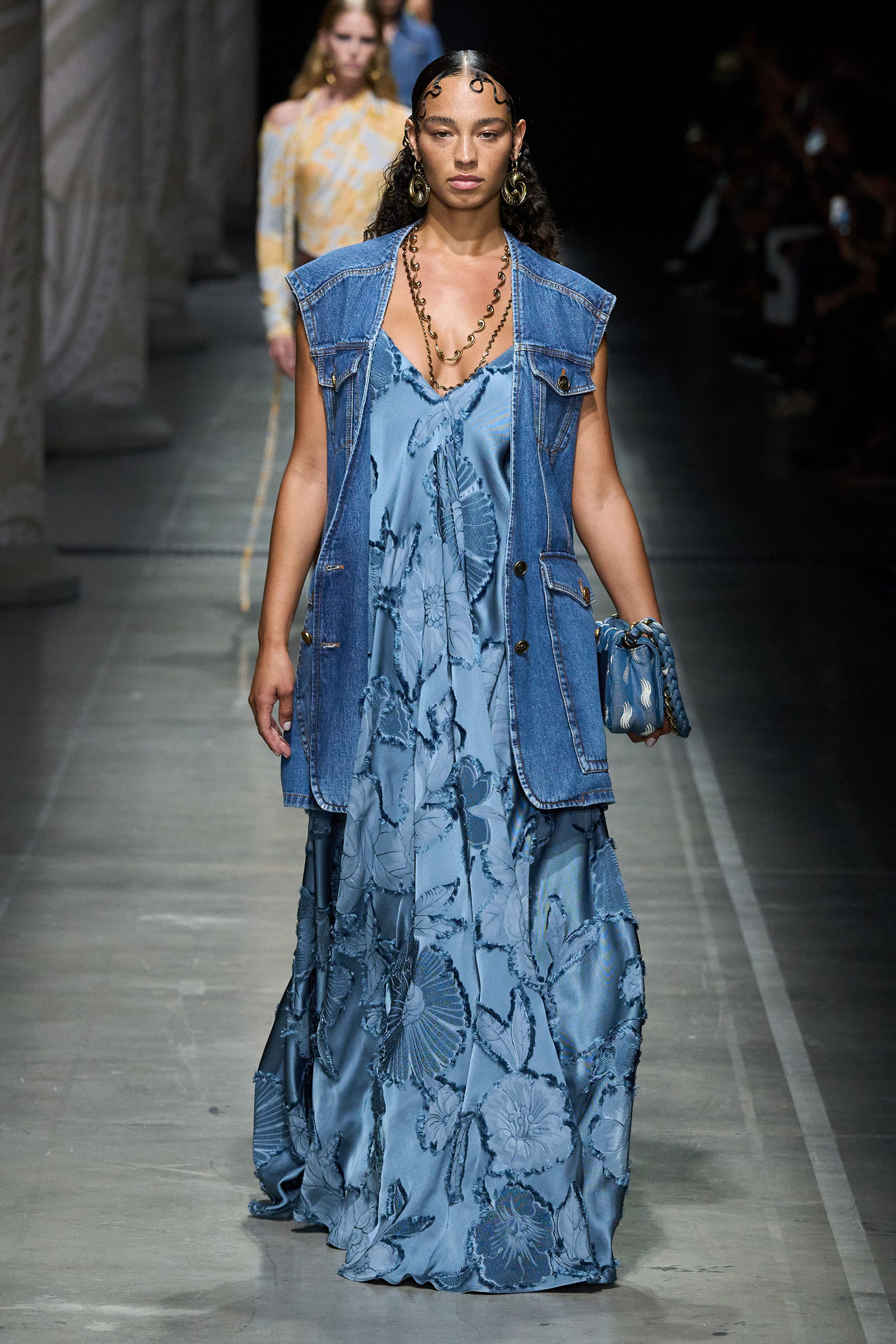 Marco De Vincenzo is an eager traveler; this year he visited Africa and recently spent his holidays in Cambodia. But he also navigates frequently around Etro’s vast archive, a treasure trove of rare fabrics and prints, where he gets lost in a sort of suspended journey. “It’s weird how the imagination brings you to places that somehow you can’t describe,” he said. “The magic of the temples of Angkor Wat, a scrap of beautiful brocade from the 18th century…. The mind travels through memories and suggestions, mixing them together with no logic or rational hierarchy, and lands instinctively in fabulous places with no name.” He called his spring collection Nowhere.