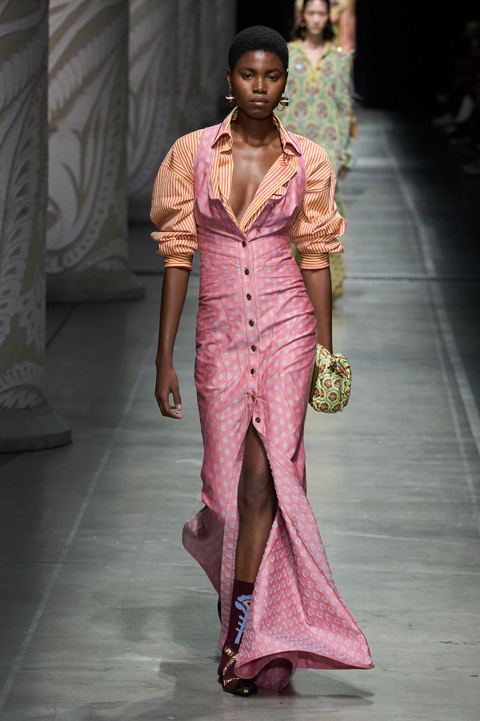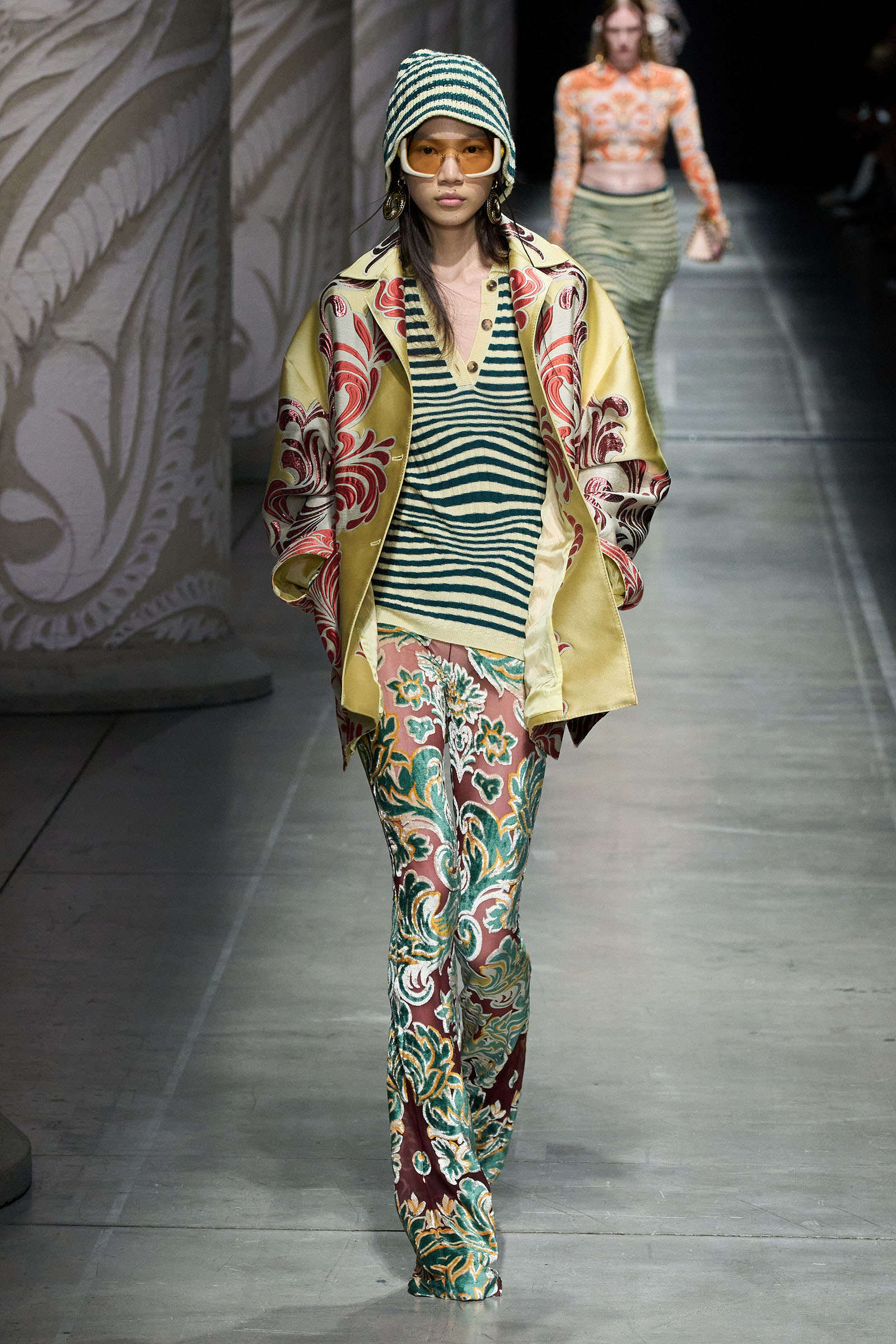 De Vincenzo is no philosopher, but Nowhere is a concept that can get the mind spinning in multiple directions. For one, fashion is a nowhere land where the art of infinite combinations can thrive. “This collection is a nowhere in that it’s a mix of my vision, illusions, and obsessions blended with Etro’s exceptional artistry in sourcing the rarest patterns and fabrics across the world,” he said backstage.