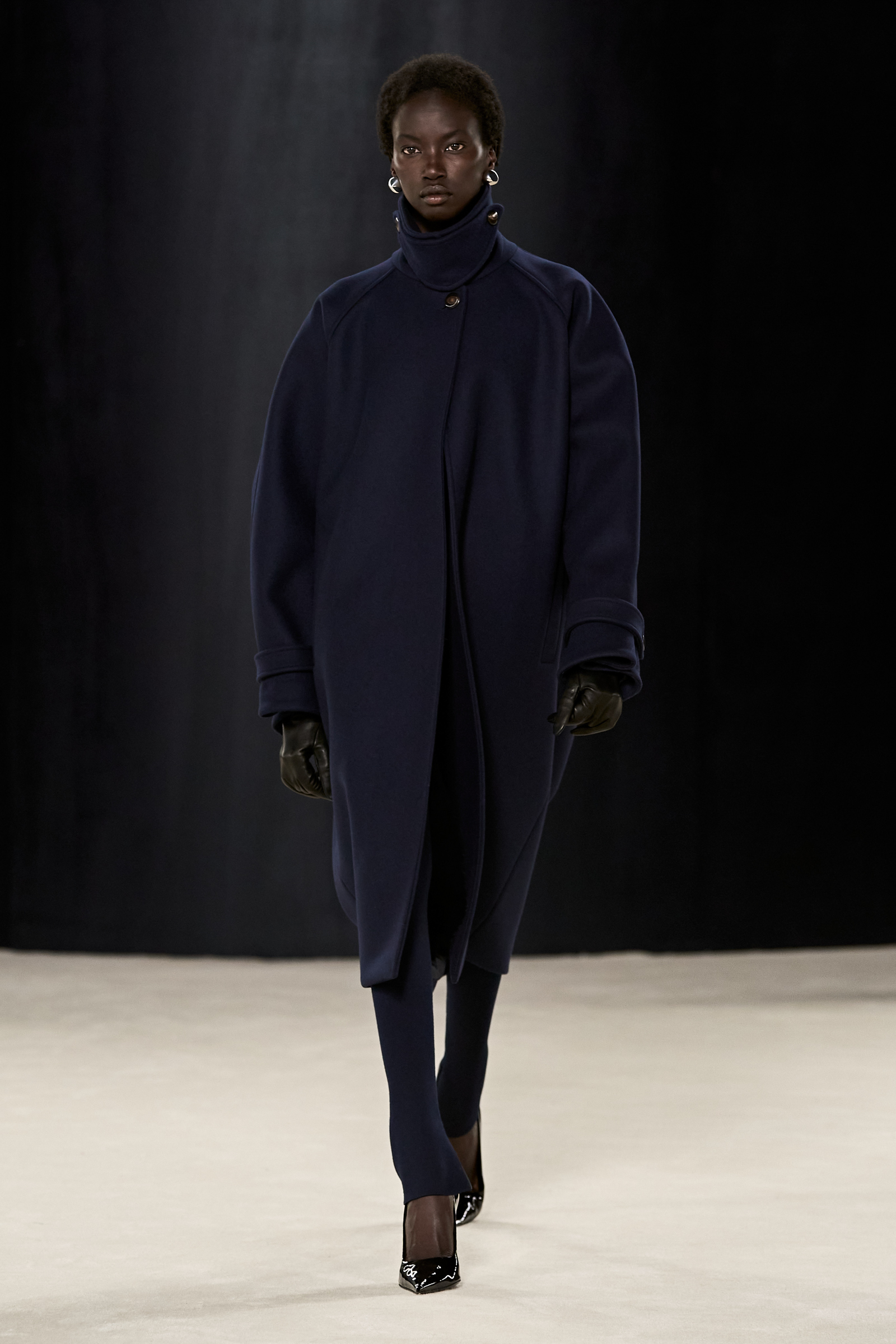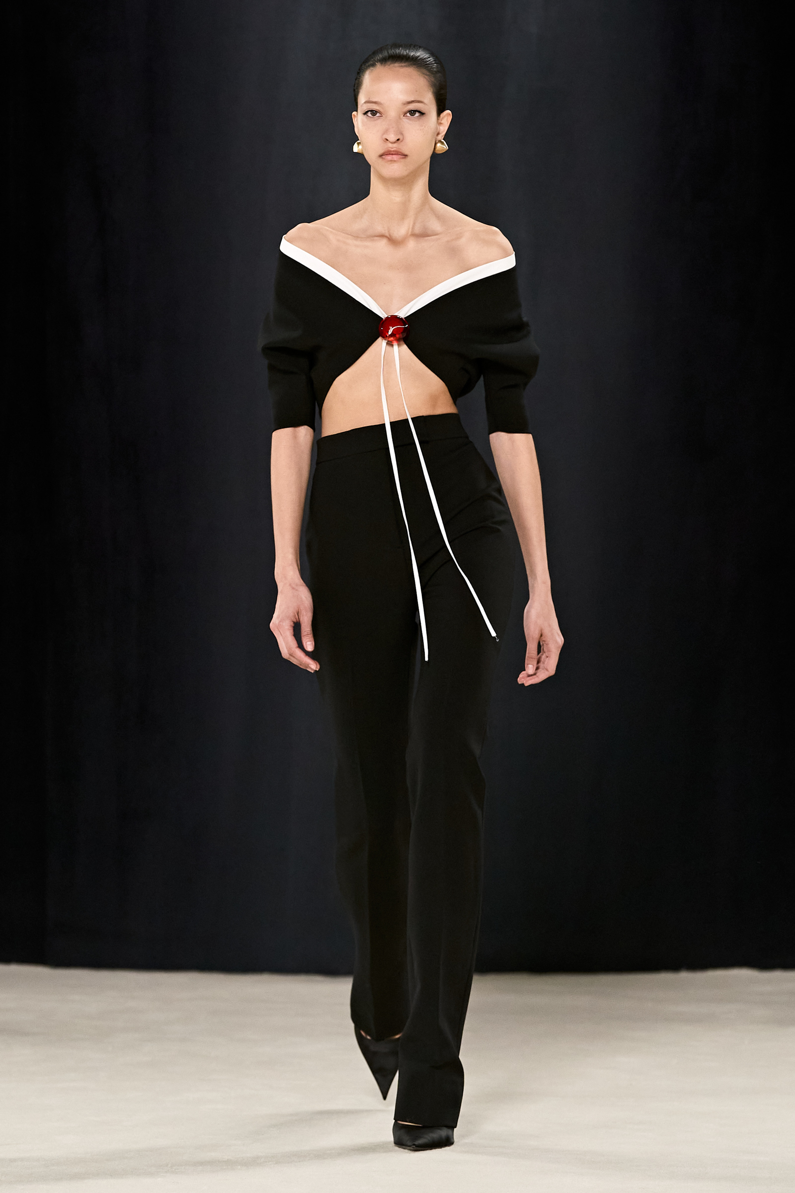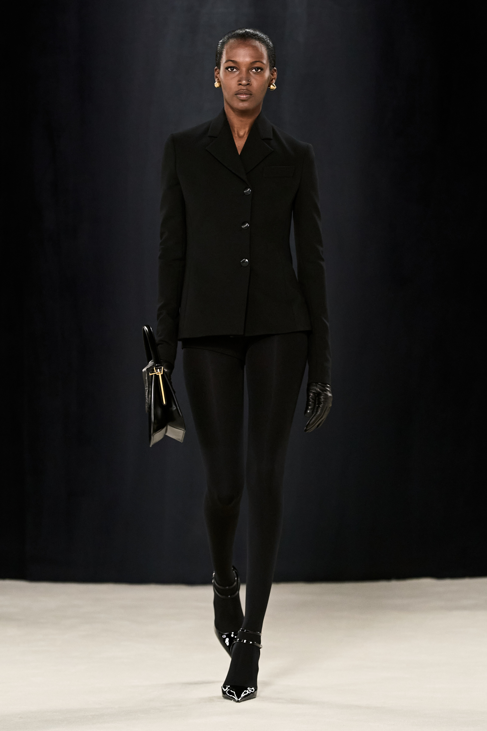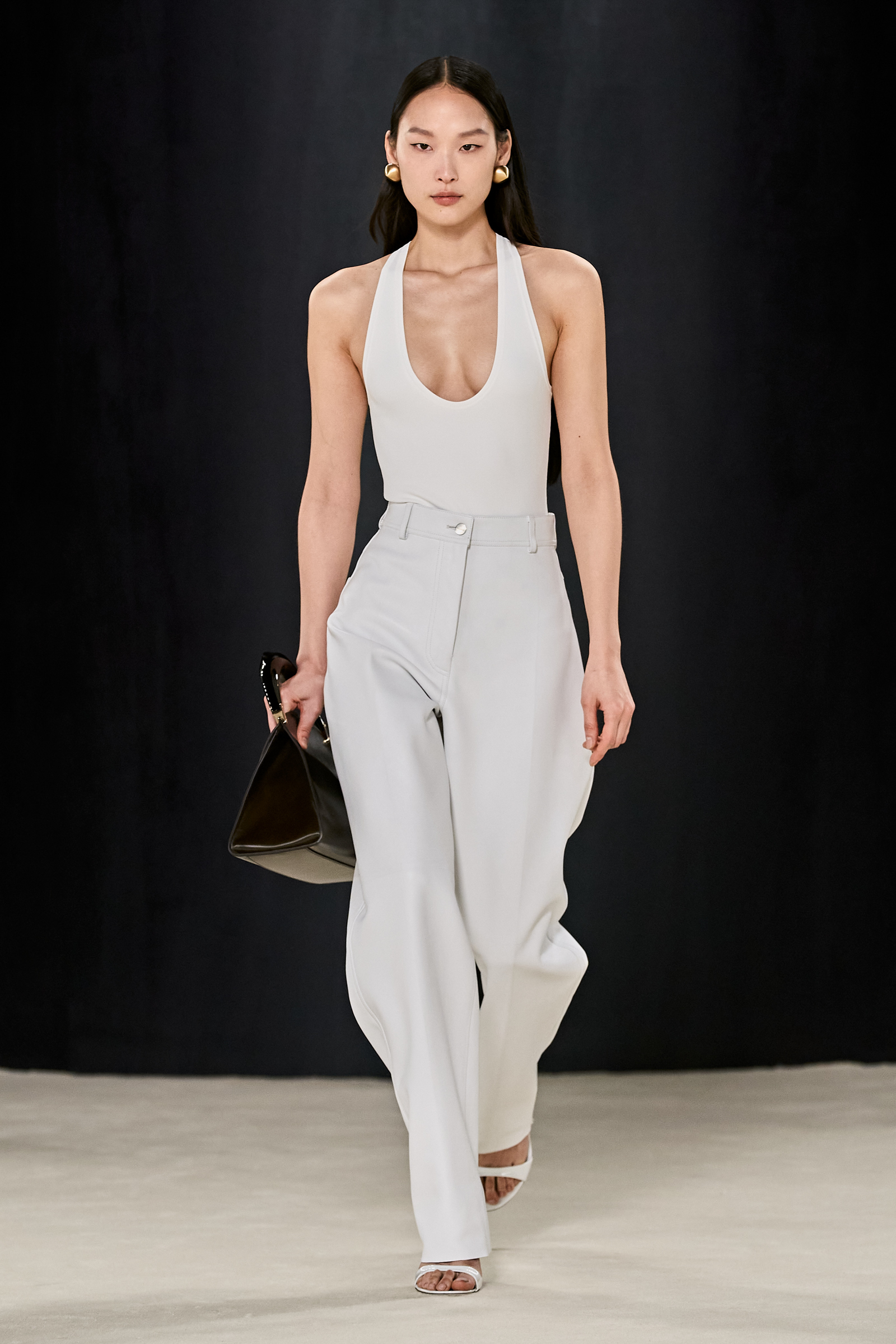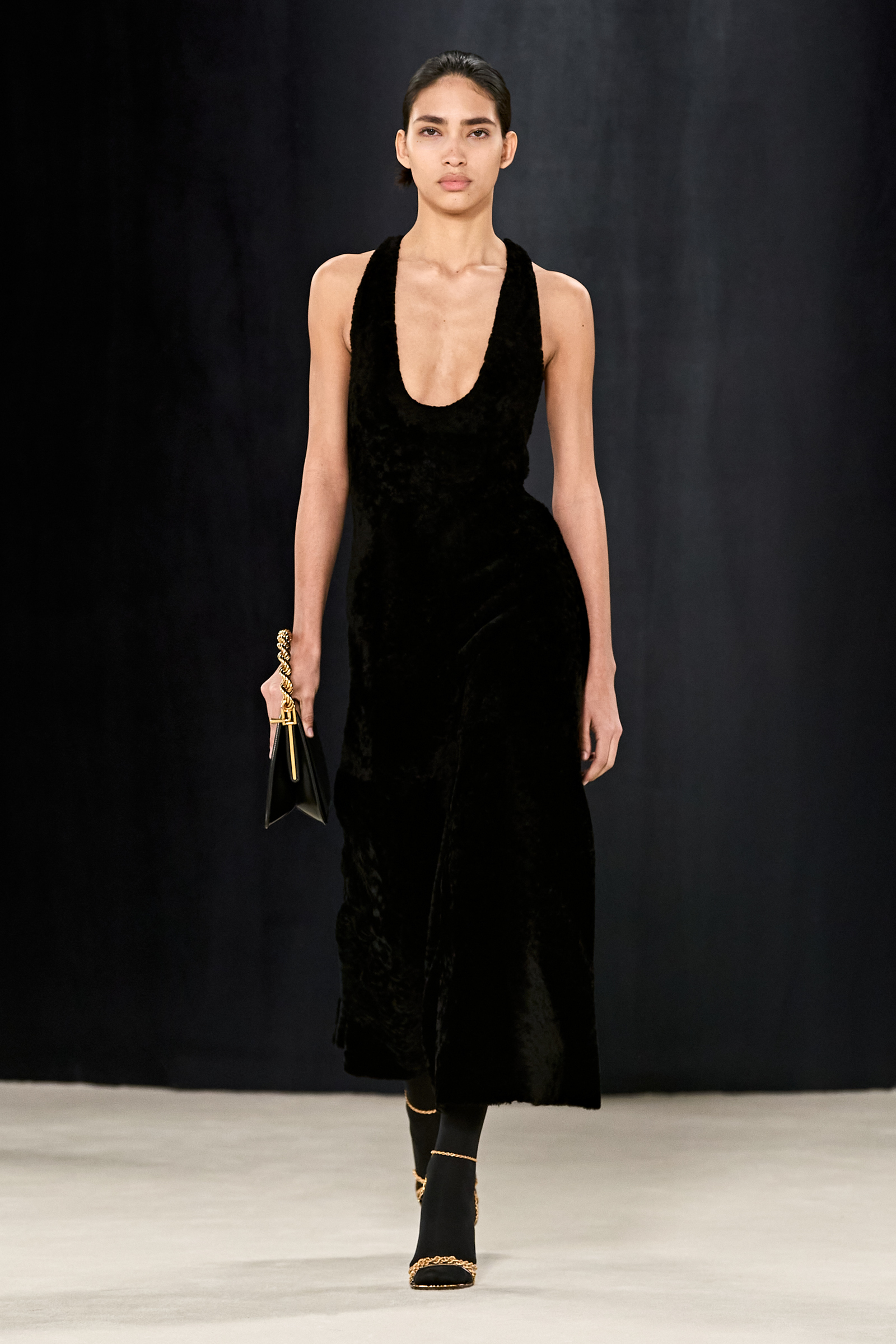 For his second mainline Ferragamo collection today, Maximilian Davis looked to further his mission to render the Florentine house’s historic connections with Hollywood freshly relevant. The founder’s descendants and CEO Marco Gobbetti left no expense spared in the execution of Davis’s direction. Guests included Uma Thurman and NCT’s Lee Jeno. The set was a huge James Cameron meets Richard Serra-esque constructed space within the MiCo convention center—the same building in which Wim Wenders filmed the Gattaca-inspired fall ’21 pandemic-period collection for Ferragamo under Davis’s predecessor, Paul Andrew.