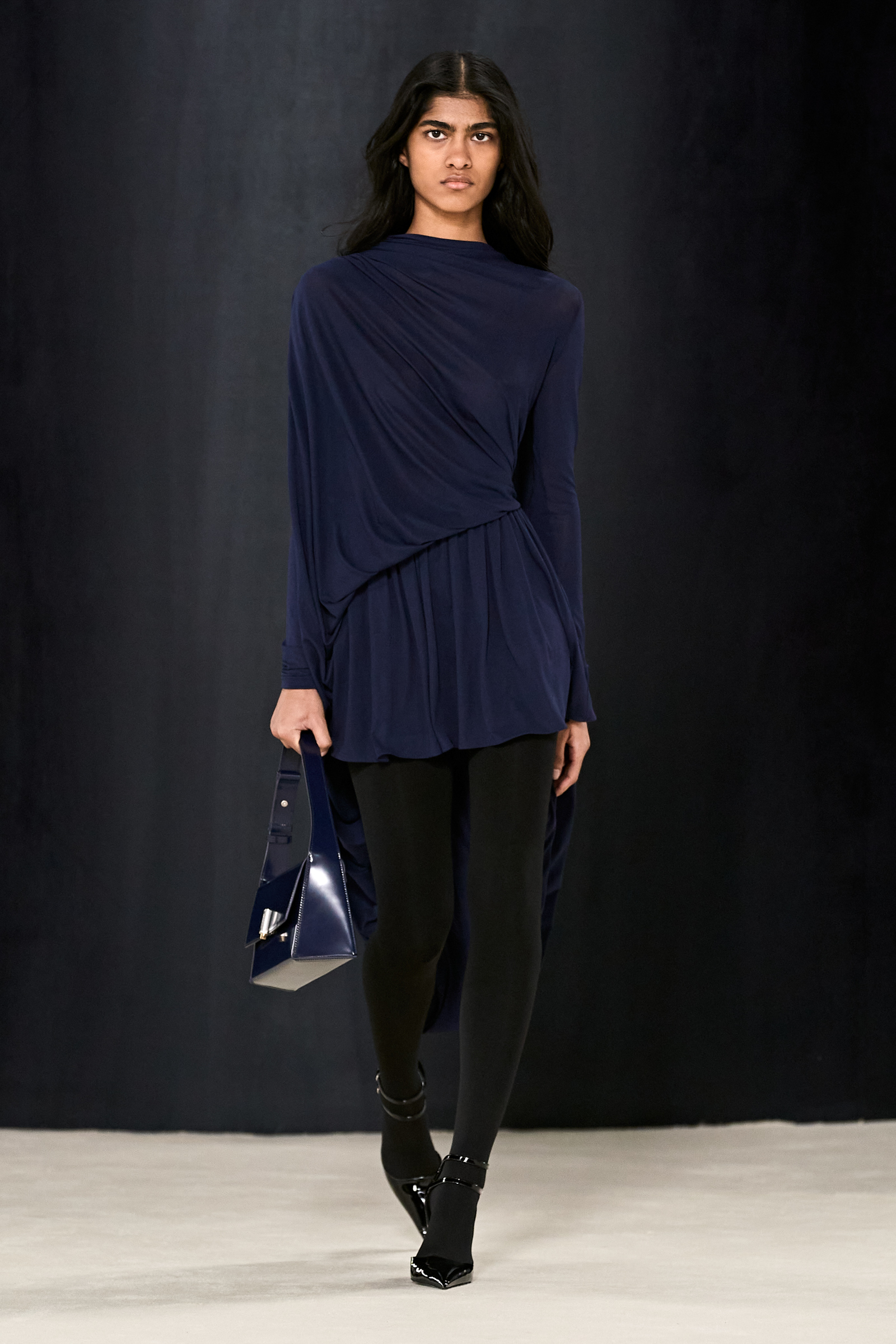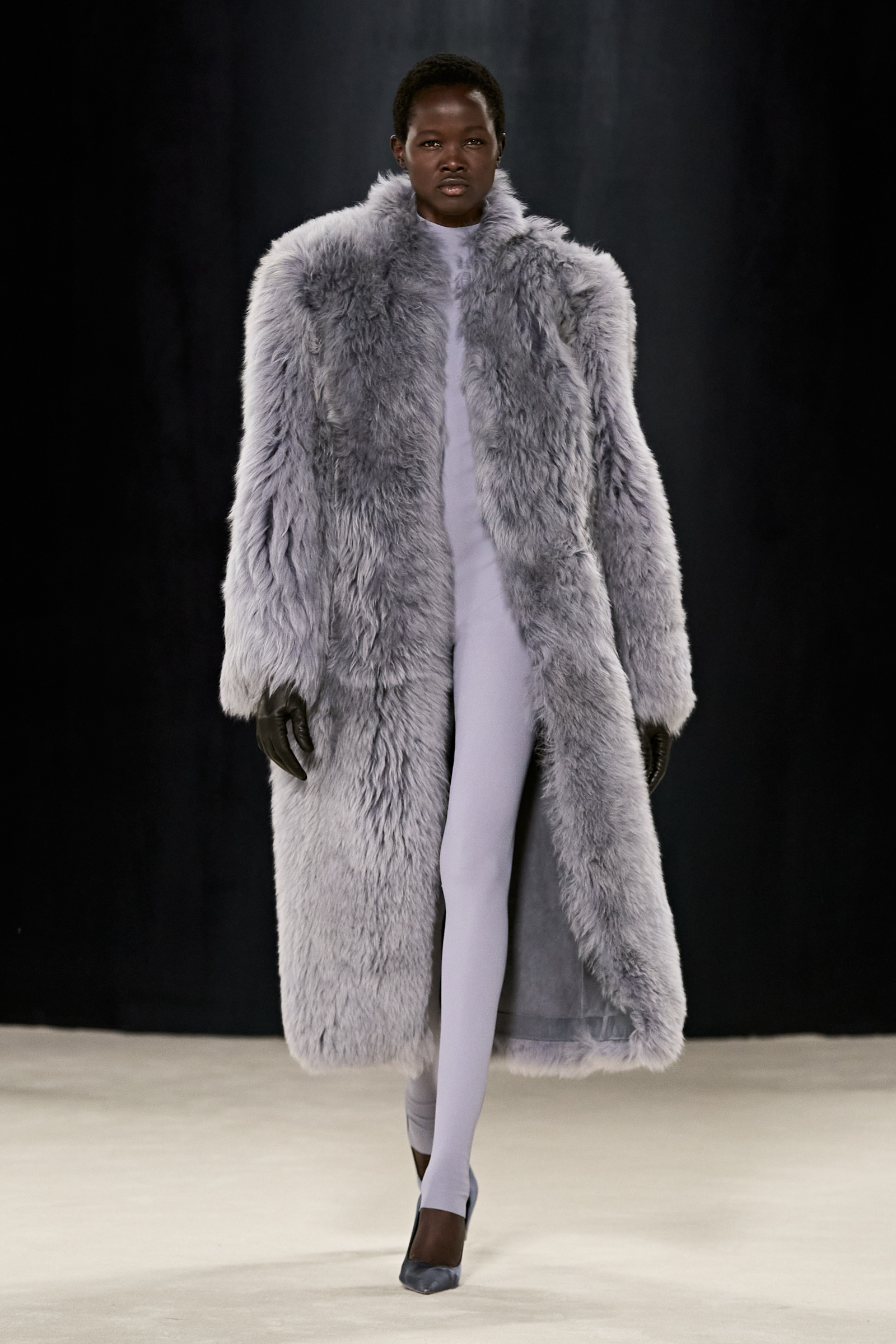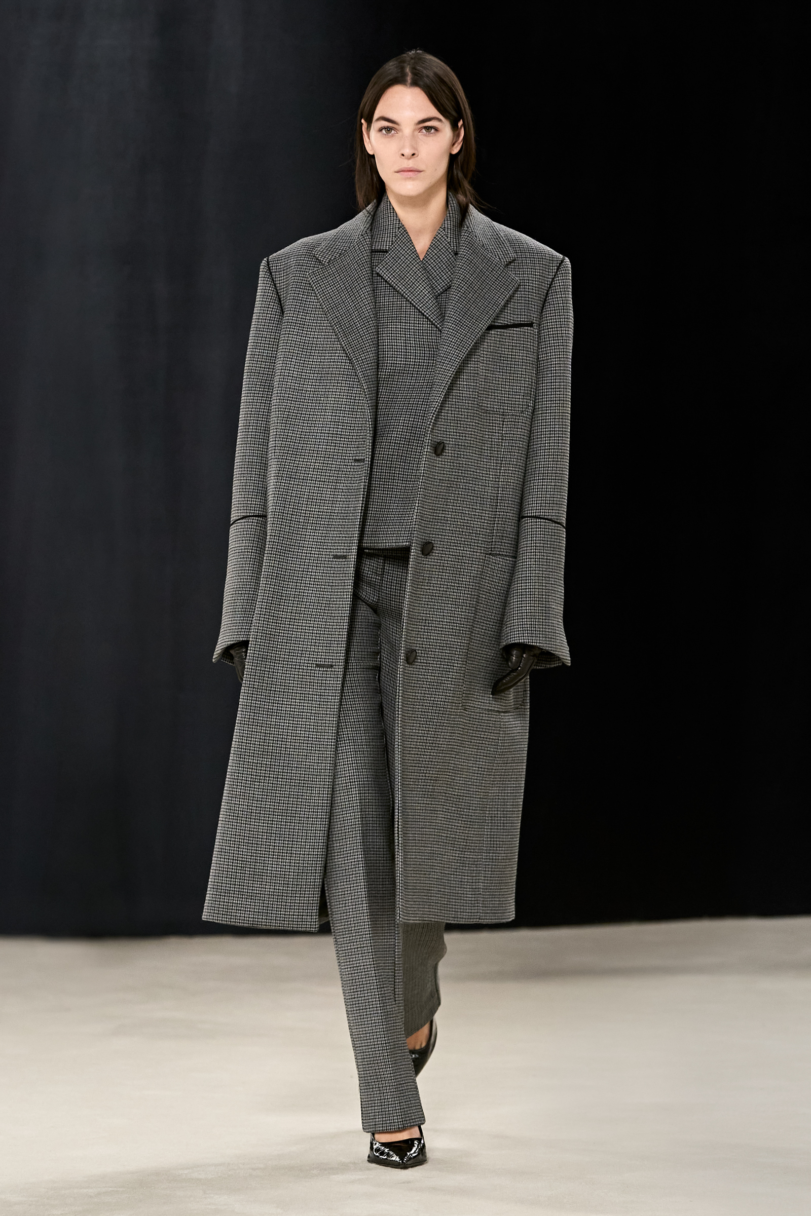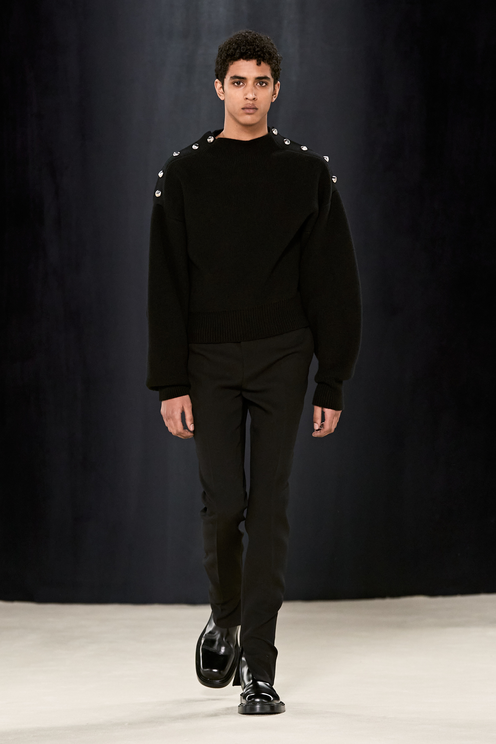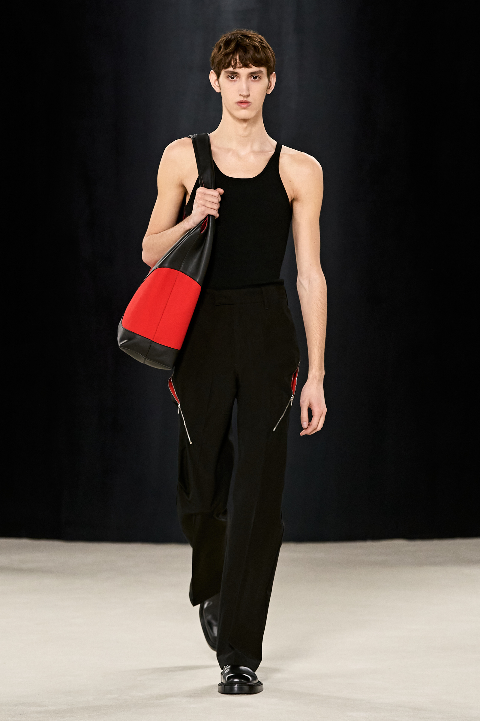 For his second mainline Ferragamo collection today, Maximilian Davis looked to further his mission to render the Florentine house’s historic connections with Hollywood freshly relevant. The founder’s descendants and CEO Marco Gobbetti left no expense spared in the execution of Davis’s direction. Guests included Uma Thurman and NCT’s Lee Jeno. The set was a huge James Cameron meets Richard Serra-esque constructed space within the MiCo convention center—the same building in which Wim Wenders filmed the Gattaca-inspired fall ’21 pandemic-period collection for Ferragamo under Davis’s predecessor, Paul Andrew.