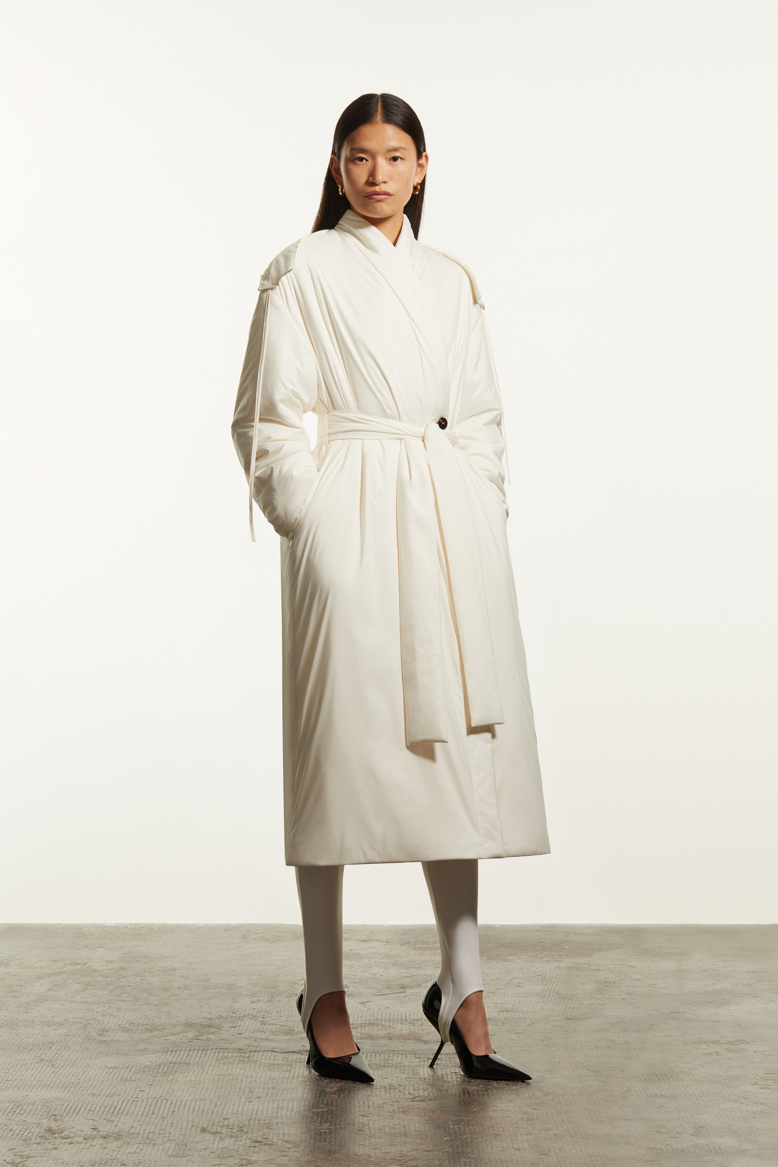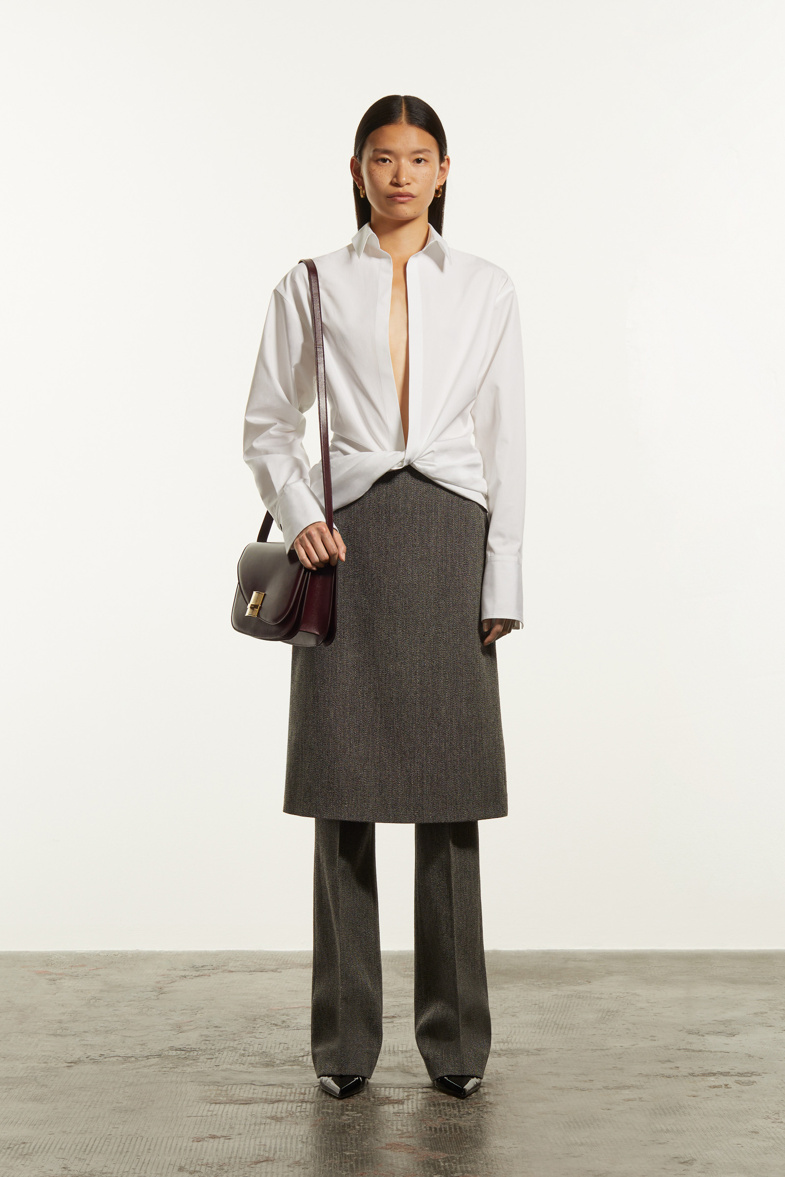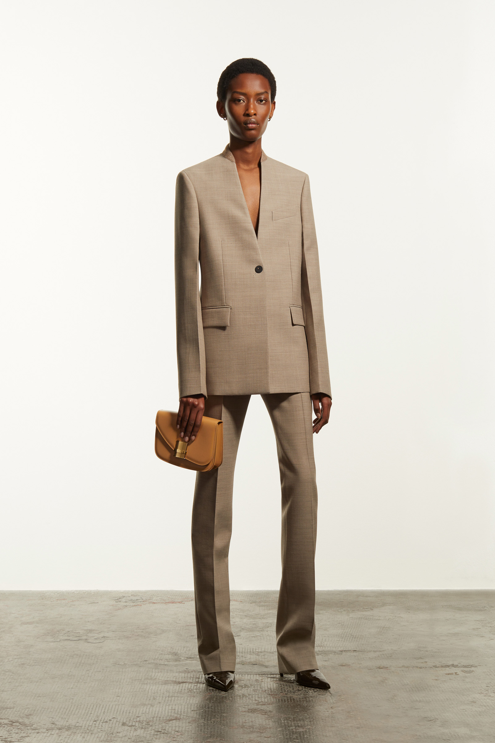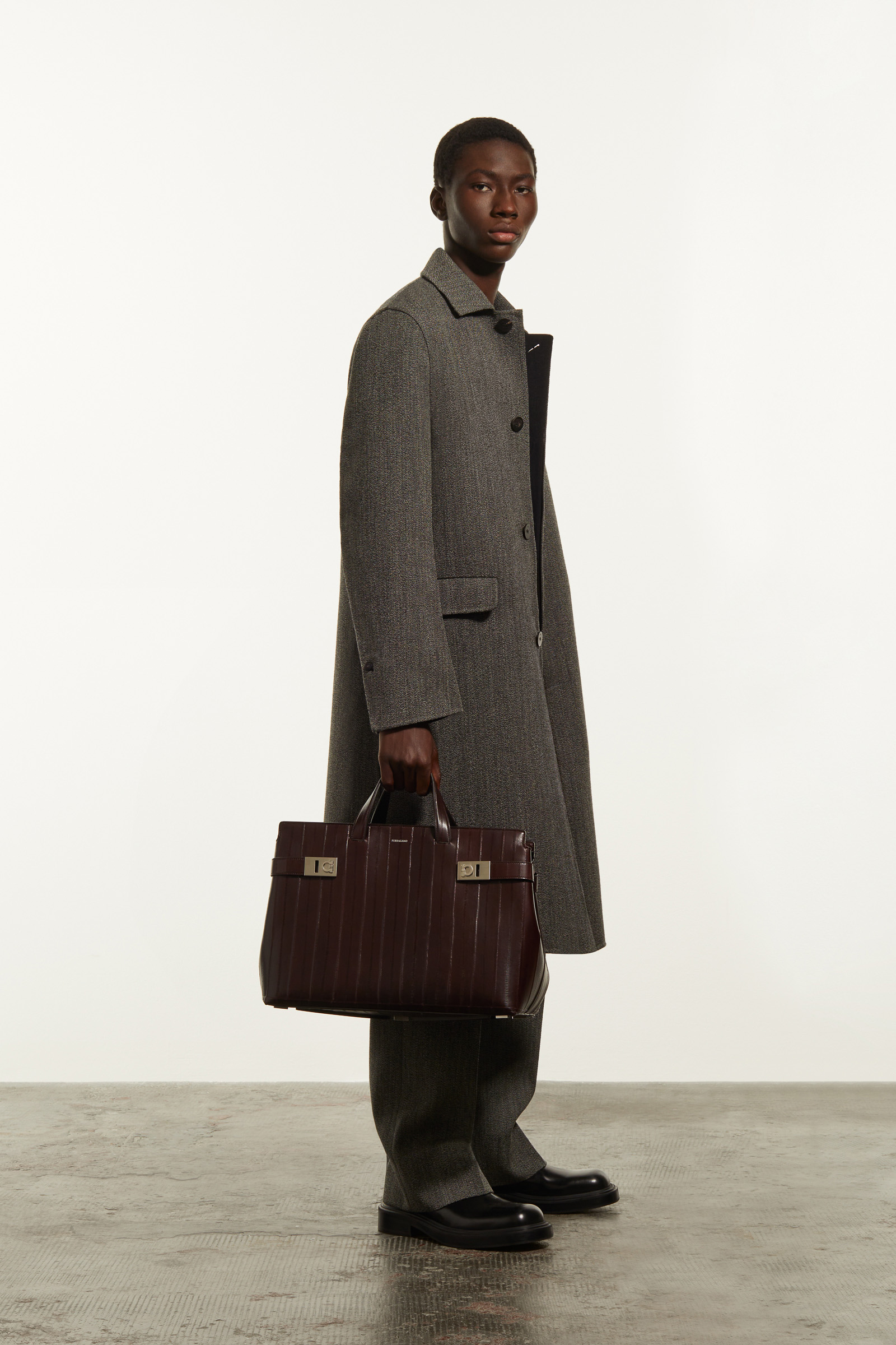 Davis has an affinity for the label’s timeless codes, to which he’s adding clarity and edge, leaning on the craftsmanship and resources the house can provide for high-end execution. That fashion temperatures now are lowered to minimalism’s cool weather also seems to work in favor of his Ferragamo treatment.