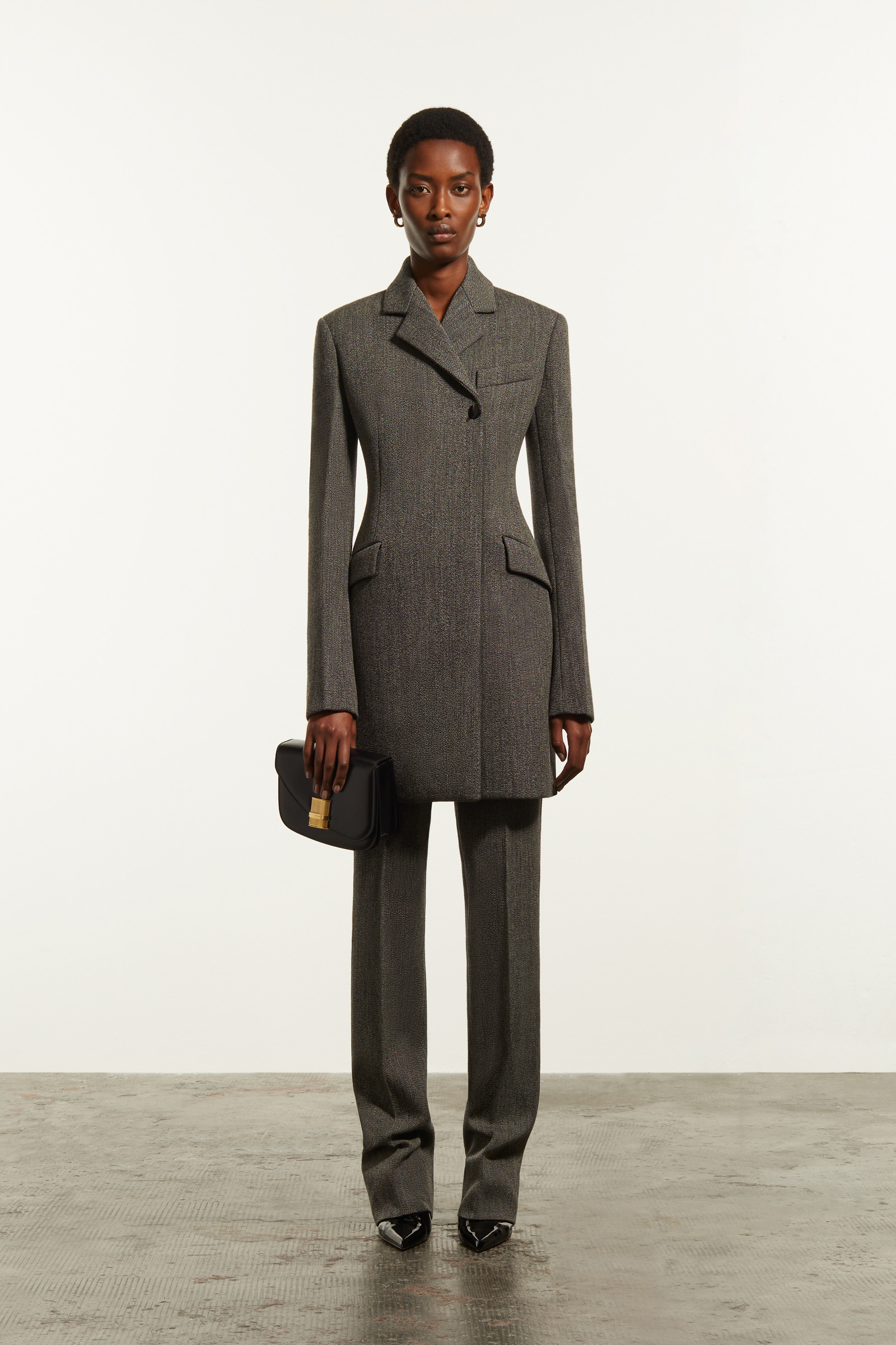 The Milanese way of dressing has also made an impression on him. “When I moved here, I was amazed at the sophistication of how people present themselves even in the street, at work, or at home.” A friend once said that Milanese women dress like men by day and like sirens by night. Davis certainly picked up on the sense of restrained elegance, but he was also perceptive of that subtly seductive side. What he brings to today’s version of Ferragamo is a sort of rigorous sensualism, pivoting on exact, modern tailoring inflected with a luxe indulgence.