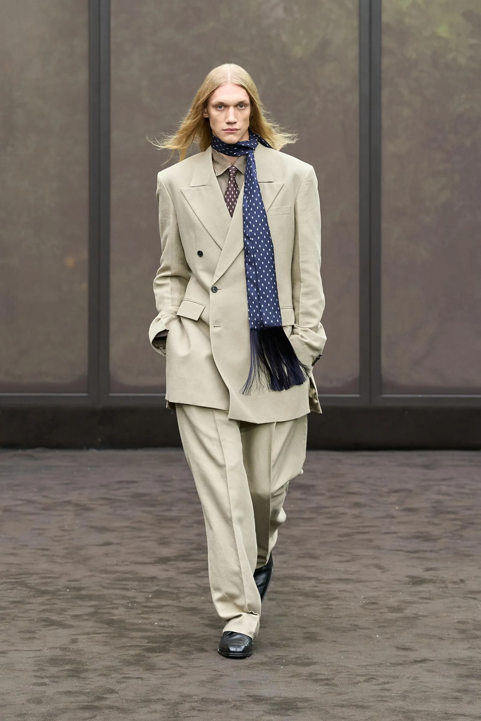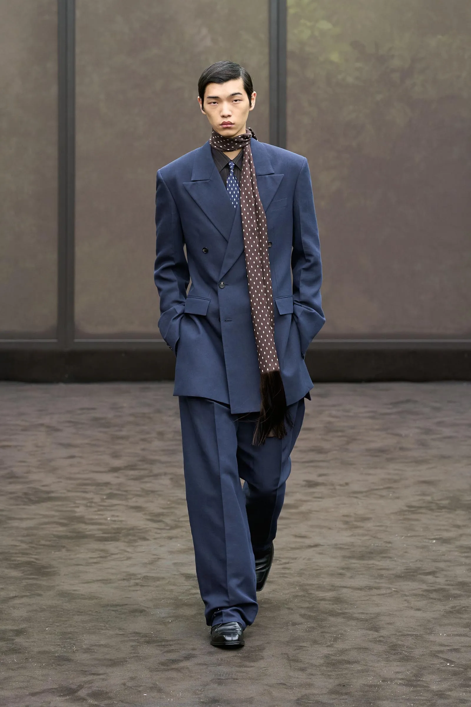Davis’s creative eye settled on design prompts including a 1925 shot of silent-screen actress Lola Todd in head-to-toe leopard print, which linked to a Davis-cited Ferragamo shoe in leopard from the same period. He said he thought about the adoption of “exotic” codes in relation to the dawn of the Jazz Age, mentioning the Harlem Renaissance, Josephine Baker, and the (slightly later) space-taking proportions of the zoot suit.