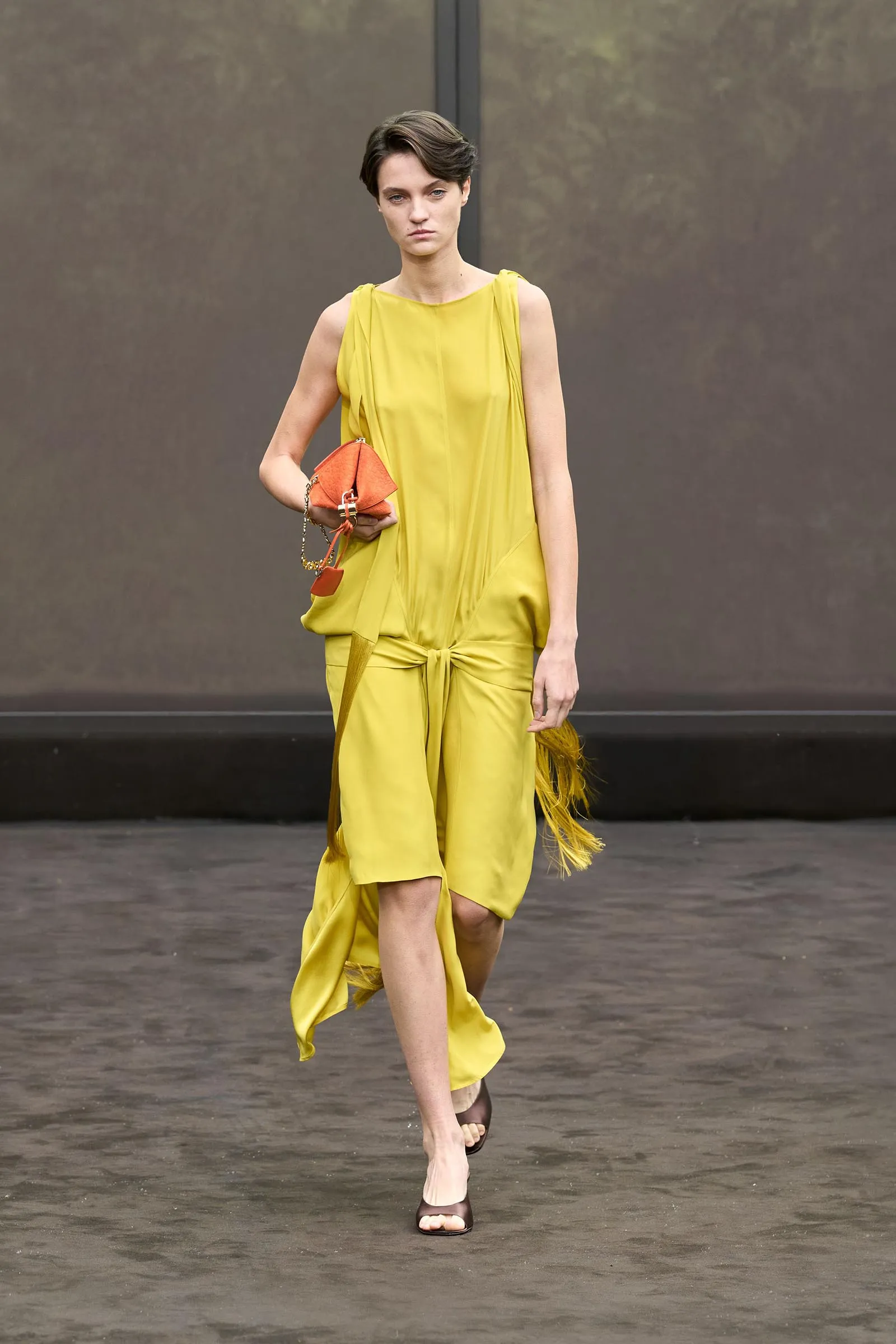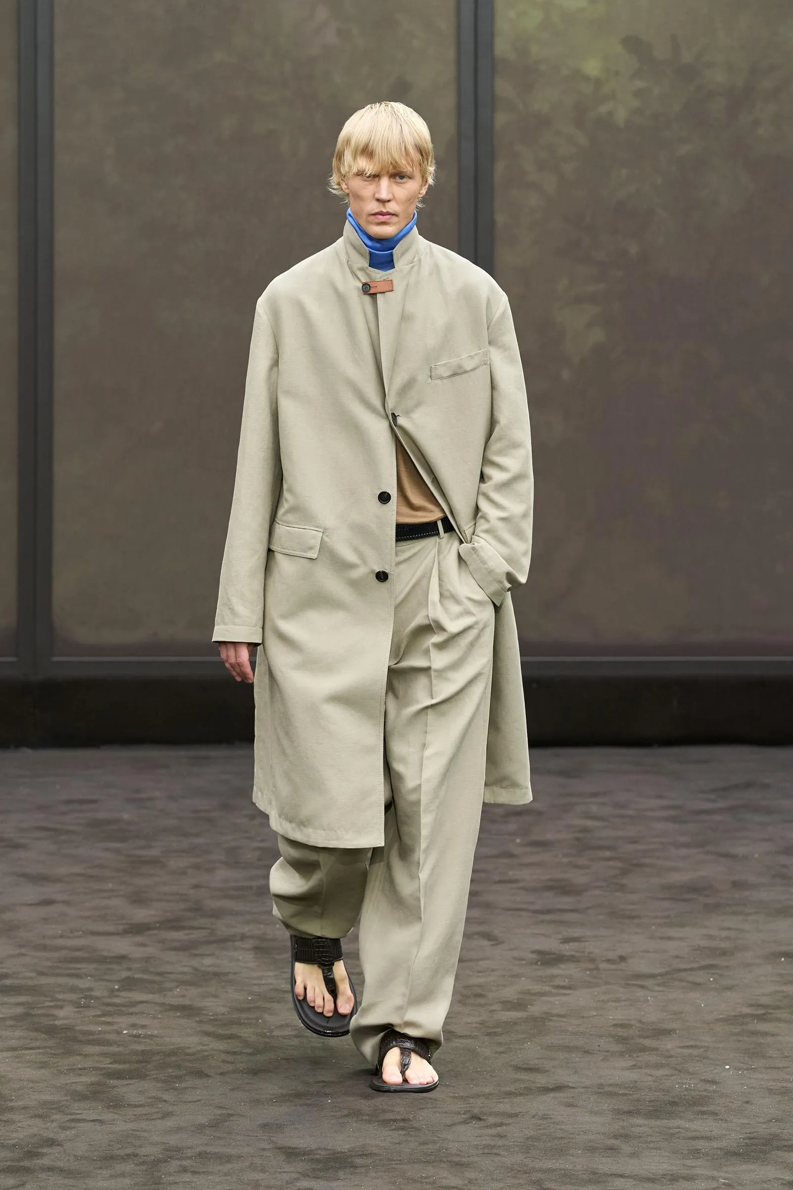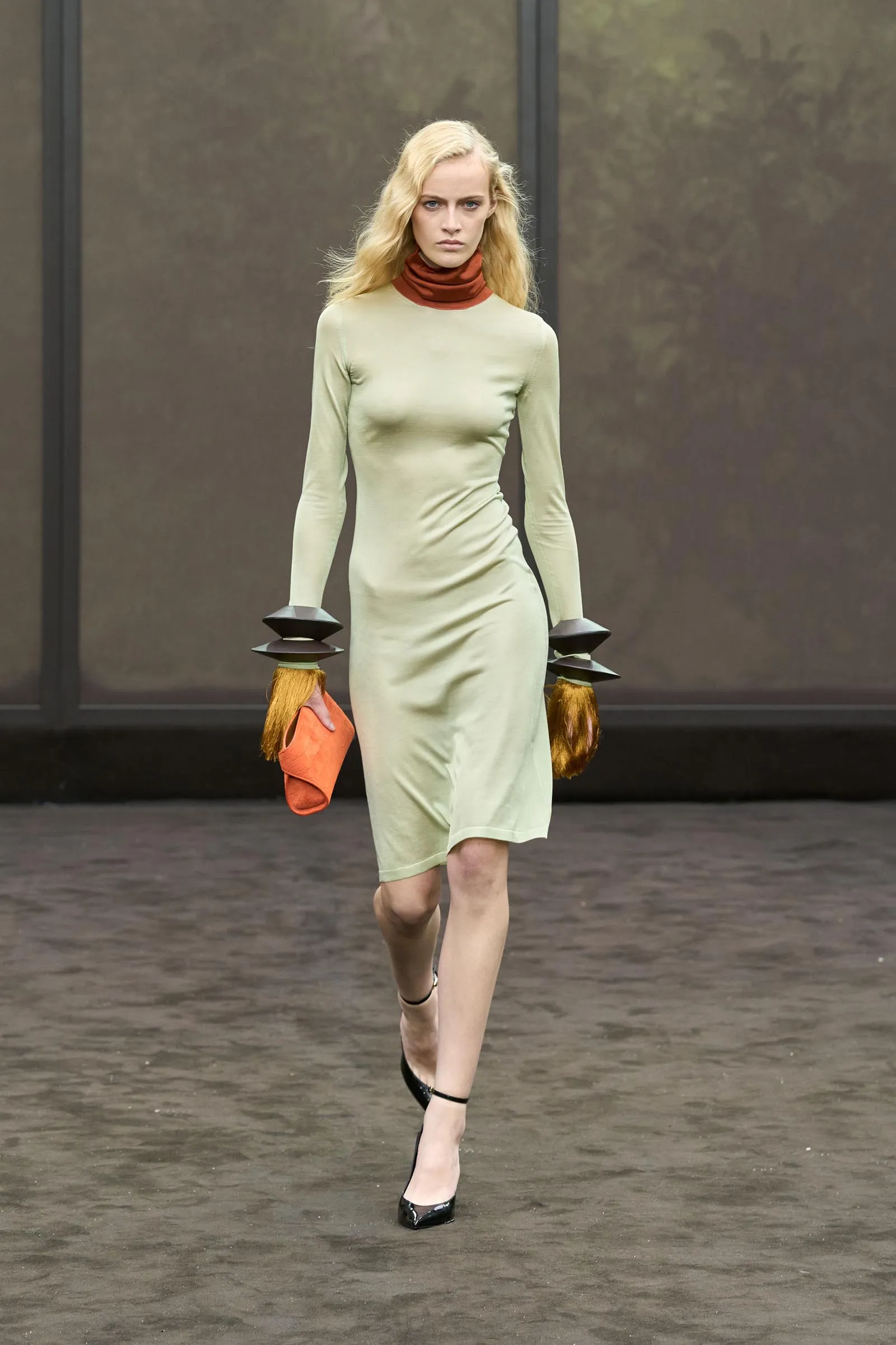 Davis’s return to his starting point this morning saw his original damp red-sand runway replaced with a waterlogged black carpet: Both shows just missed the rain. His elevator pitch for the collection was “exploring Ferragamo’s connection to Africana in the 1920s.” That decade was when the company’s founder, an immigrant from Campania named Salvatore Ferragamo, built a thriving shoe shop in Los Angeles, making shoes for movie stars and movie productions. After a car accident, however, Salvatore returned to his homeland in 1927 in order to try to build a business that could produce handmade shoes at scale.