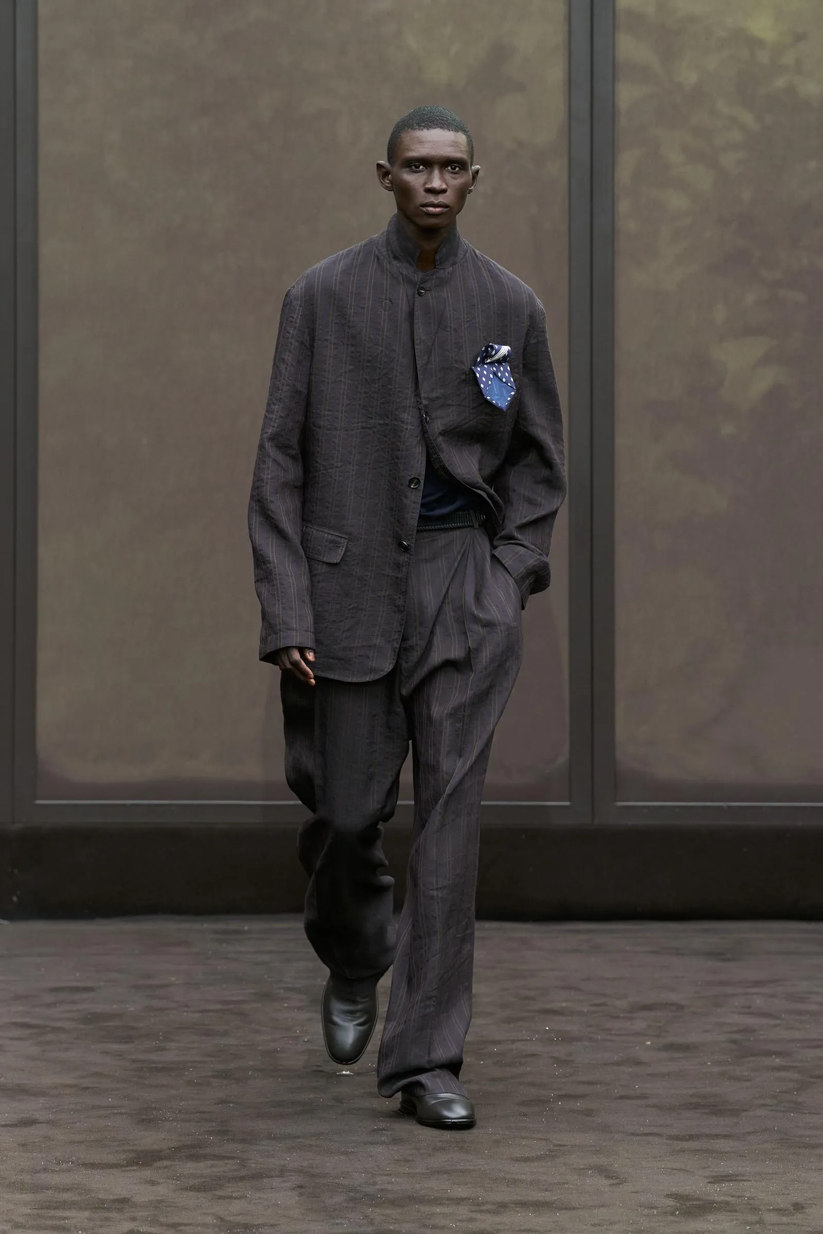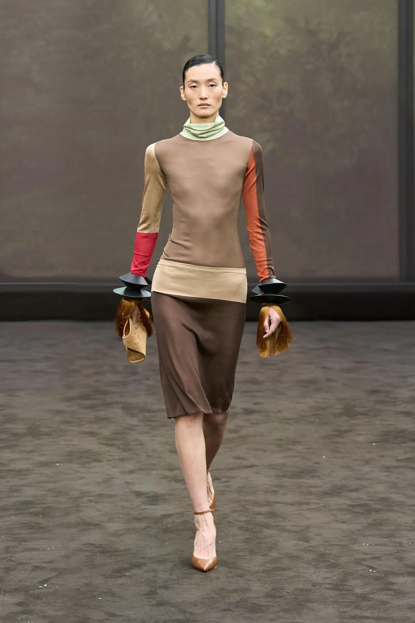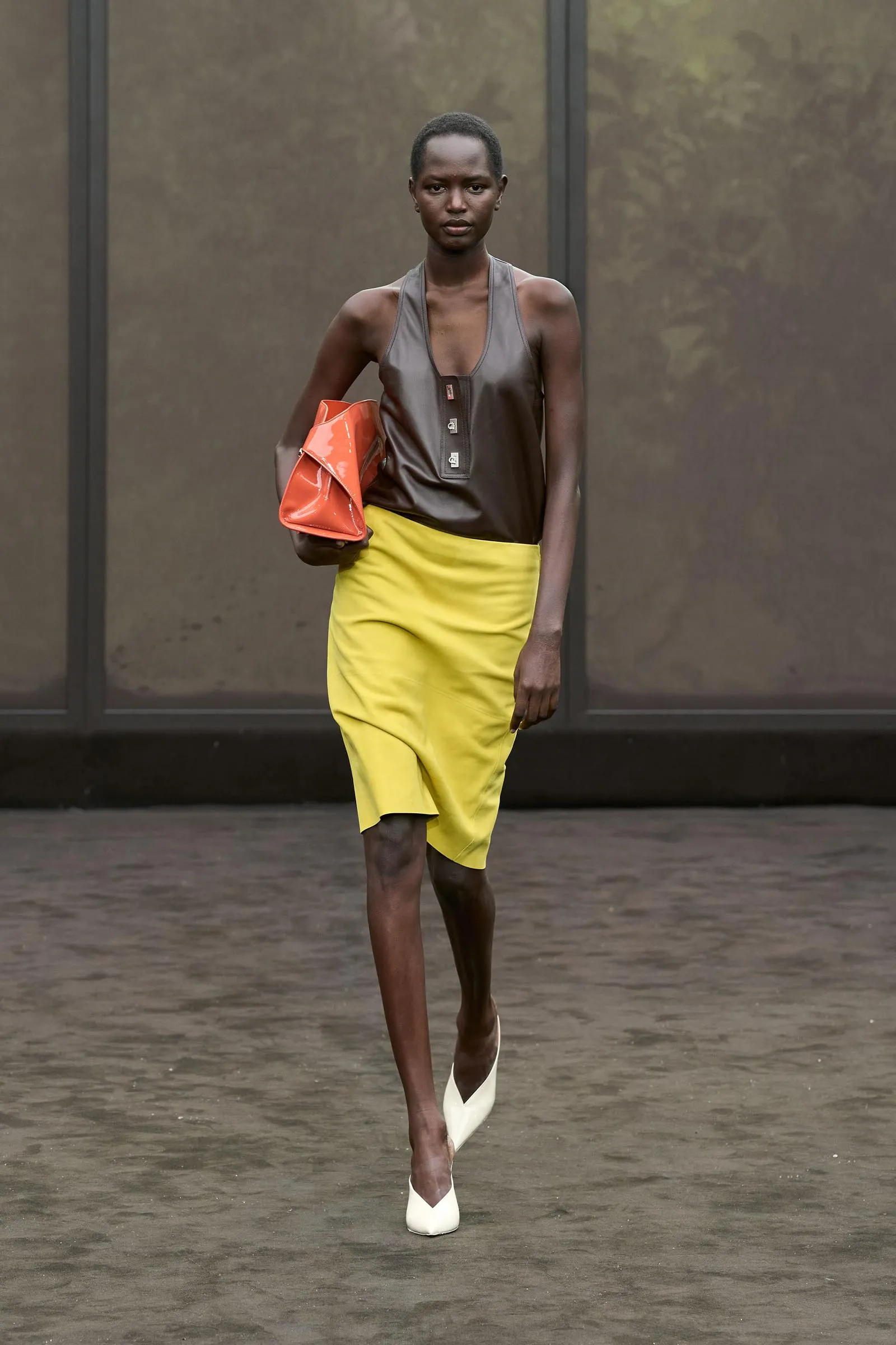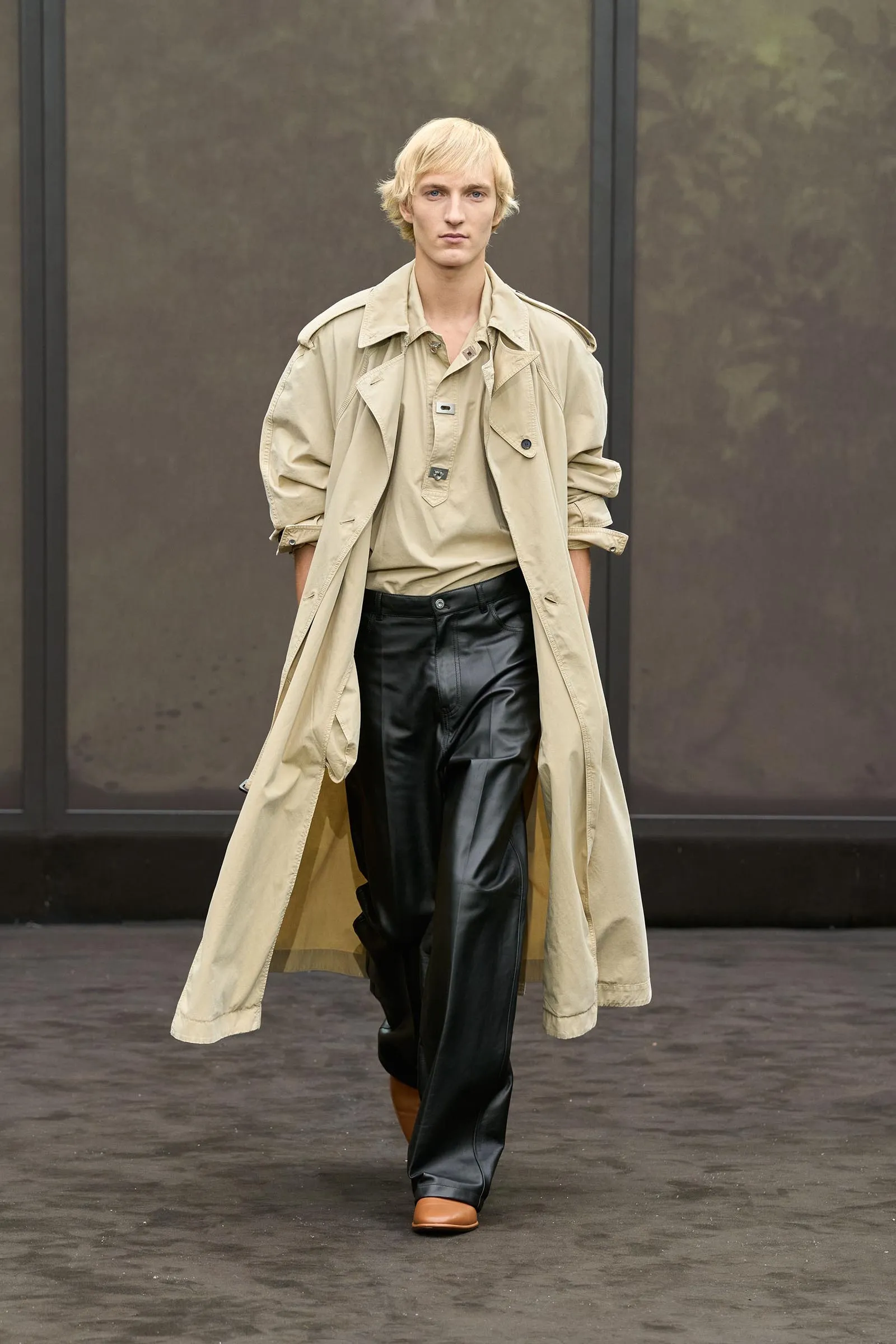 Davis’s return to his starting point this morning saw his original damp red-sand runway replaced with a waterlogged black carpet: Both shows just missed the rain. His elevator pitch for the collection was “exploring Ferragamo’s connection to Africana in the 1920s.” That decade was when the company’s founder, an immigrant from Campania named Salvatore Ferragamo, built a thriving shoe shop in Los Angeles, making shoes for movie stars and movie productions. After a car accident, however, Salvatore returned to his homeland in 1927 in order to try to build a business that could produce handmade shoes at scale.