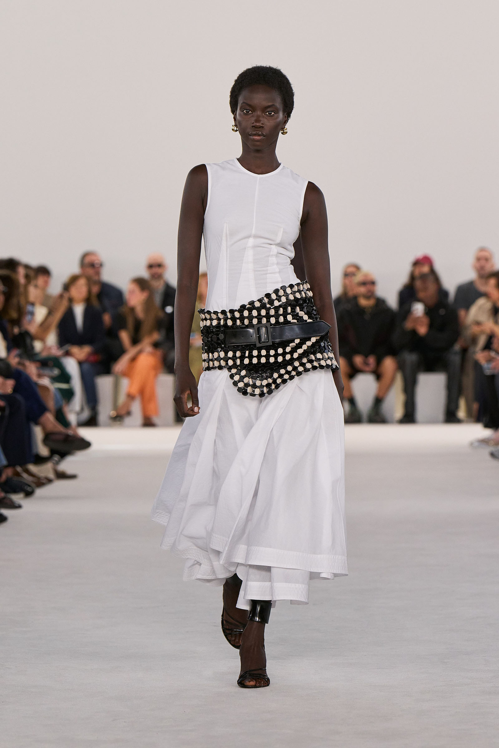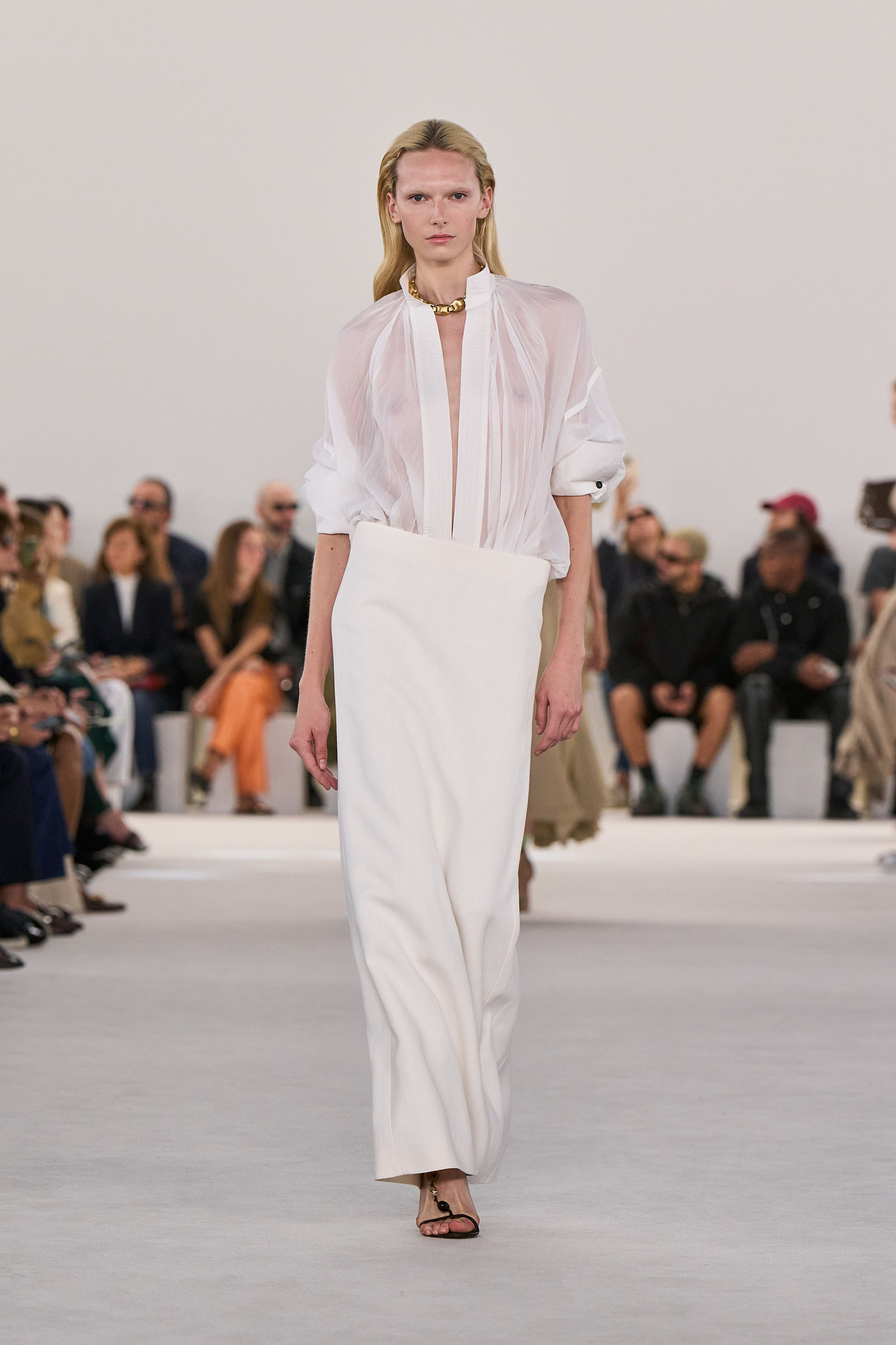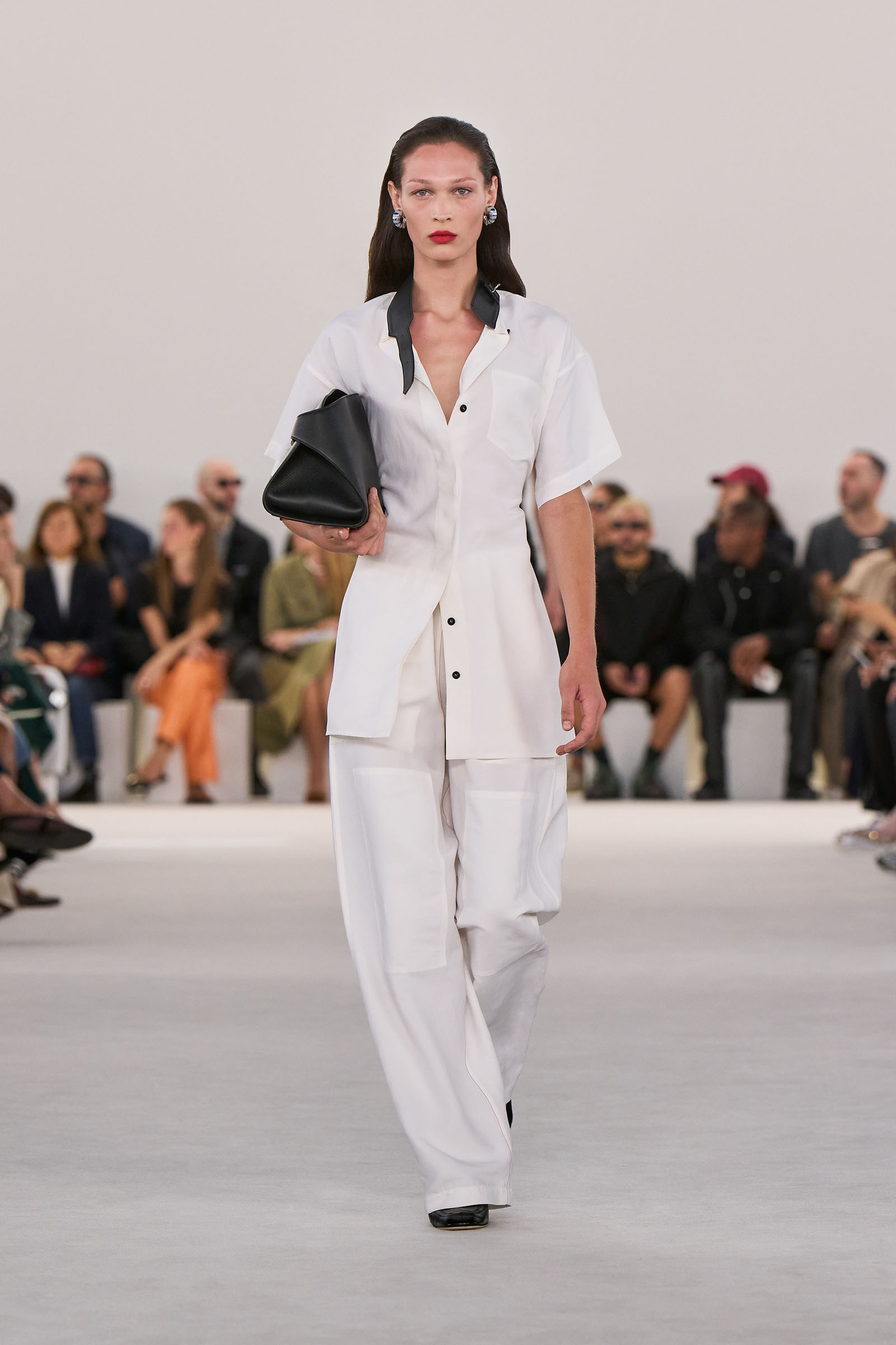 No visible Gancini, no trumpeted Hollywood angle, no oversized cutout bags—and, Look 29 aside, what ever happened to Ferragamo red? Now three shows in, Maximilian Davis is learning while doing: Along the way, he seems wisely unafraid to change elements in his direction in order to steer Ferragamo to the destination it craves. The result this morning was in various ways his most interesting and appealing collection for the house so far.