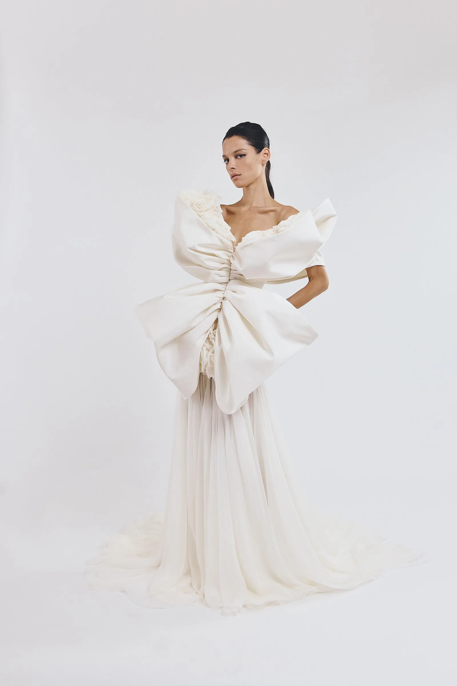 Not every designer can say their couture show doubled as an epilogue to being knighted by the French Republic, but not every designer is Giambattista Valli. Tonight, being named Officier des Arts et des Lettres by French Minister of Culture Rachida Dati, Valli managed to turn his haute couture presentation into a full-blown fashion coronation. Held in his chic headquarters, the celebration unfolded like a love letter to Parisian glamour, complete with his inner circle of Valli Girls in tow. Giovanna Engelbert, Eugenie Niarchos, Lauren Santo Domingo, Sabine Getty, and, of course, his muse-in-chief Bianca Brandolini all turned up to support him. Introduced by Suzy Menkes, Valli accepted the honor with a heartfelt speech, in which he paid tribute to his atelier, his family, and to the spirit of France, where, as he put it, he discovered the essence of the liberated woman: “independent, vibrant, audacious, unapologetic, and unburdened. A woman who fully embraces her personality, who finds balance within herself. A woman whose power is real, yet soft and elegant. Drawing her strength from the gentleness of grace and the power of intelligence. What I often call: a brain… with legs.”