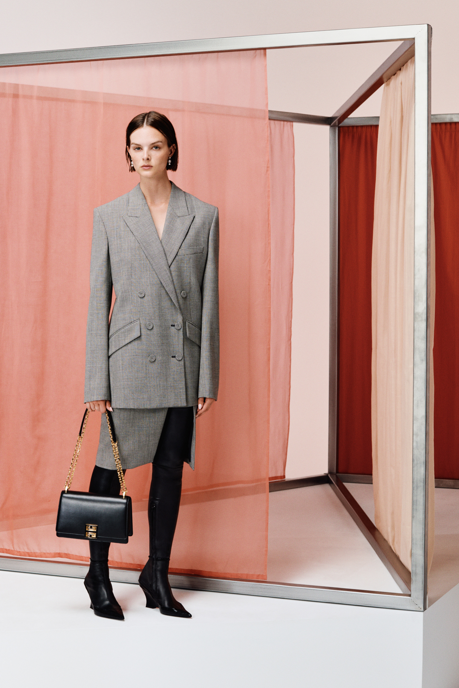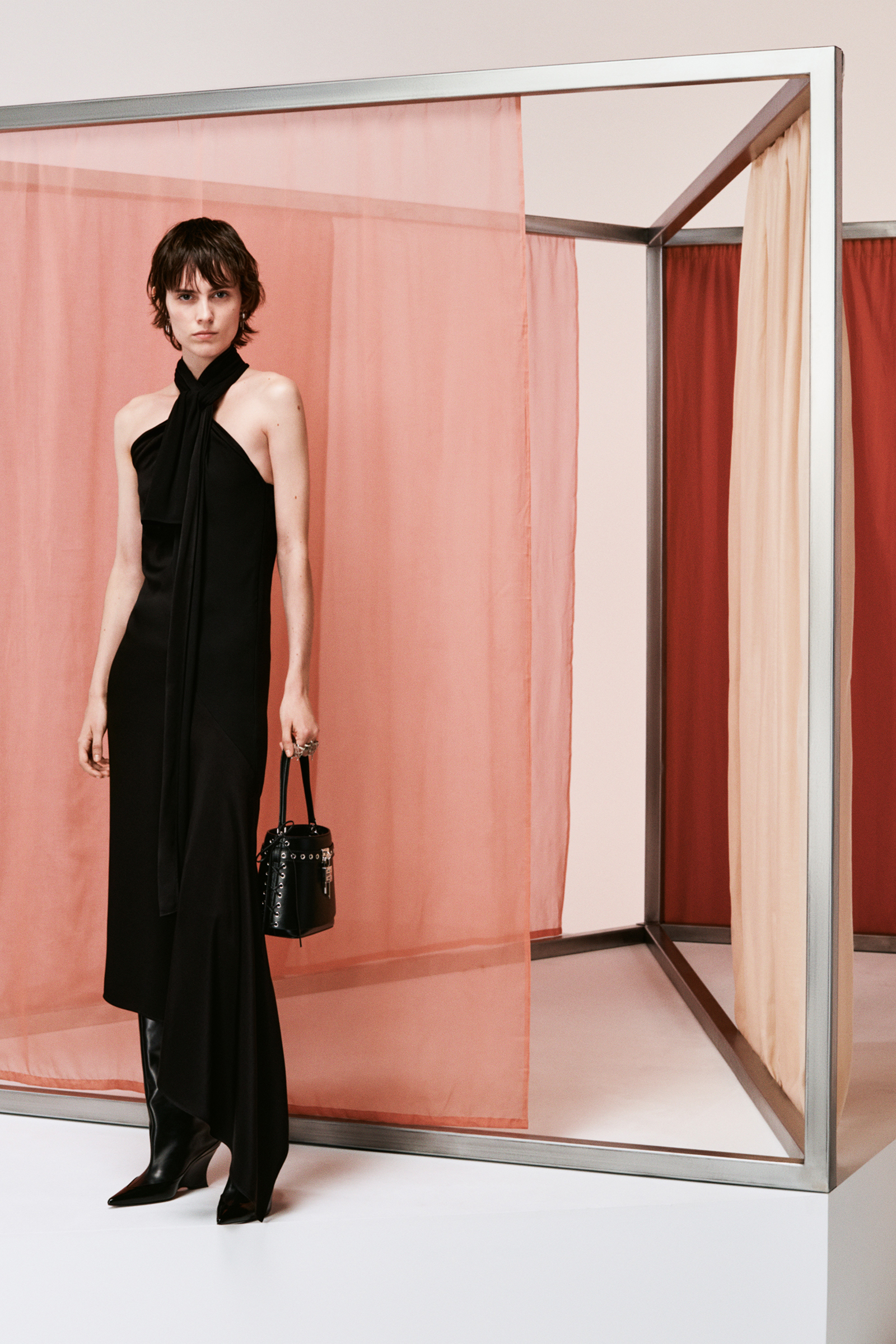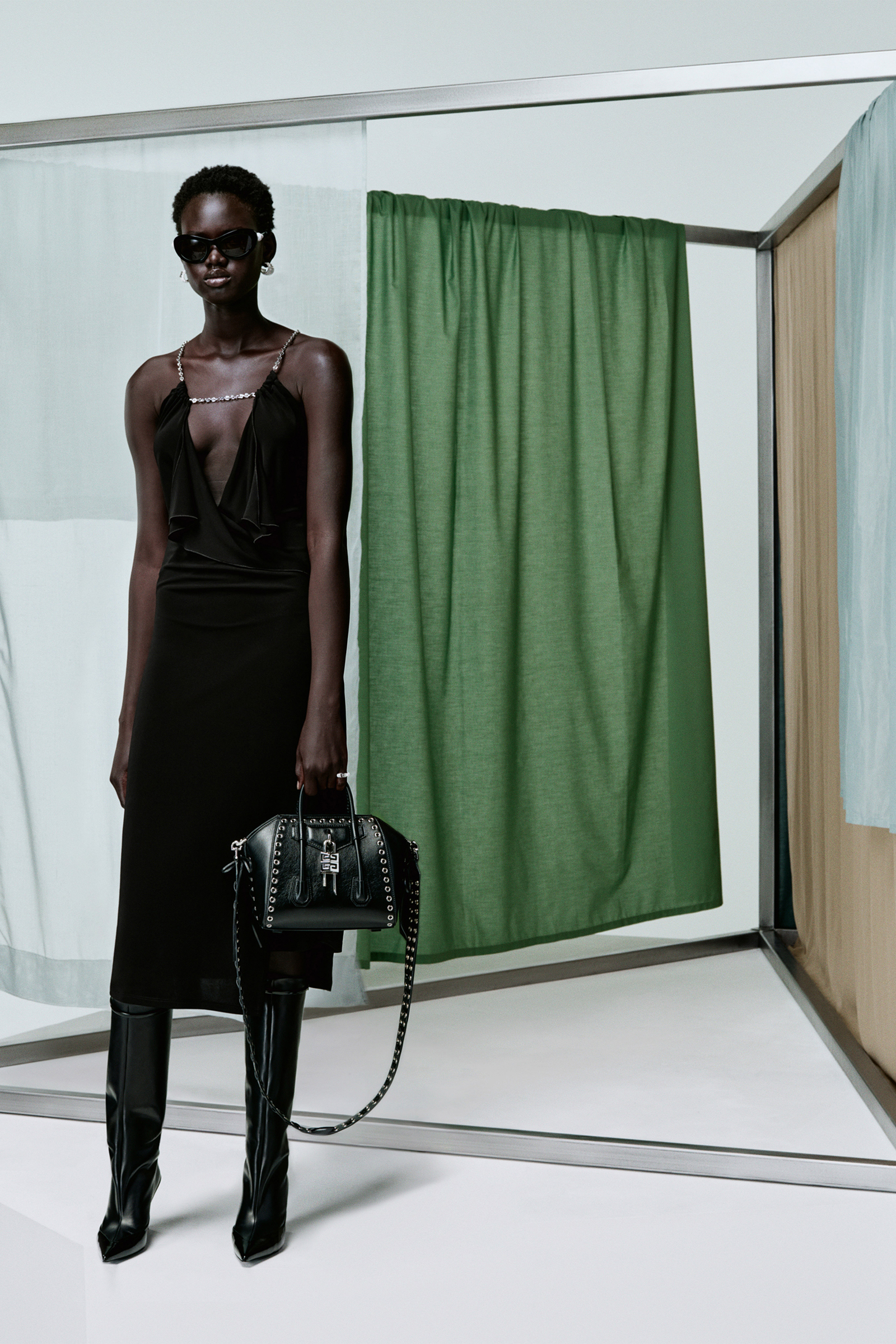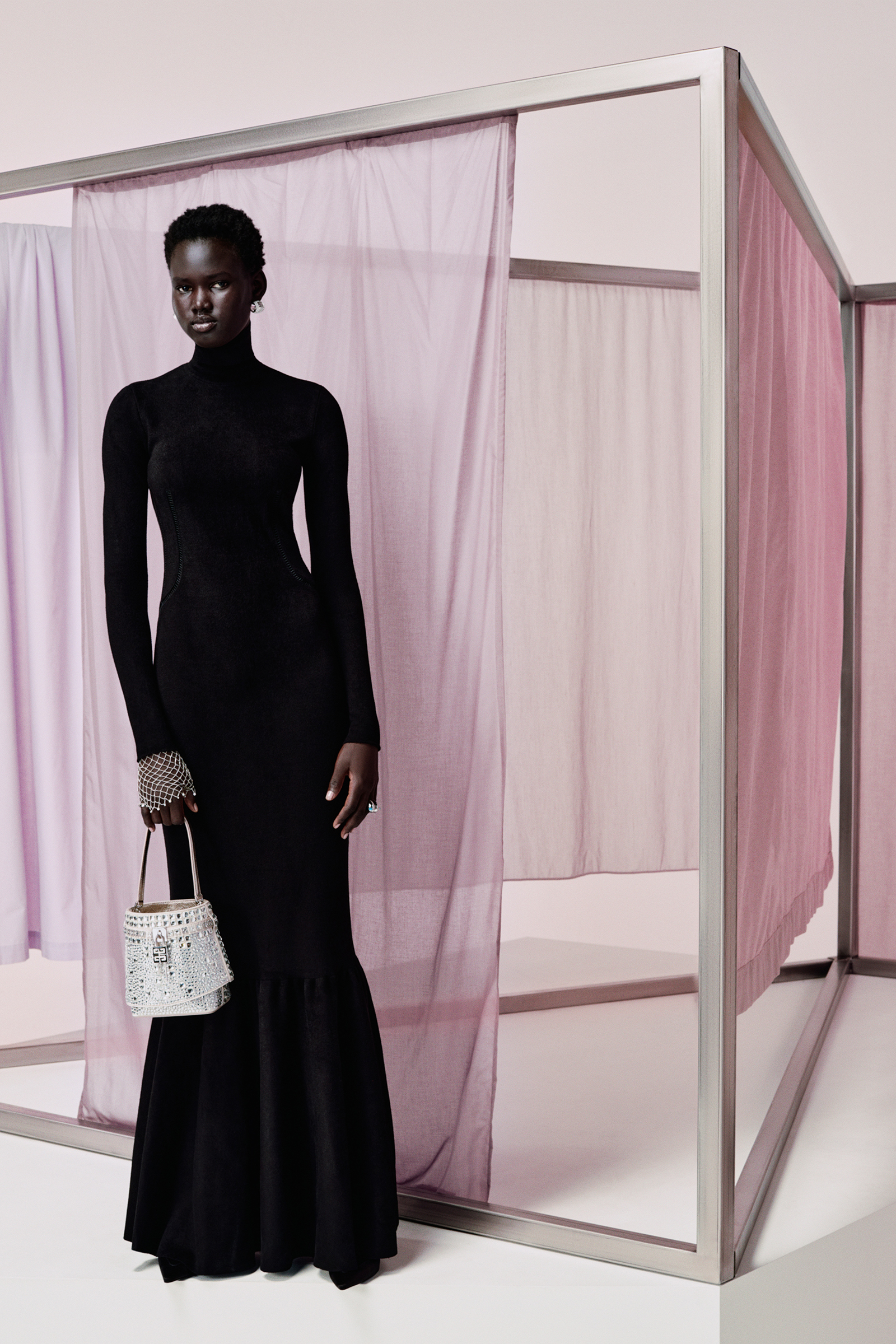 When it comes to womenswear, Givenchy’s heritage is up there in the pantheon. And wisely, Matthew M. Williams has of late become much more engaged with the specific archival codes of his original predecessor. This resort duly included a series of prettily and precisely draped evening dresses in confectionary colors. Added to these riffs on Hubert’s classical and sometimes almost minimal mid-20th century womenswear silhouettes, realized in new-century materials, were contemporary accessories including Voyou bags and footwear including Cowboy Shark boots. The combination created a sort of fashion time-travel impression: Audrey Hepburn in a Tik Tok by Hitchcock.