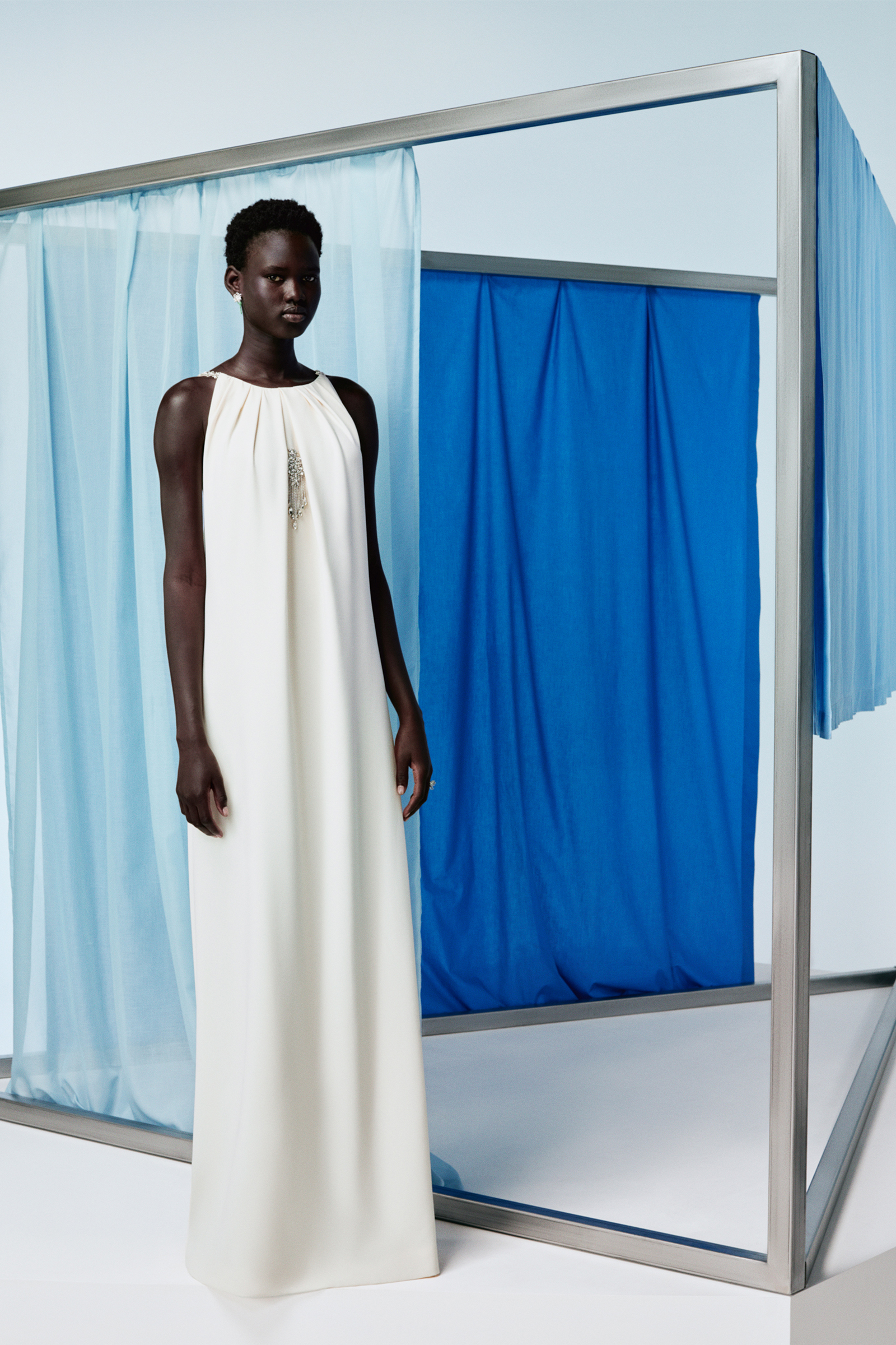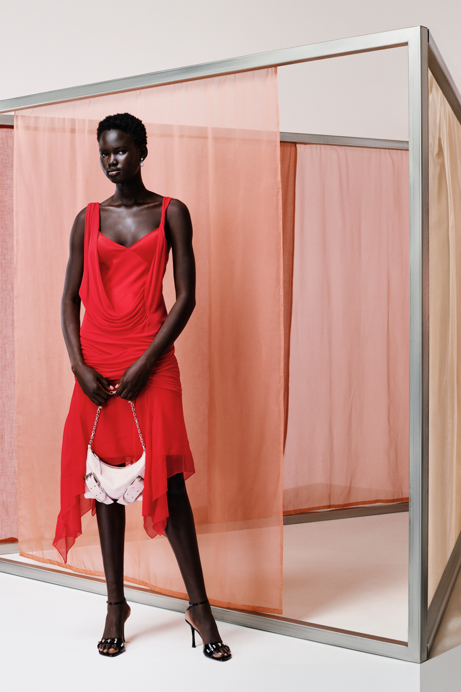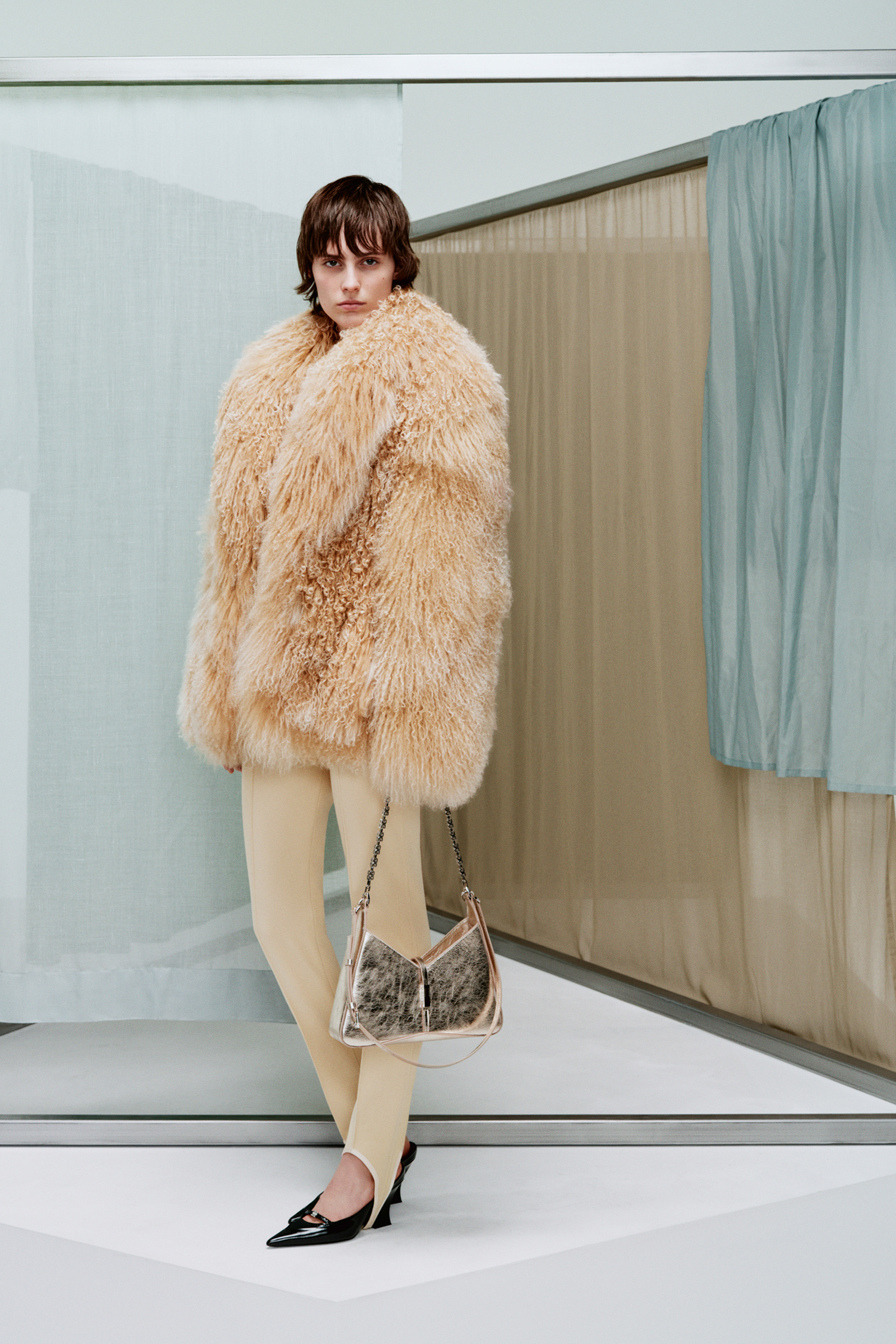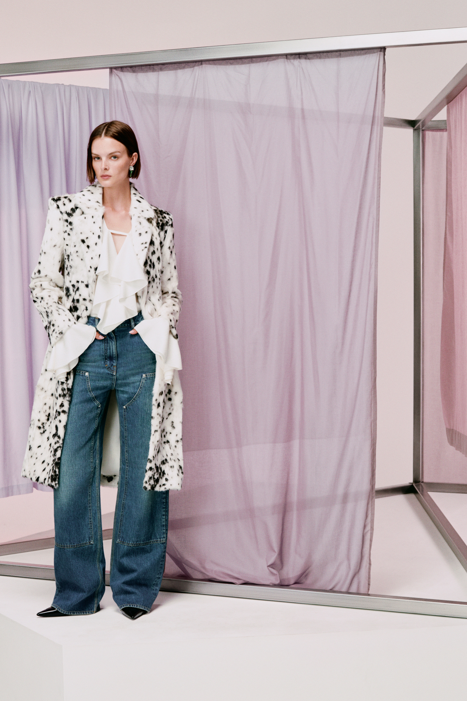 When it comes to womenswear, Givenchy’s heritage is up there in the pantheon. And wisely, Matthew M. Williams has of late become much more engaged with the specific archival codes of his original predecessor. This resort duly included a series of prettily and precisely draped evening dresses in confectionary colors. Added to these riffs on Hubert’s classical and sometimes almost minimal mid-20th century womenswear silhouettes, realized in new-century materials, were contemporary accessories including Voyou bags and footwear including Cowboy Shark boots. The combination created a sort of fashion time-travel impression: Audrey Hepburn in a Tik Tok by Hitchcock.