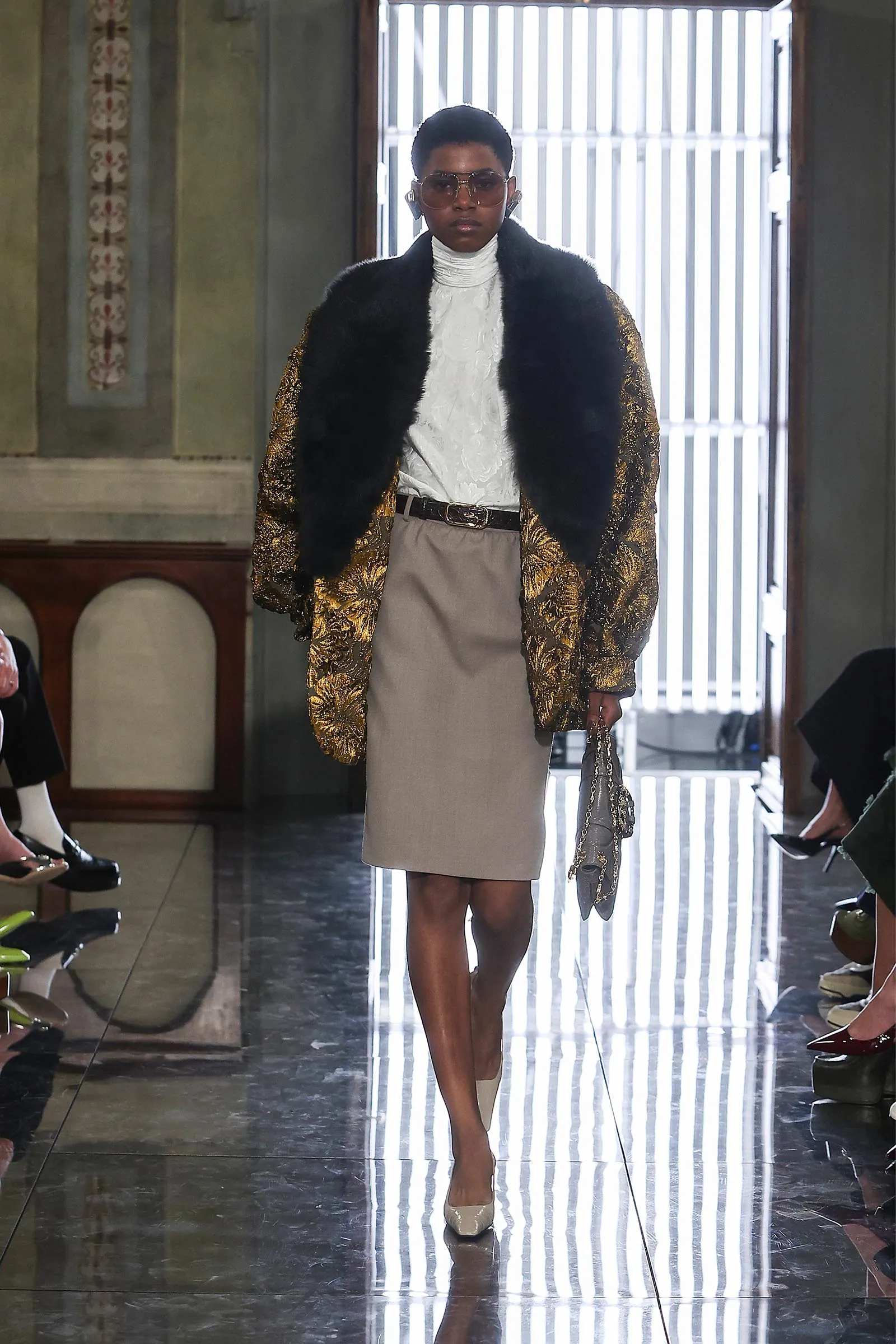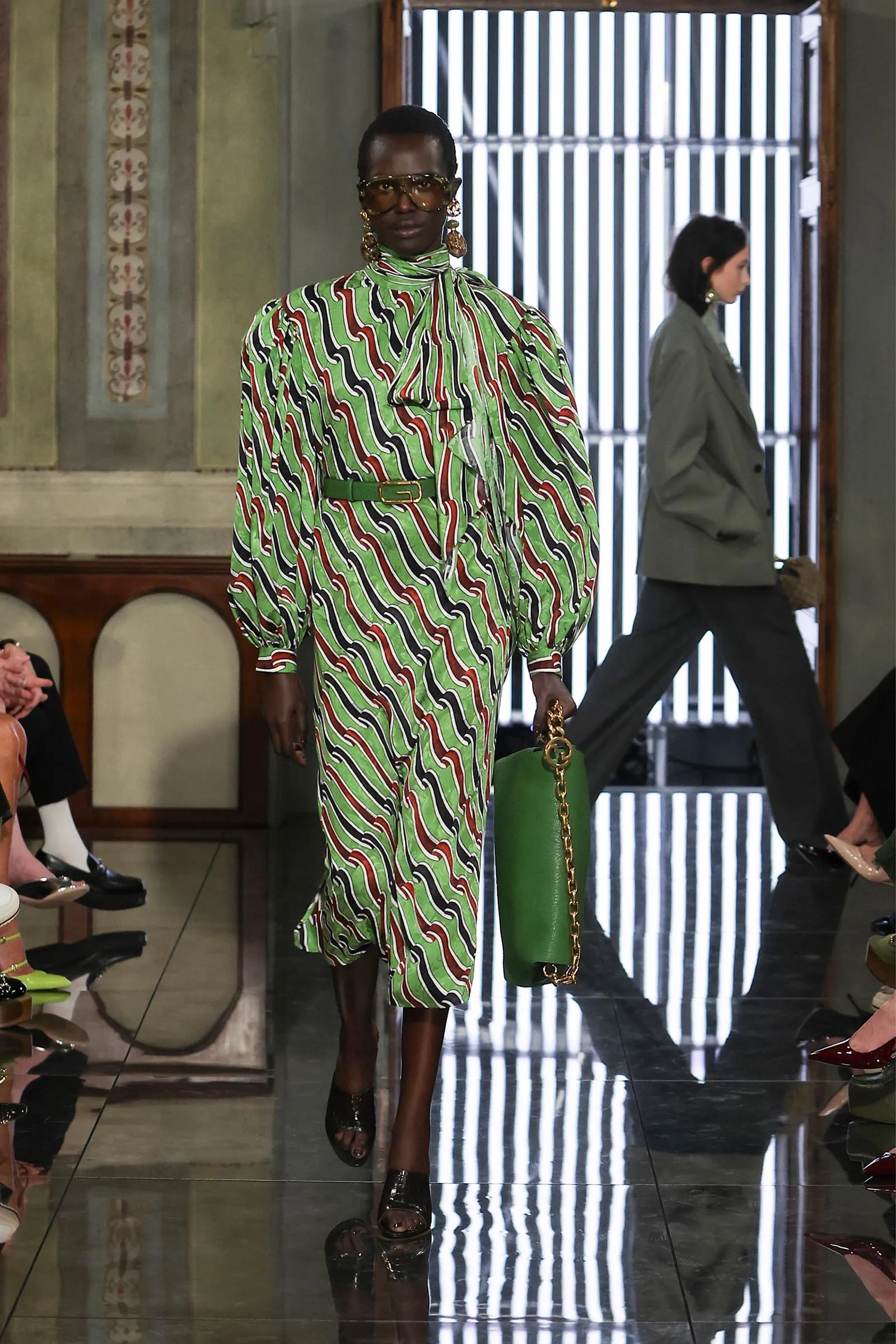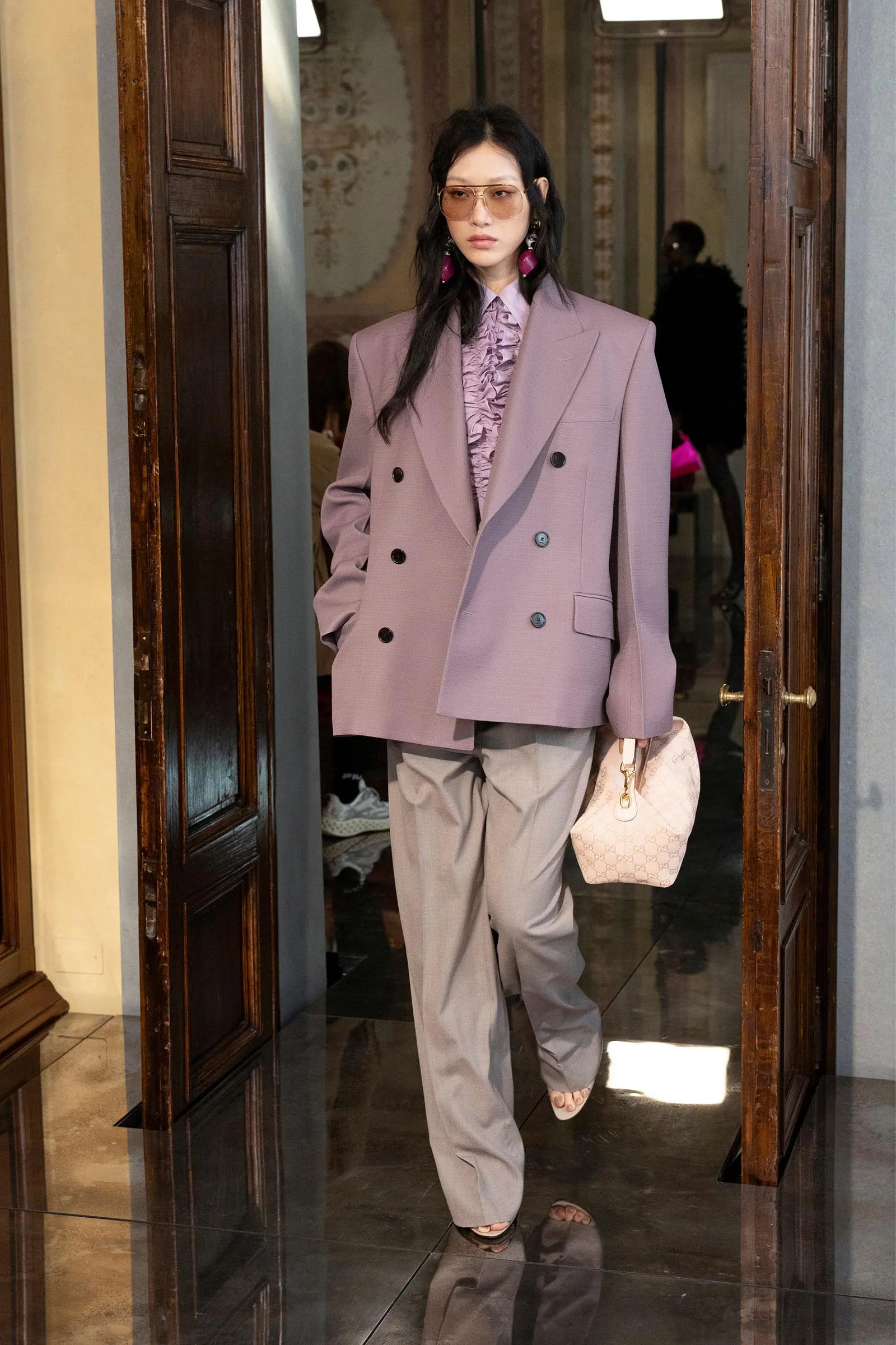 After that first show Gucci’s CEO Stefano Cantino lingered on the runway. He disclosed that, from afar, Gucci’s incoming artistic director Demna was—as you would expect—fully aware of its development even if not yet formally in charge.
