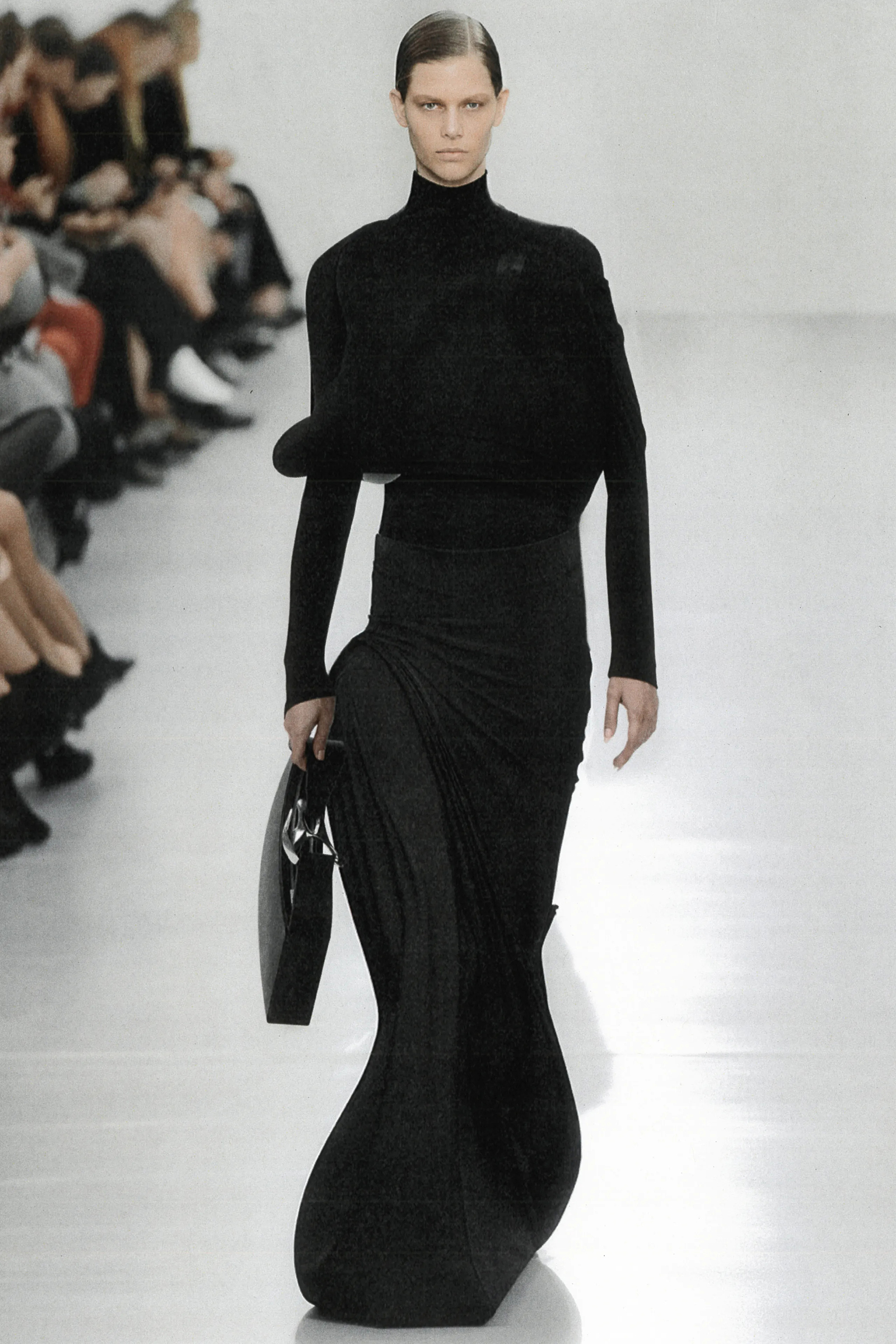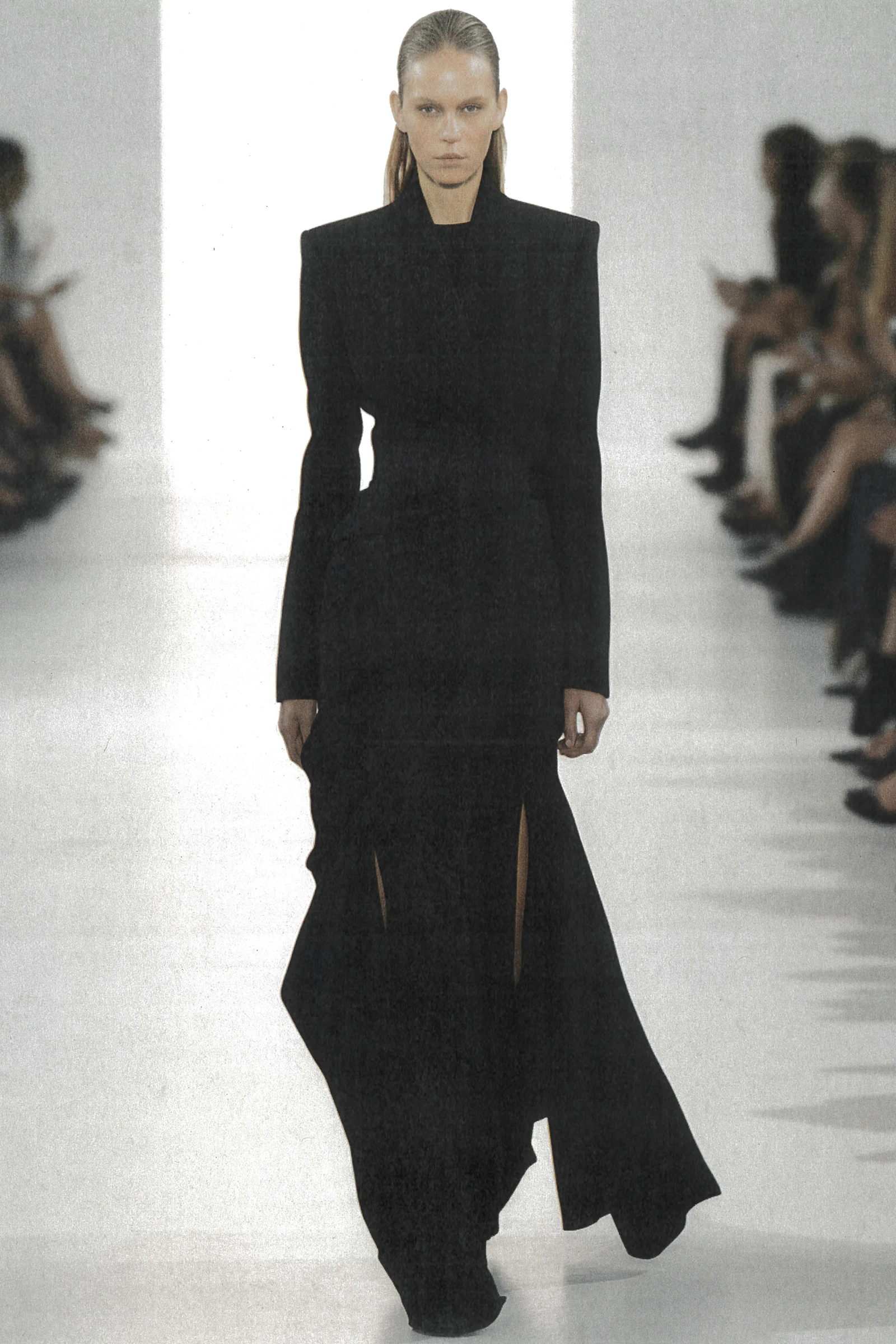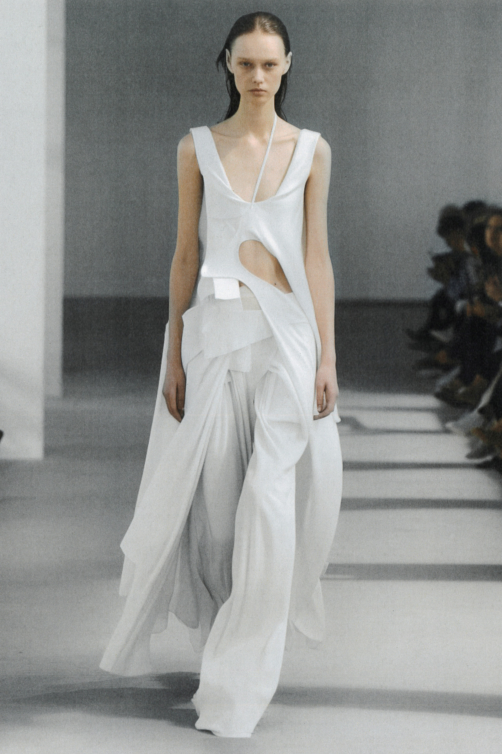 One of the workarounds Juul and team found was to make use of suspension techniques, many of which don’t visibly involve hardware. There was less (puffy) volume and more layers and draping, much of which was overcomplicated but did create a welcome sense of flou, which moved the general vibe from Rick and more in the direction of Ann 2.0. Simply put, this collection was surprisingly pretty. It was also overlong. An edit would have made the message clearer.