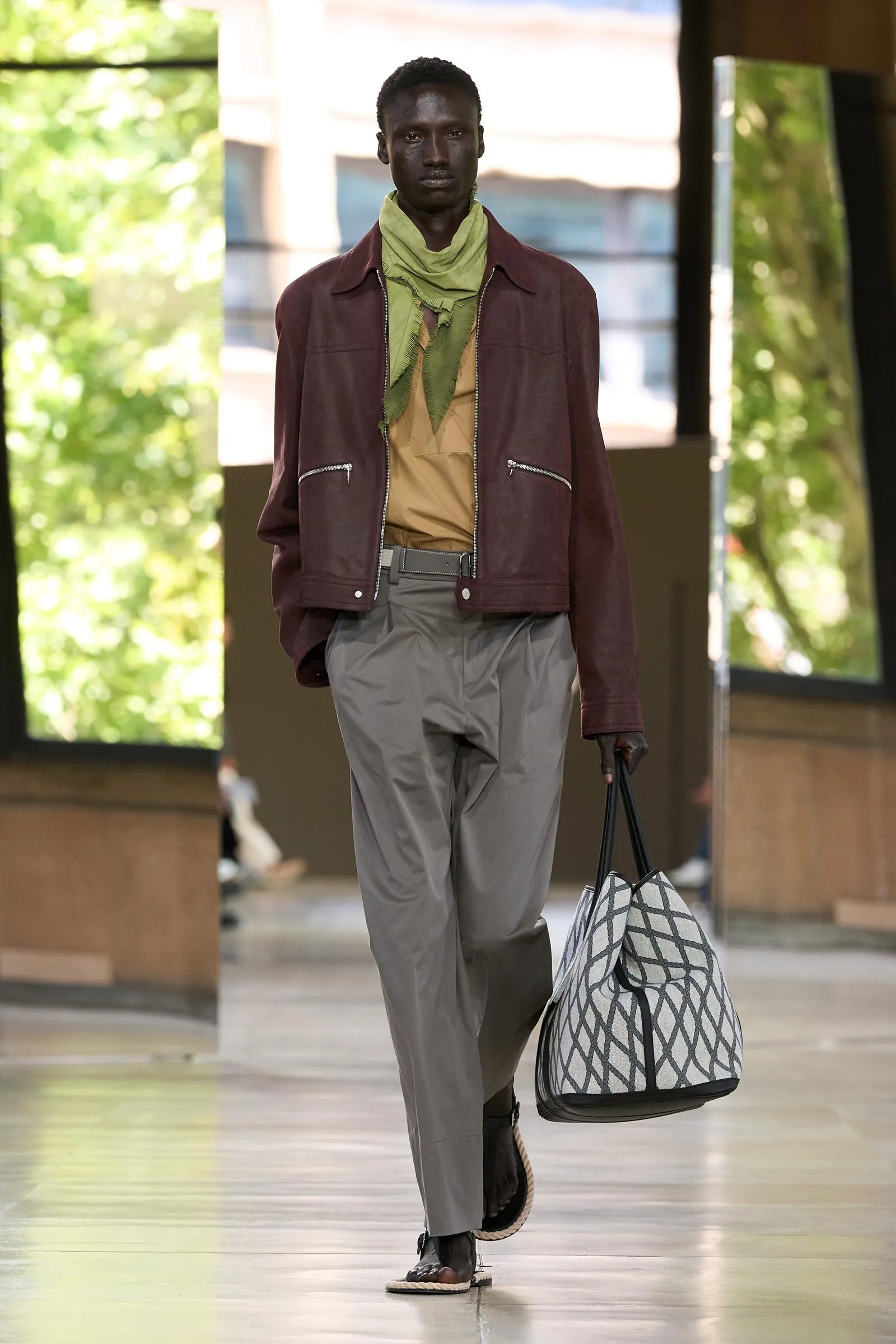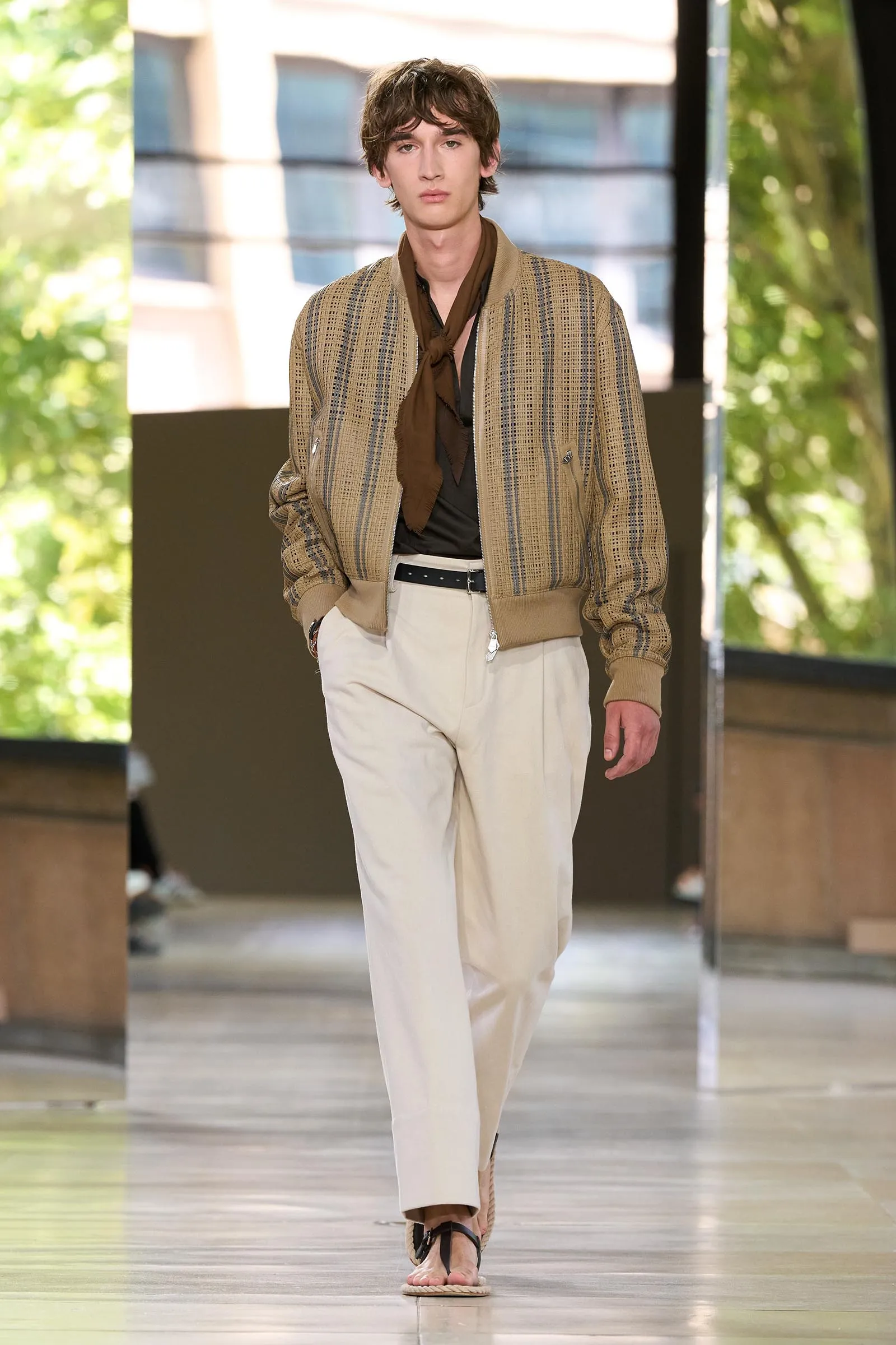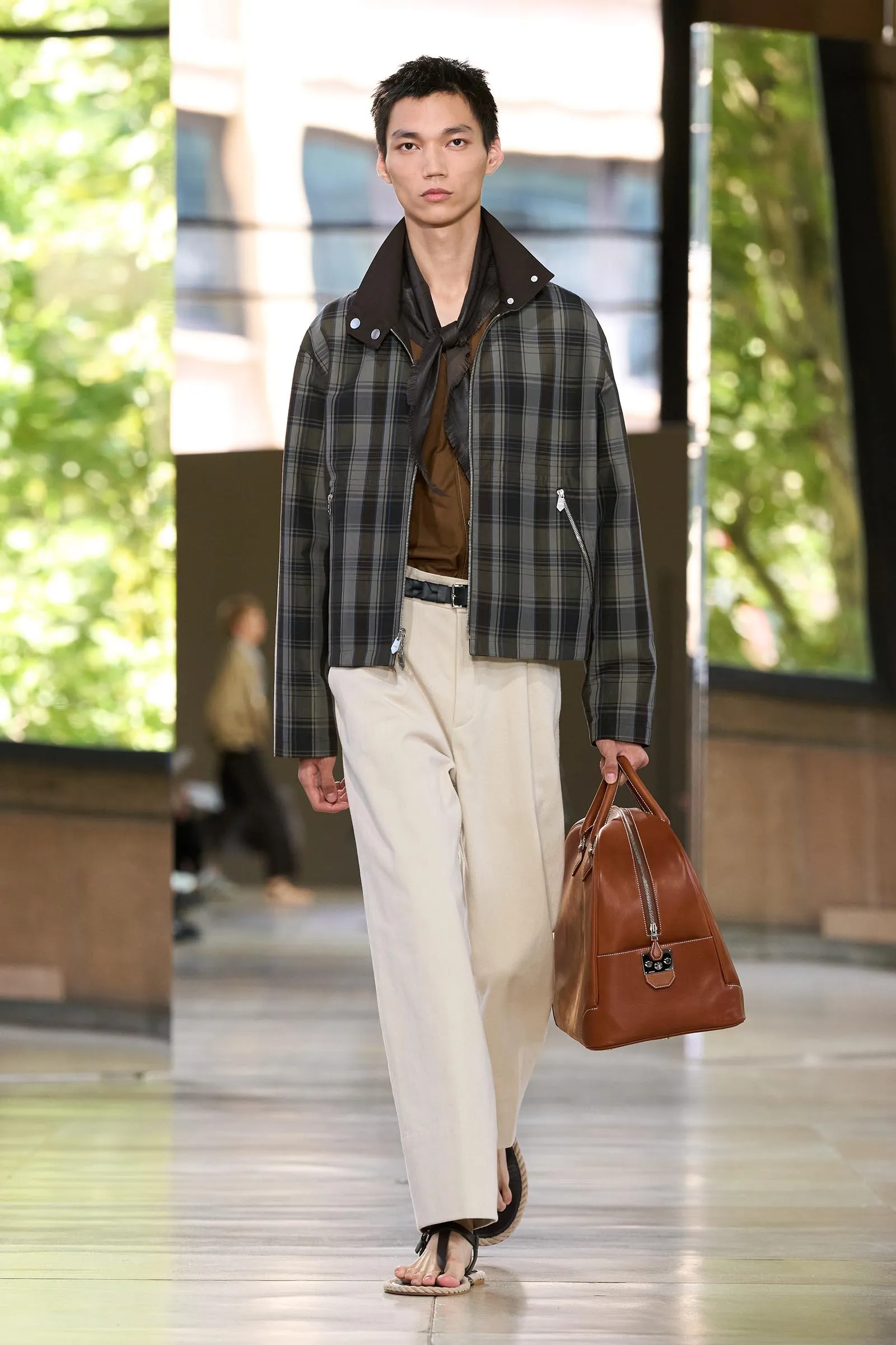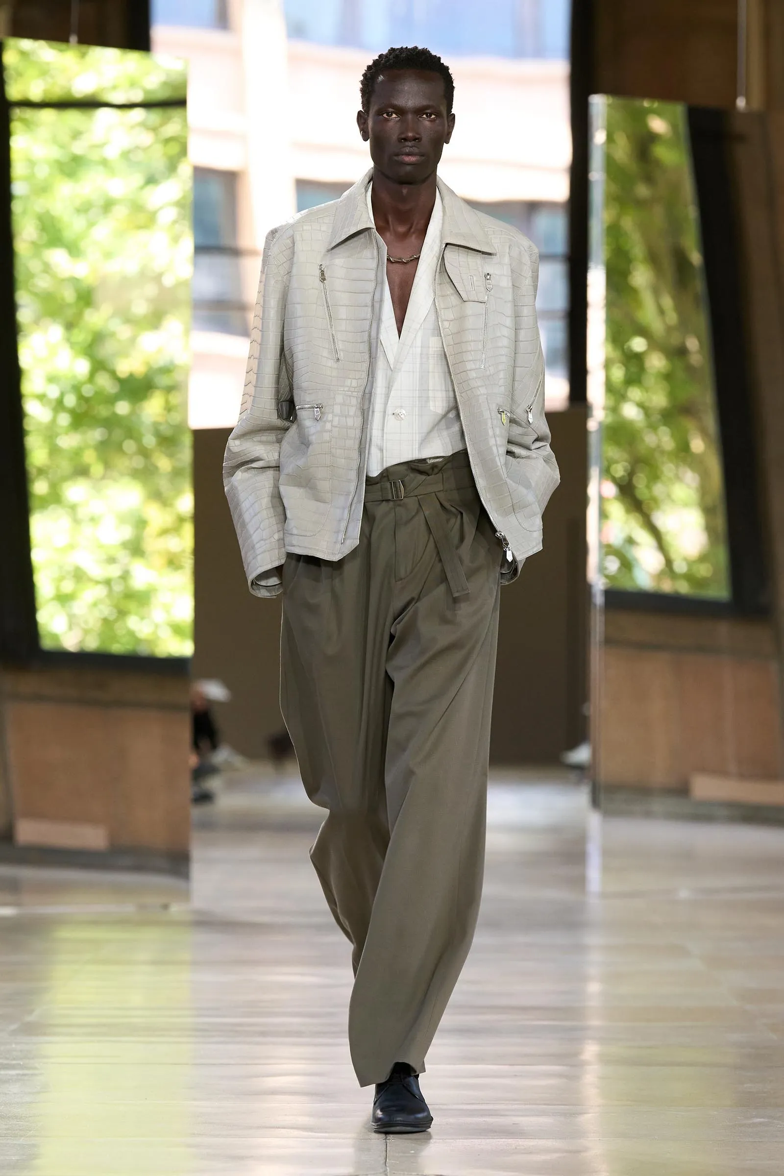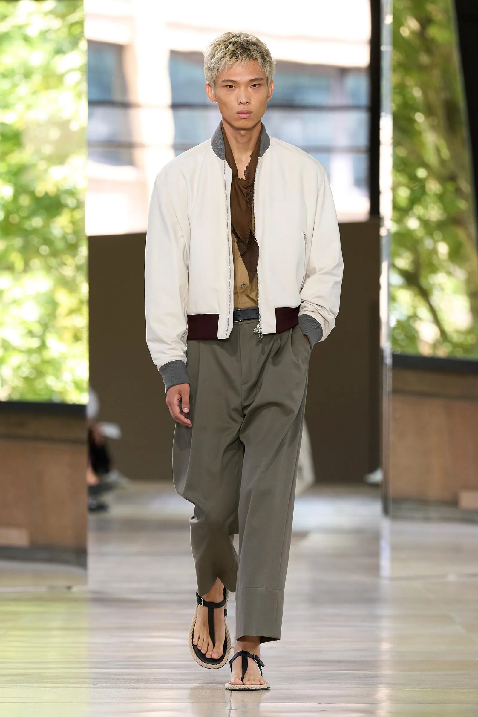 “I was looking for lightness,” Nichanian said, although, interestingly, she’d not designed it as a beachy-sporty summer vacation collection at all. Instead here was Hermès at its most Hermès: making a modern city wardrobe for a discreetly relaxed wealthy man. Mainly crafted in browns, inky-blacks and light neutrals, these were garments which passed as low-key normal but were in fact designed and made to perfection. “It’s the proportion I liked—wider trousers, shorter jackets,” Nichanian declared.