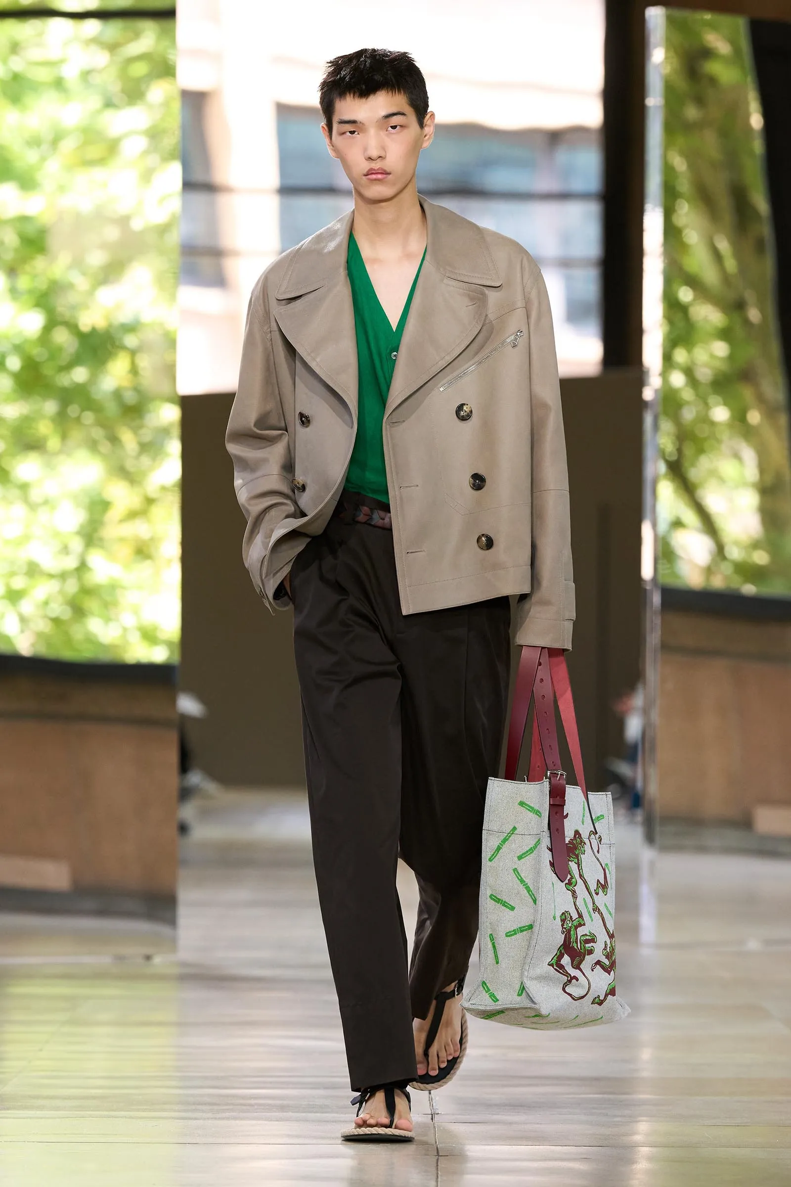 And of course, there were bags aplenty. Nichanian said she likes oversize bags for men. She’d designed totes printed with gamboling monkeys “just for fun,” and other iterations of weekend bags. One seemed to be an almost triple-decker tan Birkin bag variant. He certainly has no money worries, this nice cool Hermès guy.
