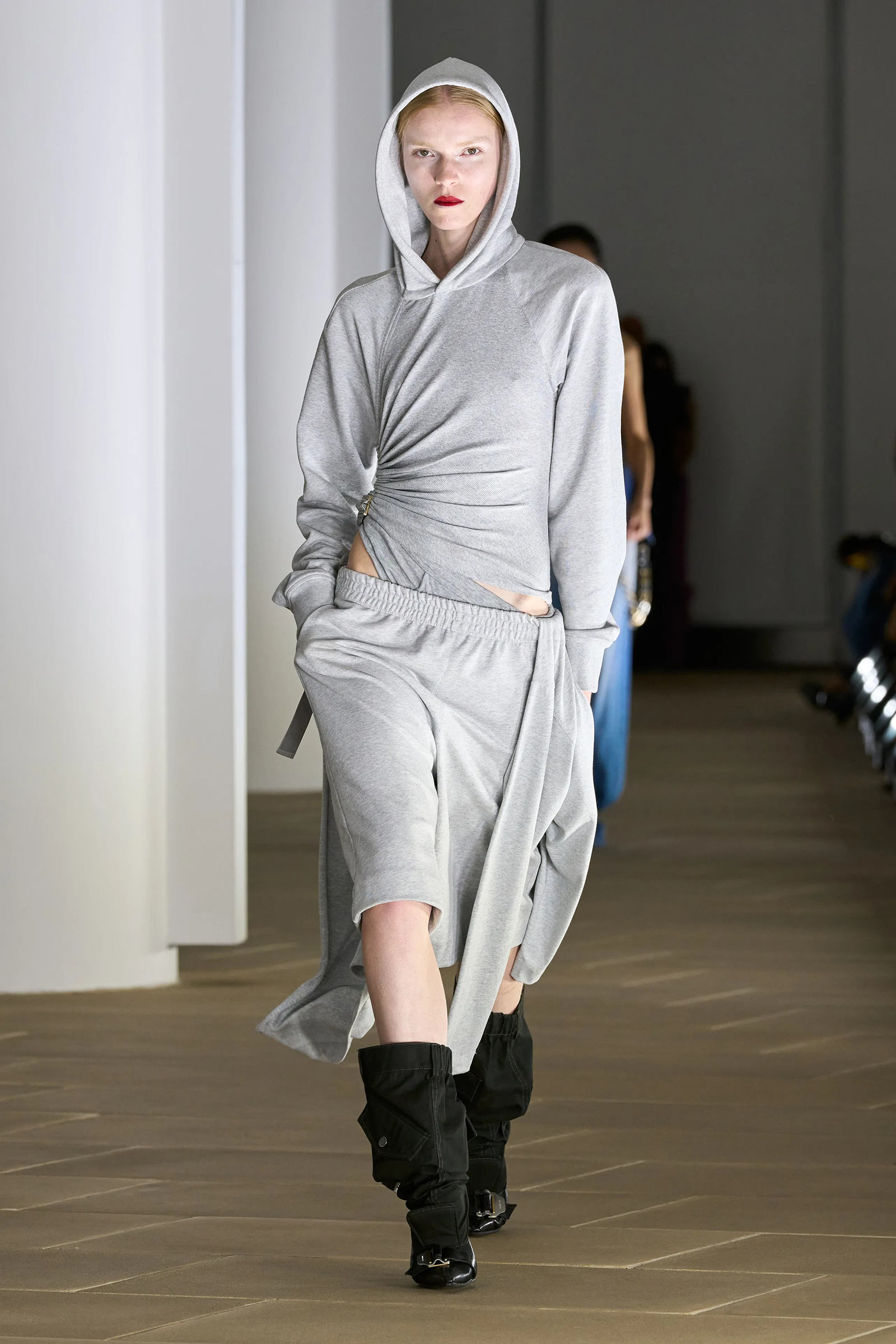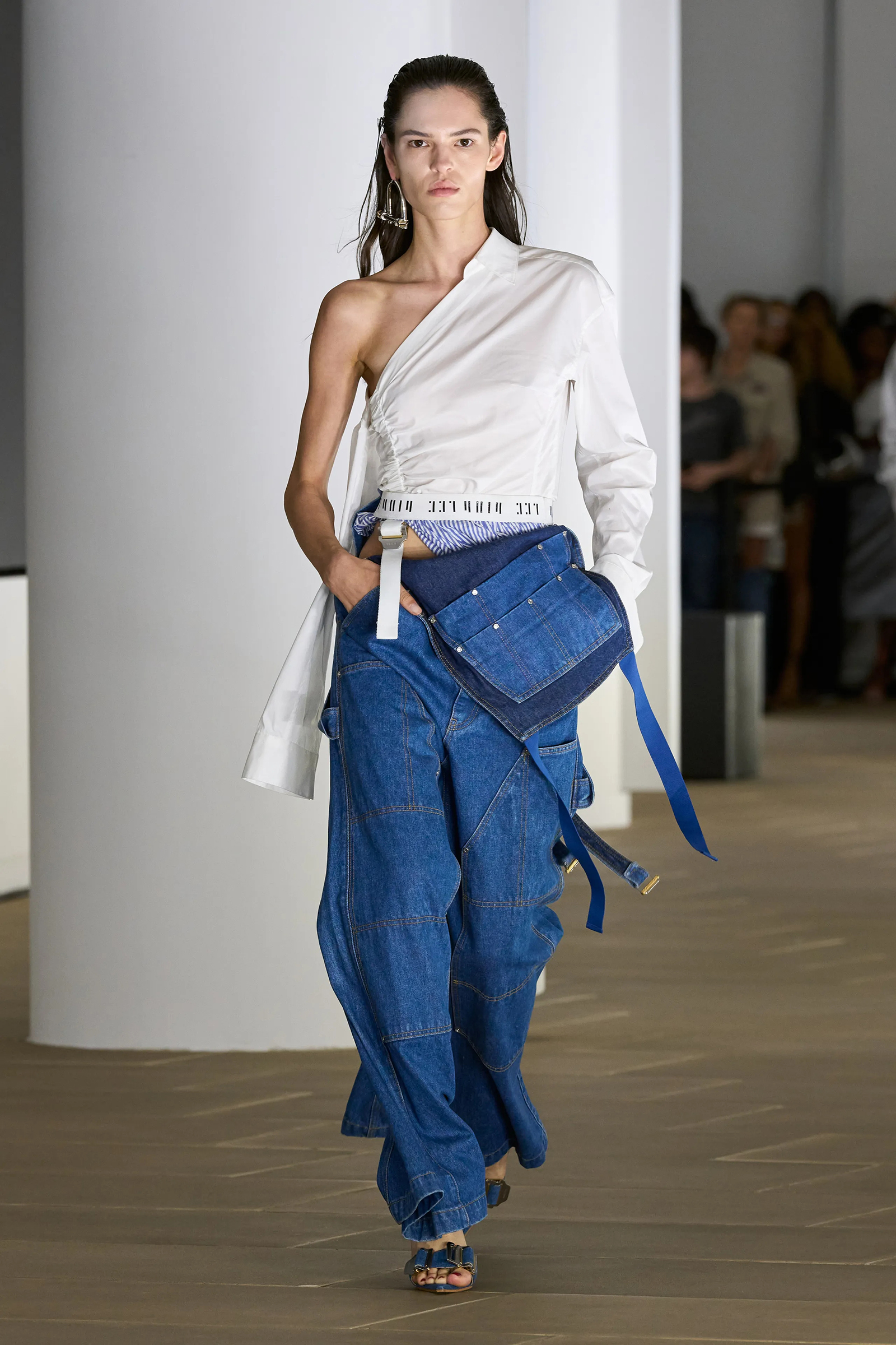 Lee stretched this theme to a surprisingly vast range of hardware-clad interpretations. “This season was primarily about evolving the utility and construction language I’ve been playing with until now,” he said at a preview, mentioning the scaffolding and industrial design in his Melbourne and Miami stores and the utilitarian detailing he’s explored of late. What’s compelling about Lee as a designer is his ability to both fixate—and cleverly expand on—a specific theme while managing to keep his clothes distinctly his.