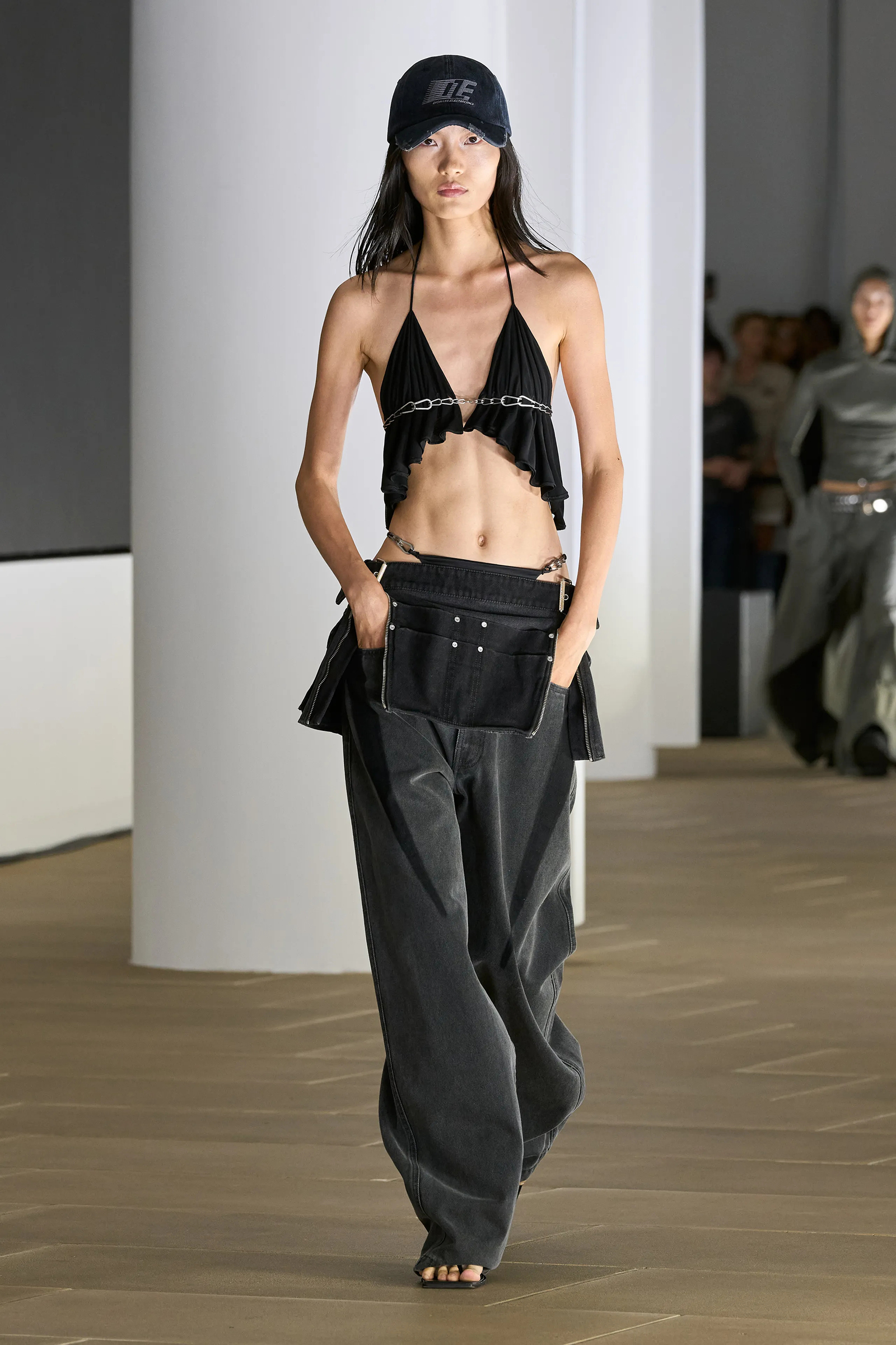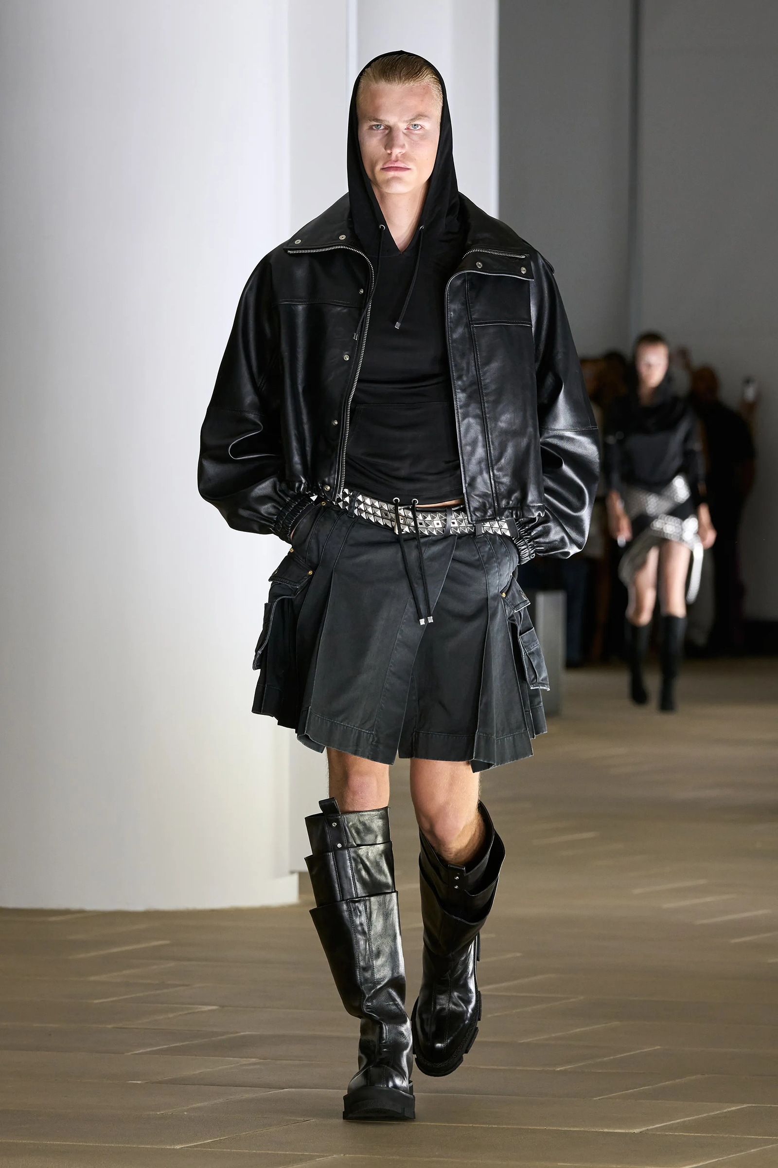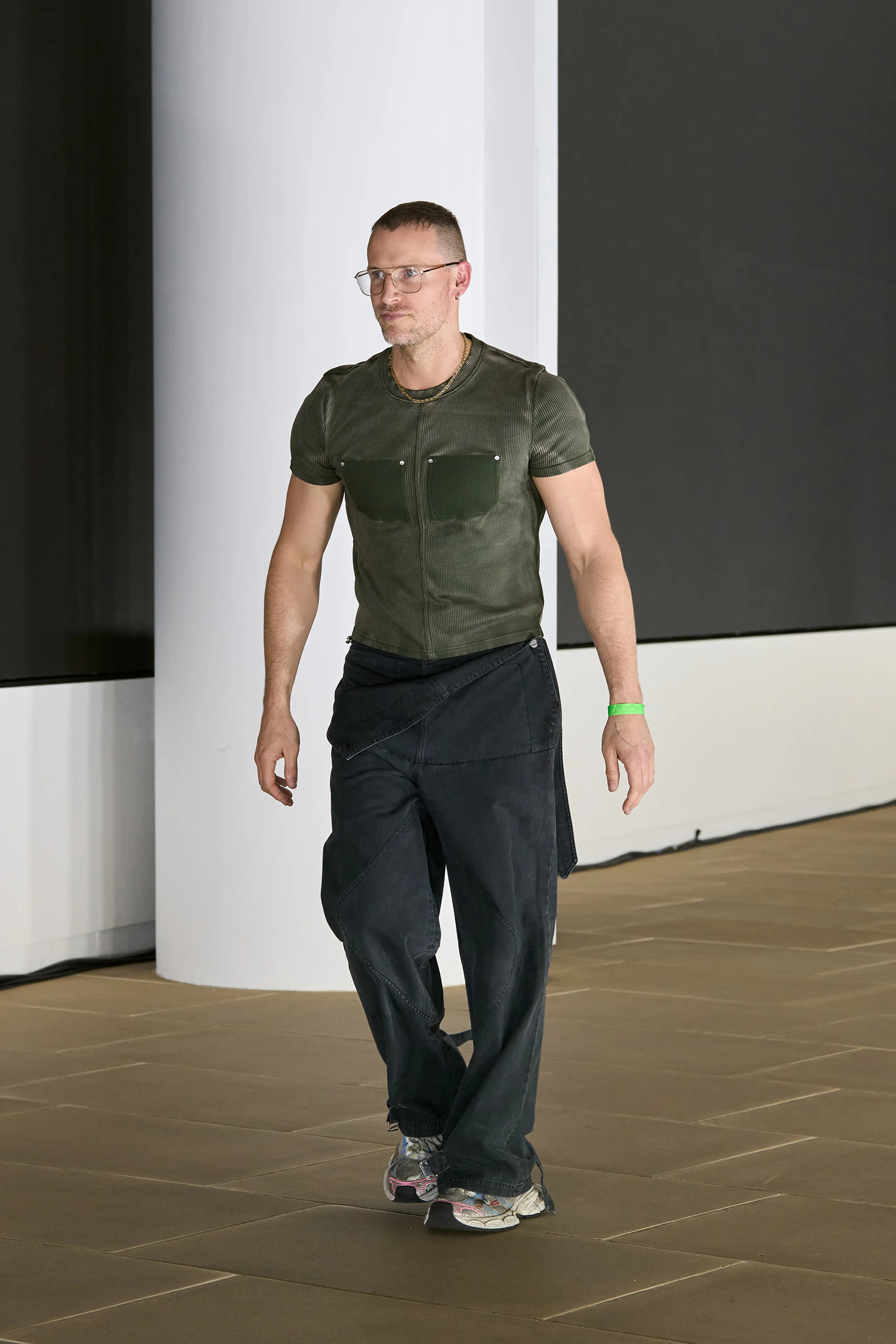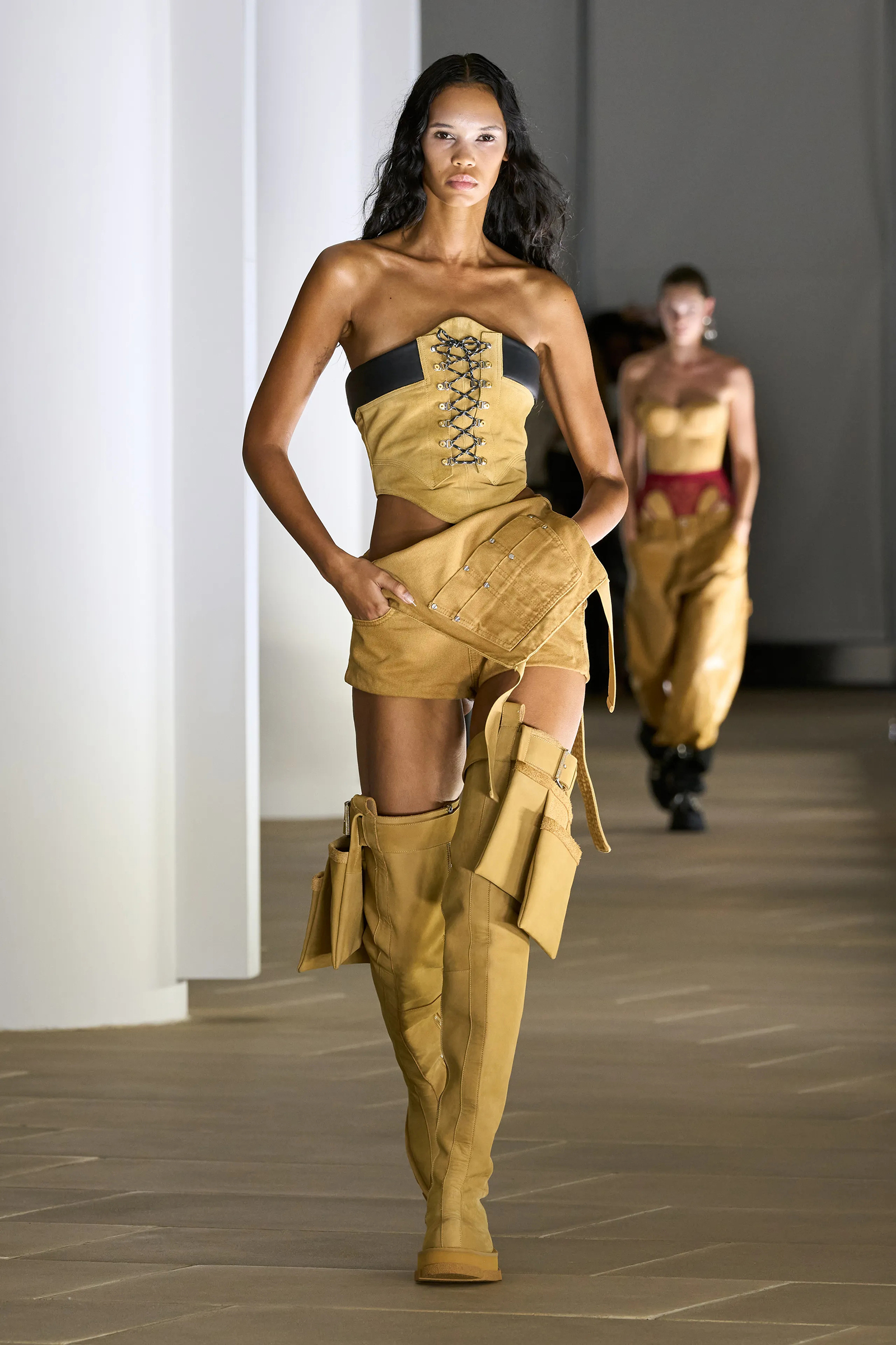 Another development: Lee stepped away from his usual monochromatic palette and strict category groupings to “mix things in a bit more.” The goal, he said, was to offer an “exaggerated brand wardrobe.” That is the operative word here, wardrobe—the truth is that it’s become reductive to label Lee’s clothes as nothing other than rave-ready. That they are, and they will continue to be, but he also gave his customers options past a night out. Dion Lee has a few more tools in his toolbox.