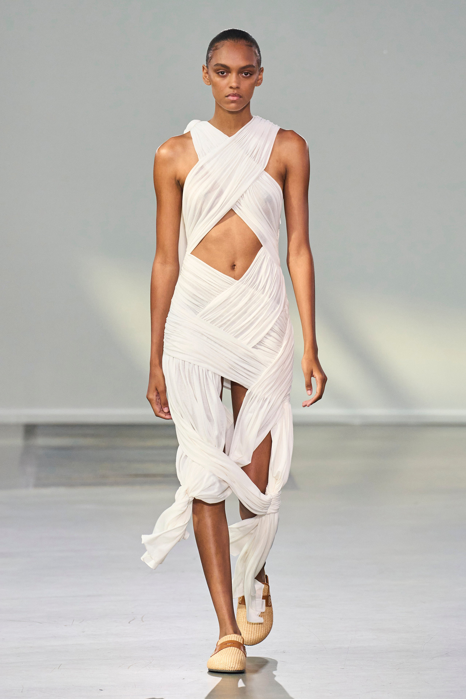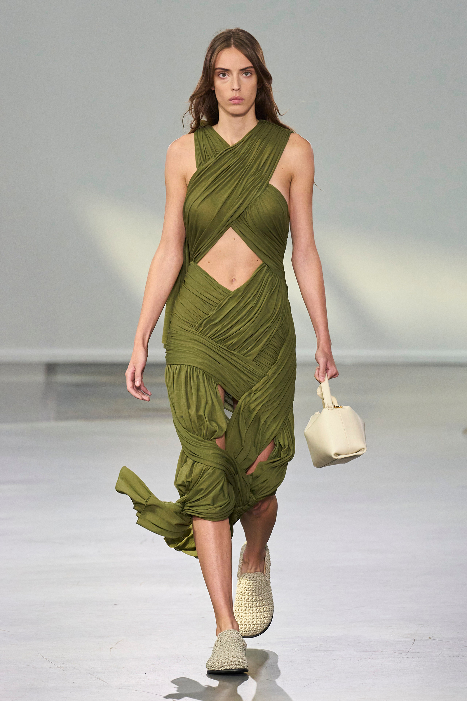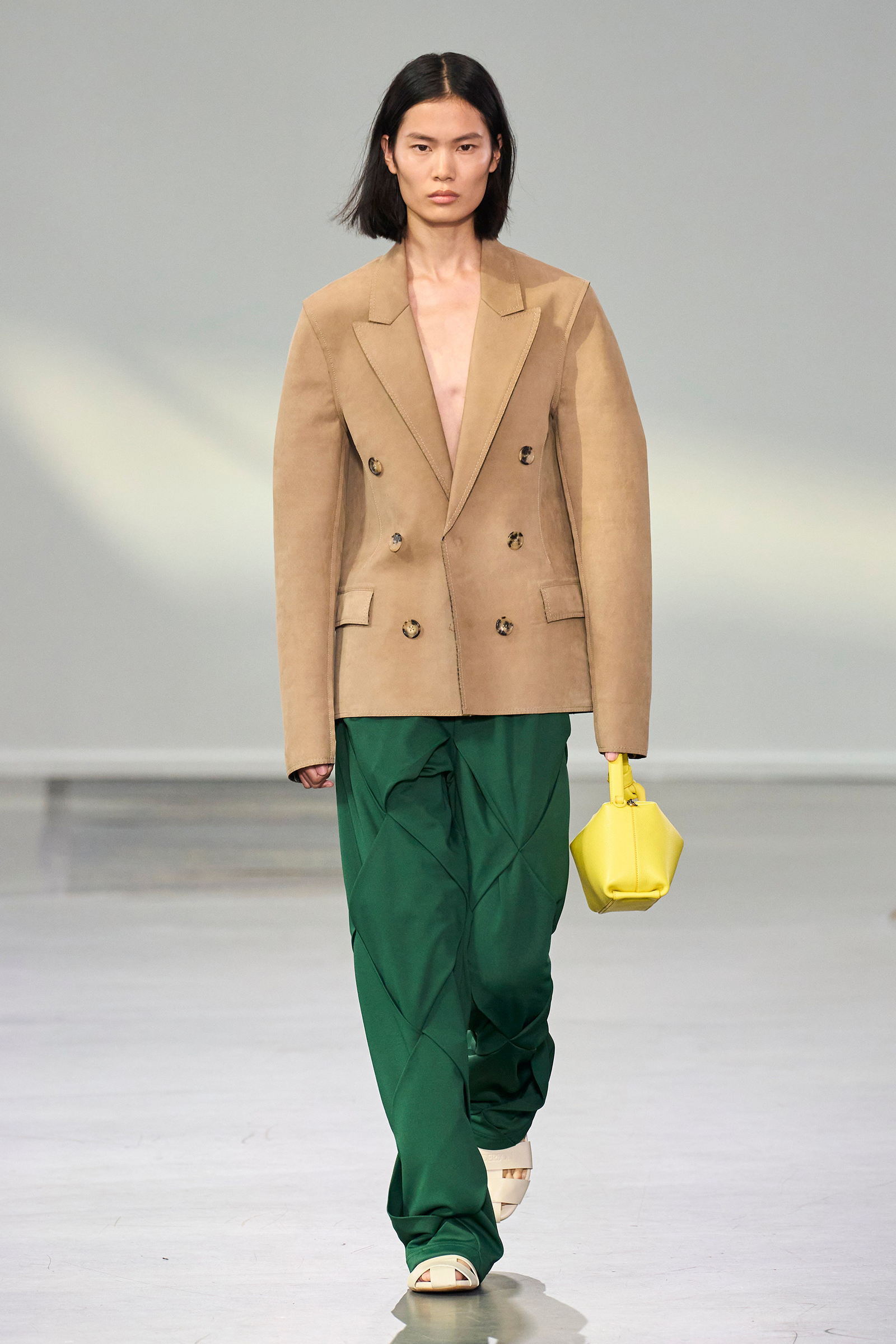 The collection was also grounded—not to pun—with a great show of footwear: clogs, geometrically woven flat sandals, and moccasins set on kitten heels. As it happens, those last catnip fashion items also go back to Anderson’s childhood as a sharp-eyed kid, drinking in everything he saw in Northern Ireland. “They remind me of my granny’s slippers,” he said, laughing. “Actually both my grannies had them. They were a thing. Kind of cozy!”