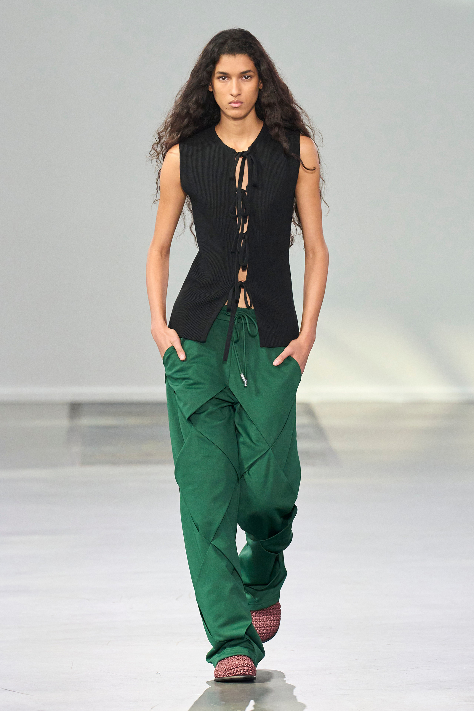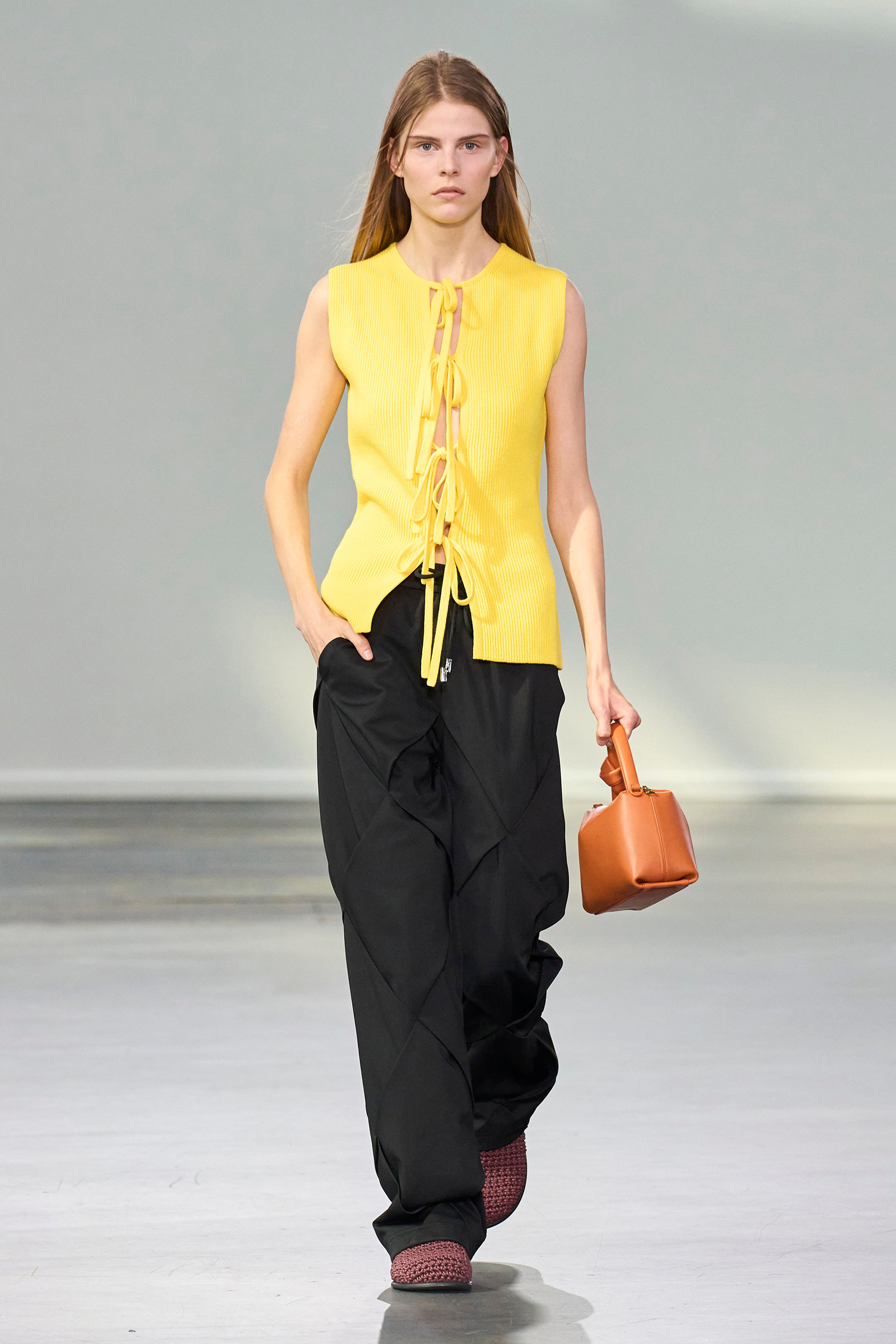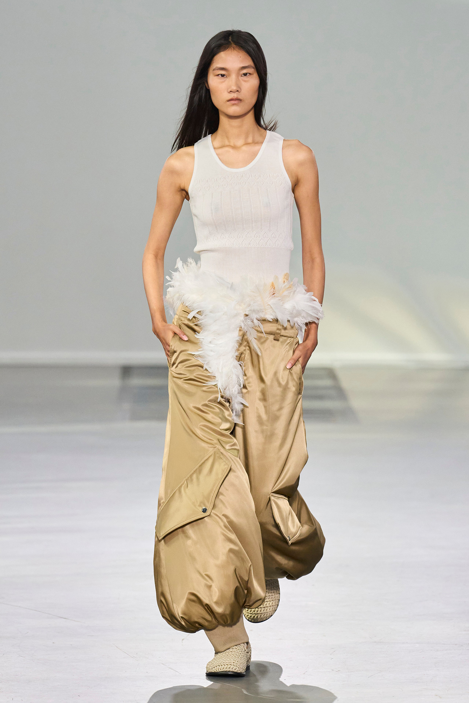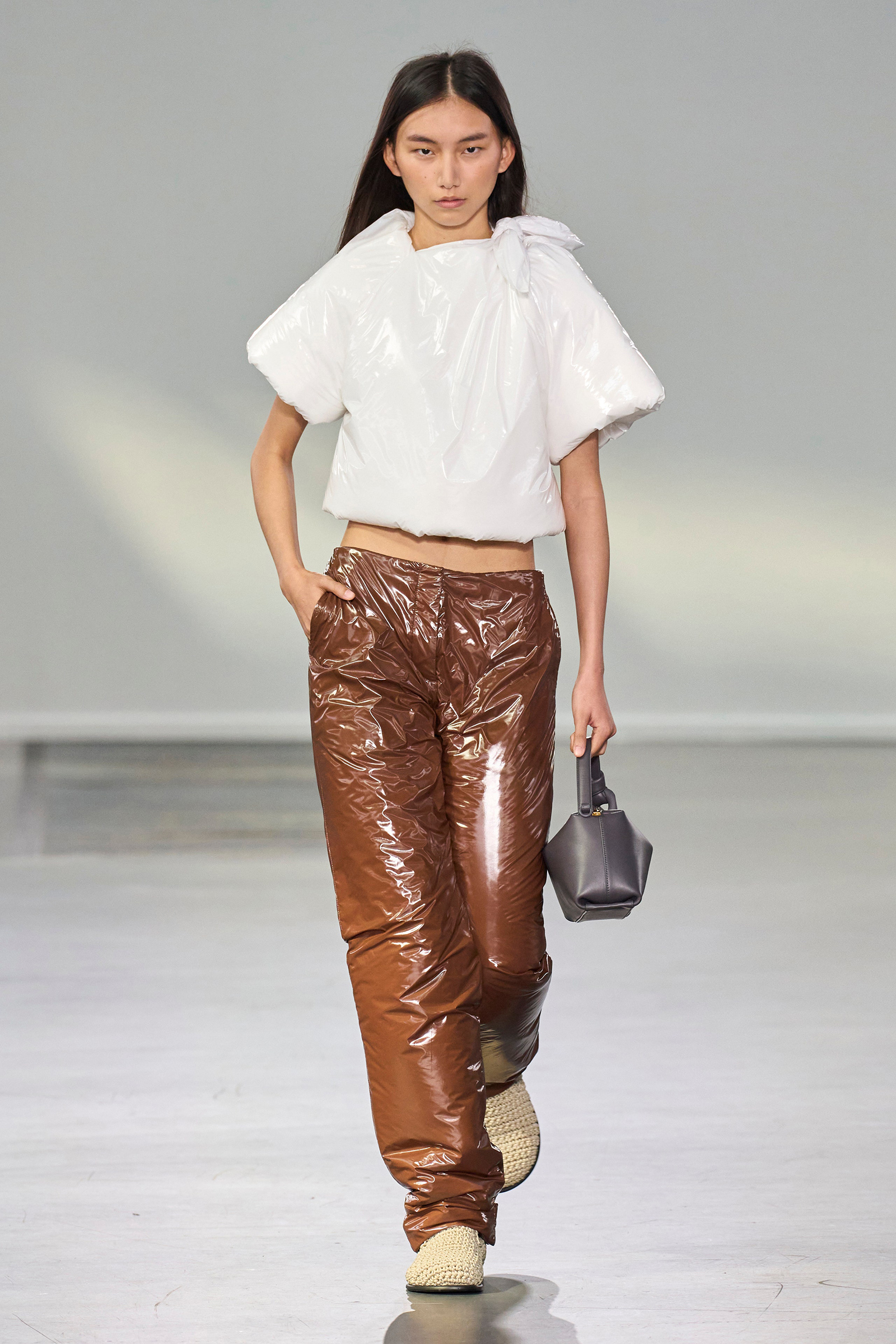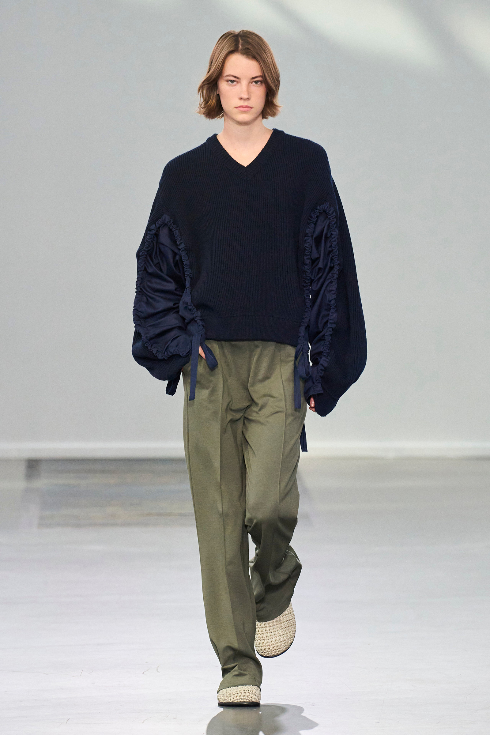 Nevertheless, Anderson’s cool hand with exaggerating proportions, his exactitude with placing pops of color, and his genius for shoe design were all over the show. Take the cargo pants: “When you pump them up, they all of a sudden have this kind of swagger,” he noted.