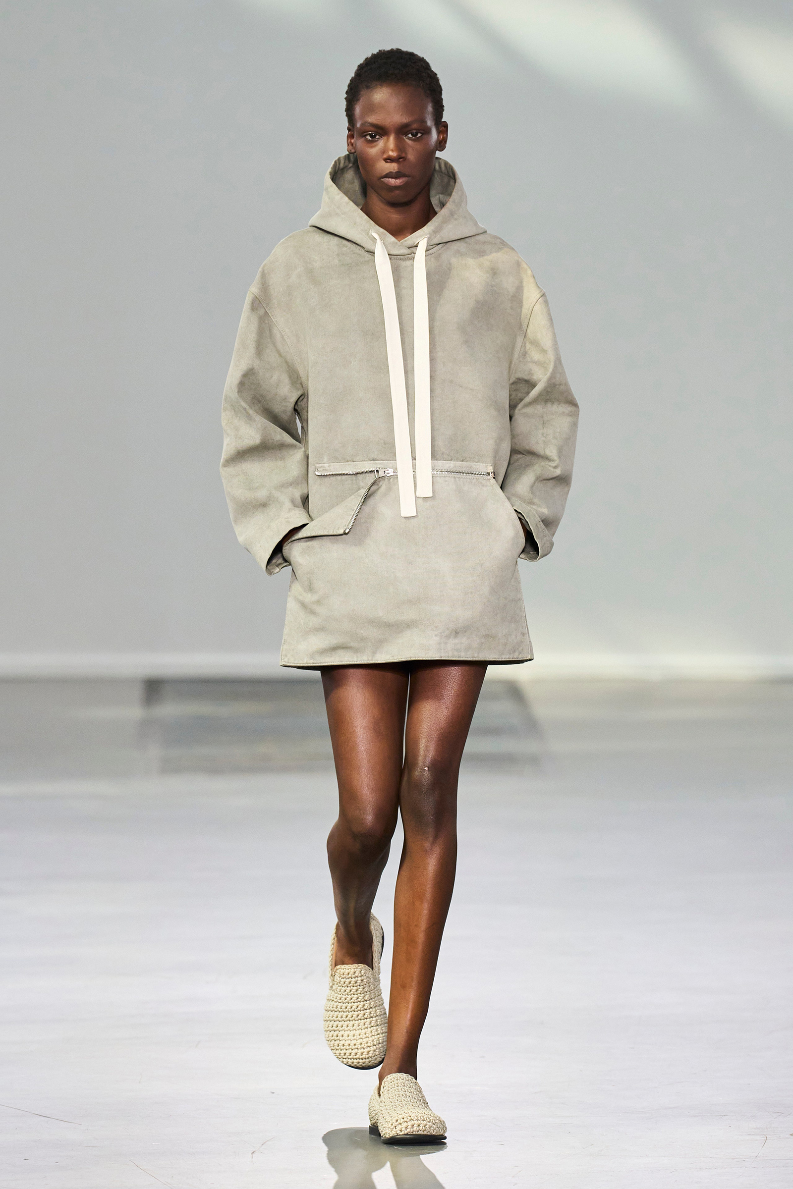 Somehow, that was an emblematic starter for a collection that had Anderson’s collection circling back to the youth-based energy of his brand. “It was kind of re-going back to find a new path,” he said. In the summer he “saw all these girls and boys hanging out wearing biker jackets and cargos.” Street observation—seeing the generic clothes young people really wear, but with a different attitude in each generation—put him in the mood to think about “what happens when you focus on reduction. It wasn’t about a lot of tricks. Kind of a cleanser.”