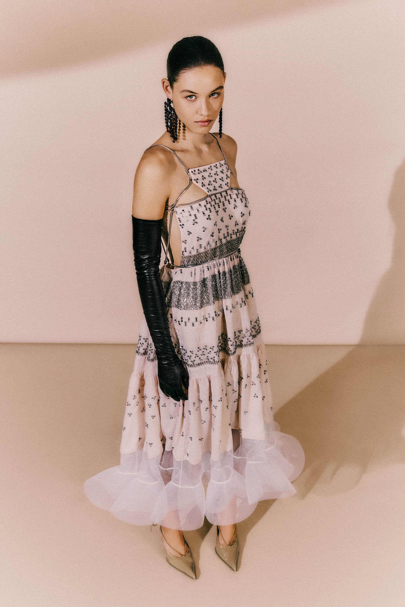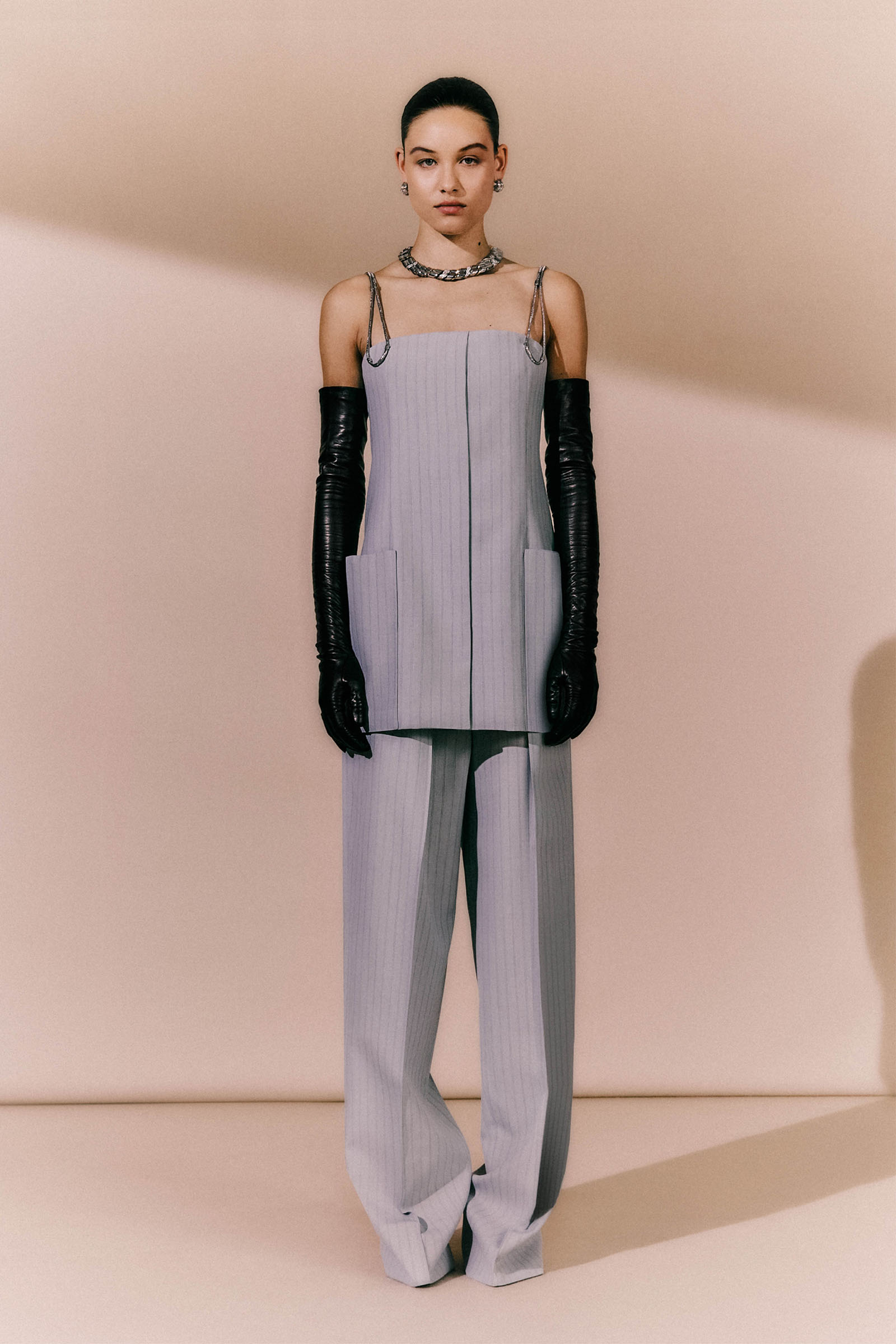 A smattering of male looks were less inflected by the 1920s (when the founder apparently became the first couturier in Paris to produce menswear) than a desire to present a 2020s foil to the house’s this-season womenswear. The results included boot-cut pants and low-skirted, wide-collar tailoring (so halfway between then and now) spiced with sometimes-coated guipure detailing and shared styling touches. Lanvin’s recent-ish history and powerful origin story means it remains a wonderful but slightly formless opportunity: At this presentation it continued to take gradual shape.