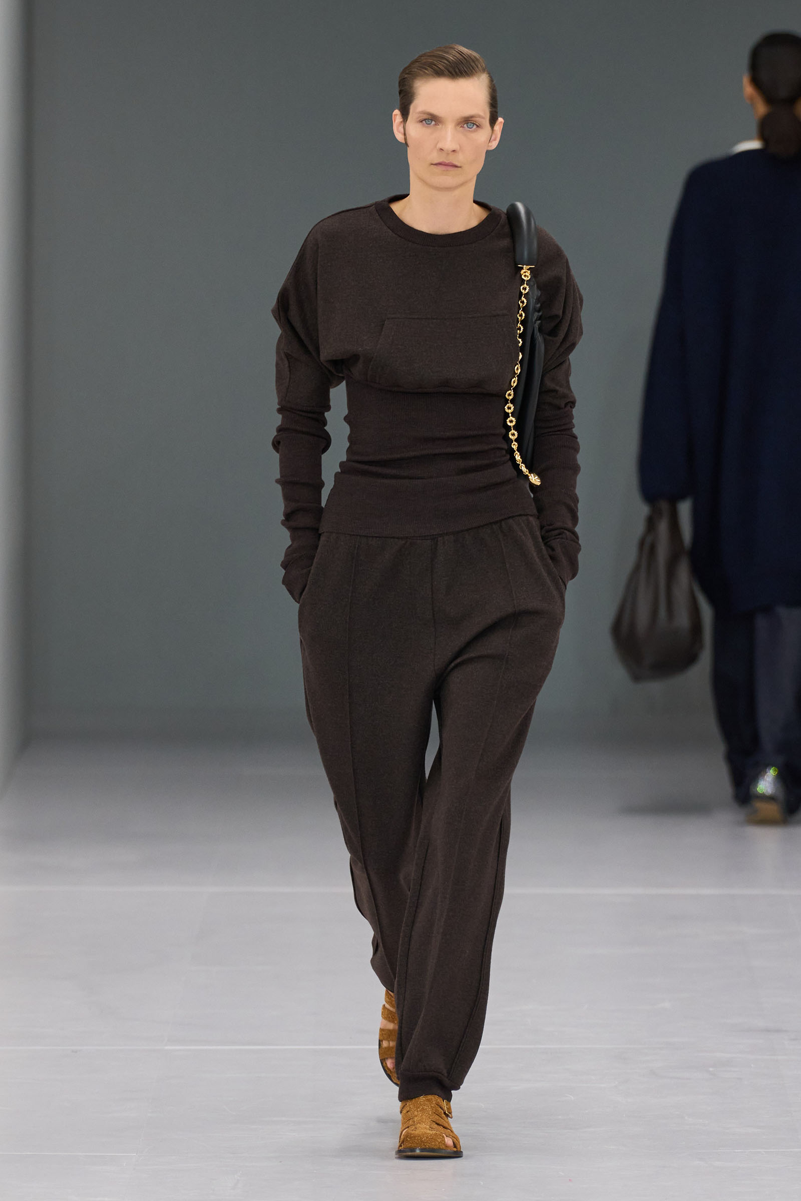 There was a killer bag in the equation—a totally desirable bourgeois classic shoulder bag with a foot-long gold chain nonchalantly swinging from it. Anderson knows who he’s addressing and dressing so well. It has an international sweep. Every woman who might loosely identify as American preppy, British posh, French BCBG—and then all the rest of us who just crave something out of fashion that’s easy, chic, and not boring.